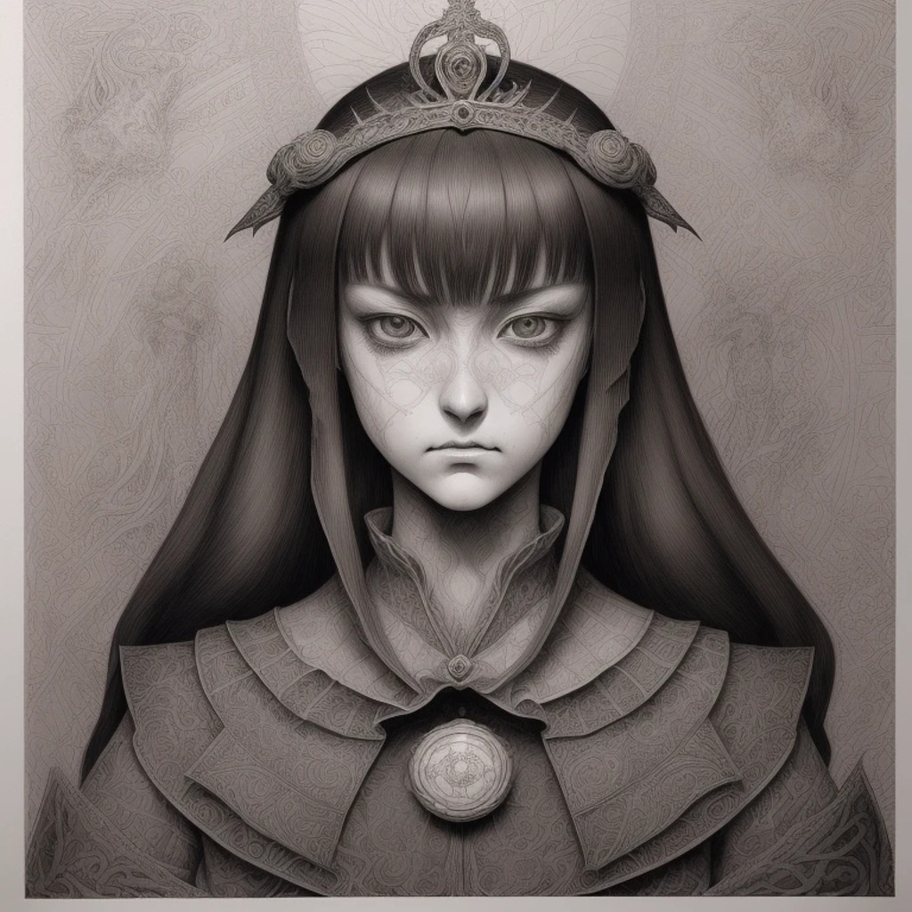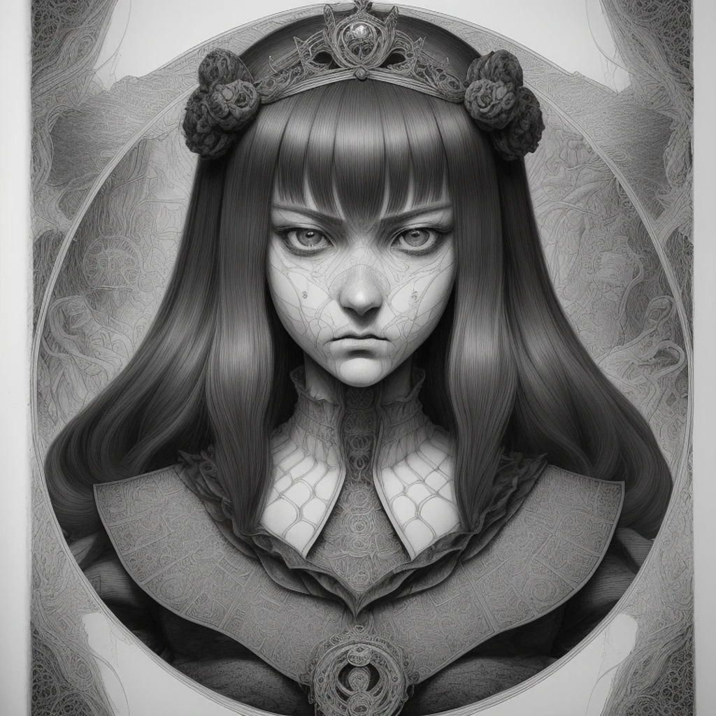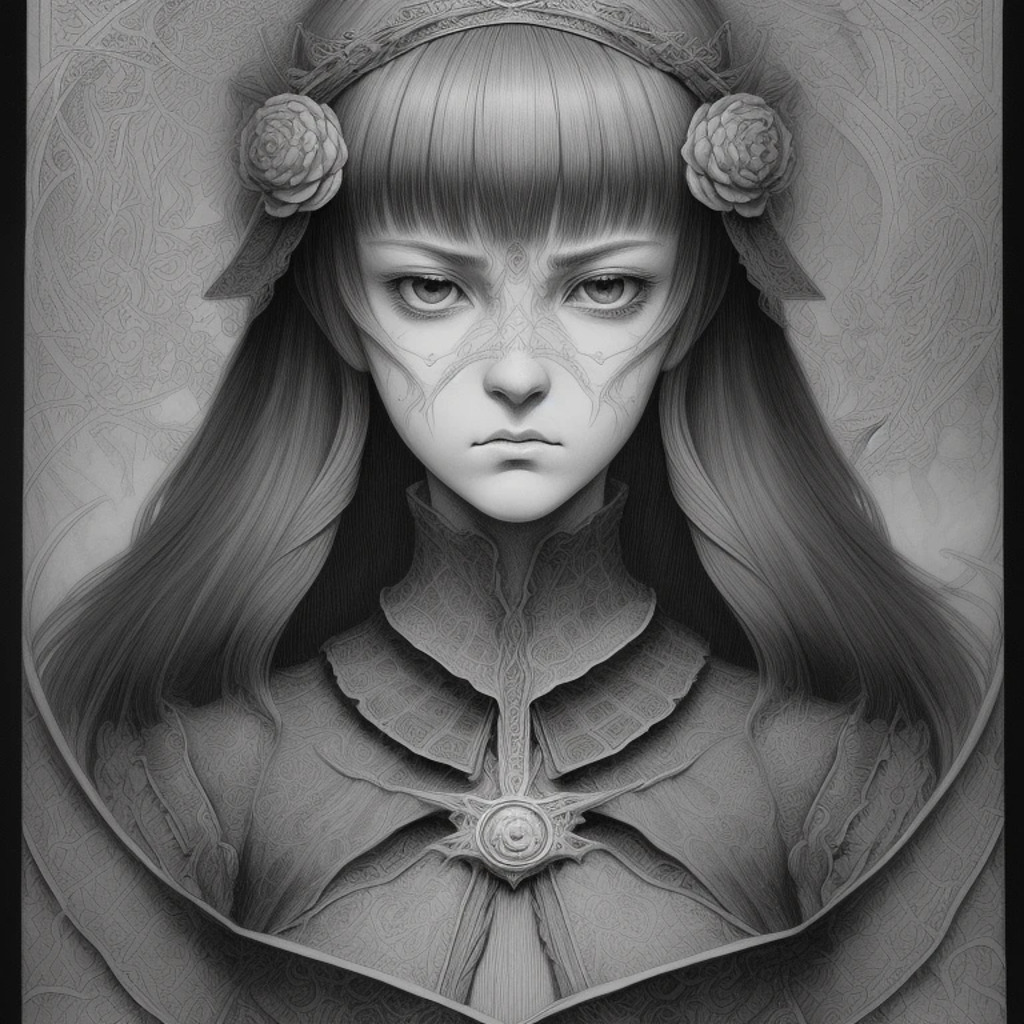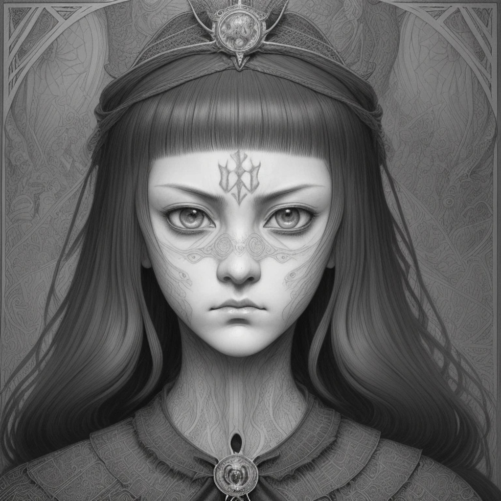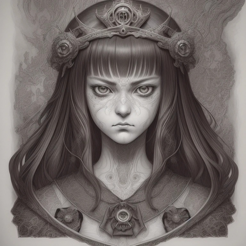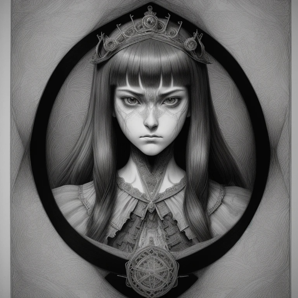 Prompt: A detailed infographic, marginalia titled ‘Face of sadness’ description ‘Order of the occult princess’ portrait, character design, worn, dark, manga style, extremely high detail, photo realistic, pen and ink, intricate line drawings, by MC Escher, Yoshitaka Amano, Ruan Jia, Kentaro Miura, Artgerm, style by eddie mendoza, raphael lacoste, alex ross
