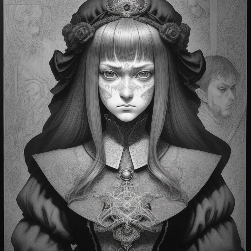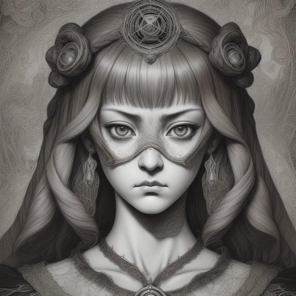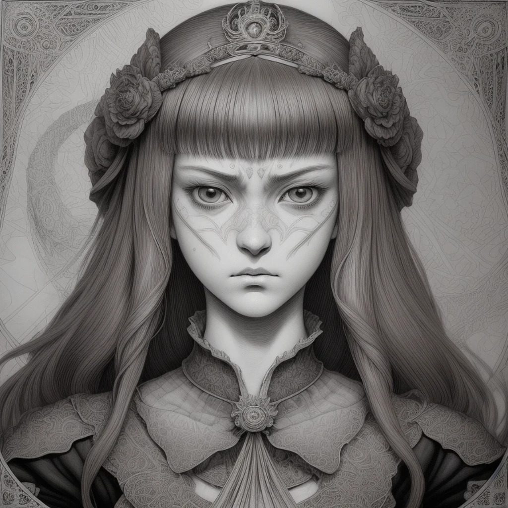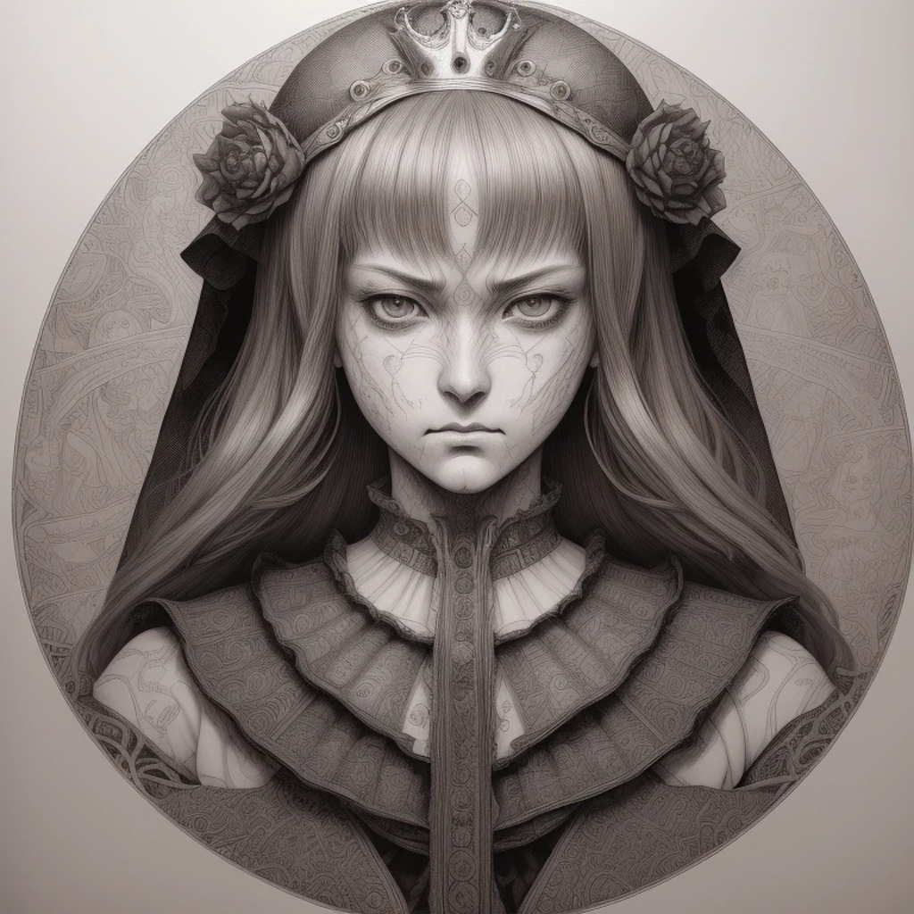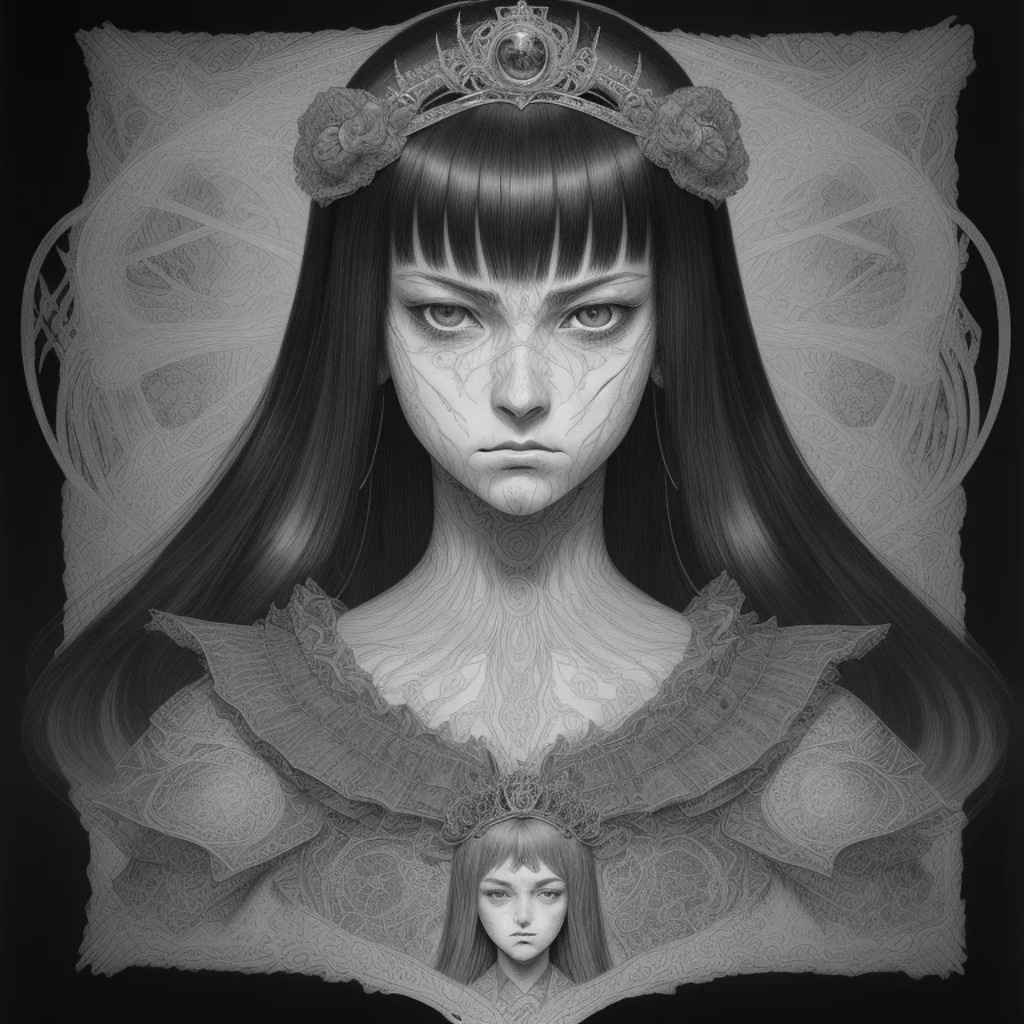 Prompt: A detailed infographic, marginalia titled ‘Face of sadness’ description ‘Order of the occult princess’ portrait, character design, worn, dark, manga style, extremely high detail, photo realistic, pen and ink, intricate line drawings, by MC Escher, Yoshitaka Amano, Ruan Jia, Kentaro Miura, Artgerm, style by eddie mendoza, raphael lacoste, alex ross