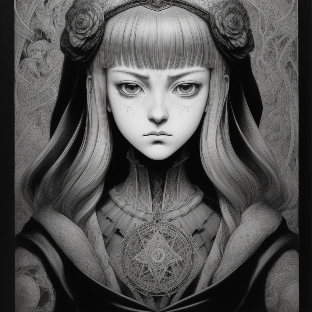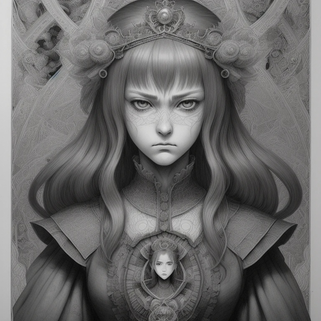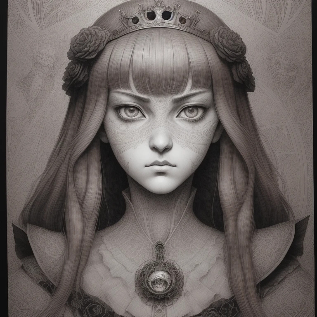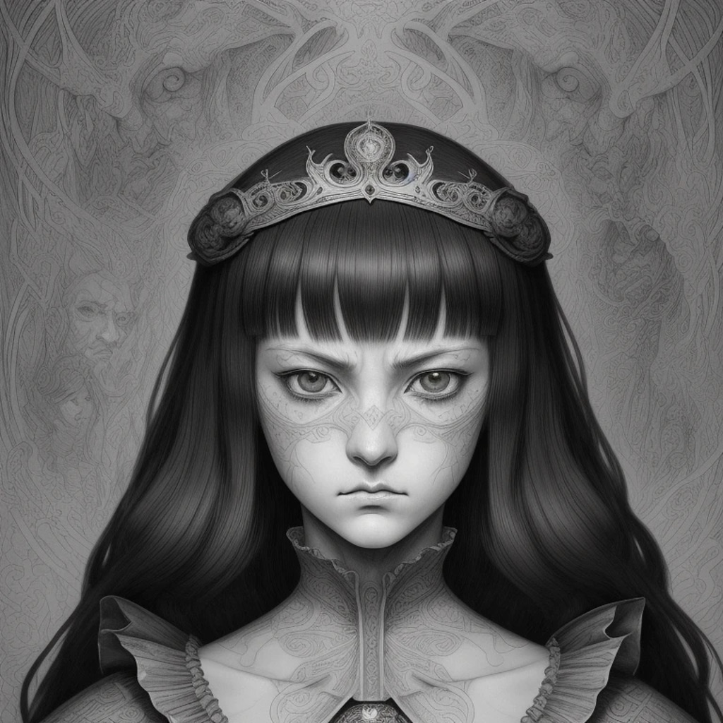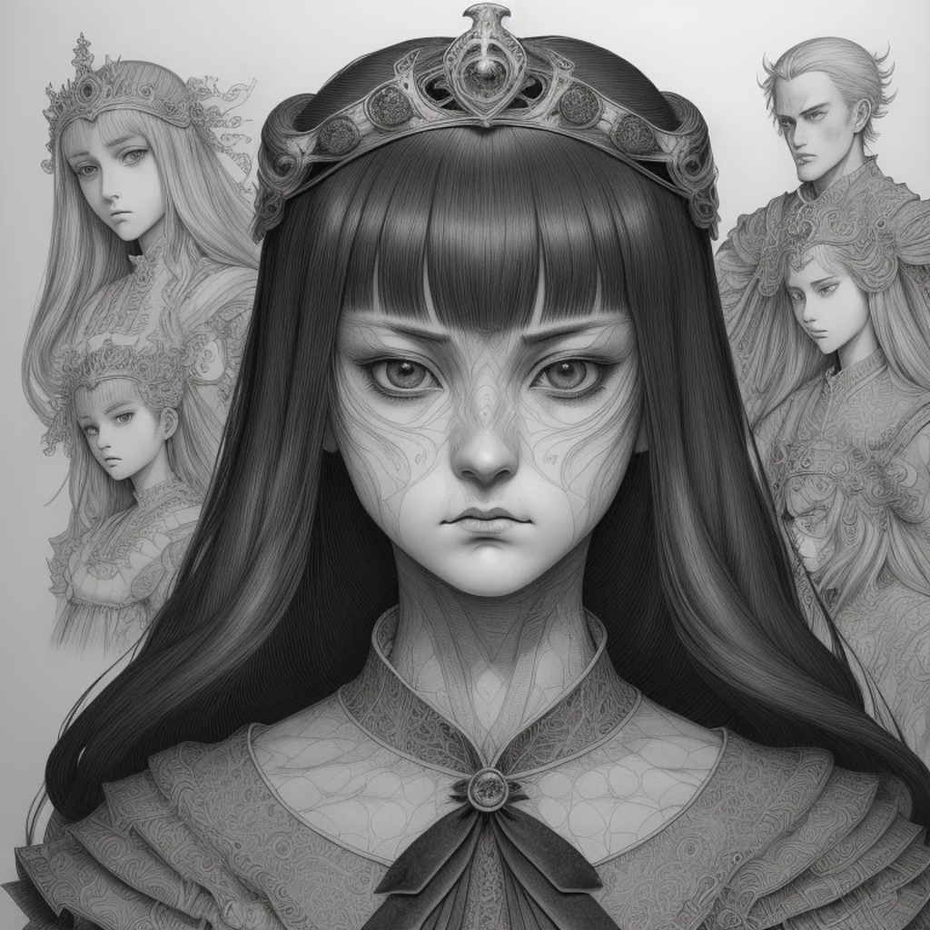Prompt: A detailed infographic, marginalia titled ‘Face of sadness’ description ‘Order of the occult princess’ portrait, character design, worn, dark, manga style, extremely high detail, photo realistic, pen and ink, intricate line drawings, by MC Escher, Yoshitaka Amano, Ruan Jia, Kentaro Miura, Artgerm, style by eddie mendoza, raphael lacoste, alex ross