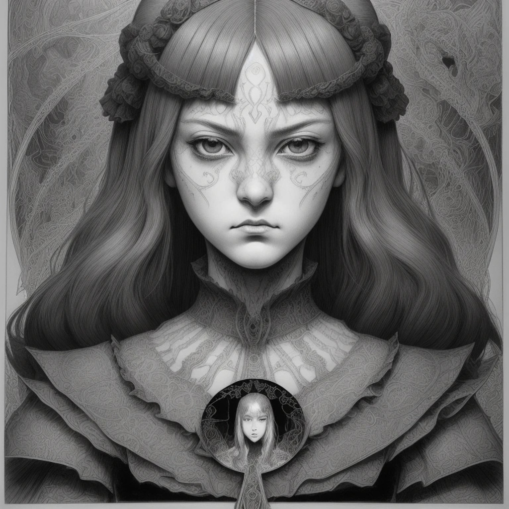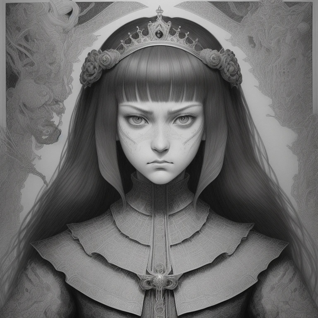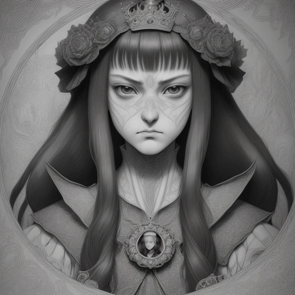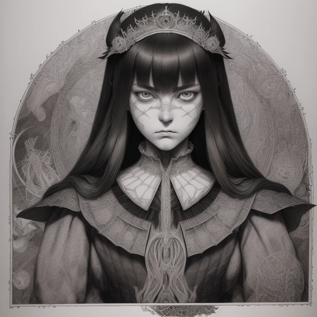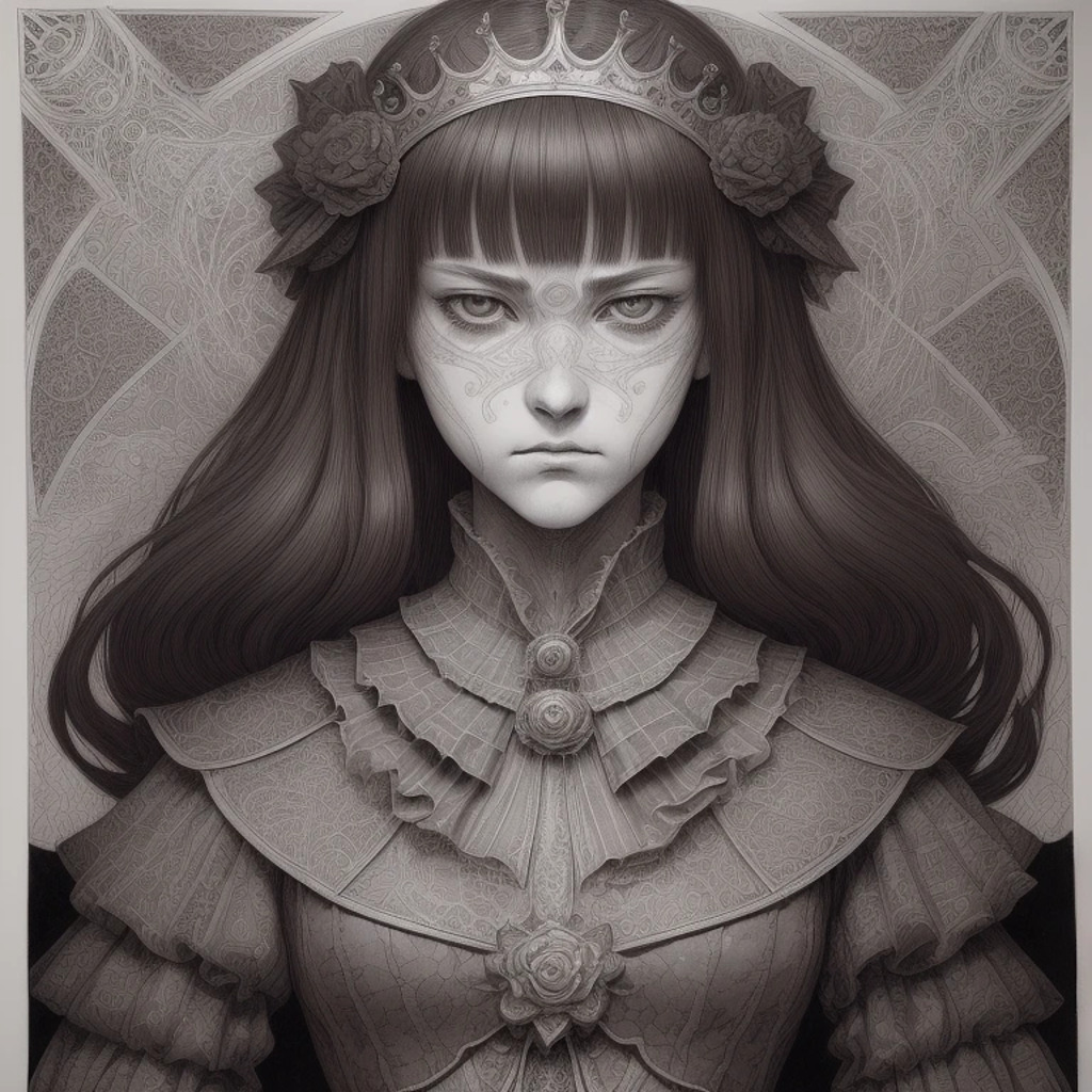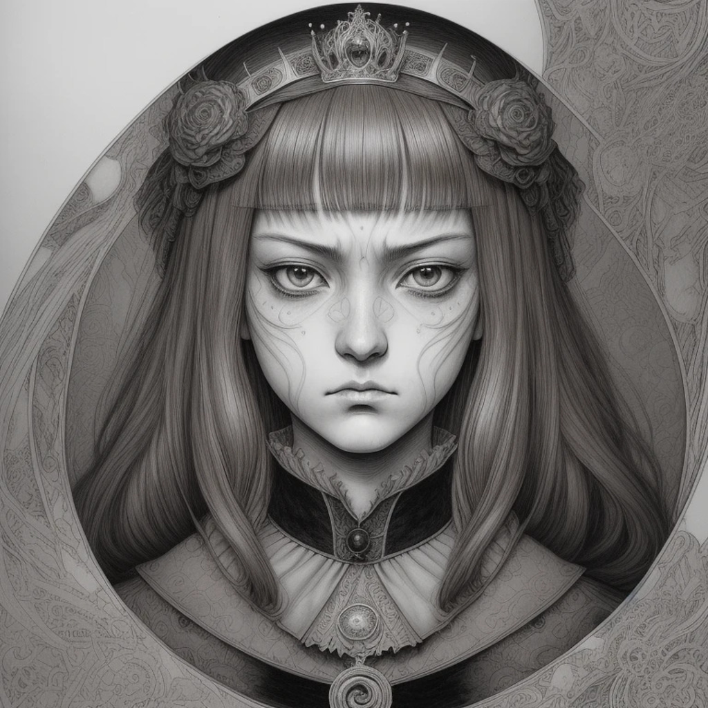 Prompt: A detailed infographic, marginalia titled ‘Face of sadness’ description ‘Order of the occult princess’ portrait, character design, worn, dark, manga style, extremely high detail, photo realistic, pen and ink, intricate line drawings, by MC Escher, Yoshitaka Amano, Ruan Jia, Kentaro Miura, Artgerm, style by eddie mendoza, raphael lacoste, alex ross