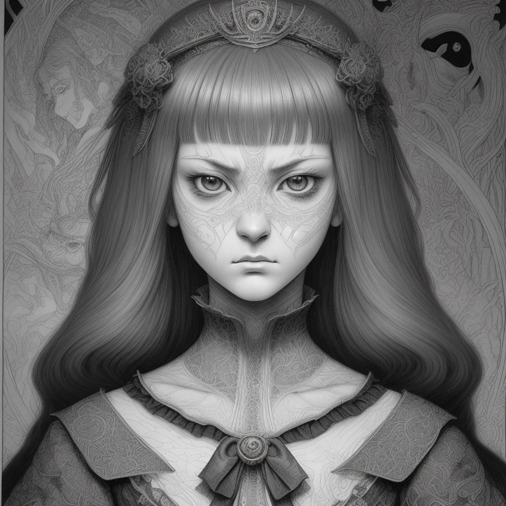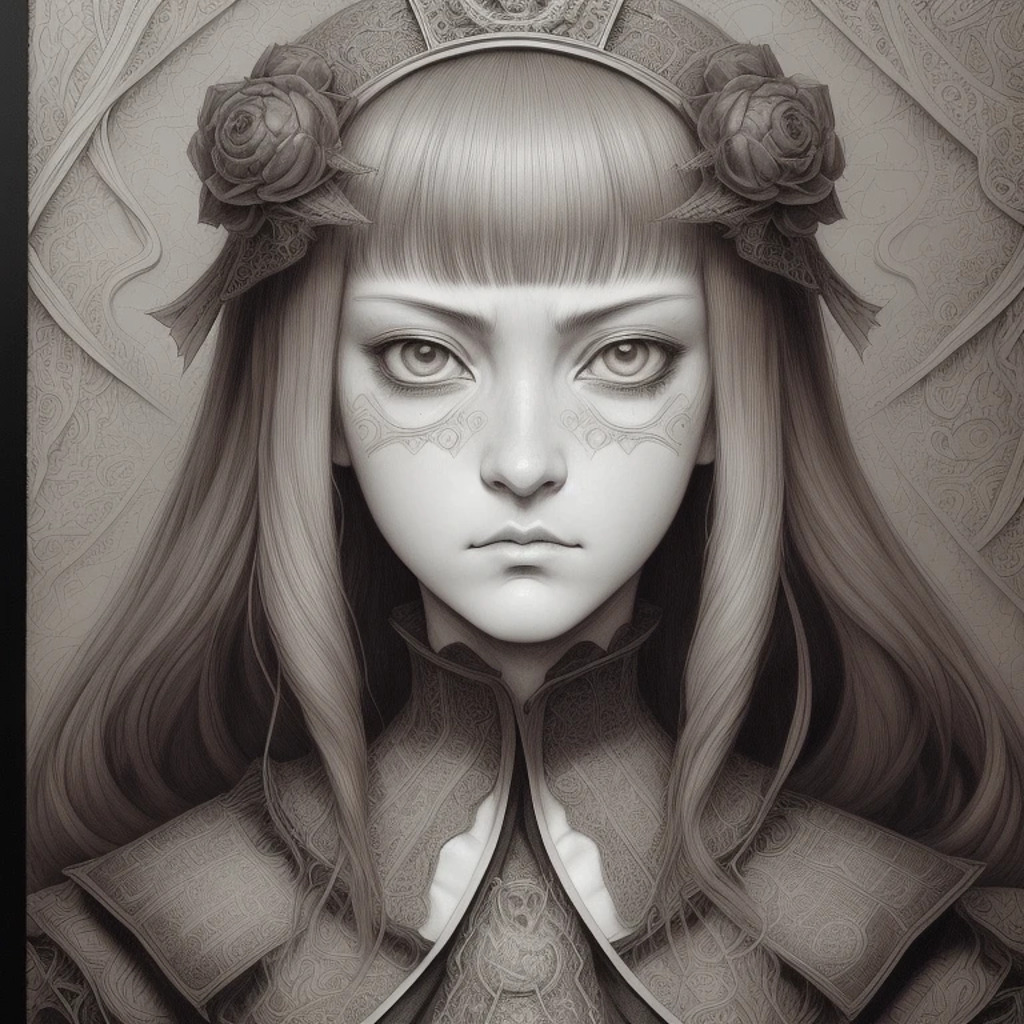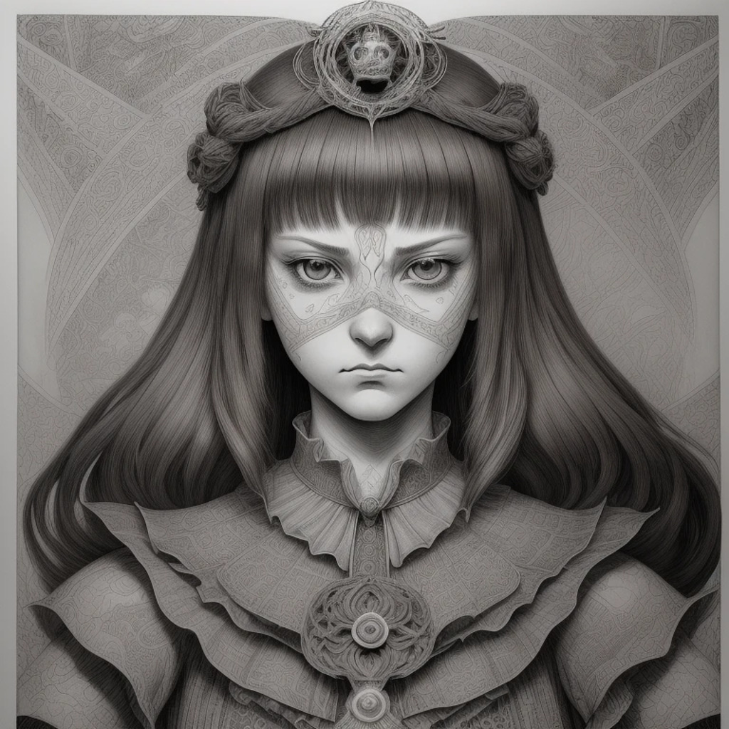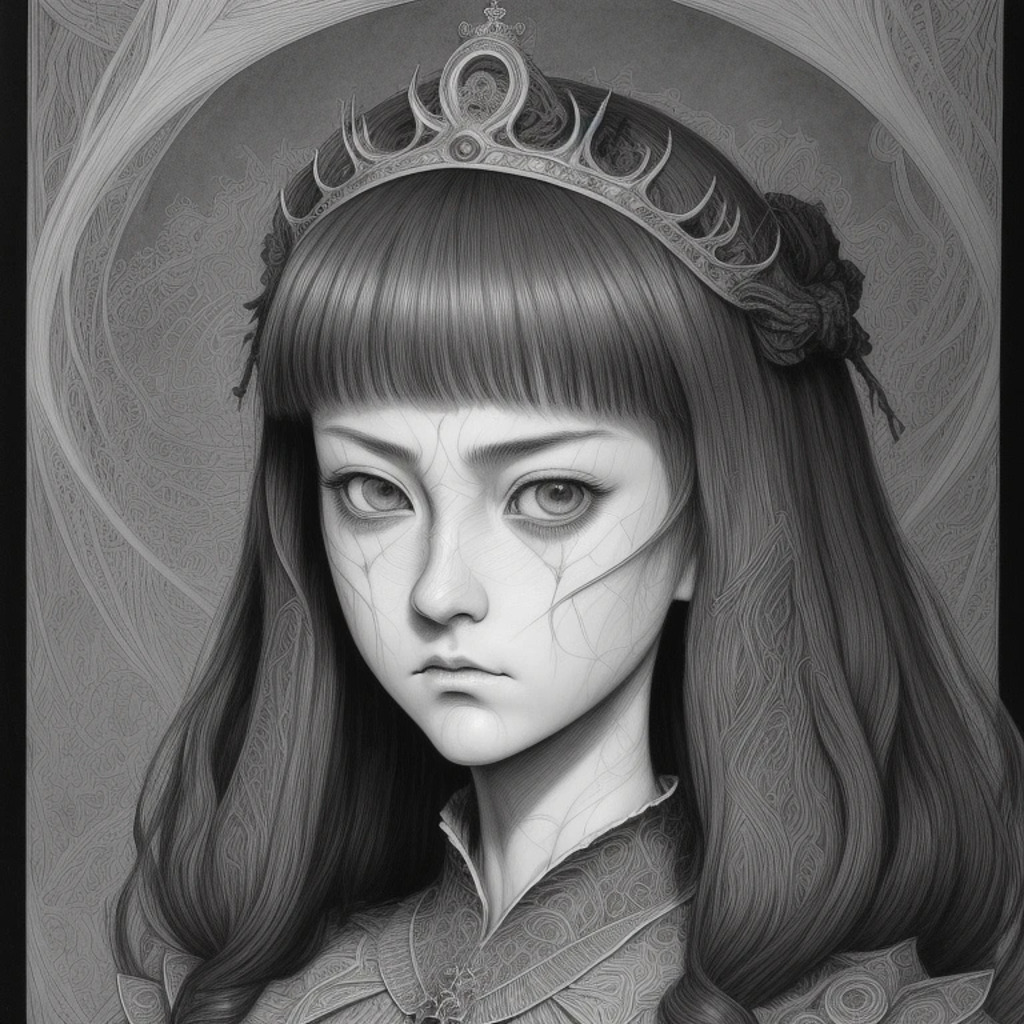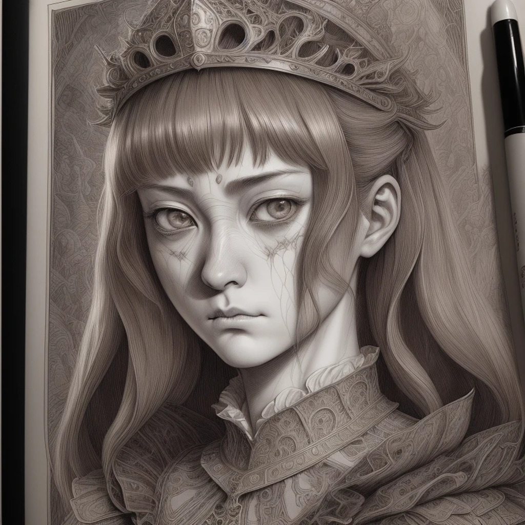 Prompt: A detailed infographic, marginalia titled ‘Face of sadness’ description ‘Order of the occult princess’ portrait, character design, worn, dark, manga style, extremely high detail, photo realistic, pen and ink, intricate line drawings, by MC Escher, Yoshitaka Amano, Ruan Jia, Kentaro Miura, Artgerm, style by eddie mendoza, raphael lacoste, alex ross