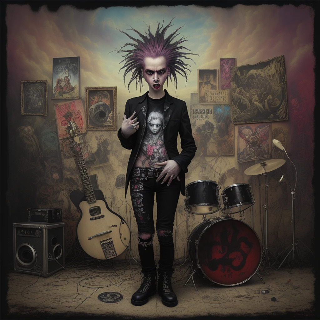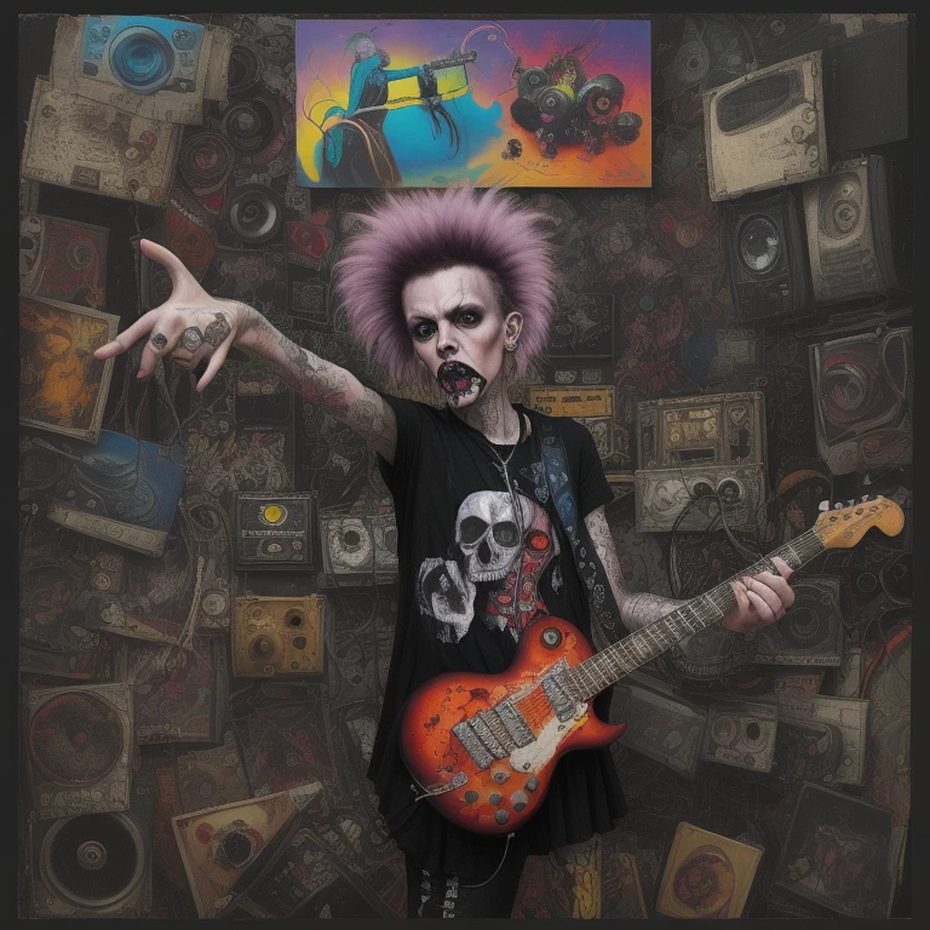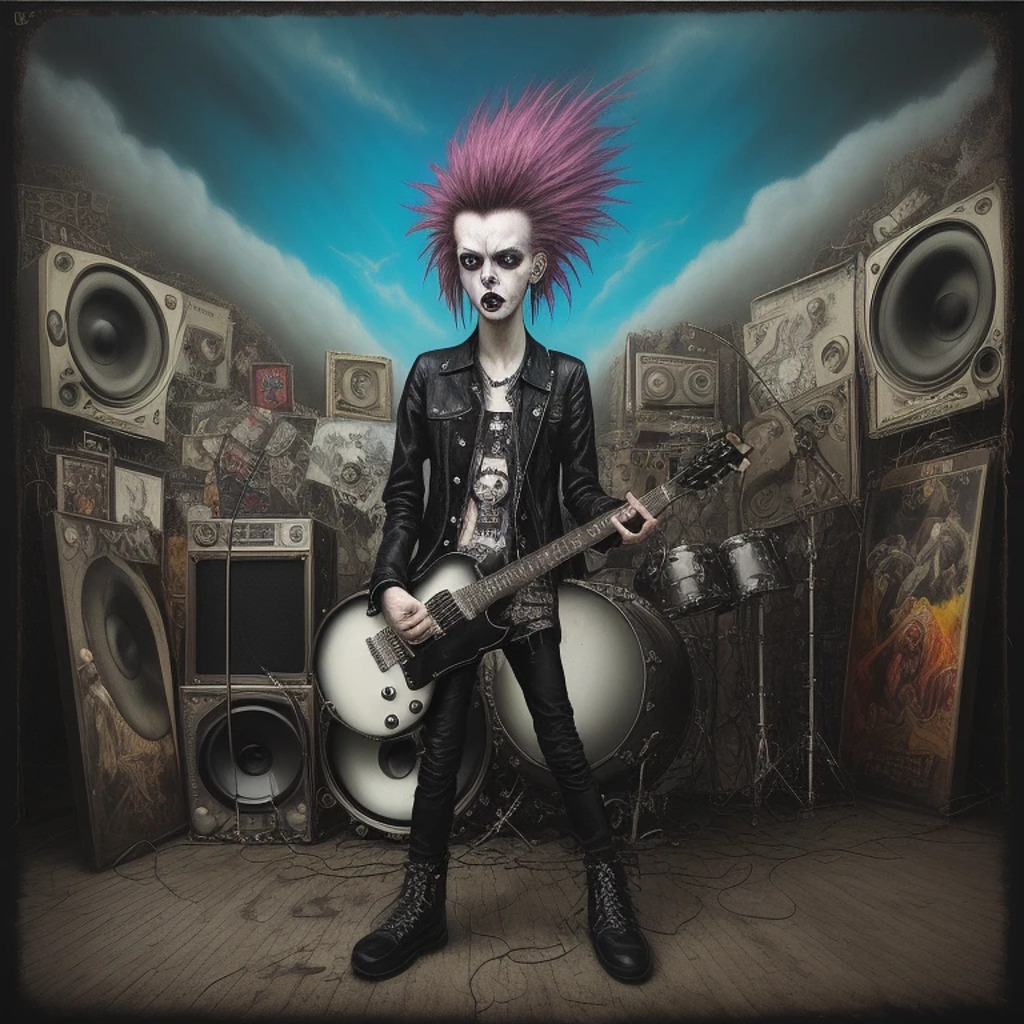 Prompt: music Album cover picture, surreal art, oil picture, punk rock