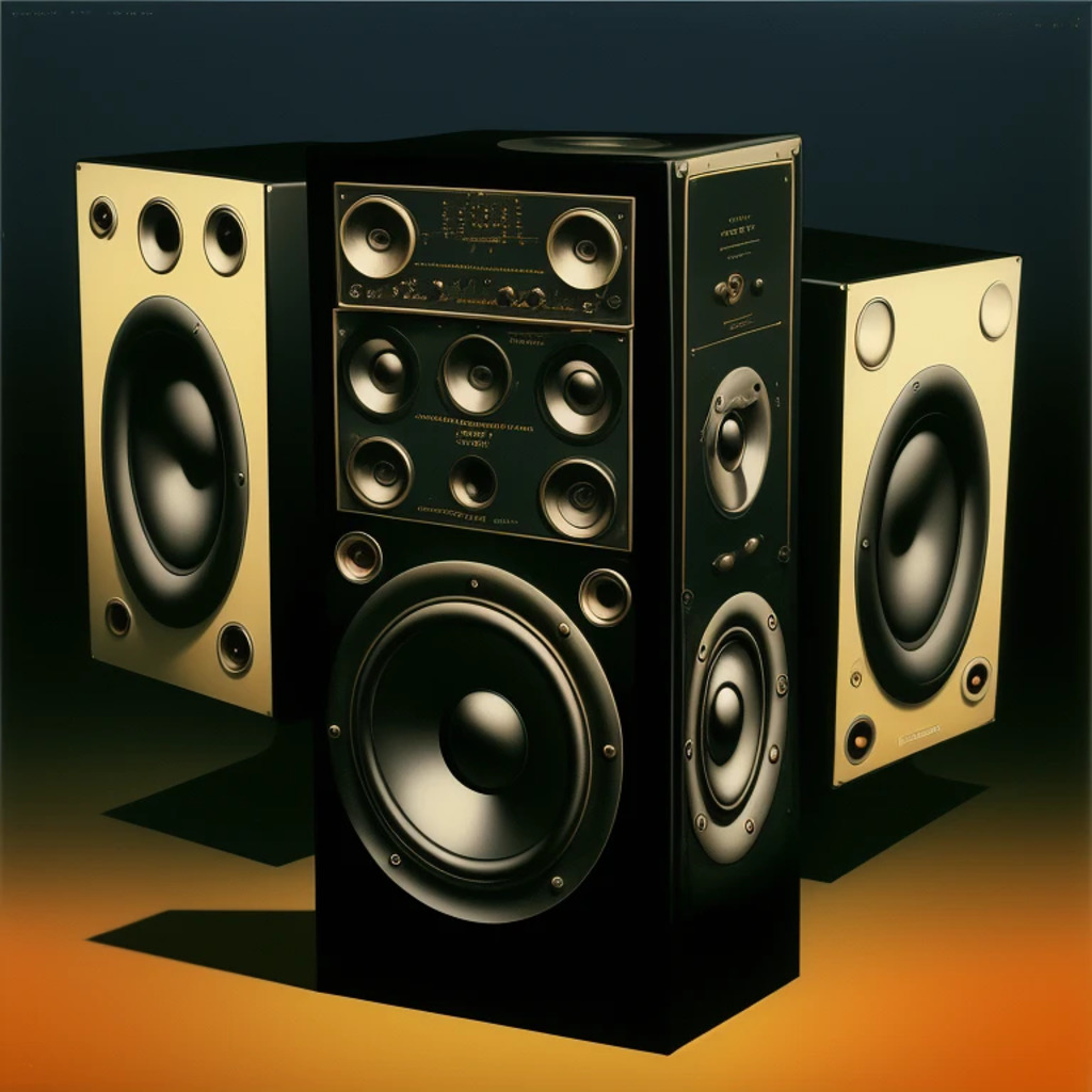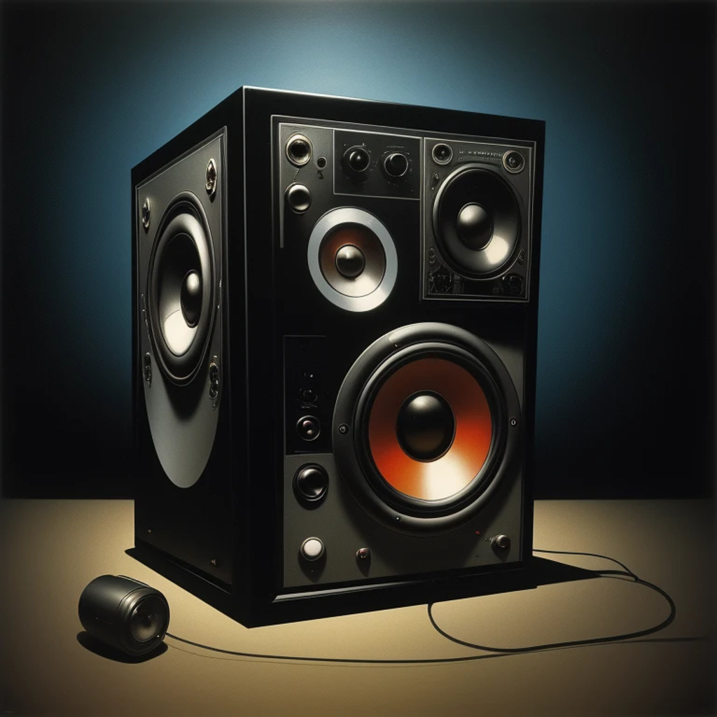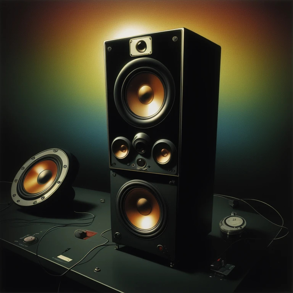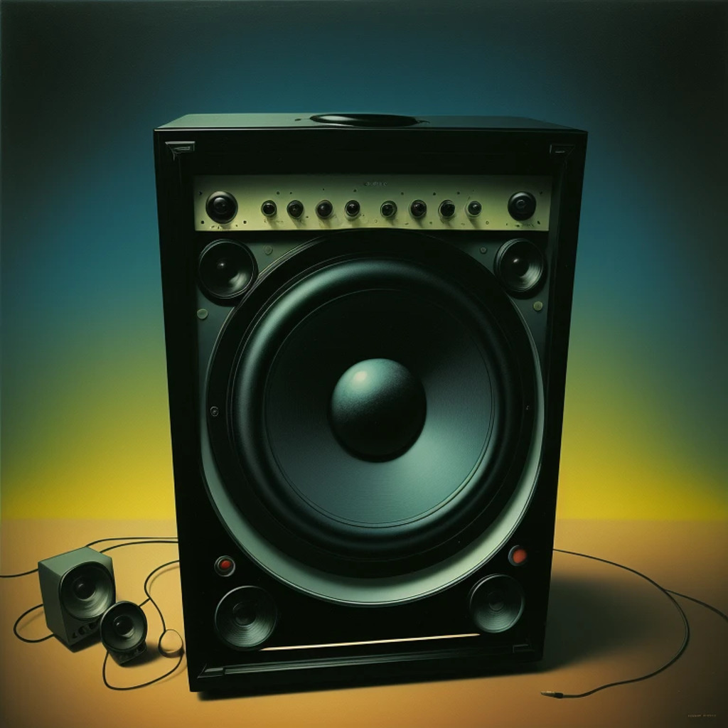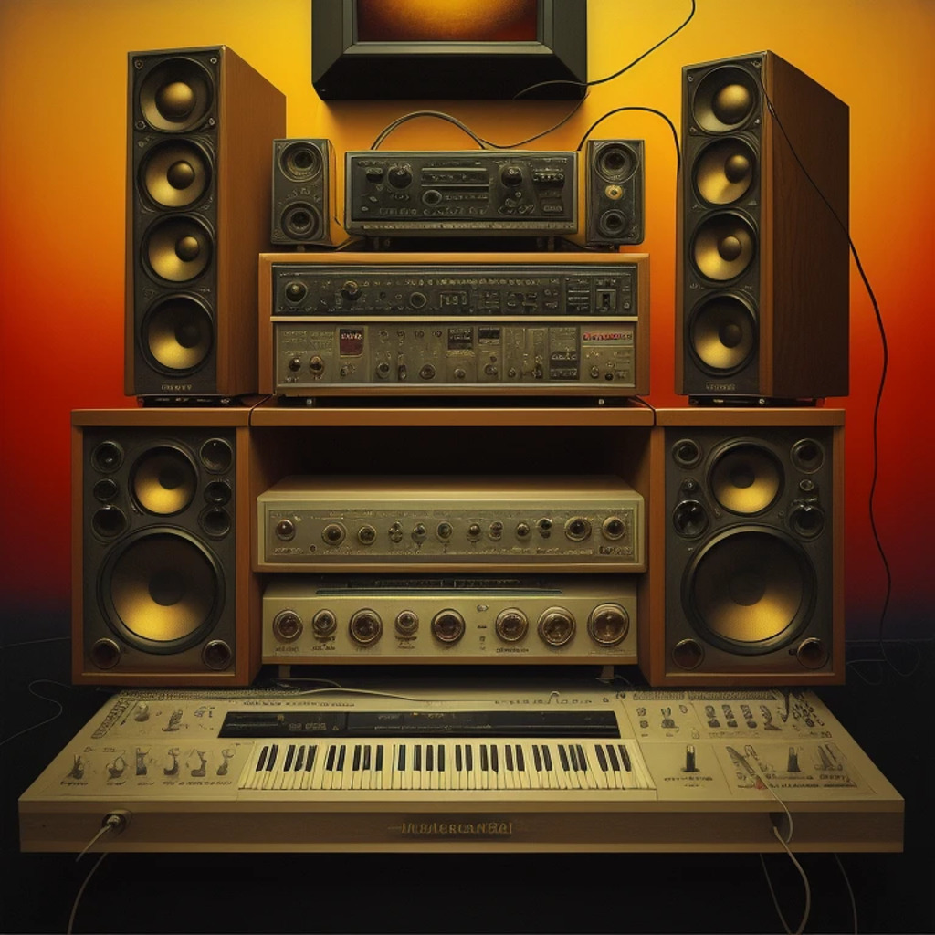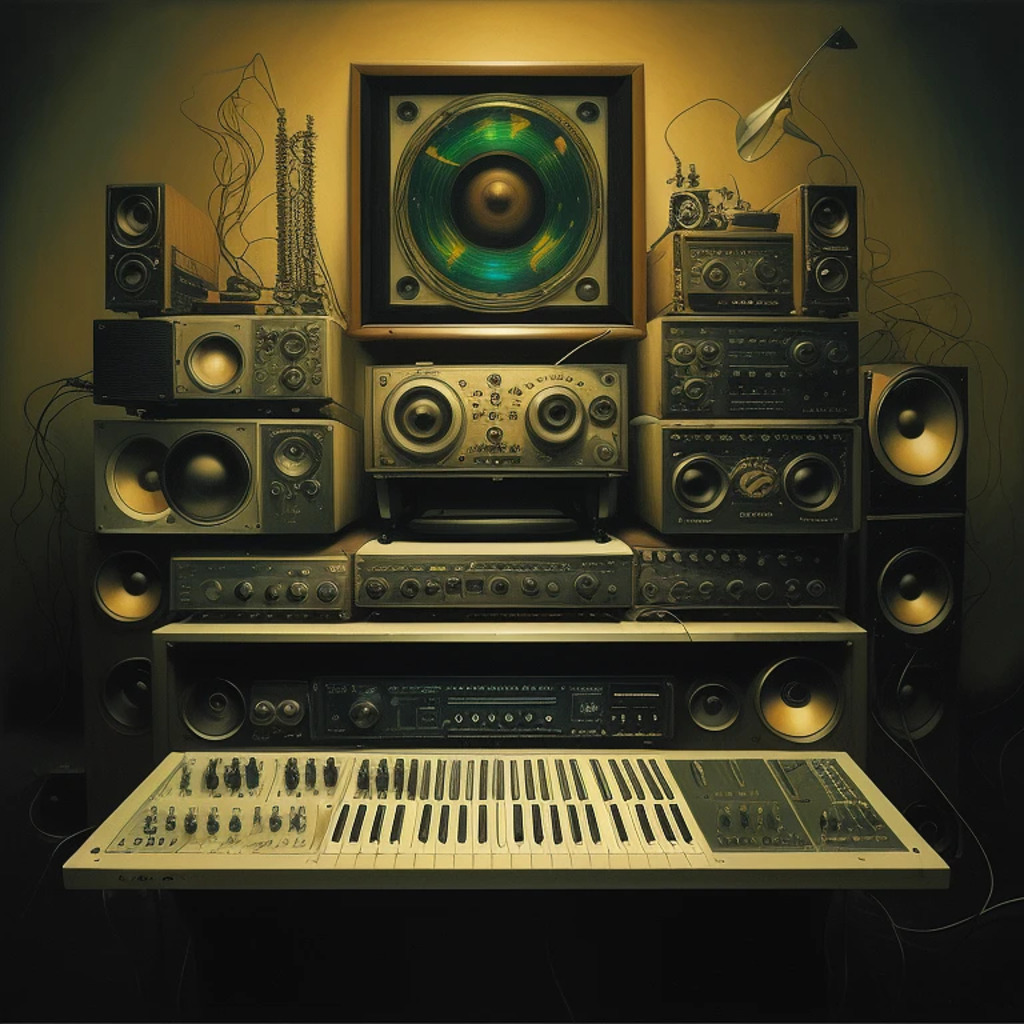 Prompt: music Album cover picture, surreal art, oil picture, speaker, electronic, 1980