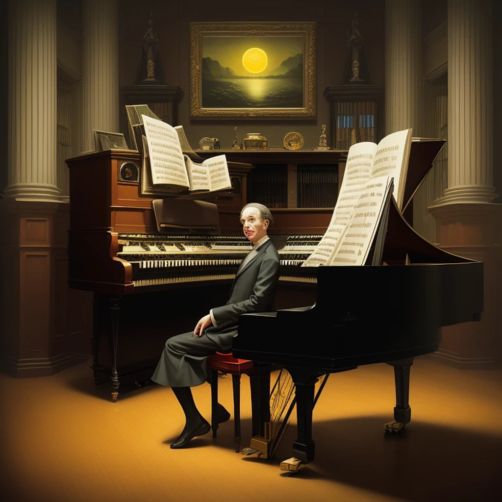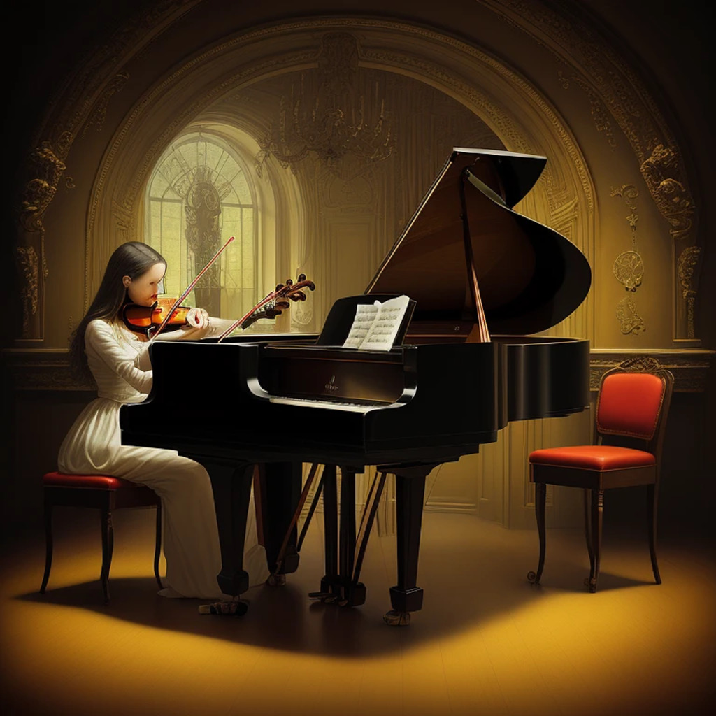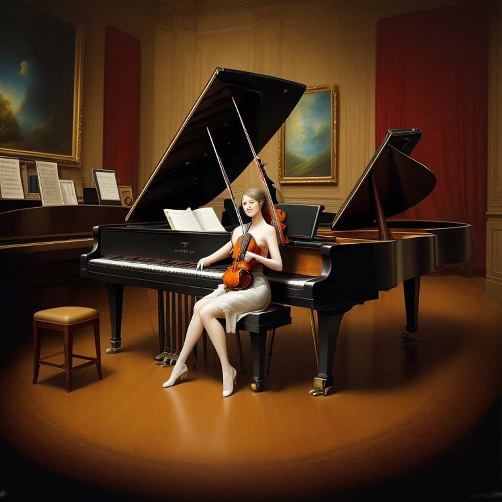 Prompt: music Album cover picture, classical music , surreal art, oil picture, radio, speaker, piano, violin, radio studio