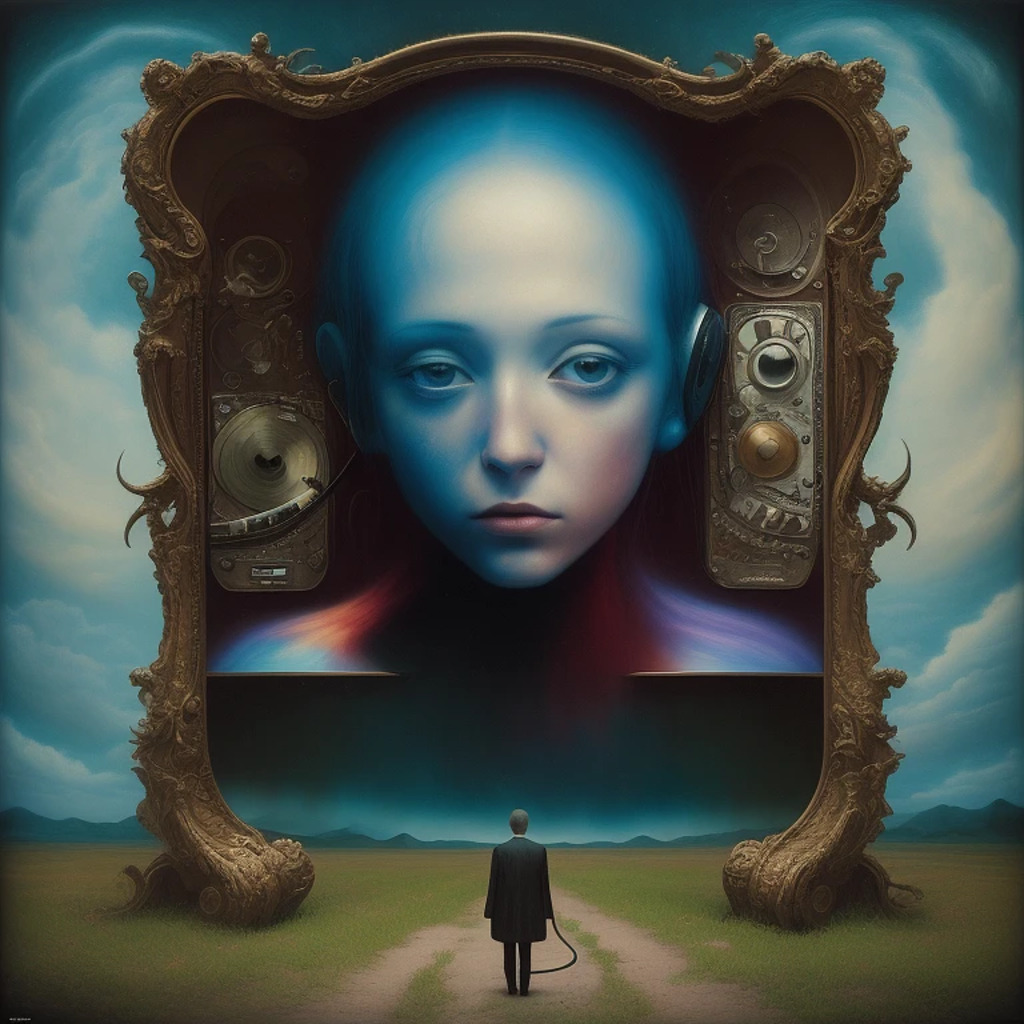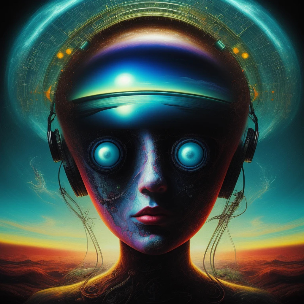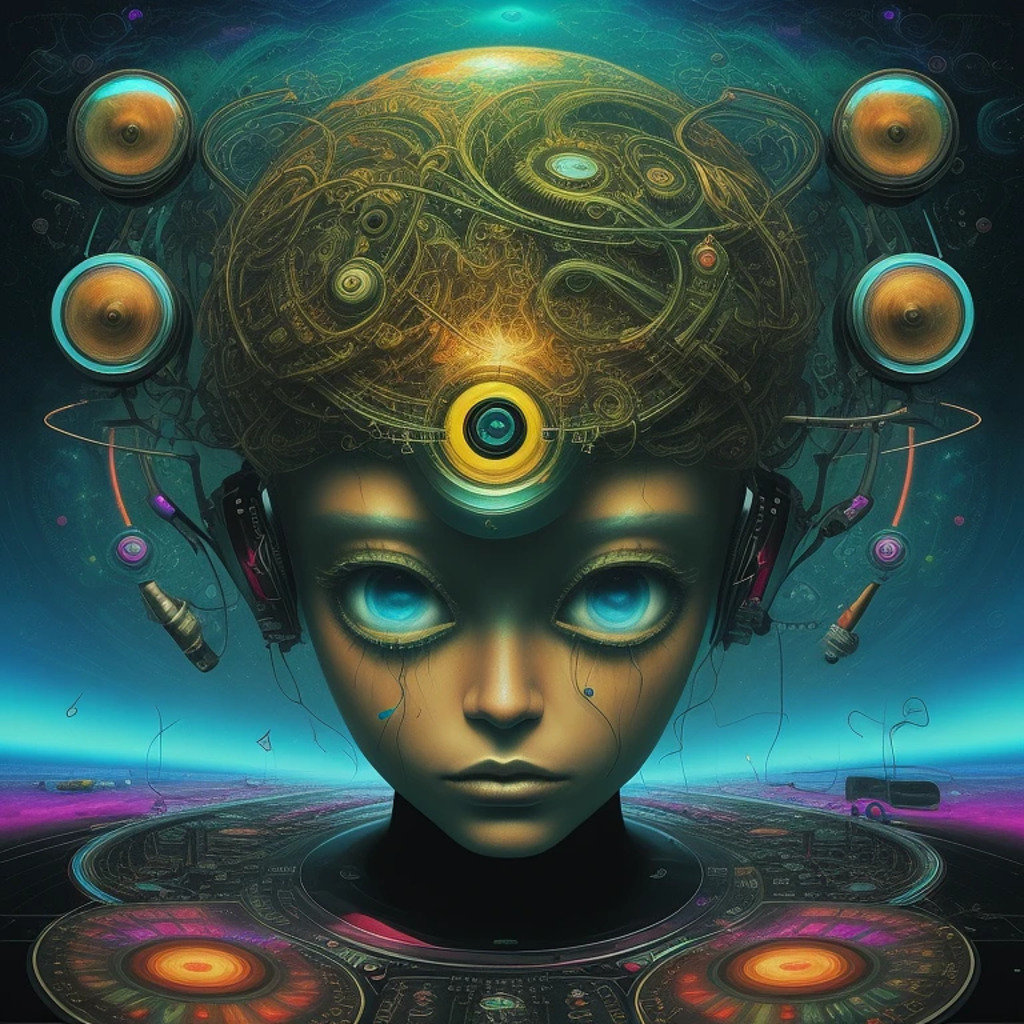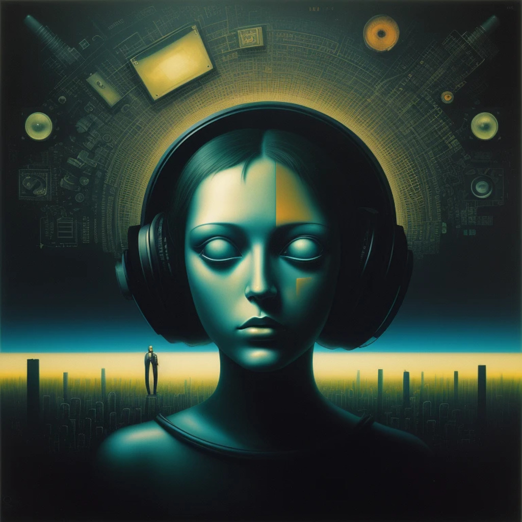 Prompt: music Album cover picture, surreal art, oil picture, electronic music