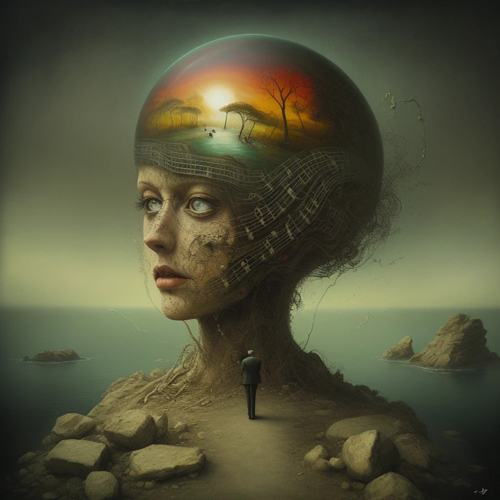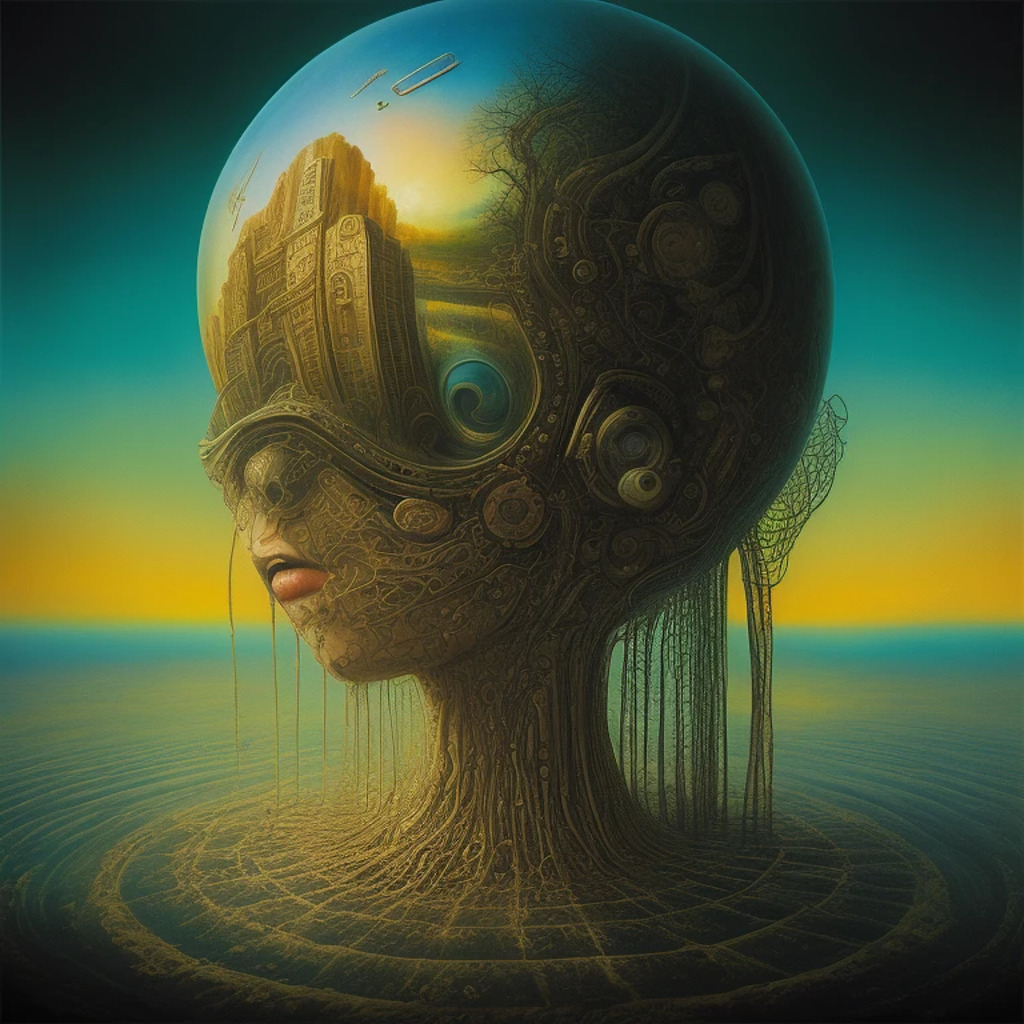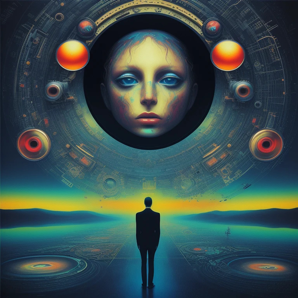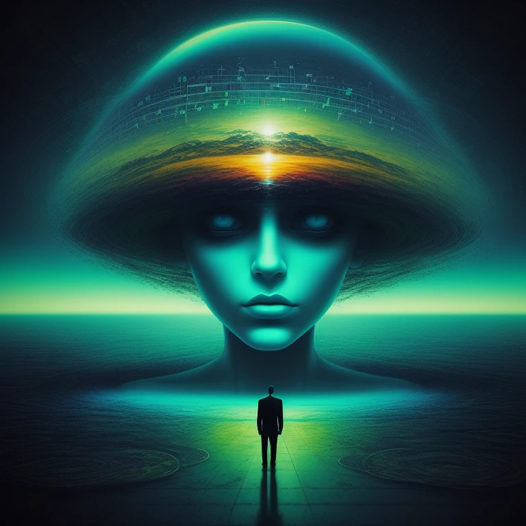 Prompt: music Album cover picture, surreal art, oil picture, electronic music