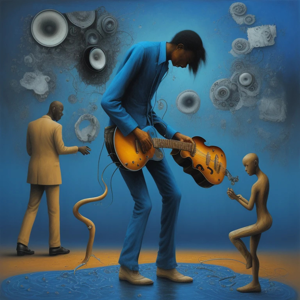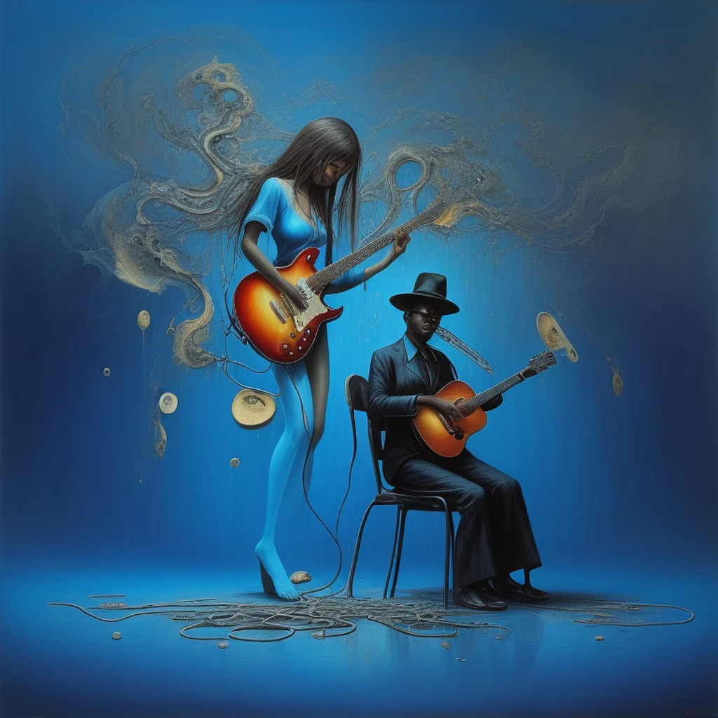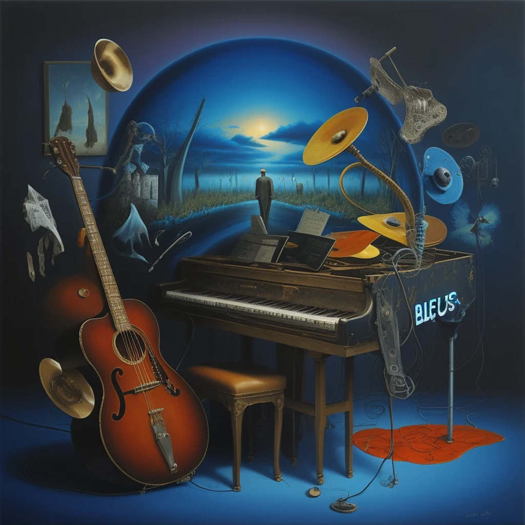 Prompt: music Album cover picture, surreal art oil picture Blues music