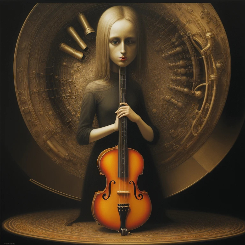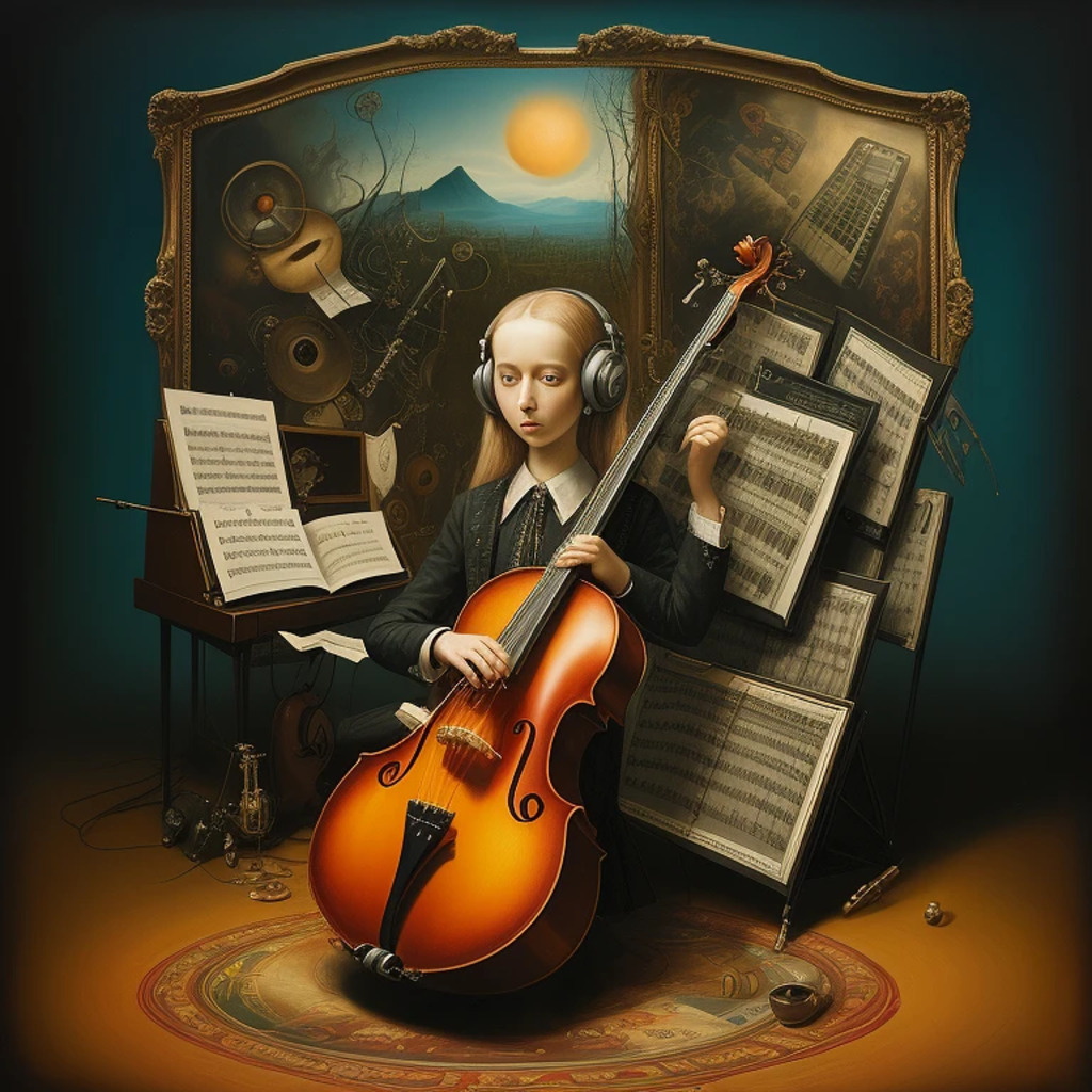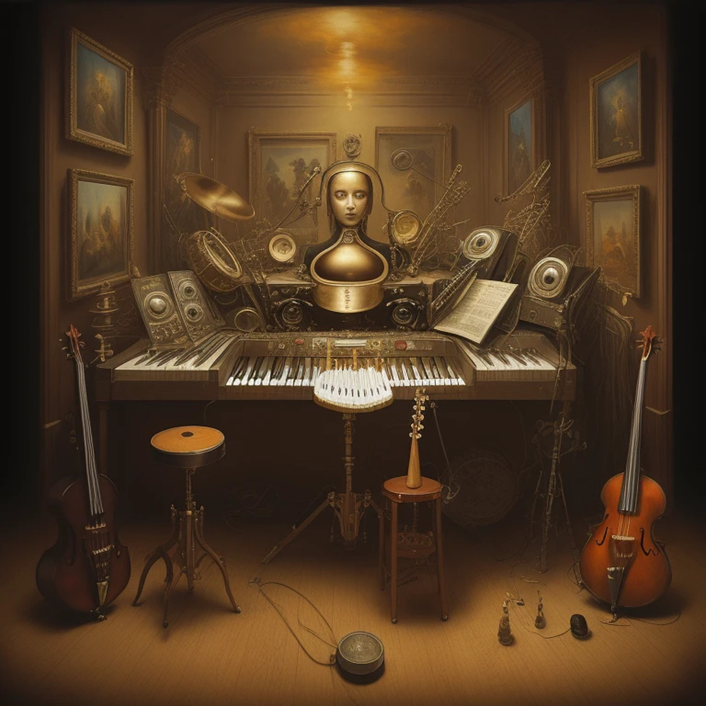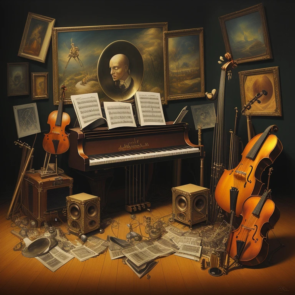 Prompt: music Album cover picture, surreal art, oil picture, music instruments