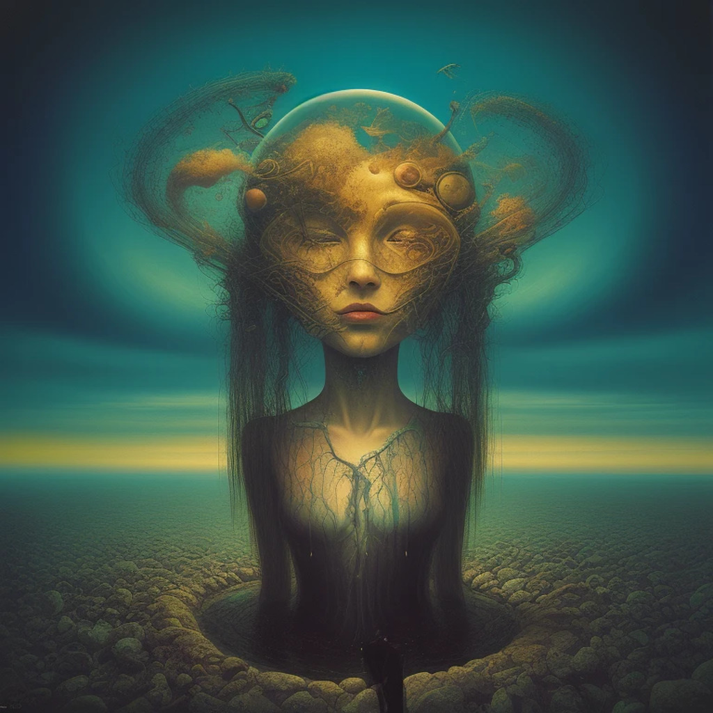 Prompt: music Album cover picture, surreal art, oil picture, goa trance