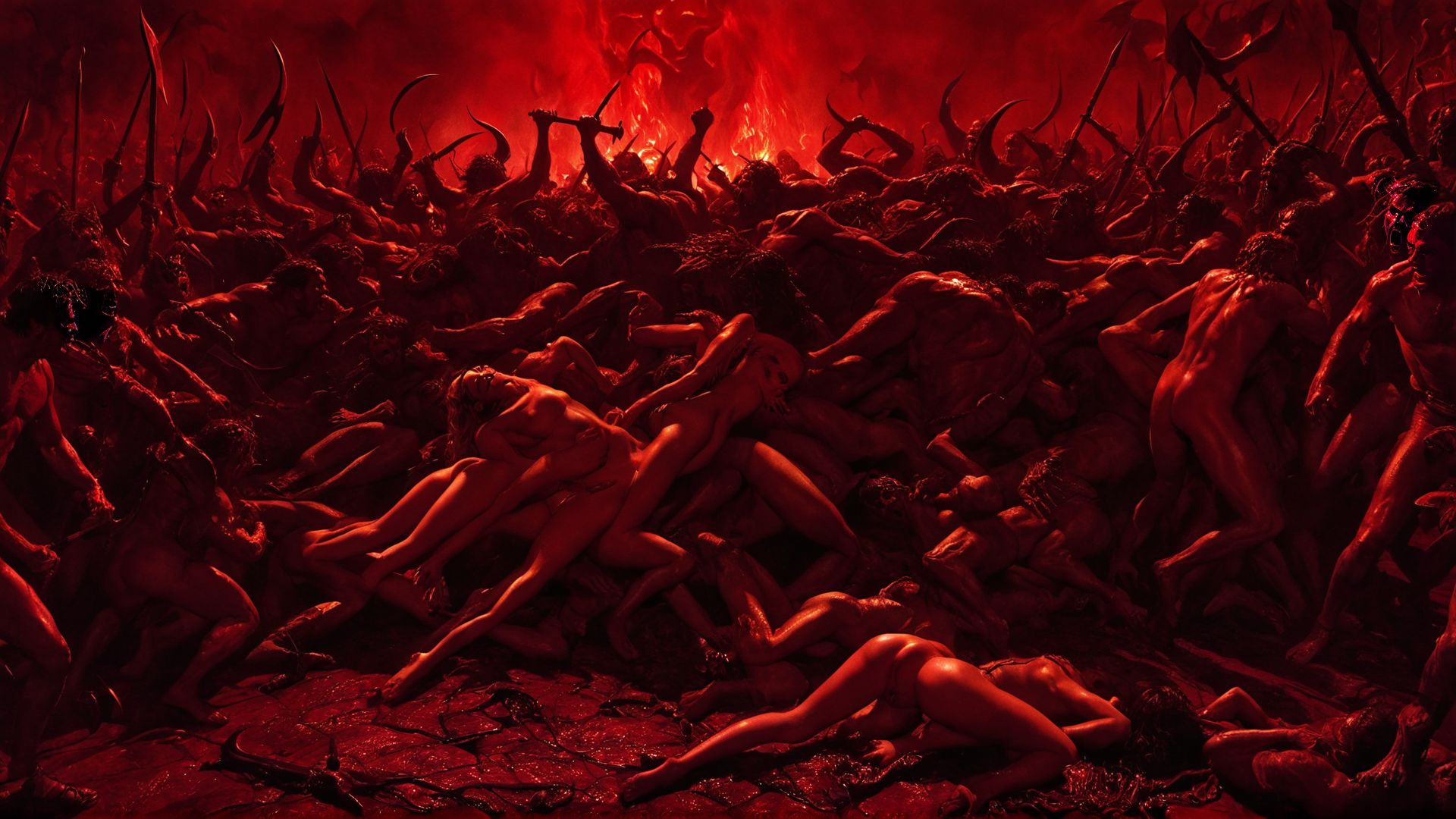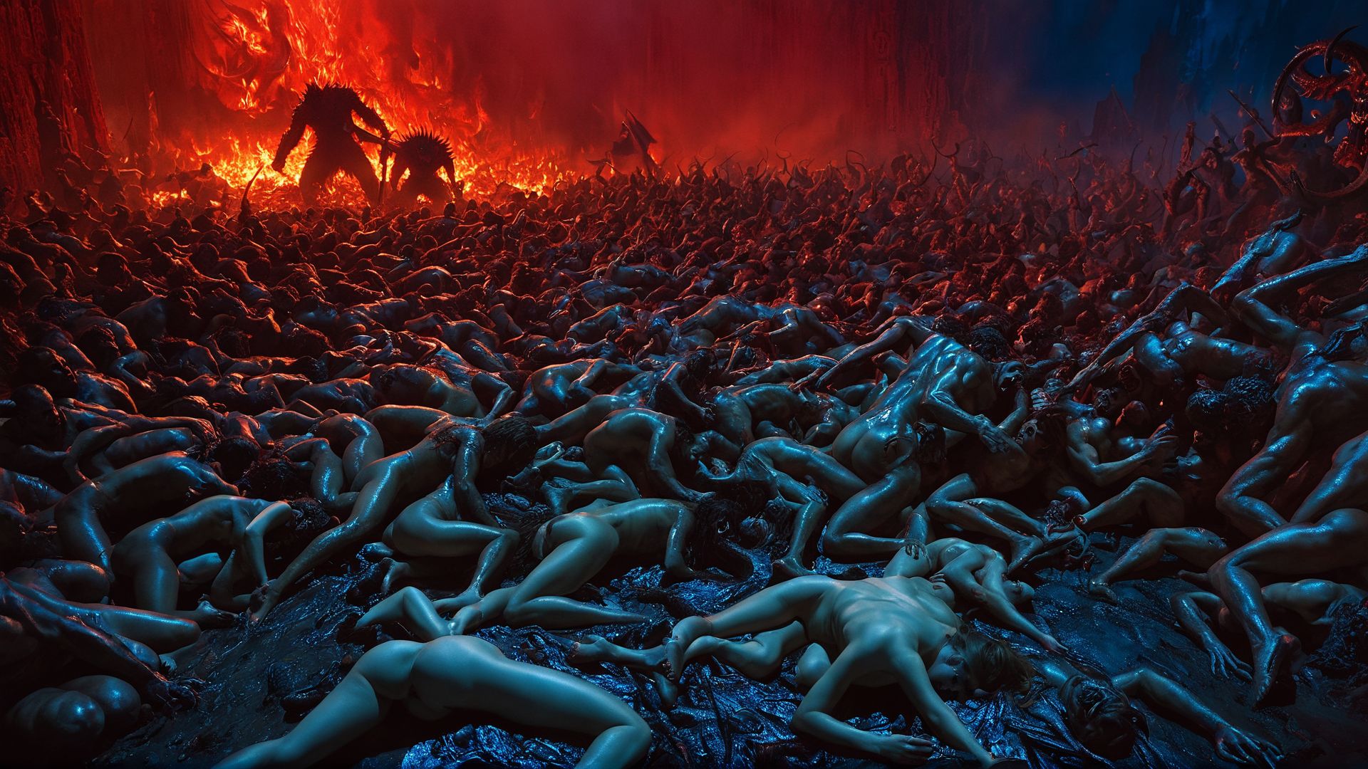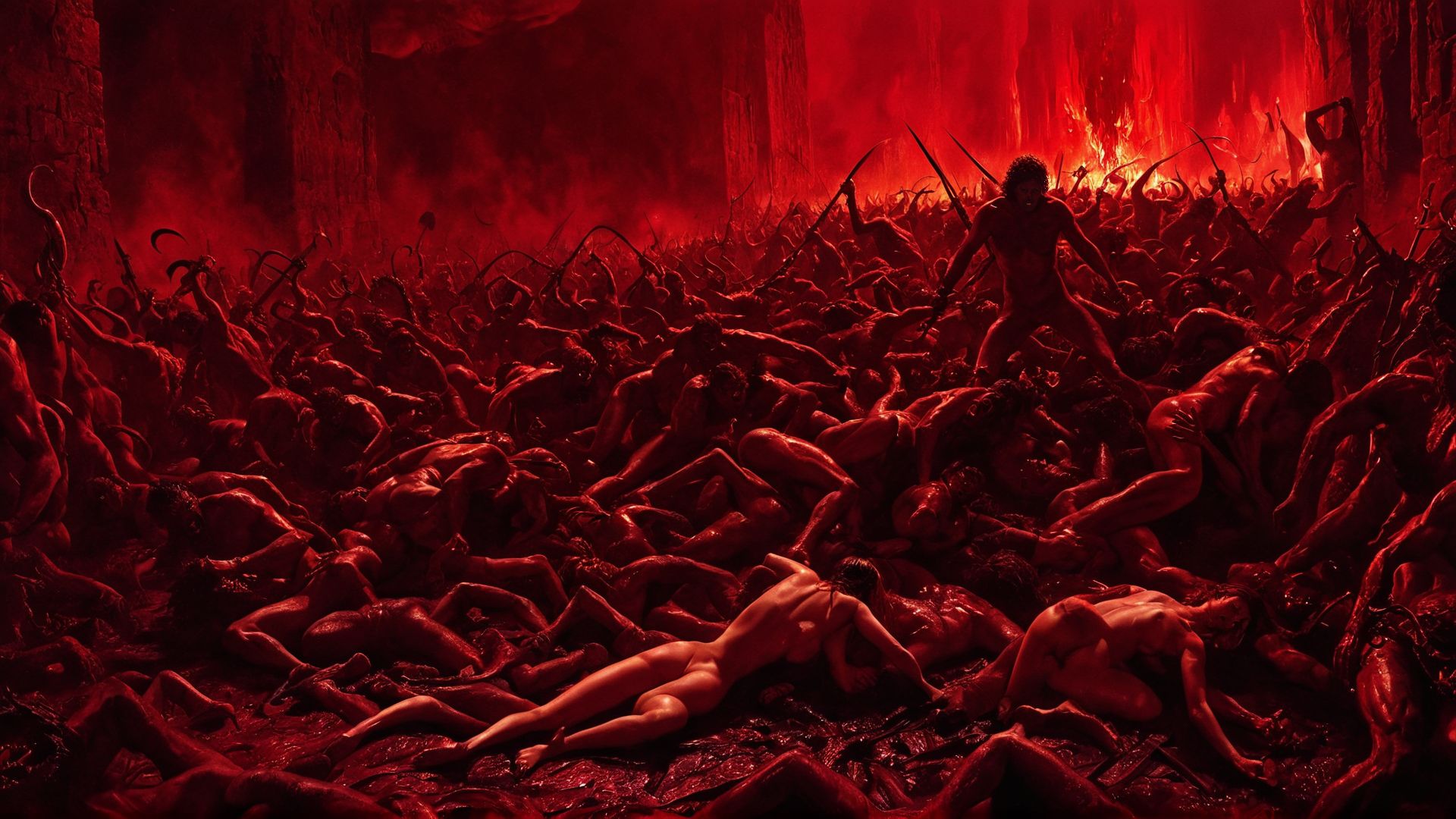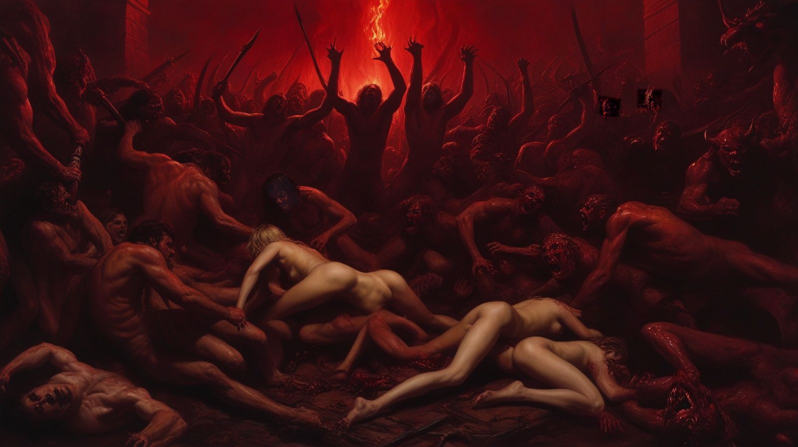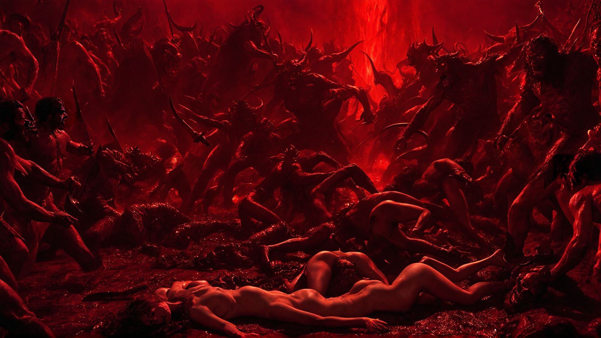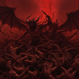 A professional picture of the hell, Many demons and monster were fighting in the hall of hell.