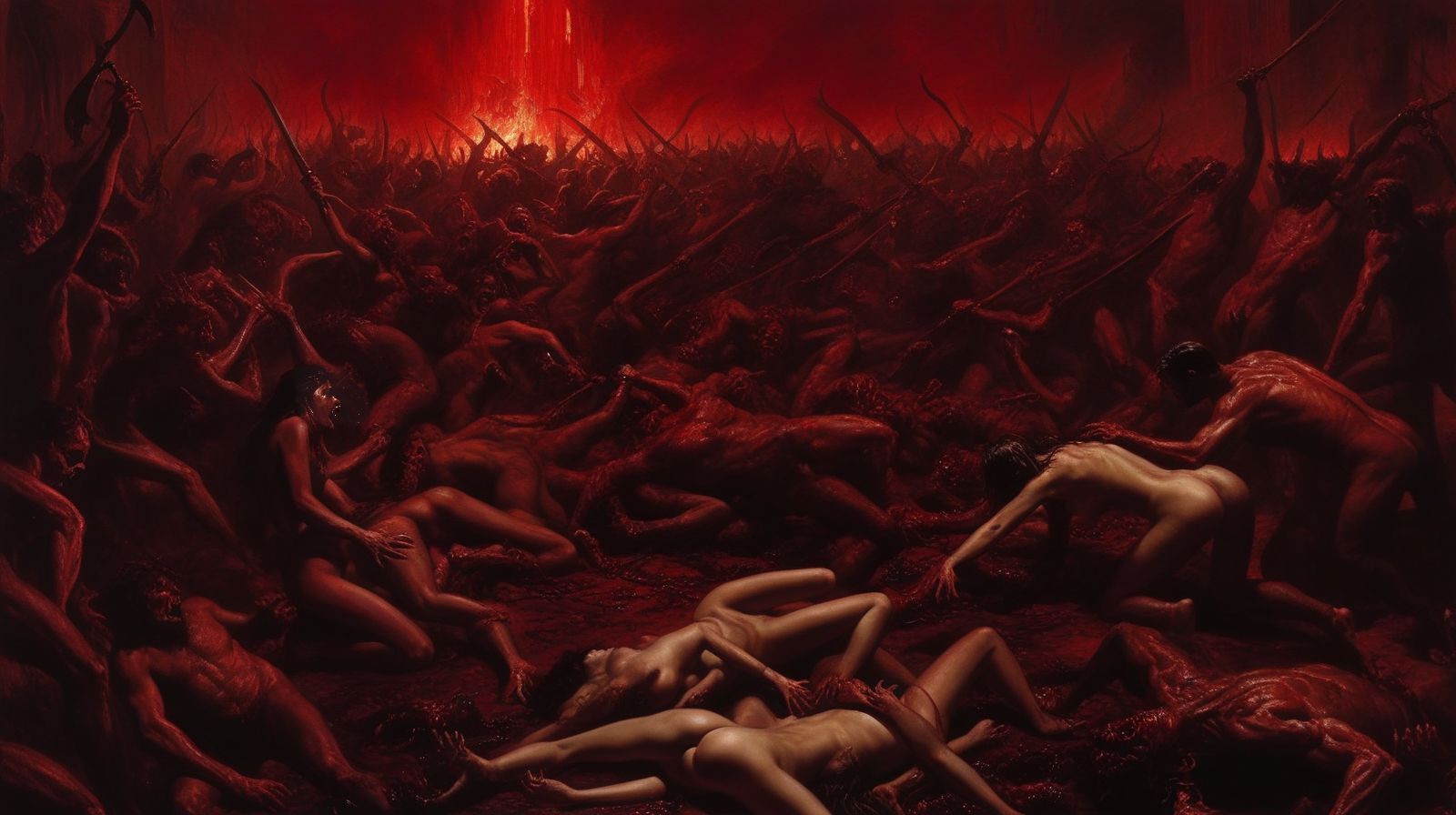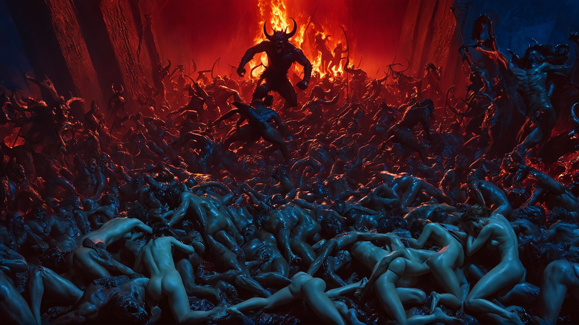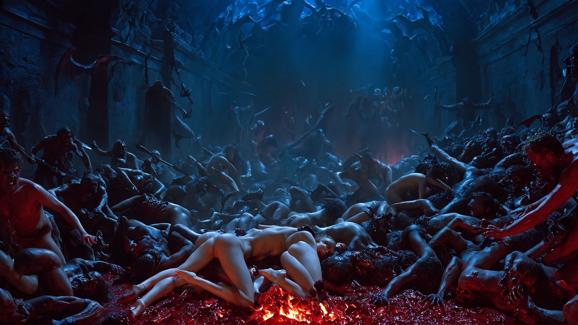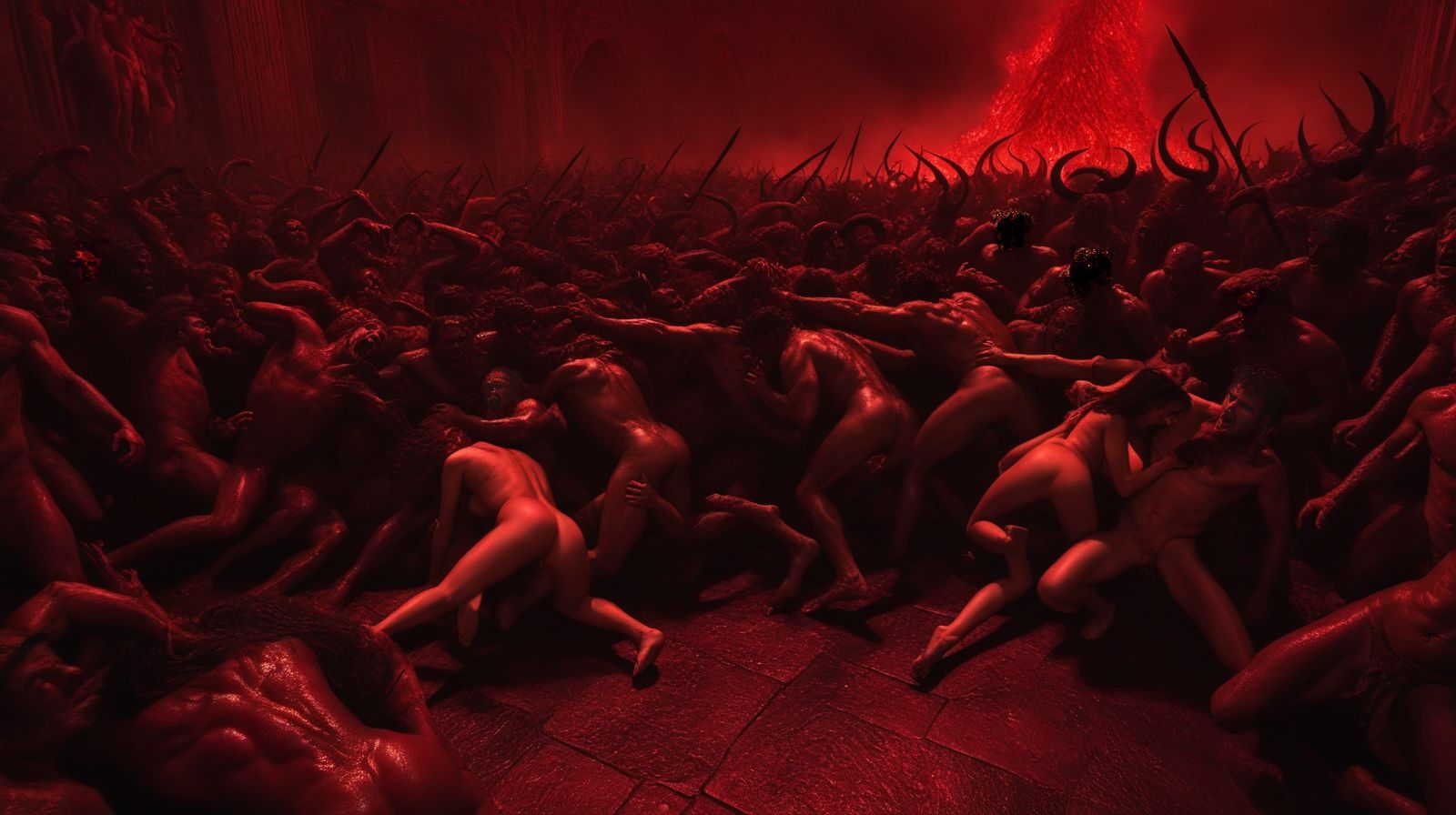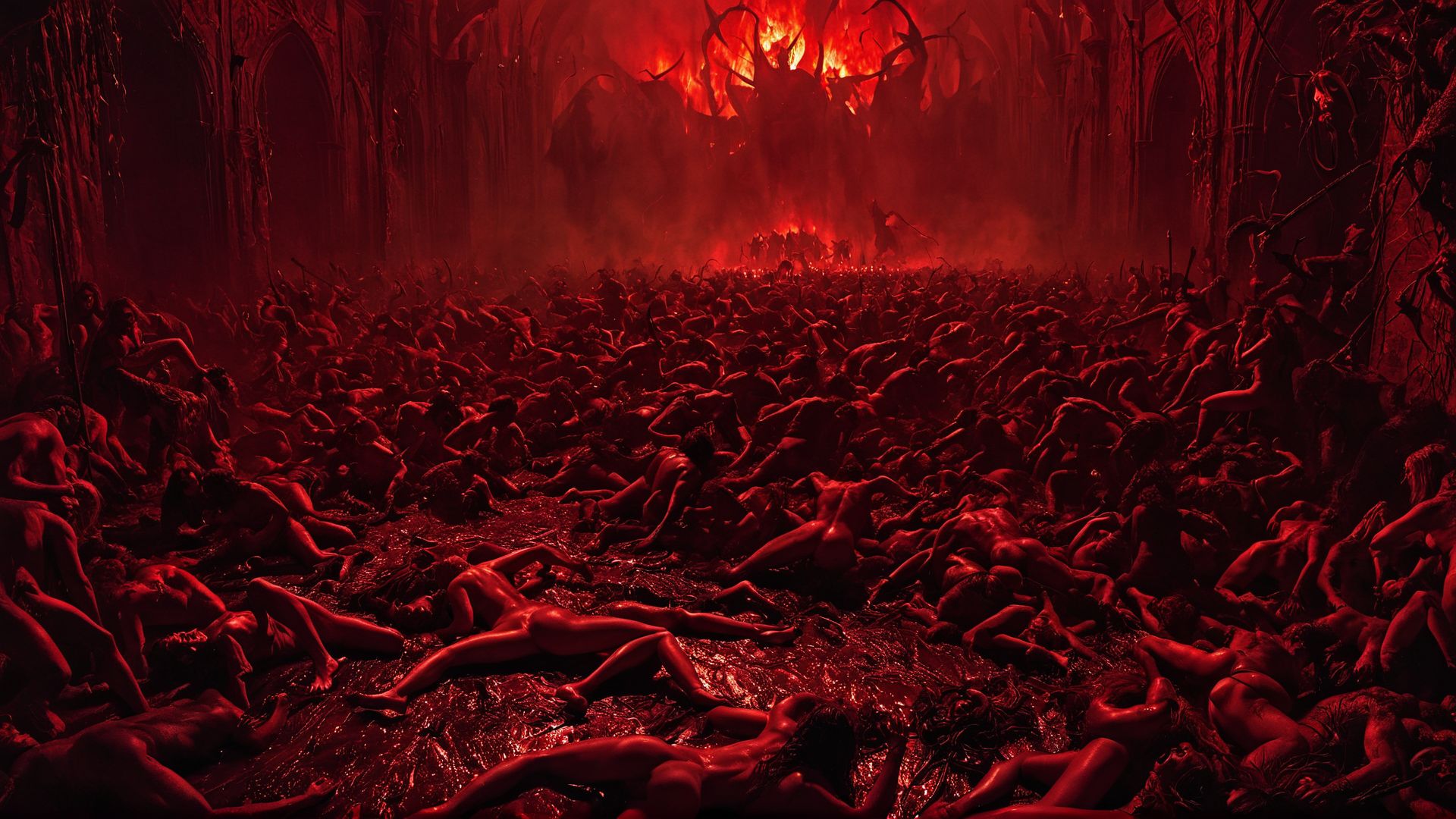 A professional picture of the hell, Many demons and monster were fighting in the hall of hell.