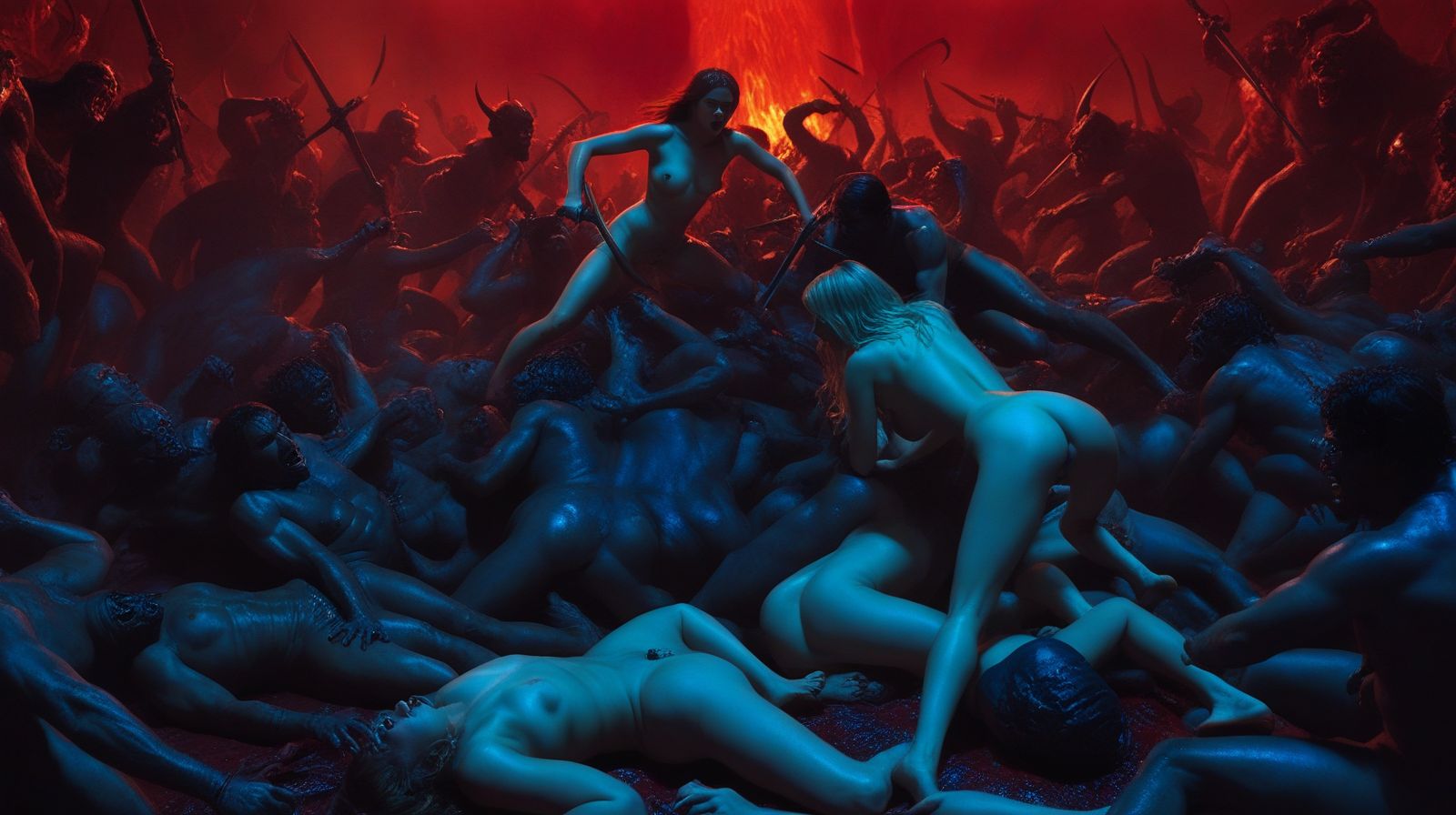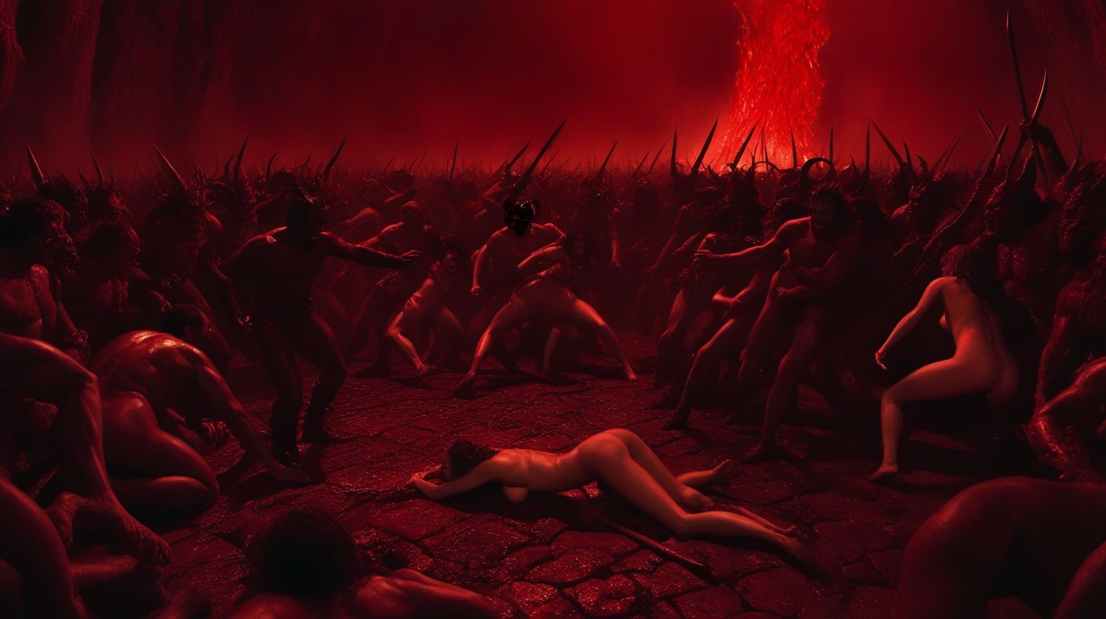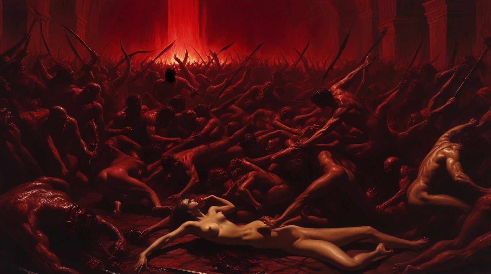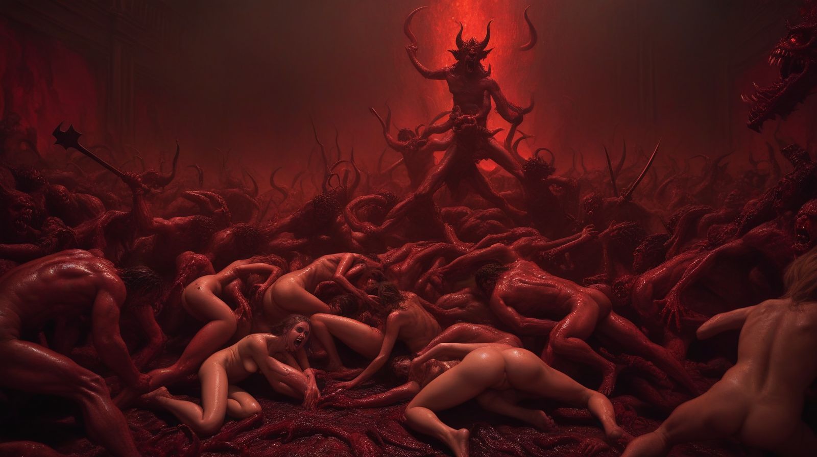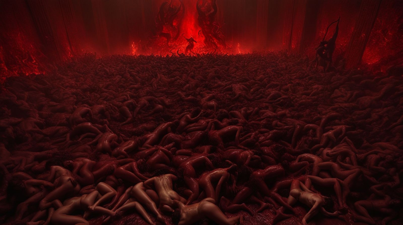 A professional picture of the hell, Many demons and monster were fighting in the hall of hell.