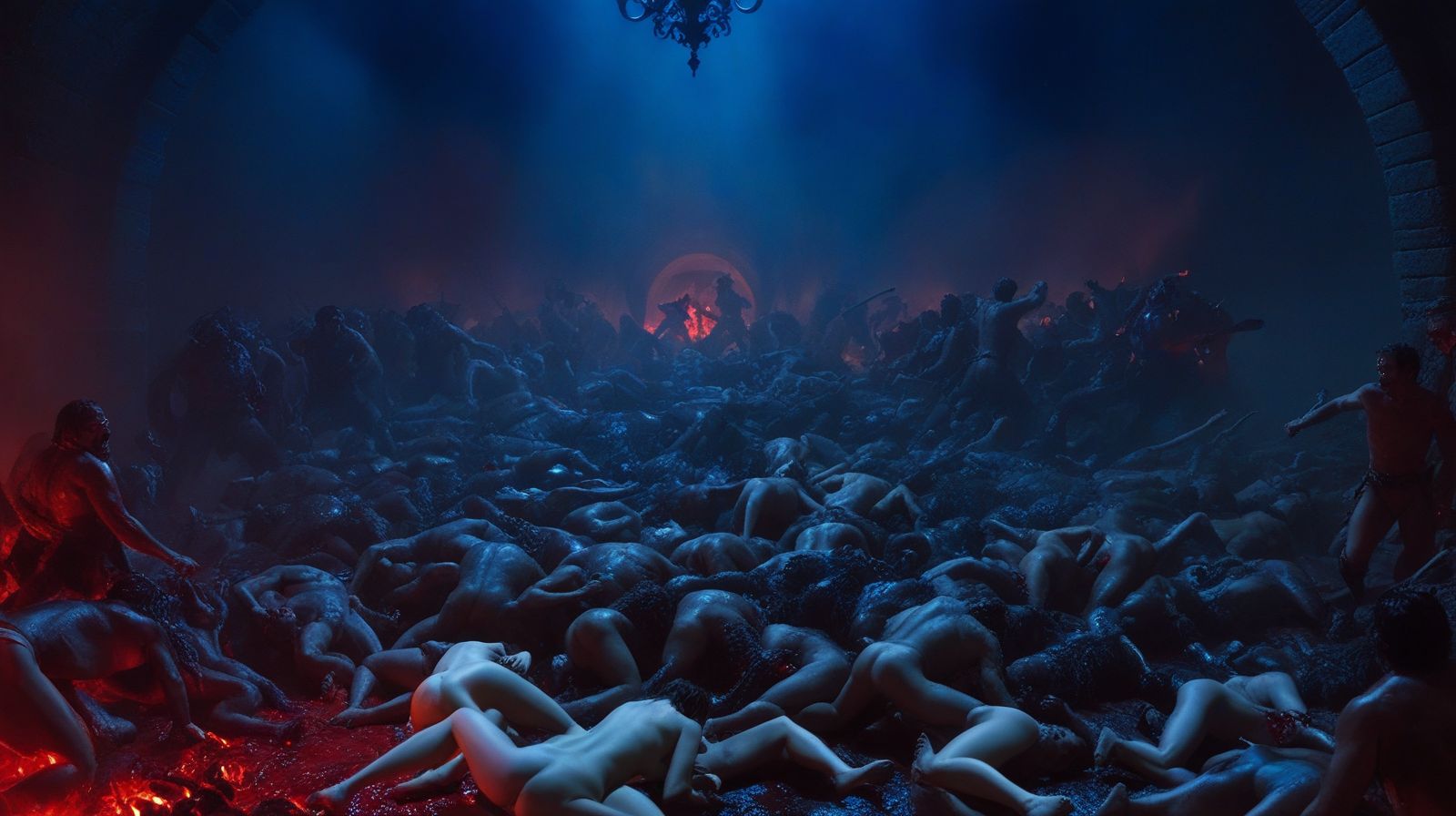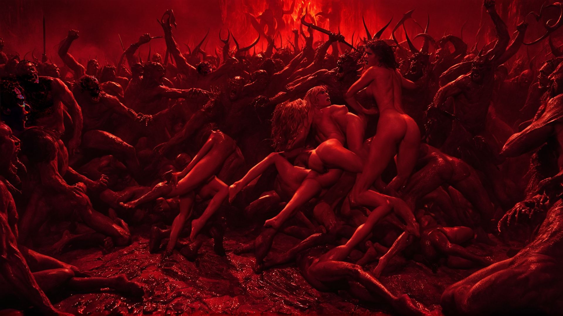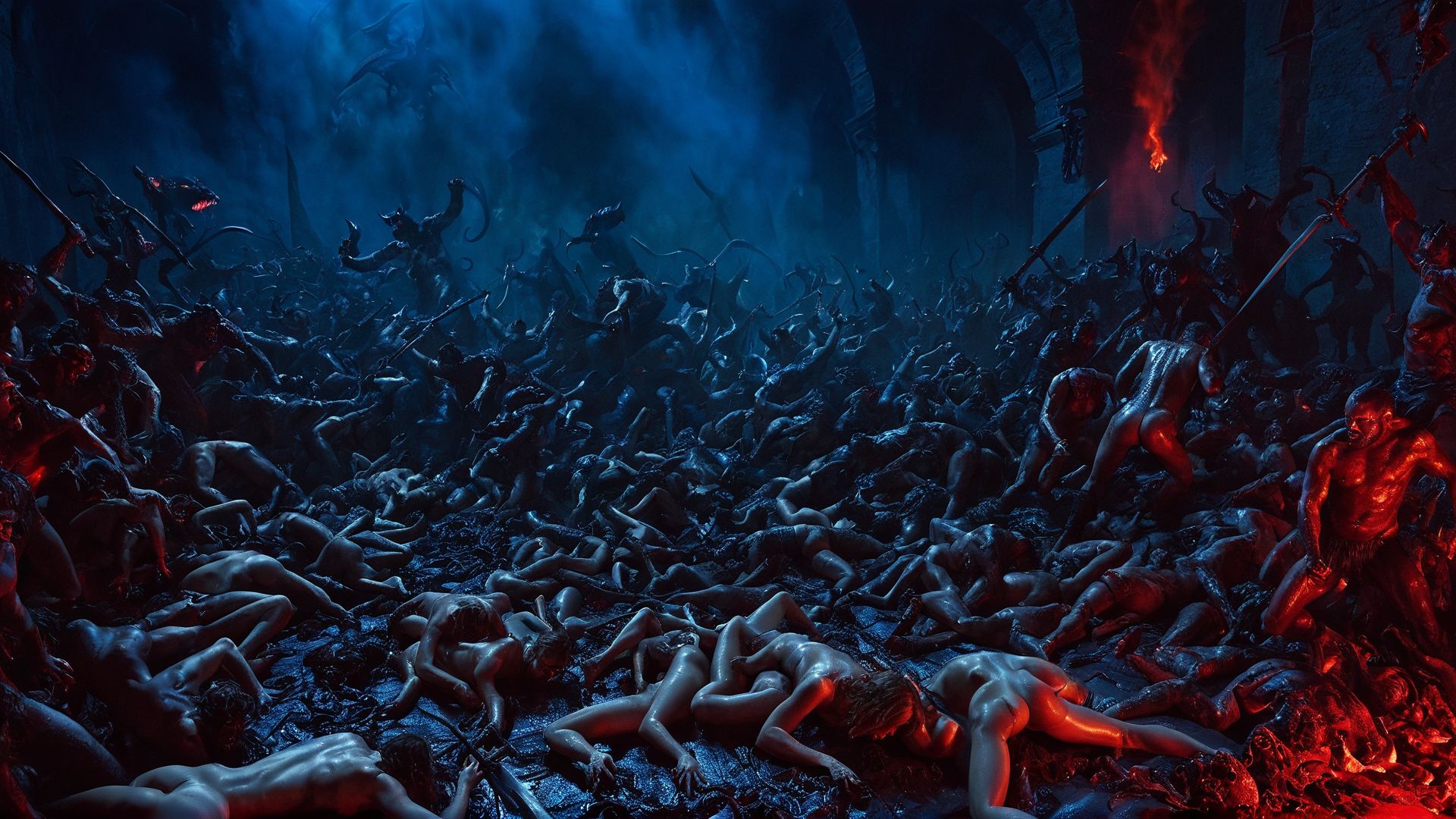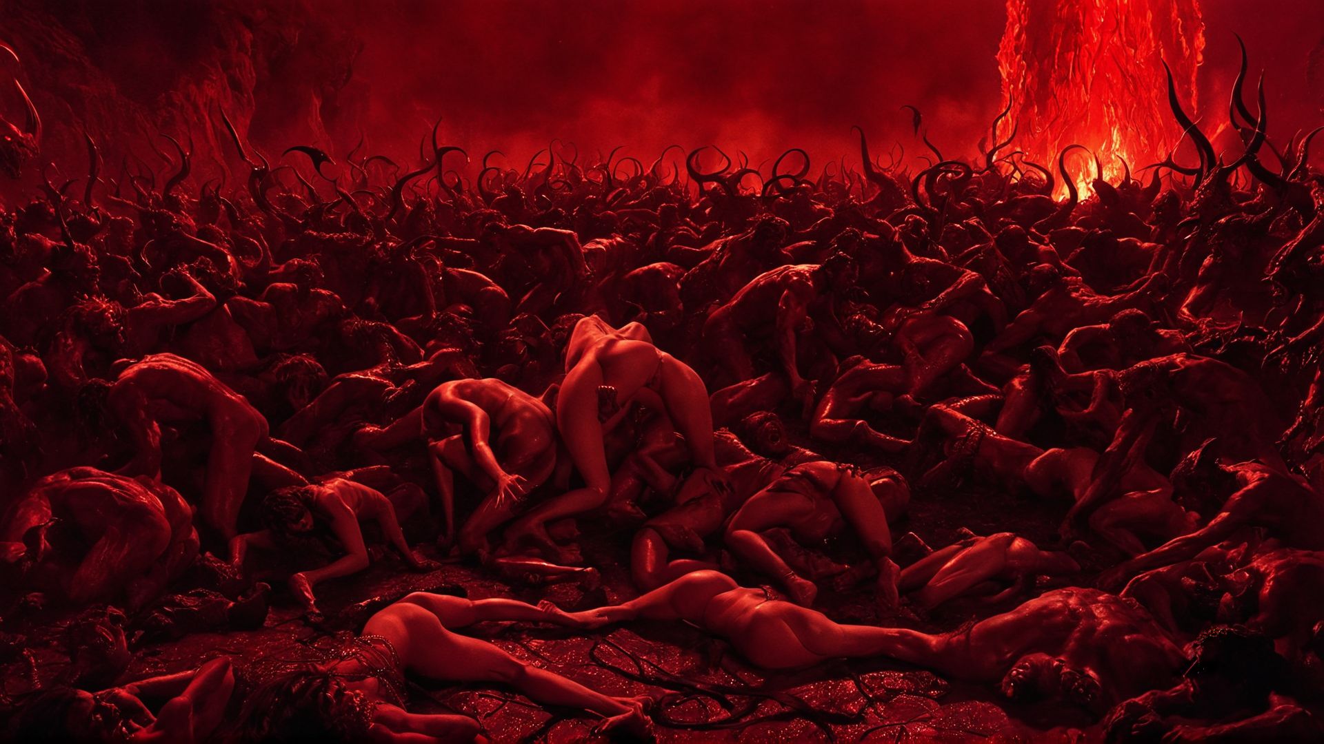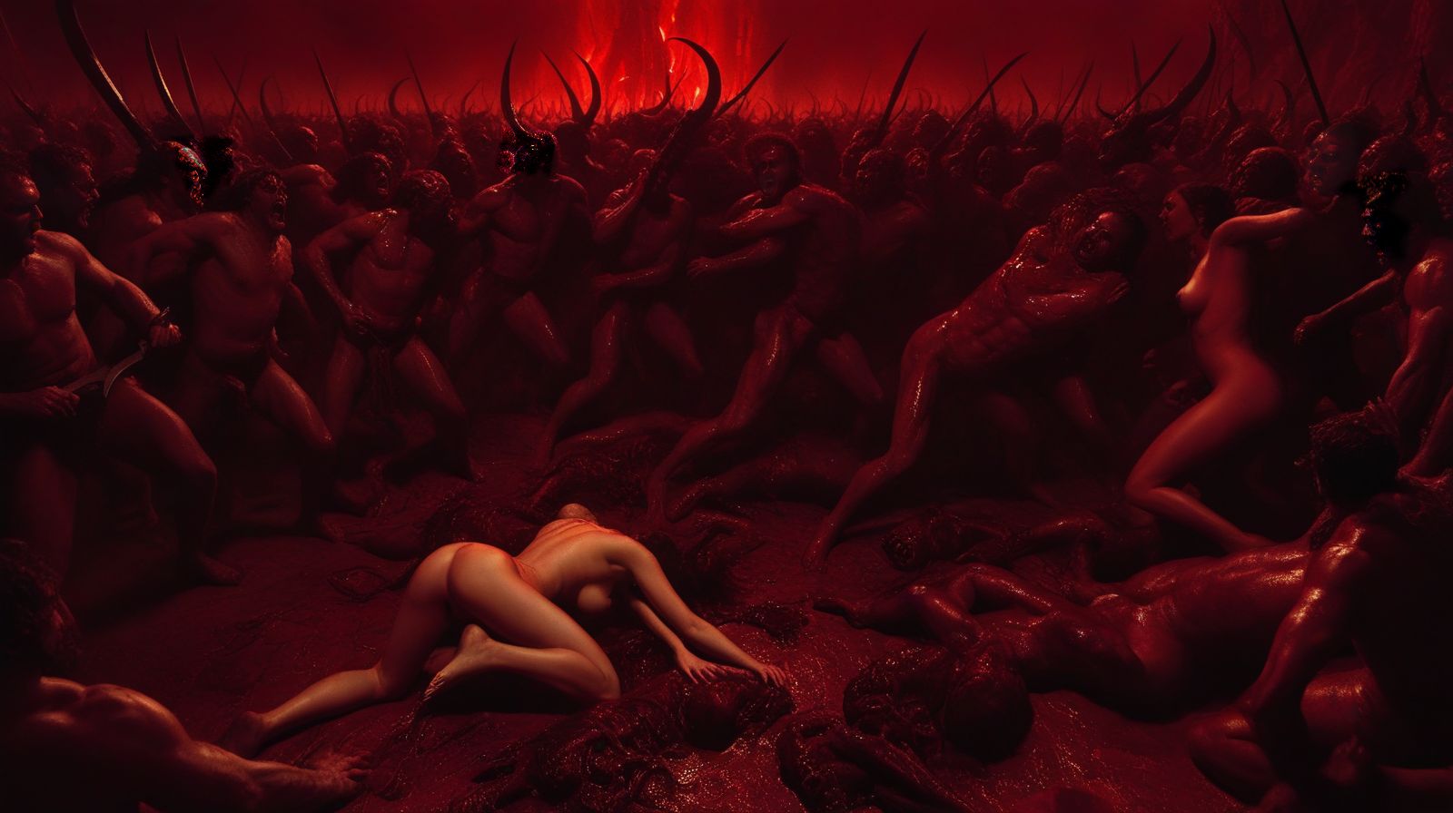 A professional picture of the hell, Many demons and monster were fighting in the hall of hell.