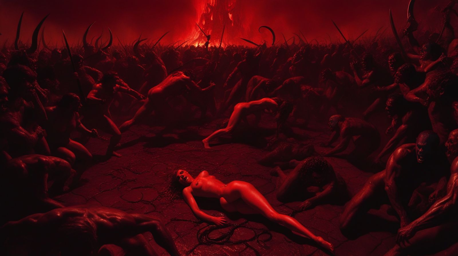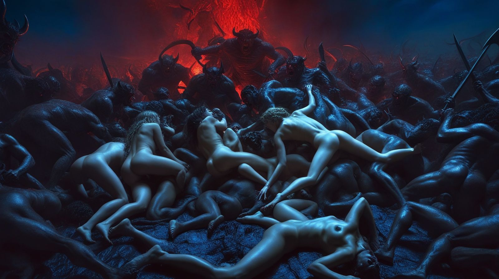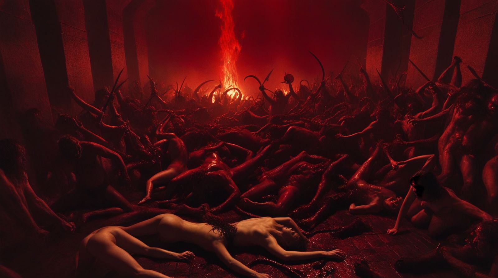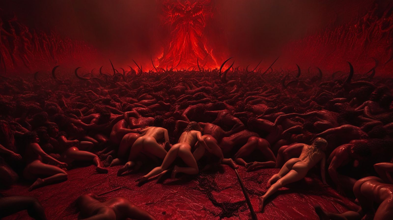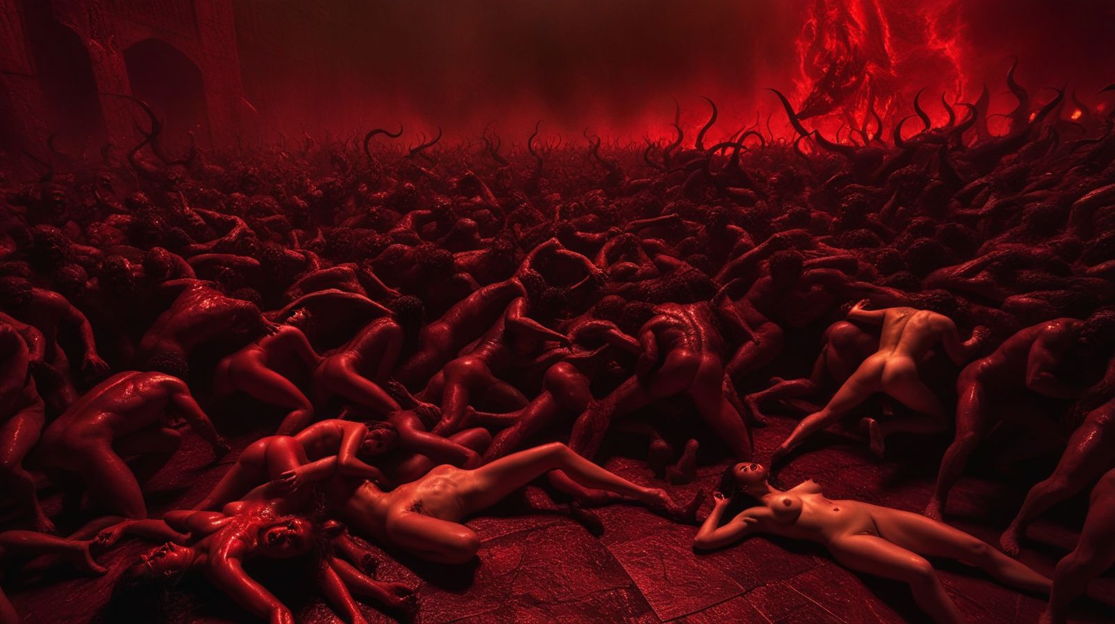 A professional picture of the hell, Many demons and monster were fighting in the hall of hell.