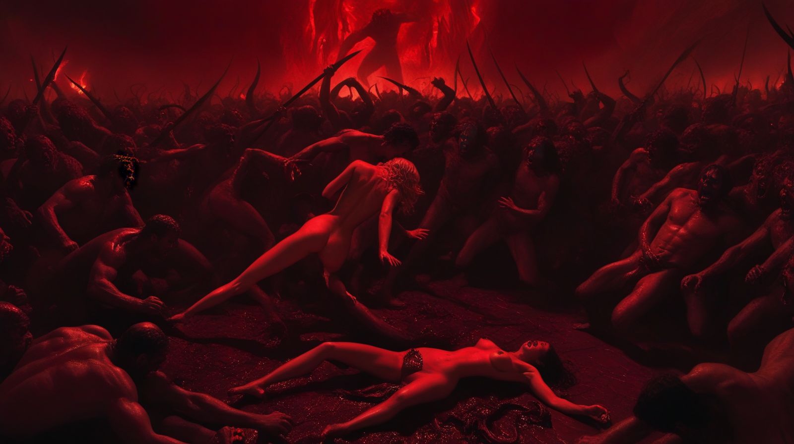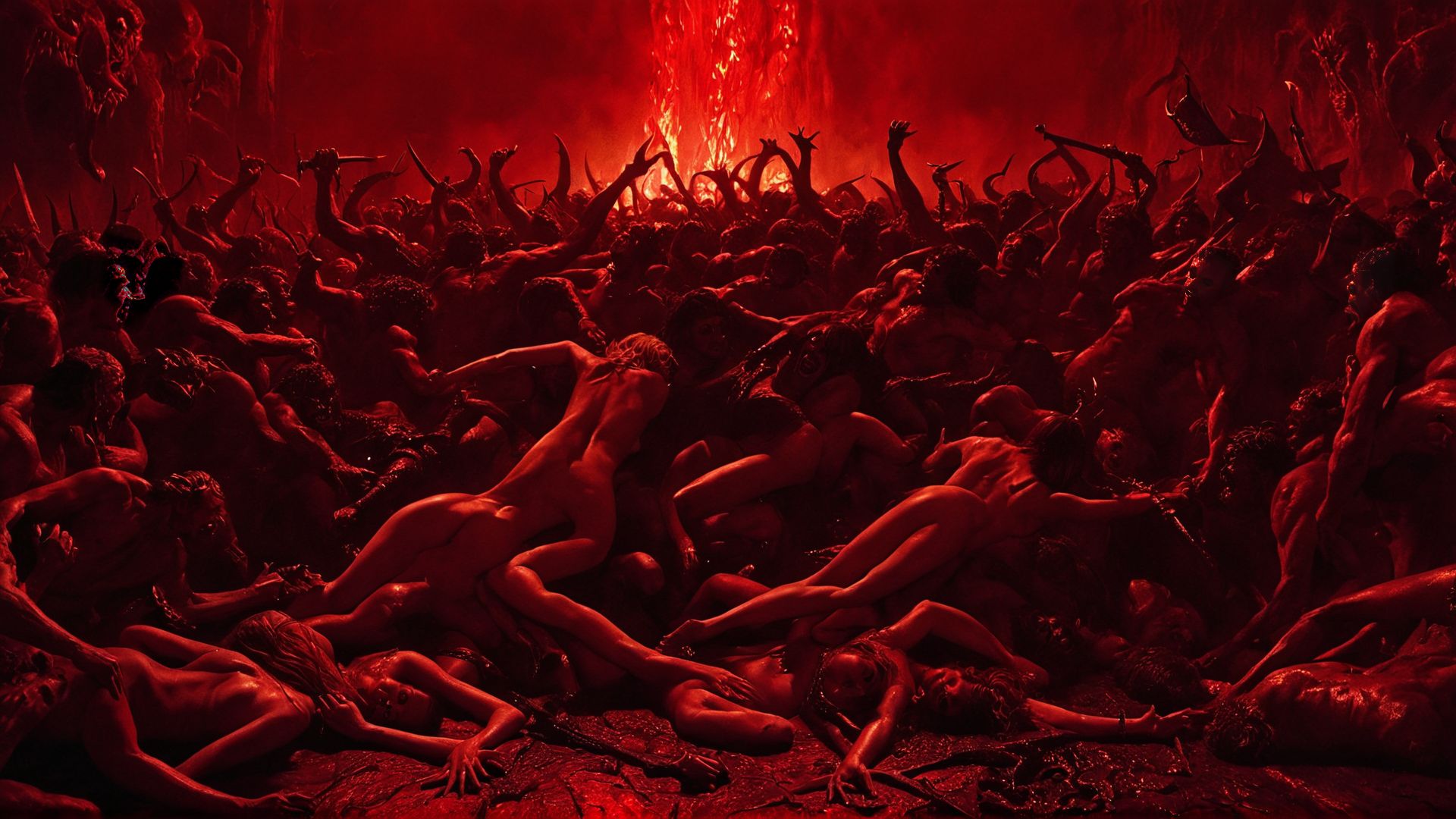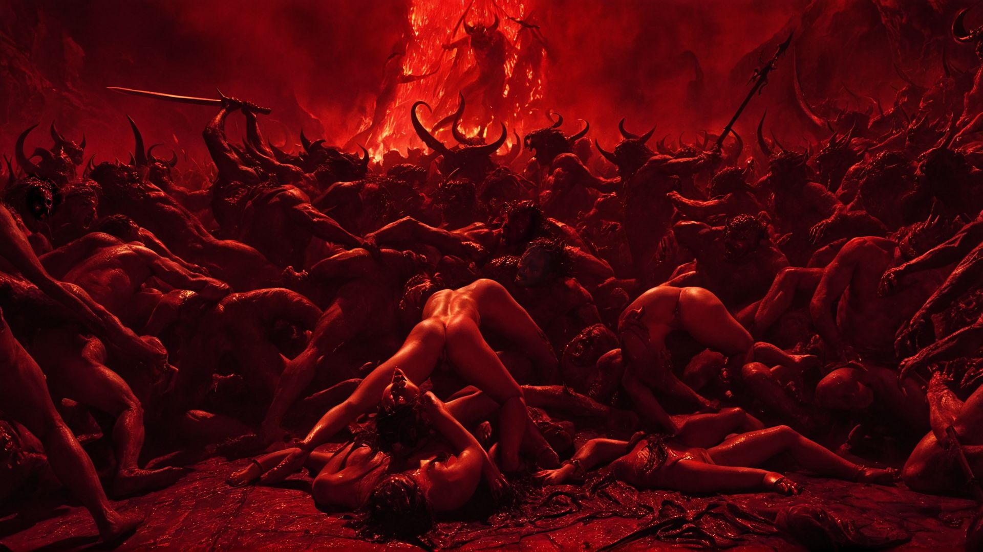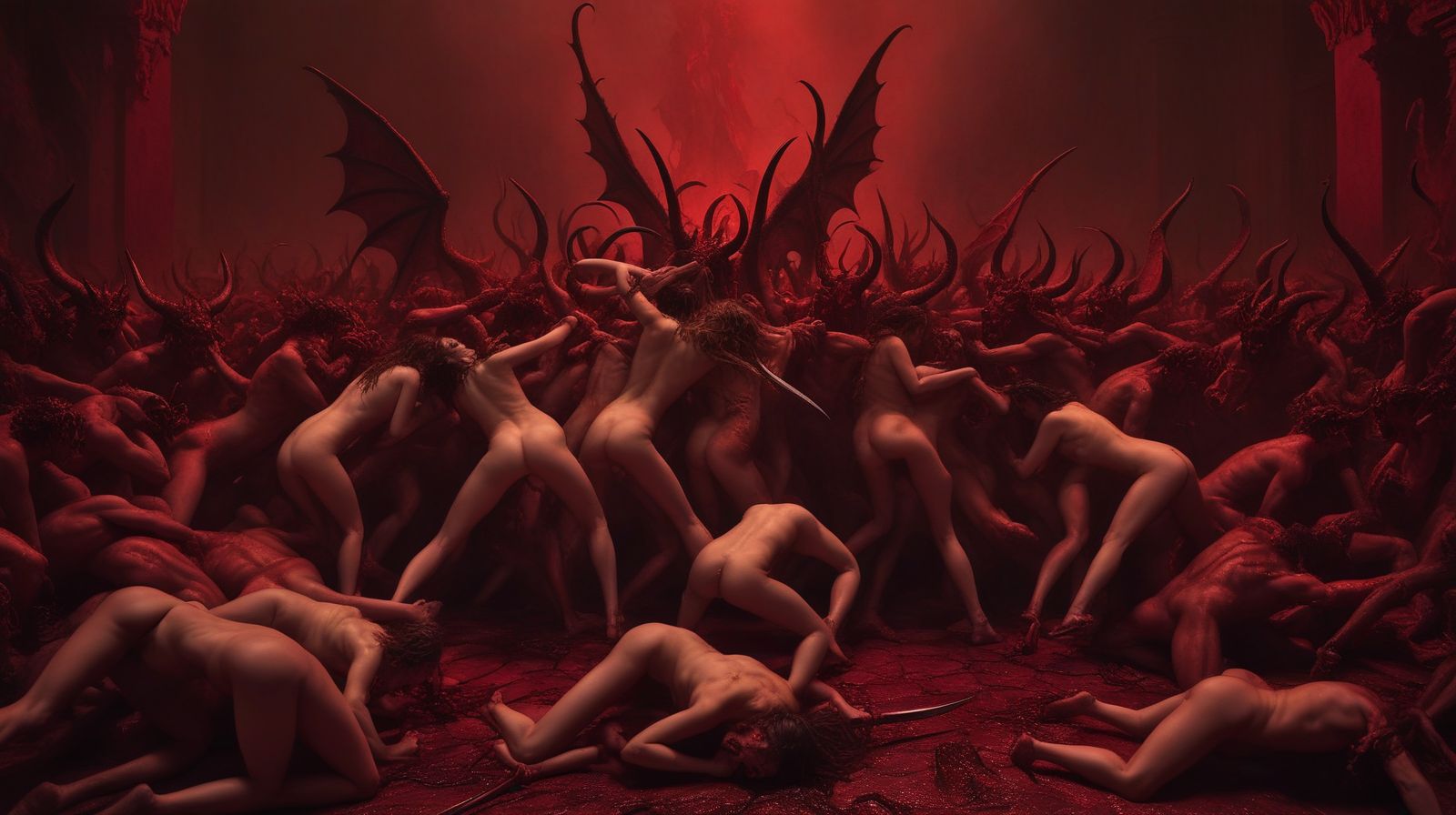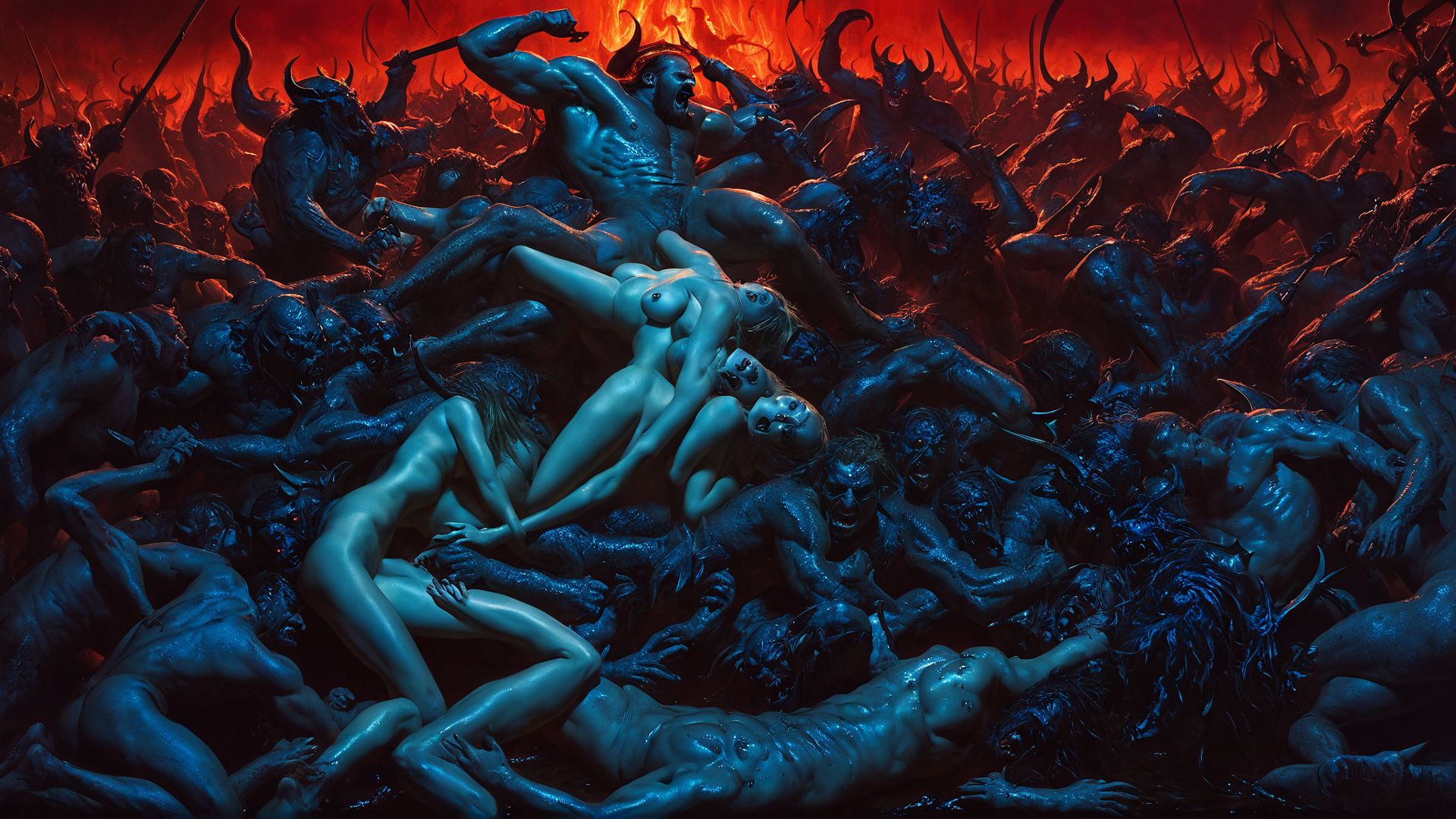 A professional picture of the hell, Many demons and monster were fighting in the hall of hell.