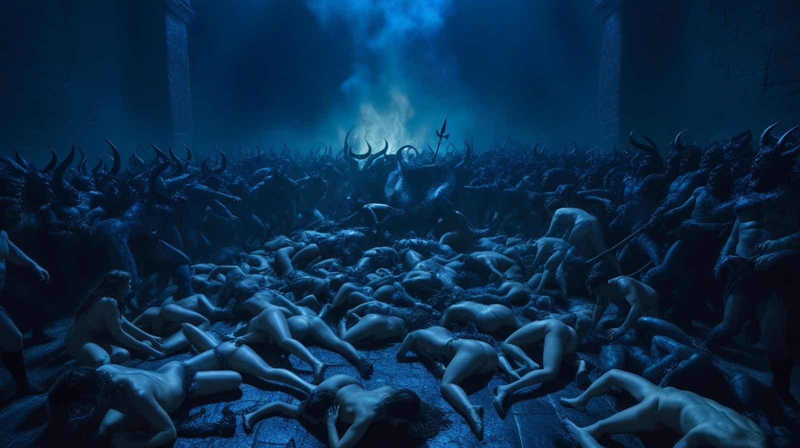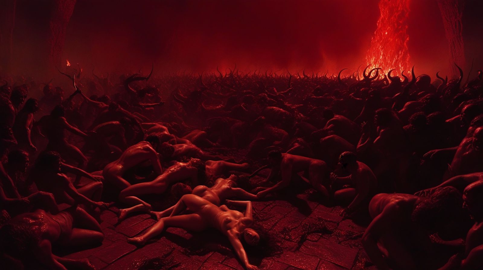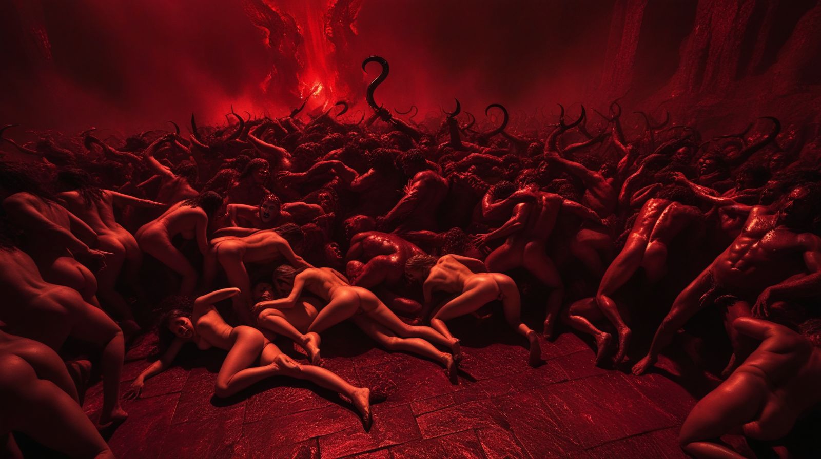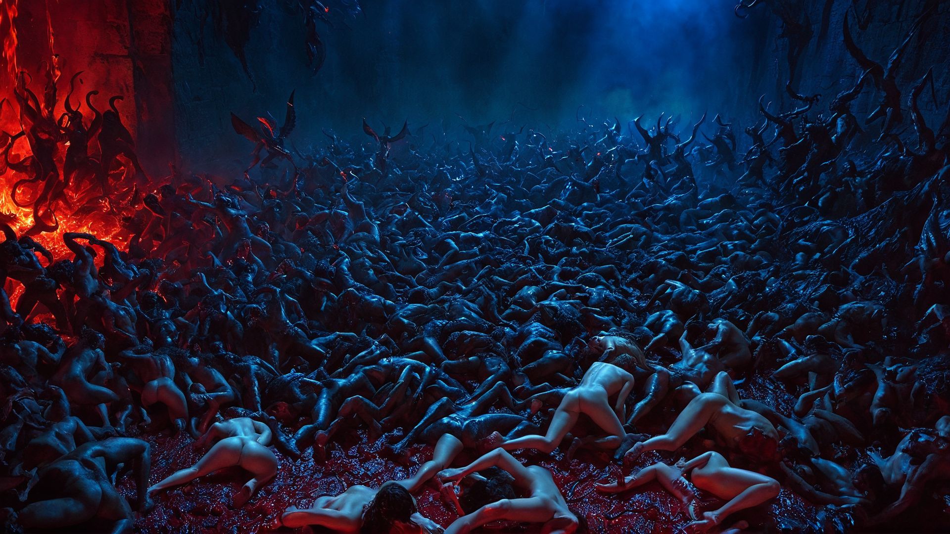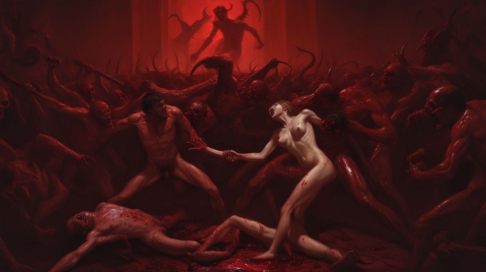 A professional picture of the hell, Many demons and monster were fighting in the hall of hell.