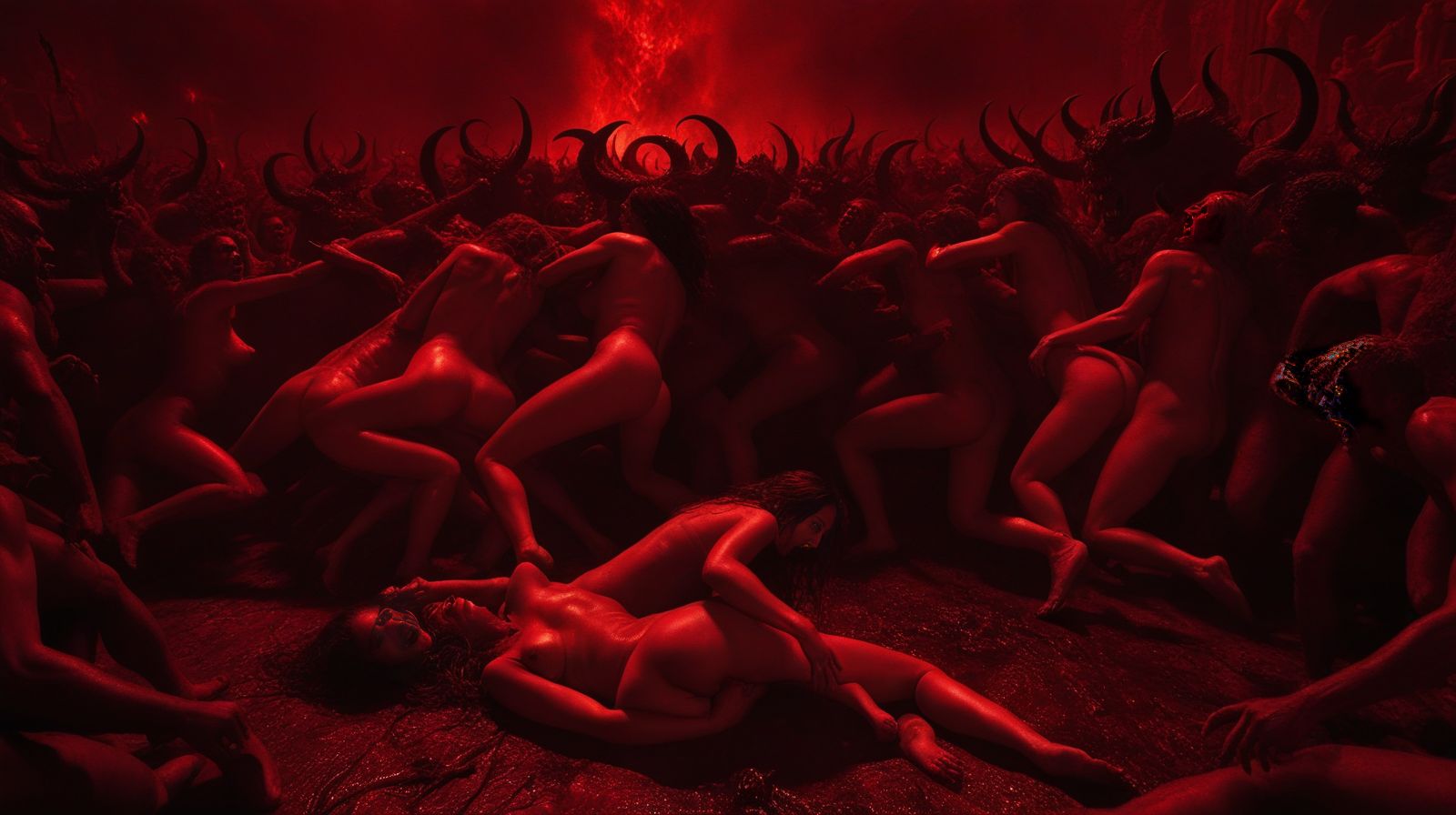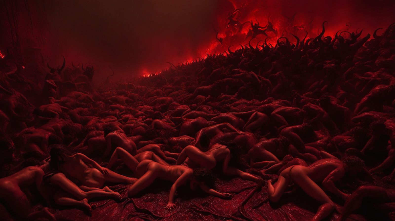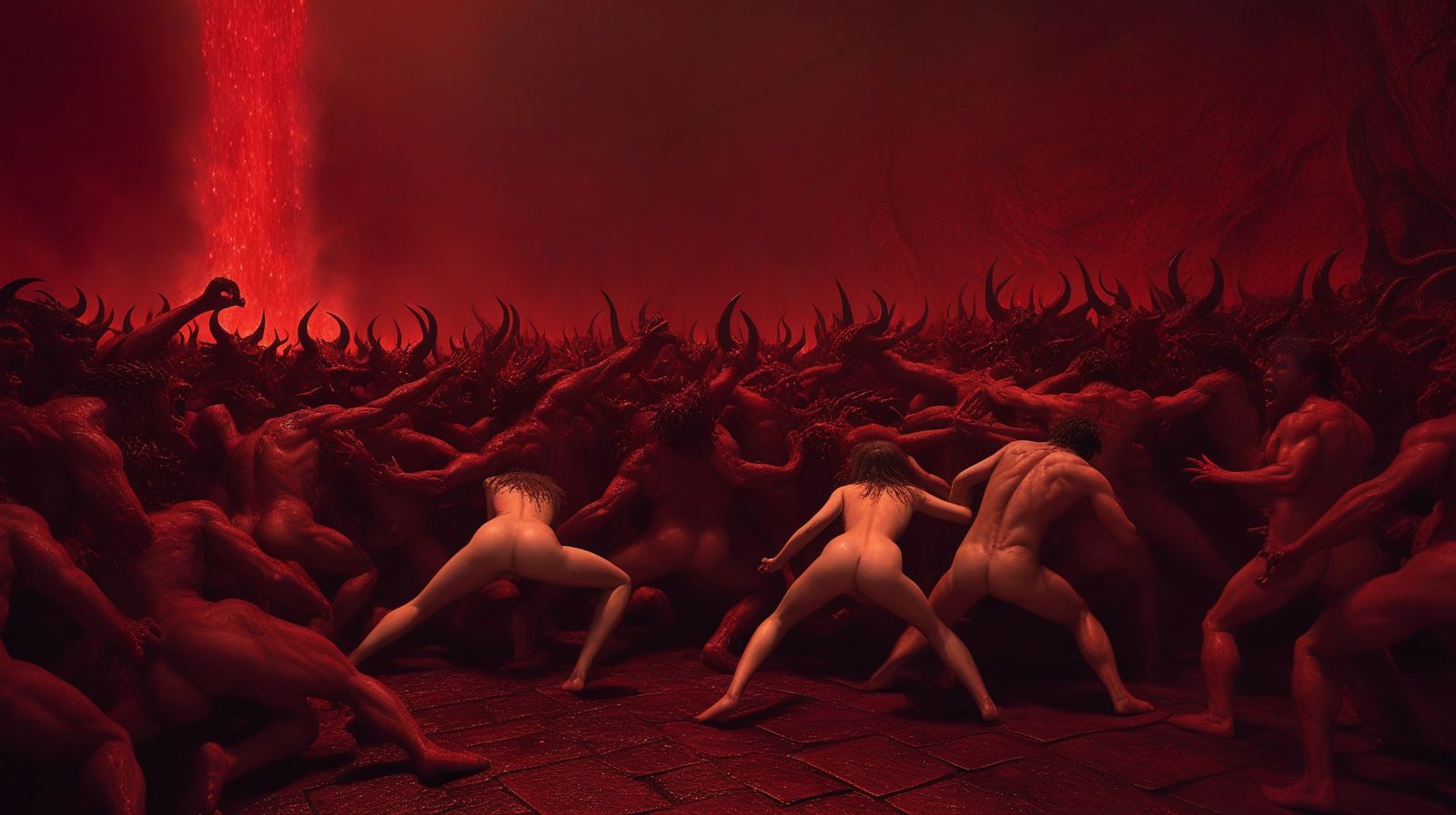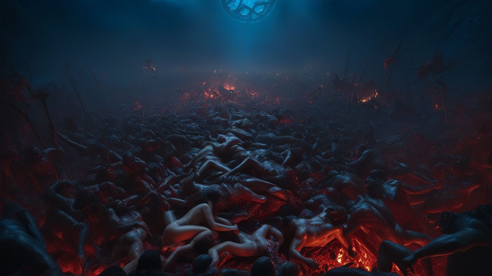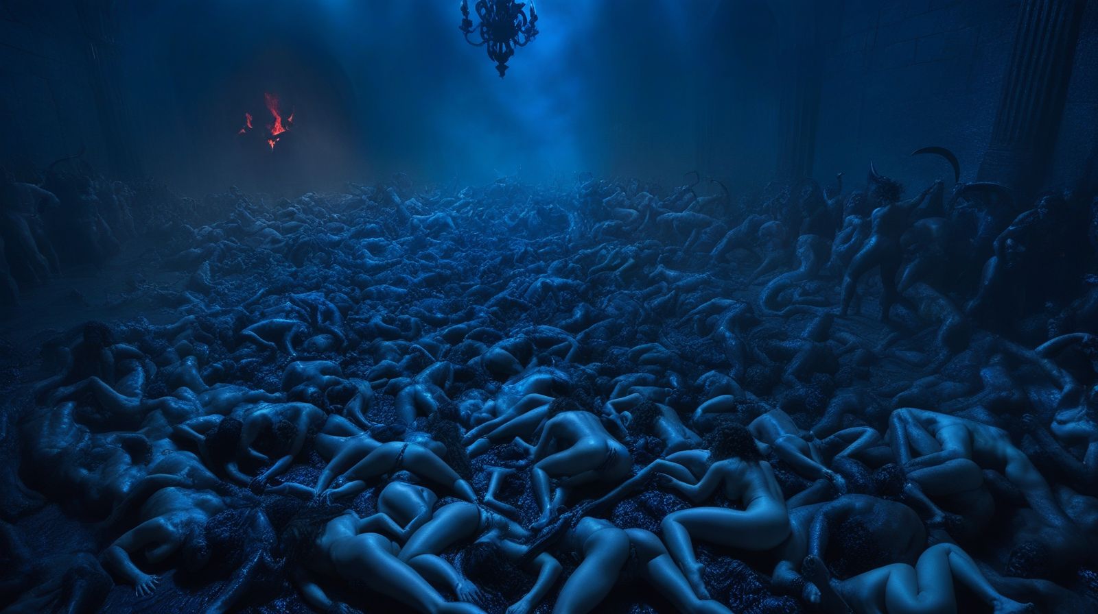 A professional picture of the hell, Many demons and monster were fighting in the hall of hell.