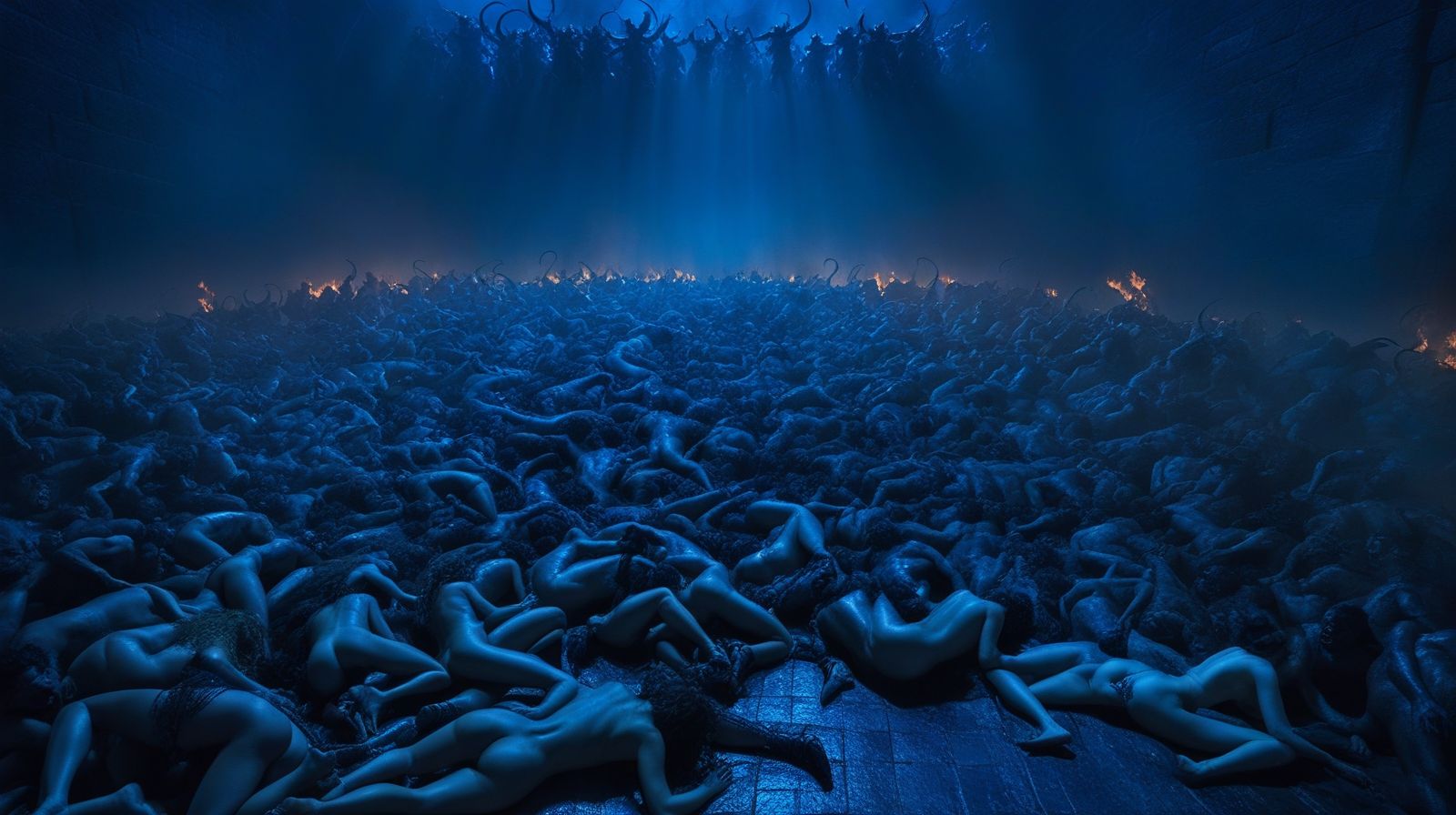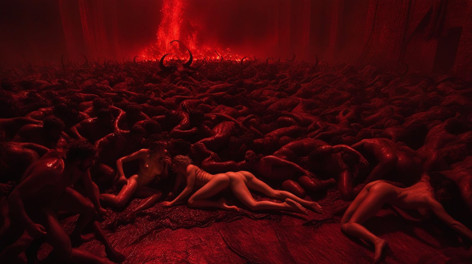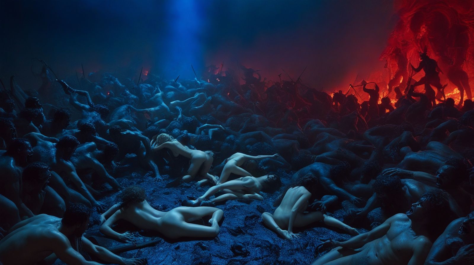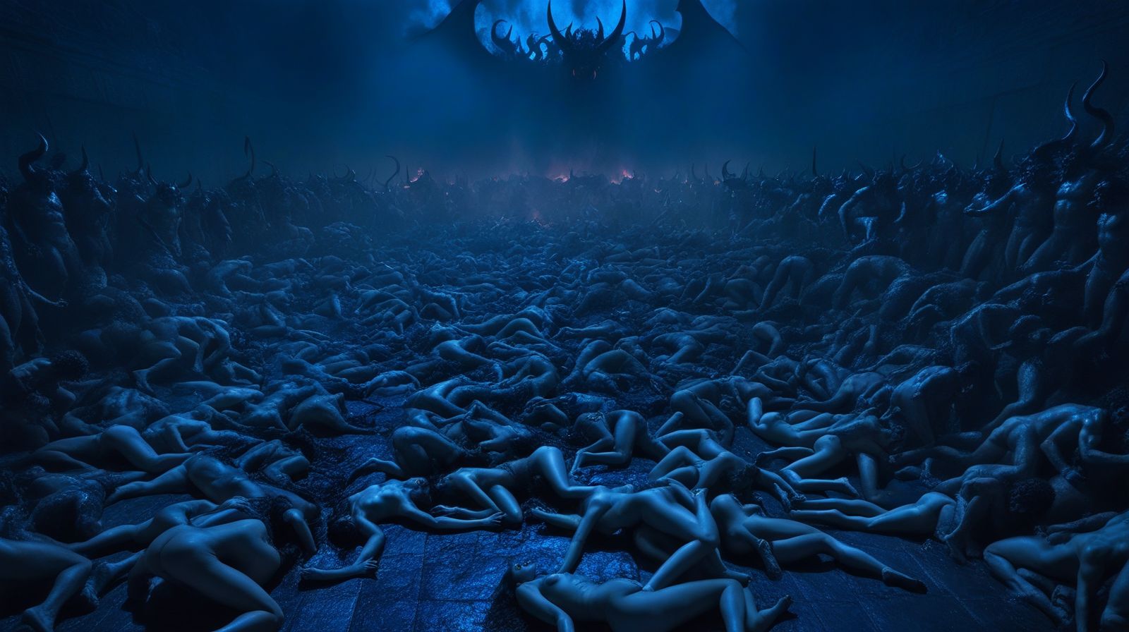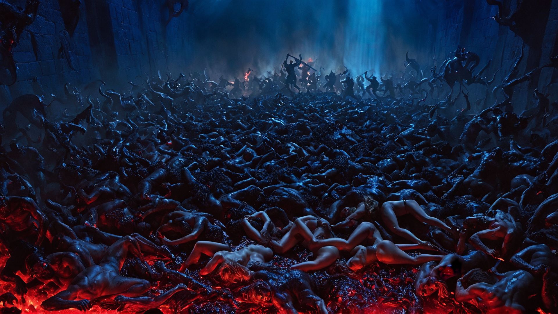 A professional picture of the hell, Many demons and monster were fighting in the hall of hell.