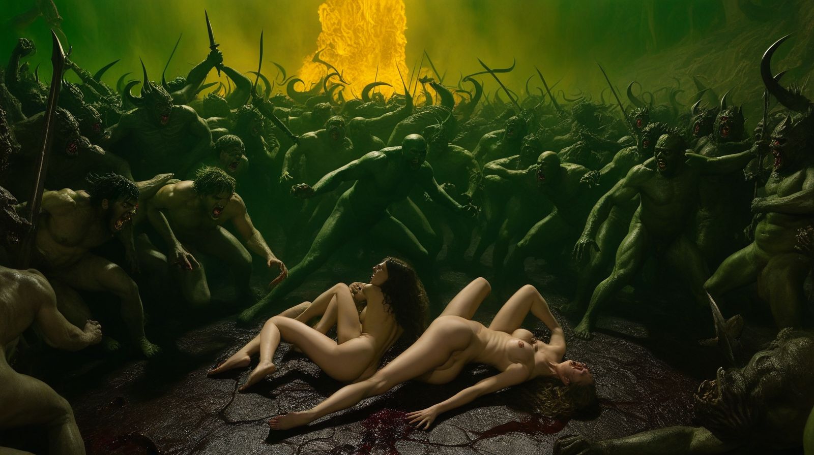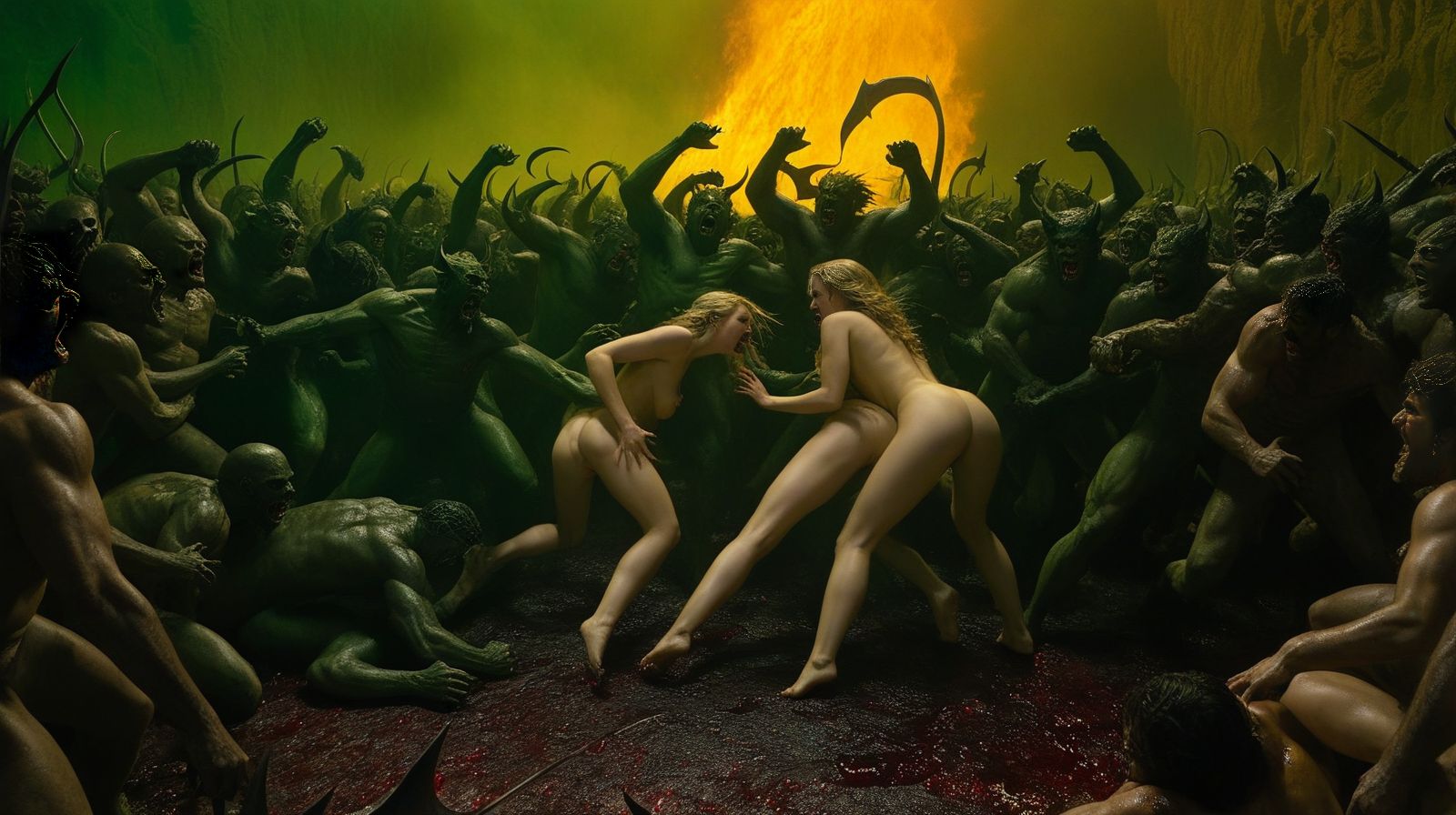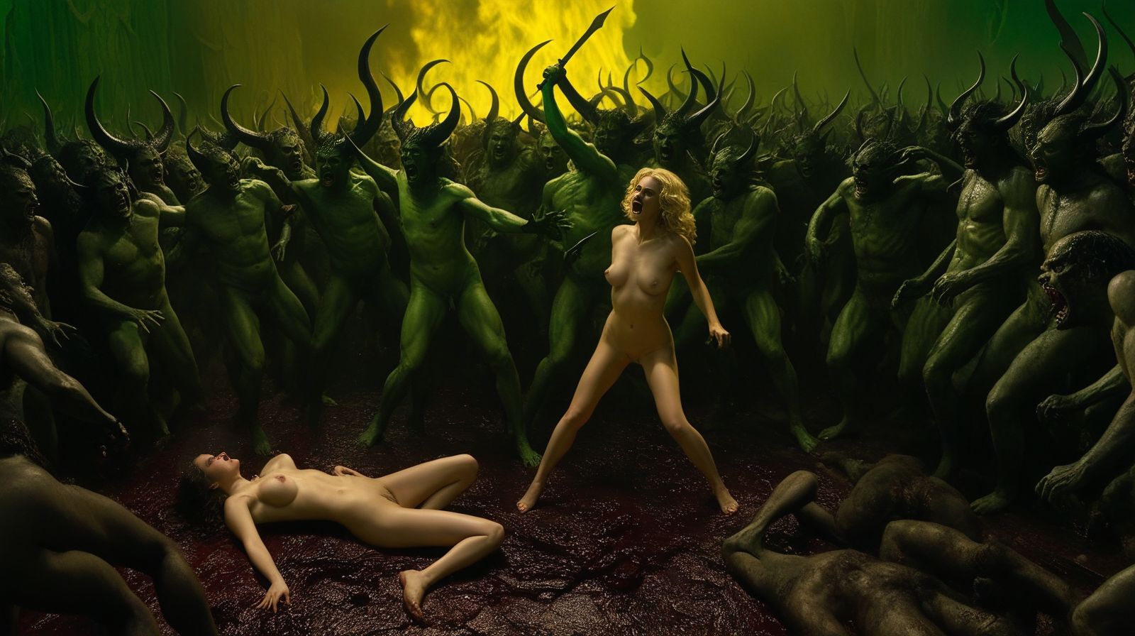 Beautiful Naked girls are brutal raped and massacred by terrible monsters.