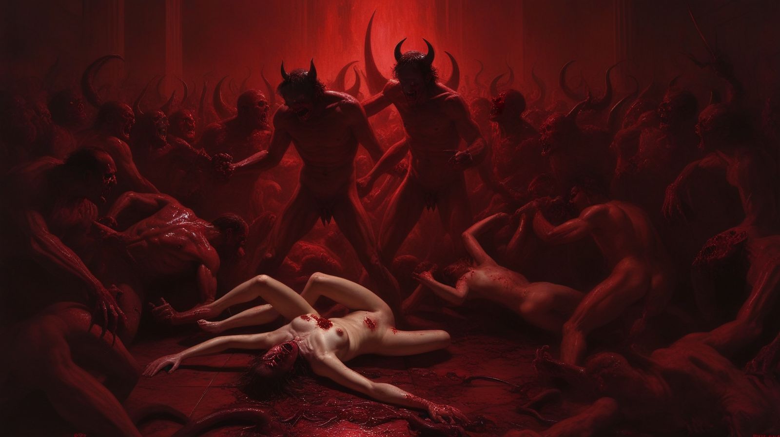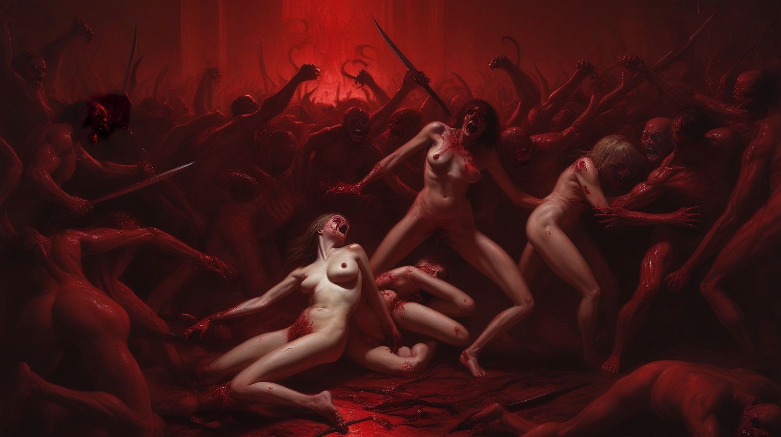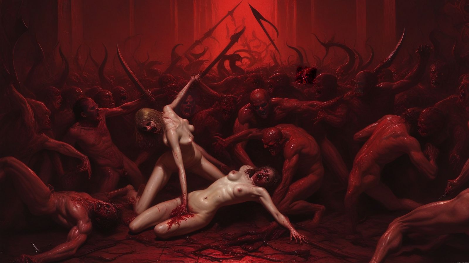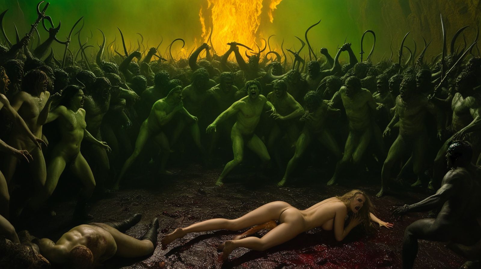 Beautiful Naked girls are brutal raped and massacred by terrible monsters.