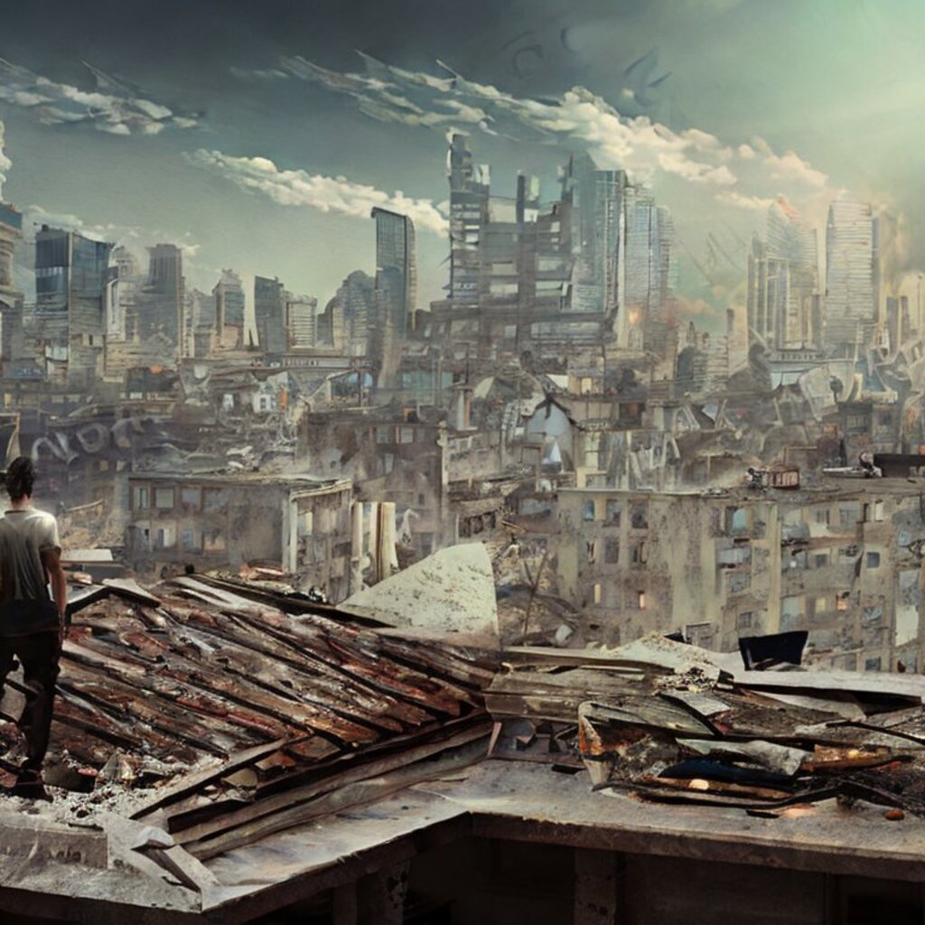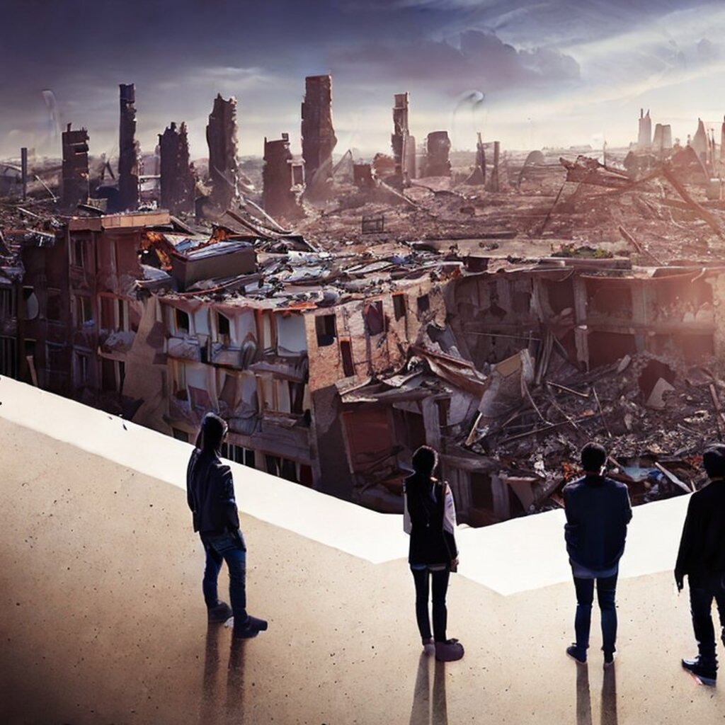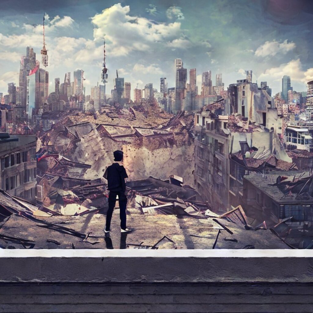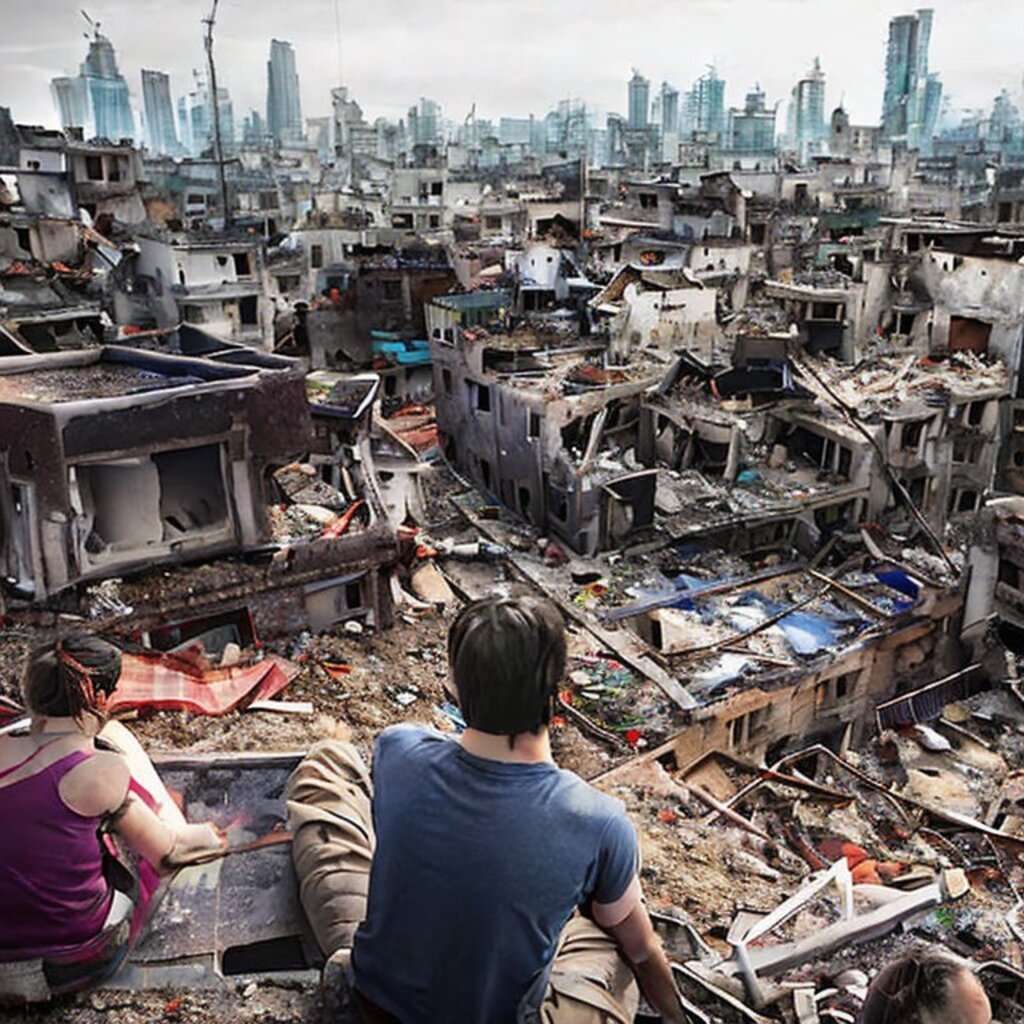 watching destroyed city
