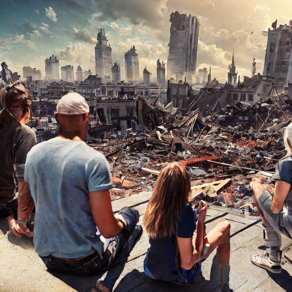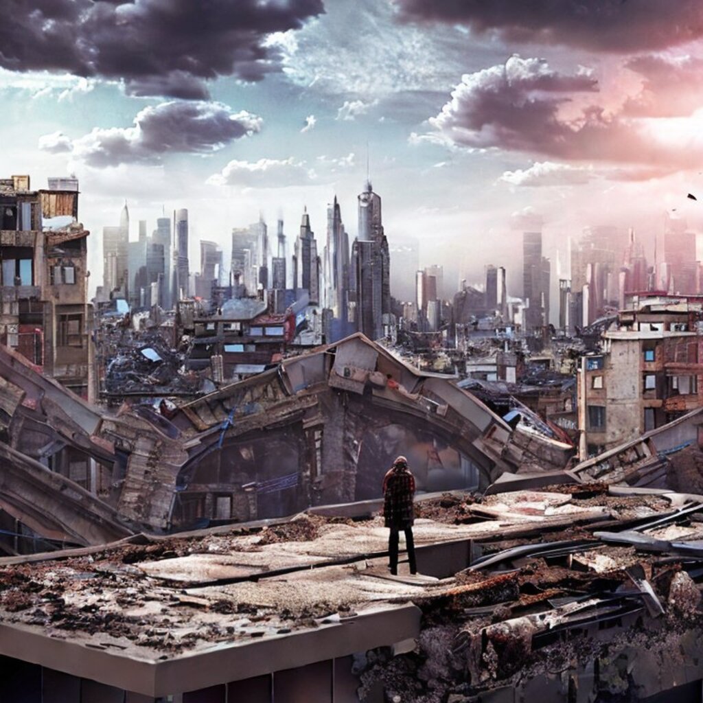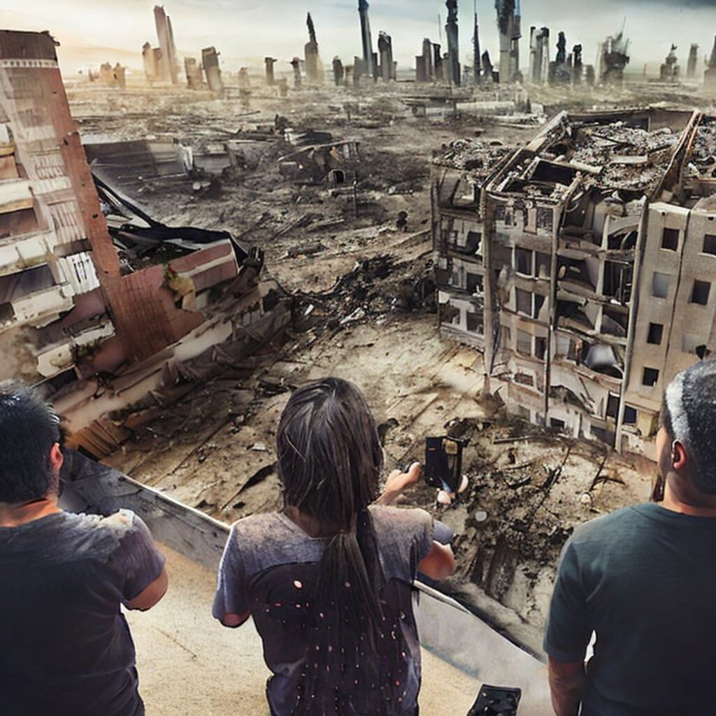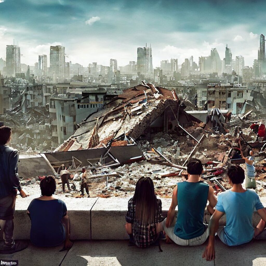 watching destroyed city