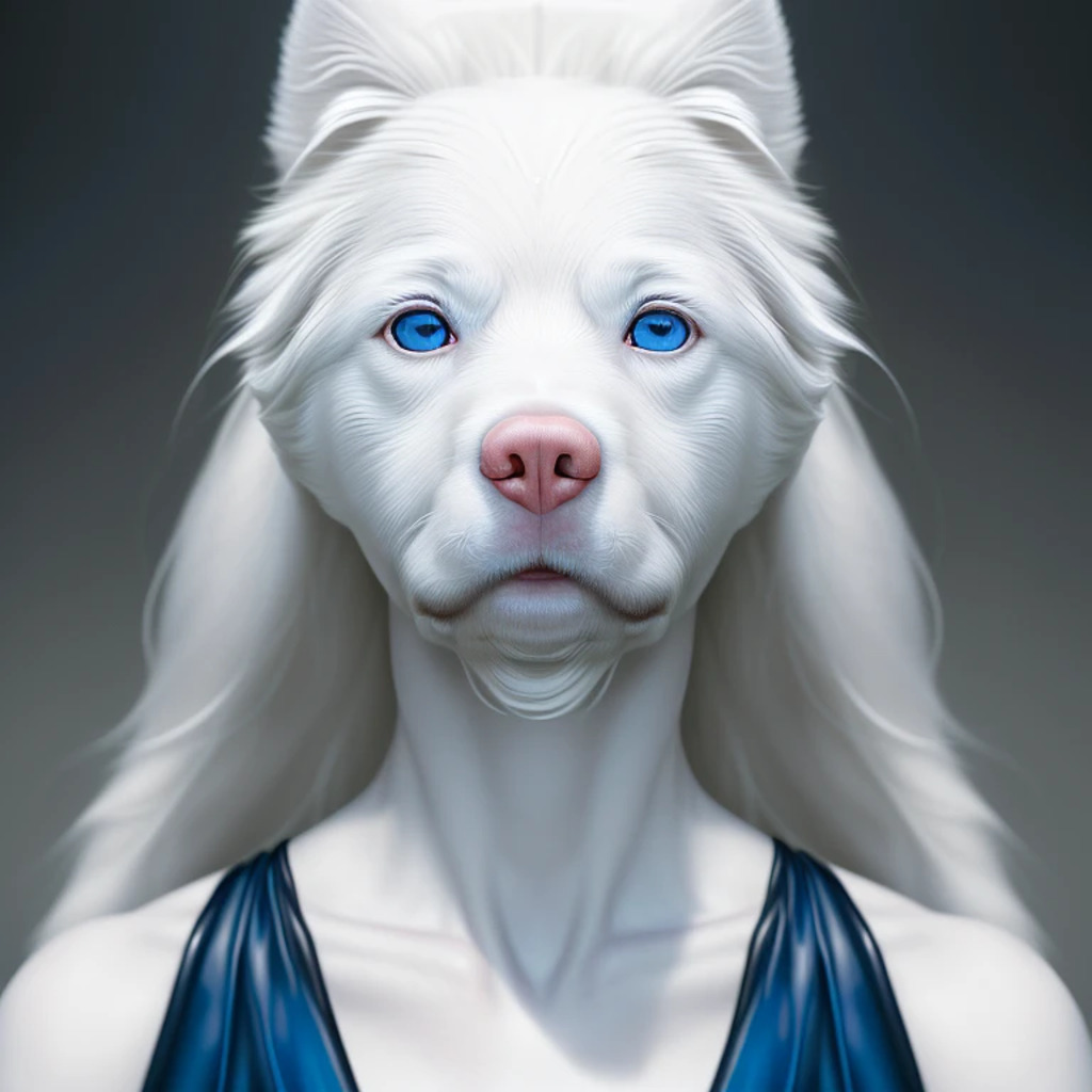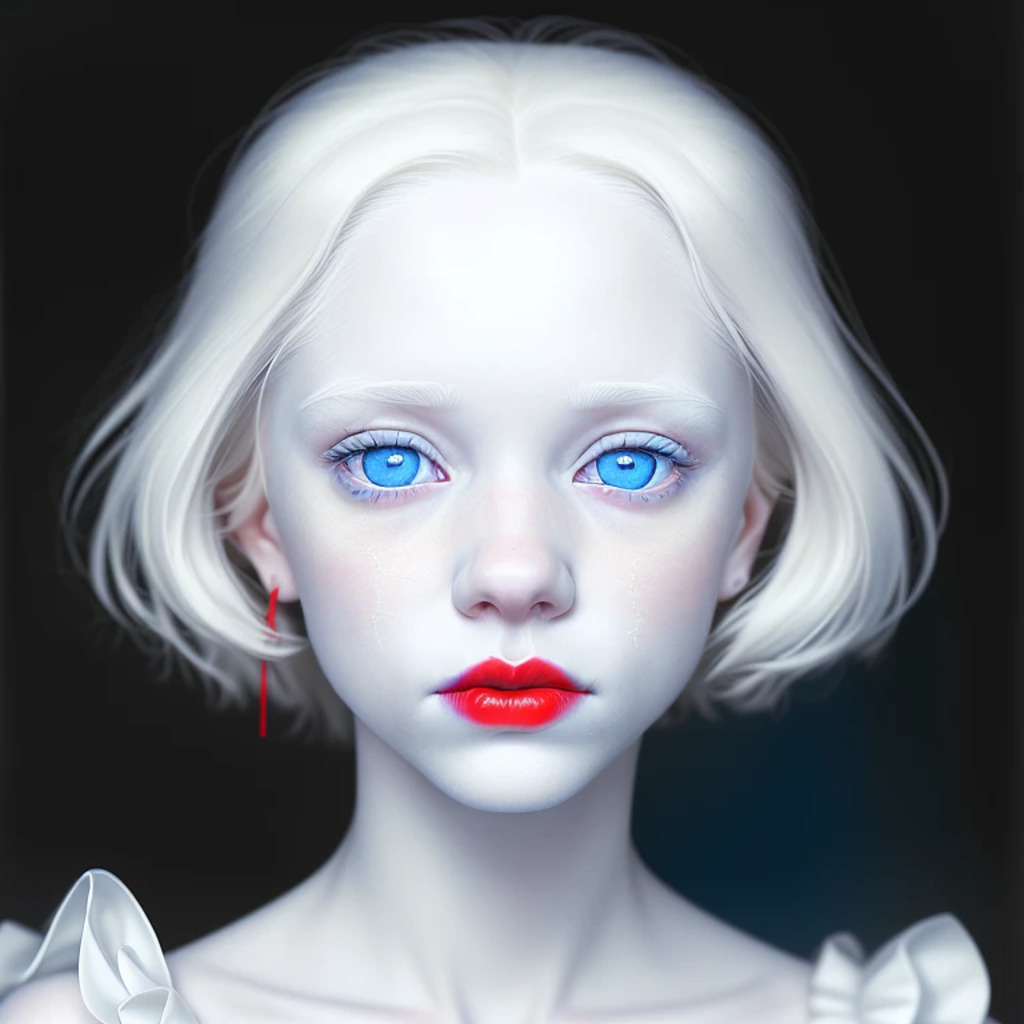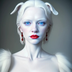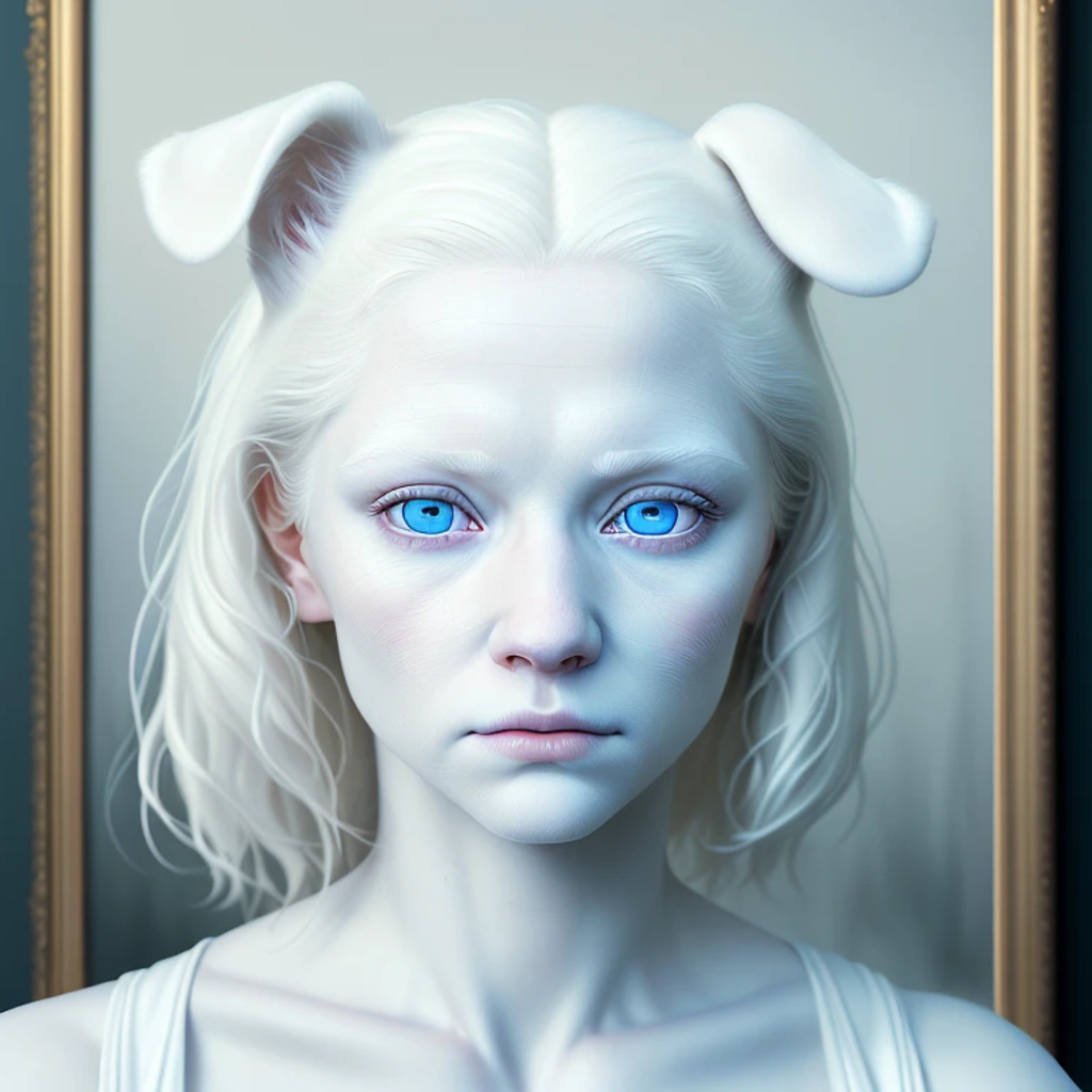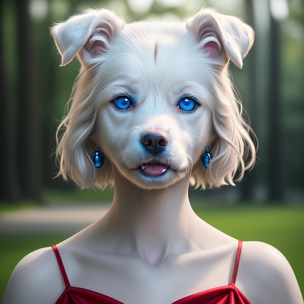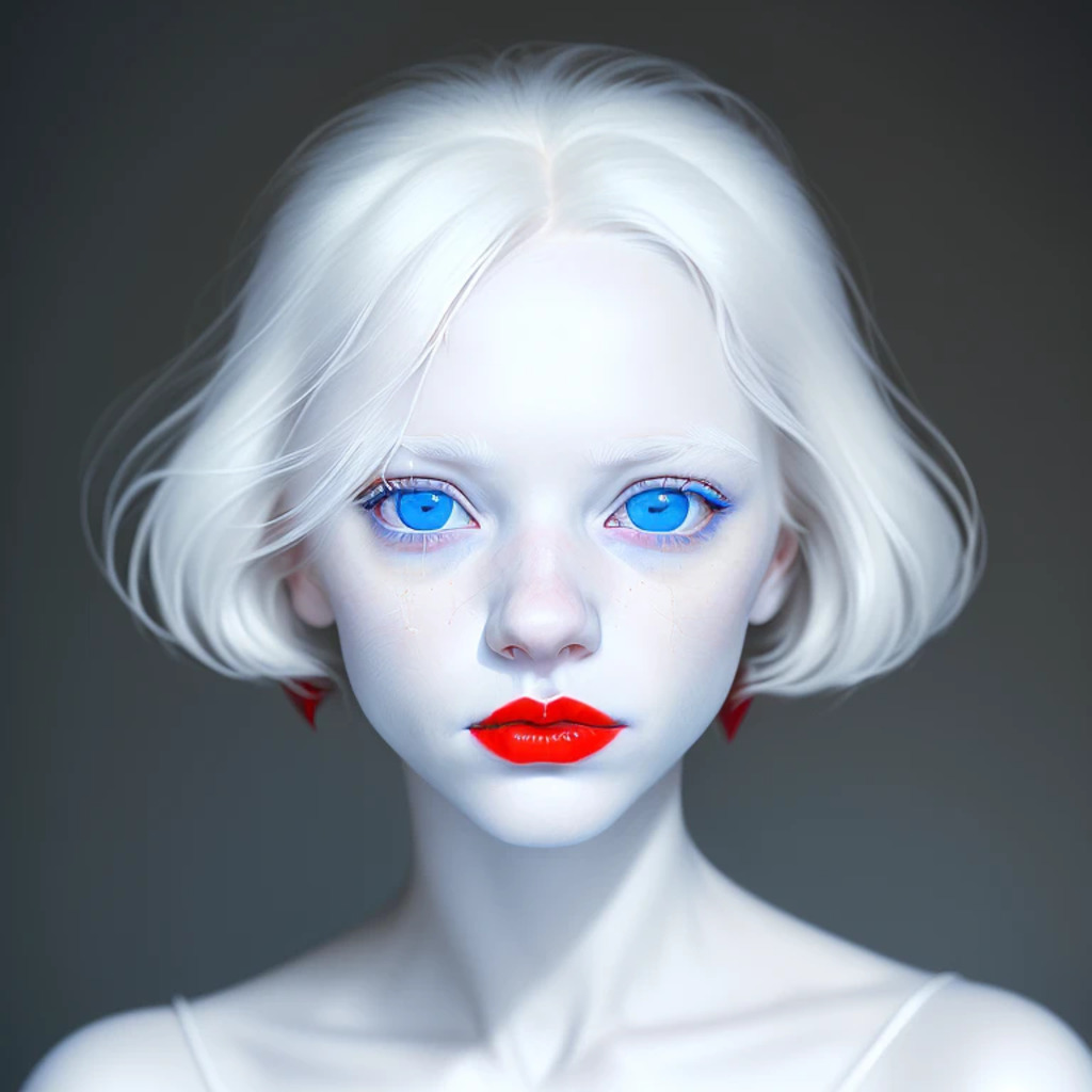 a portrait photography of a (albino:1.5) white ( dog: girl: 0.2), beautiful (blue eyes), (red lipstick: 1.2),