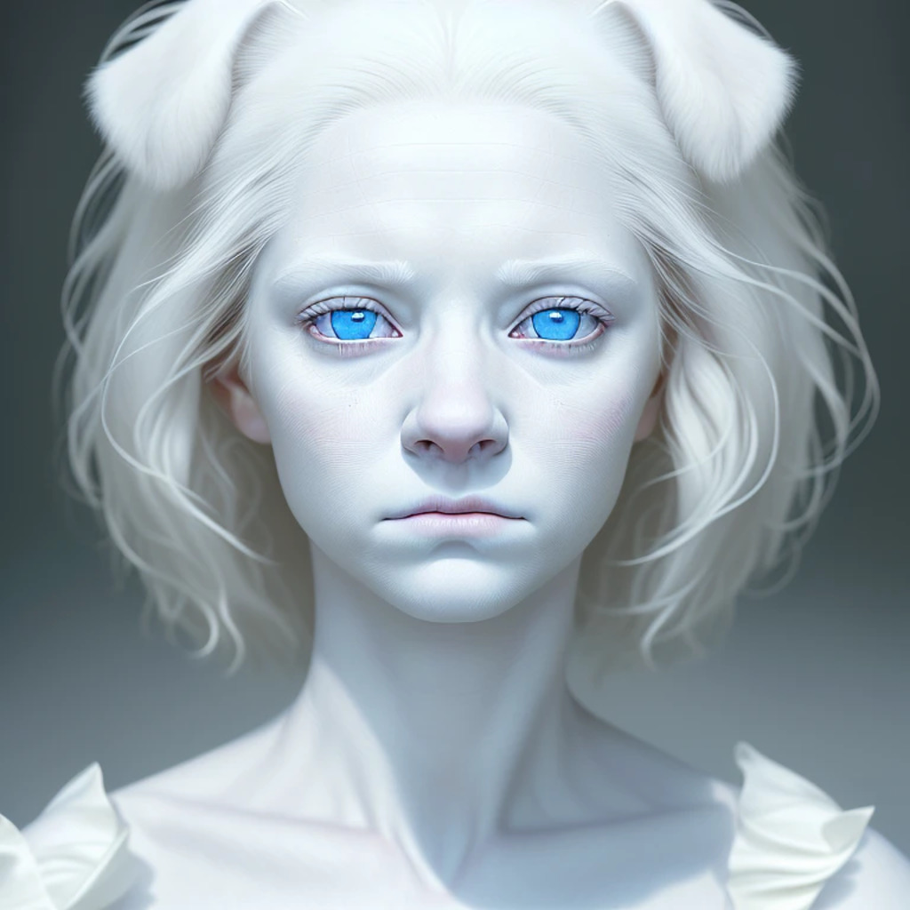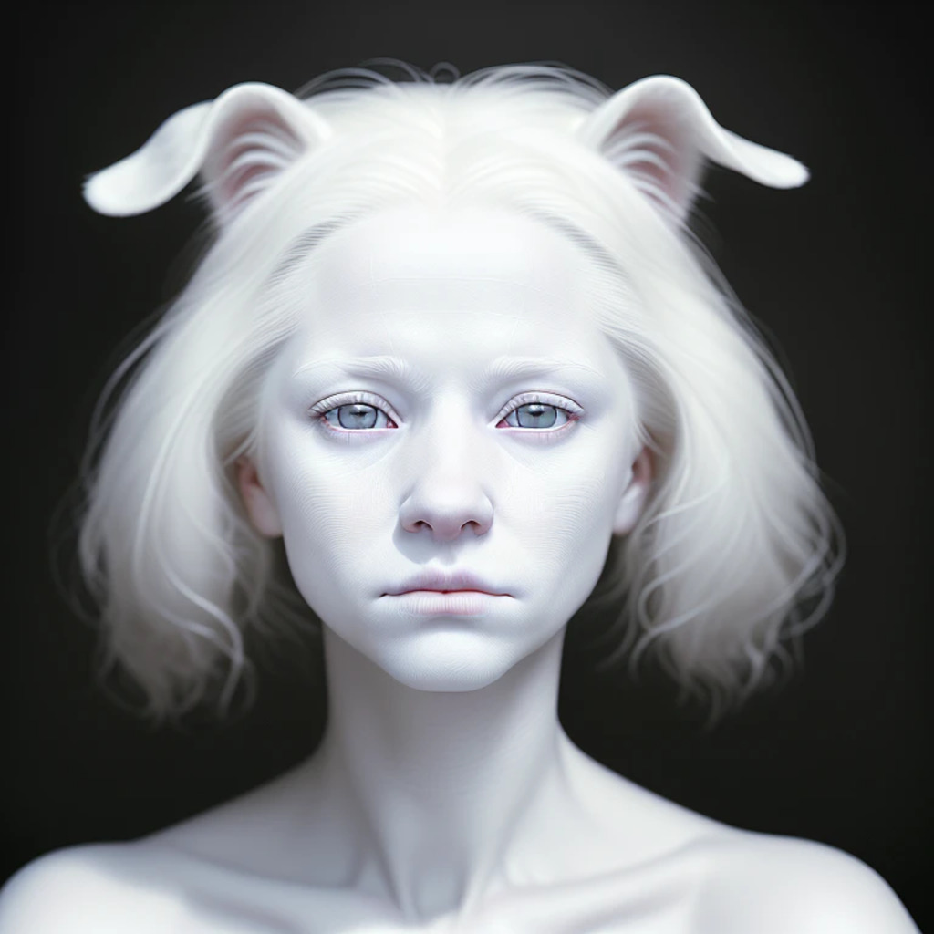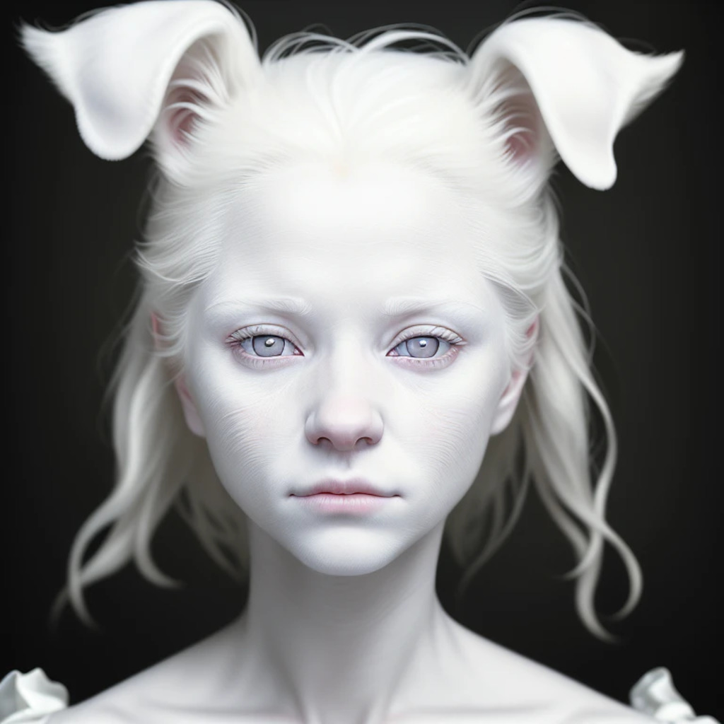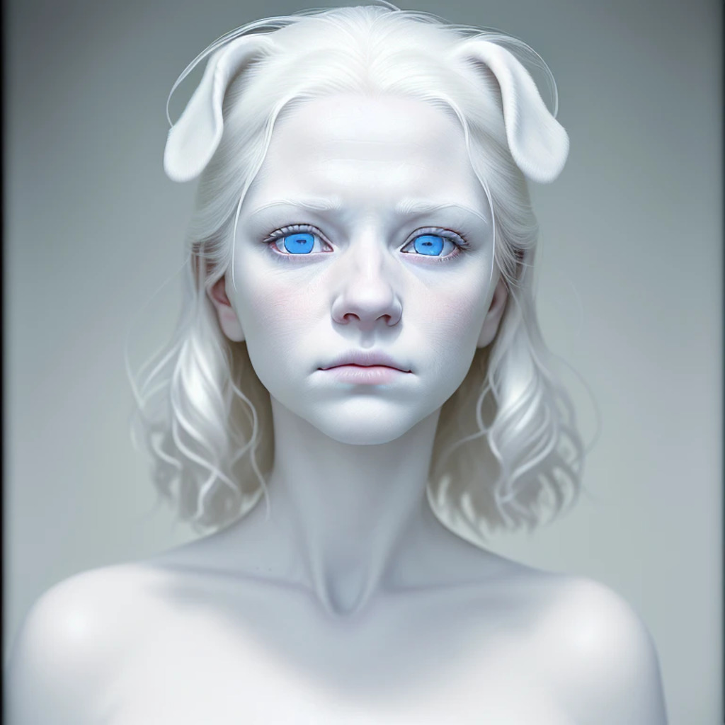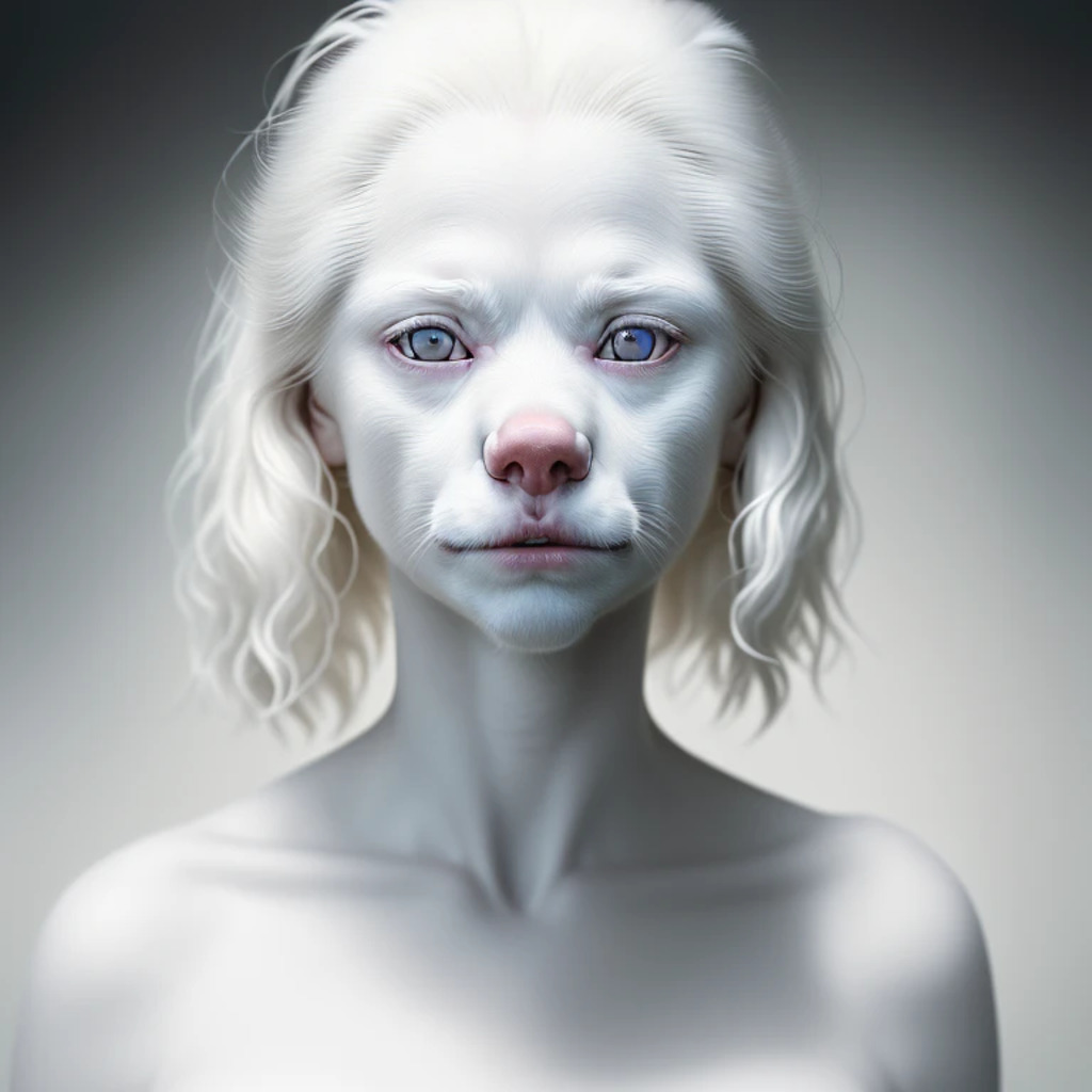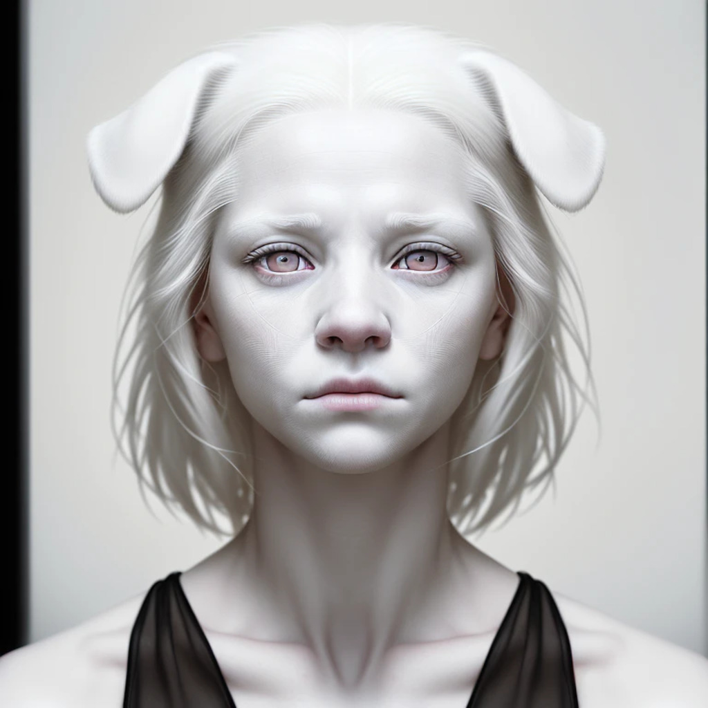 a portrait photography of a (albino:1.5) white ( dog: girl: 0.2), beautiful (blue eyes), (red lipstick: 1.2),
