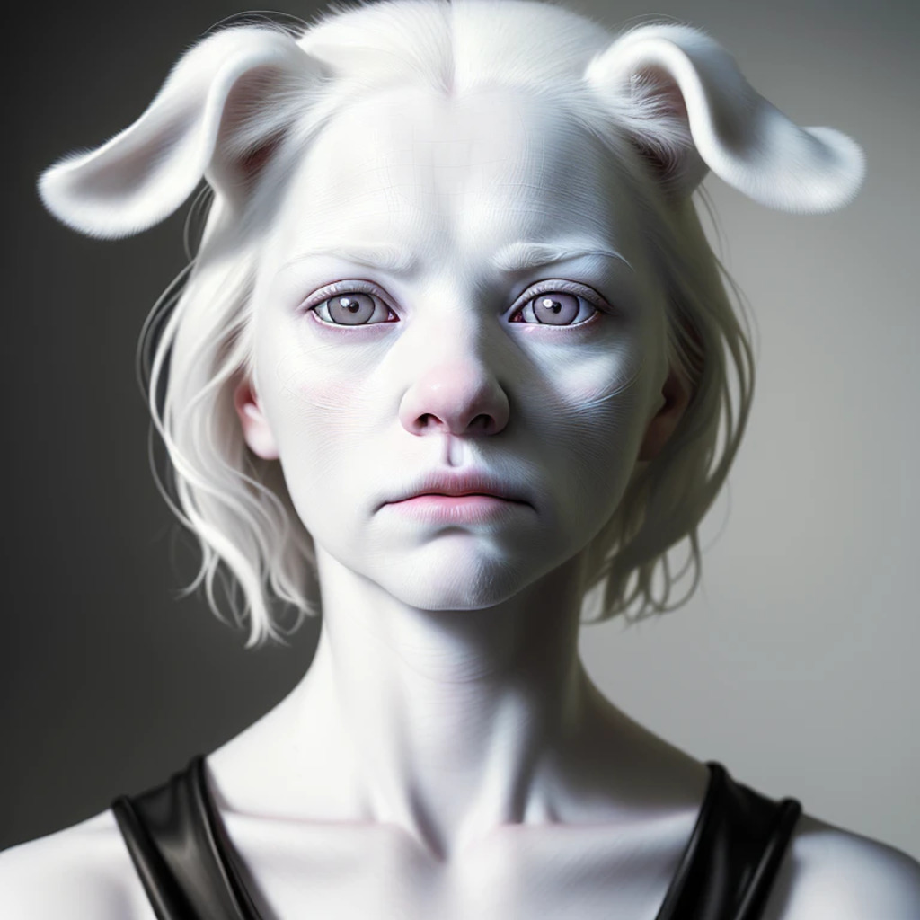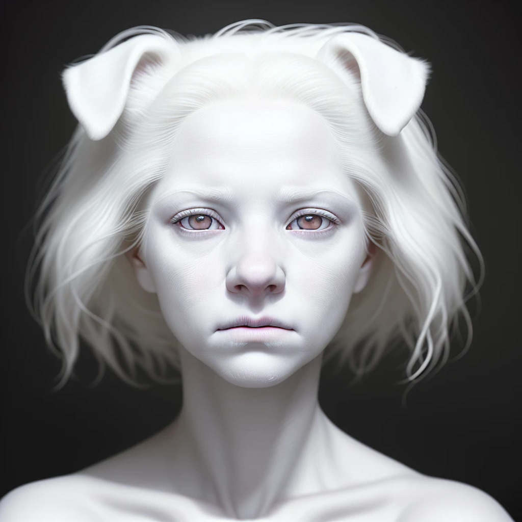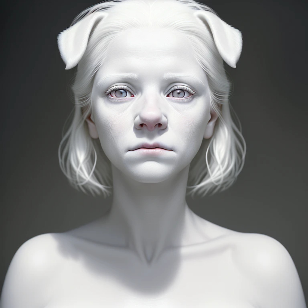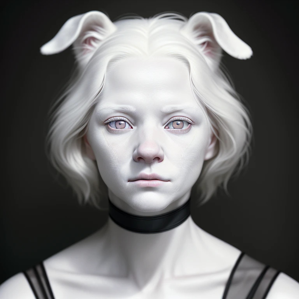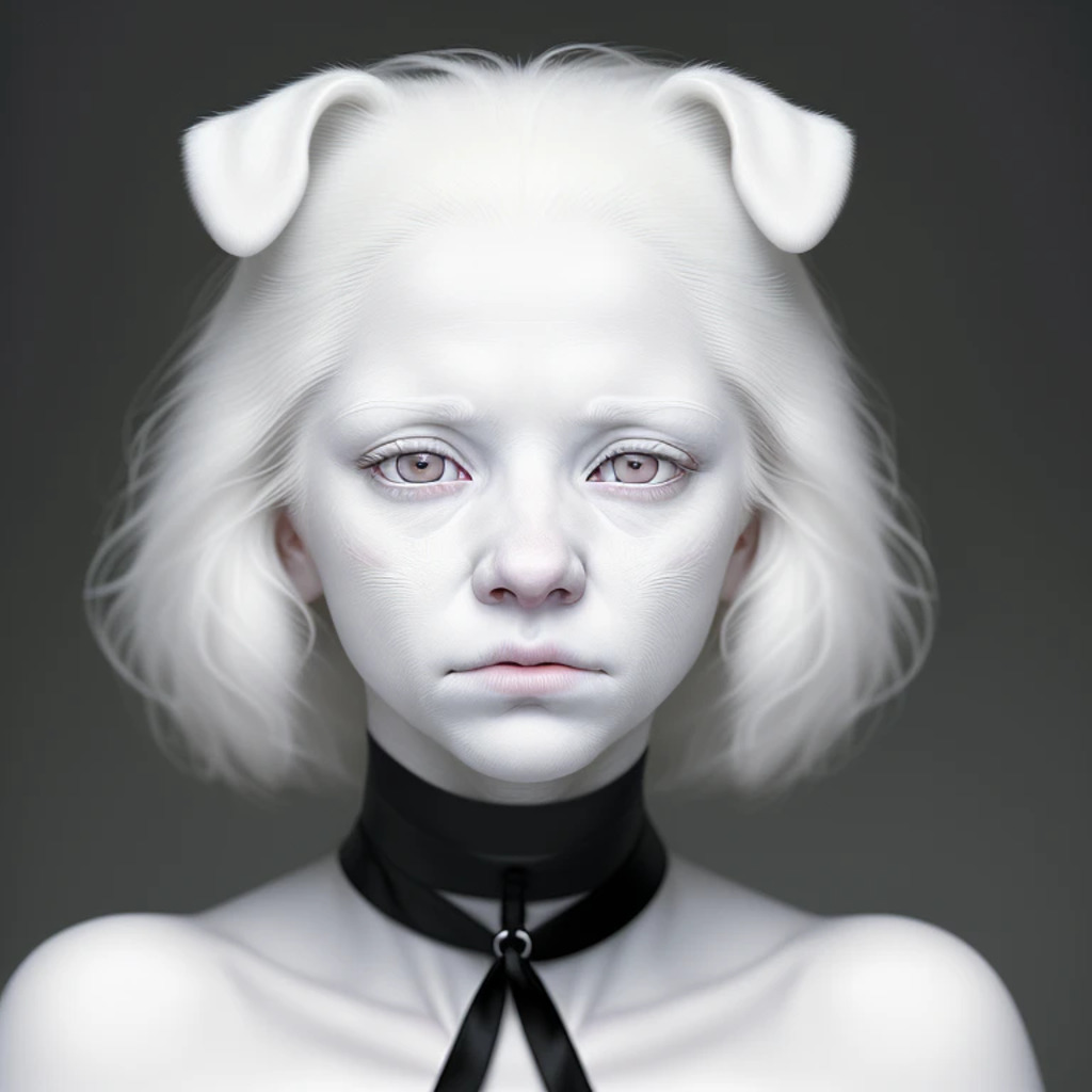 a portrait photography of a (albino:1.5) white ( dog: girl: 0.2), beautiful (blue eyes), (red lipstick: 1.2),