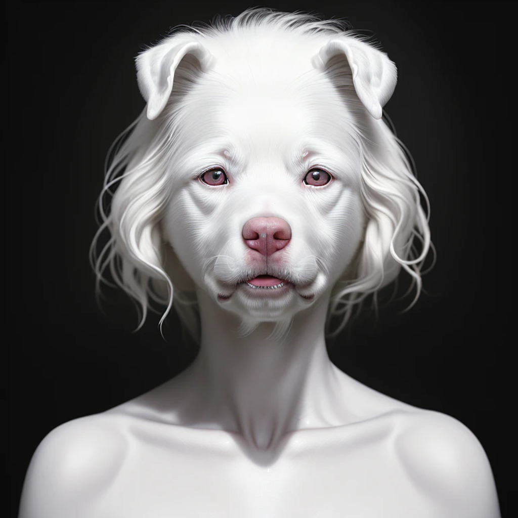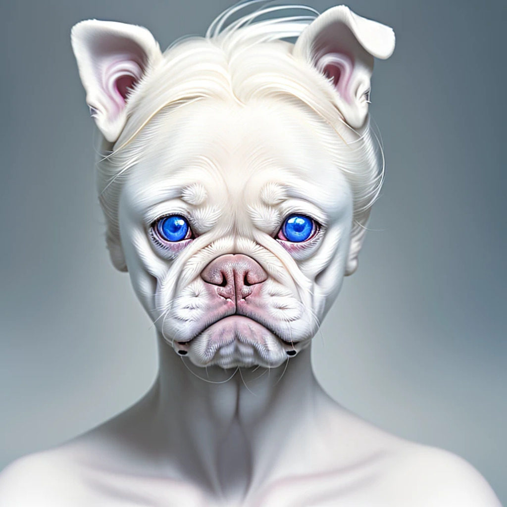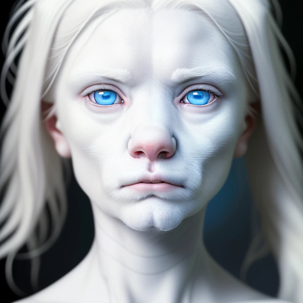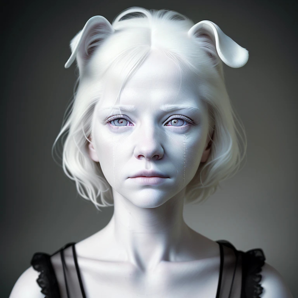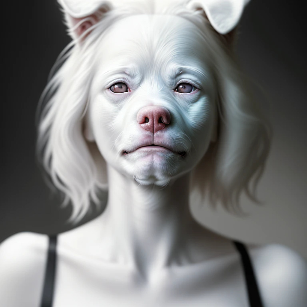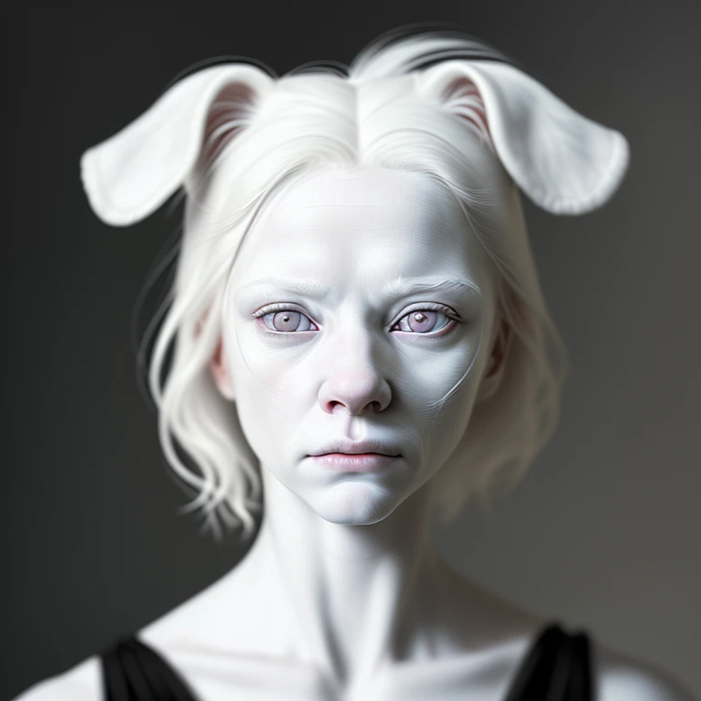 a portrait photography of a (albino:1.5) white ( dog: girl: 0.2), beautiful (blue eyes), (red lipstick: 1.2),