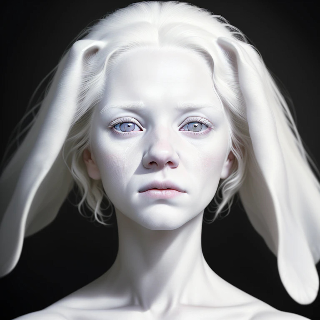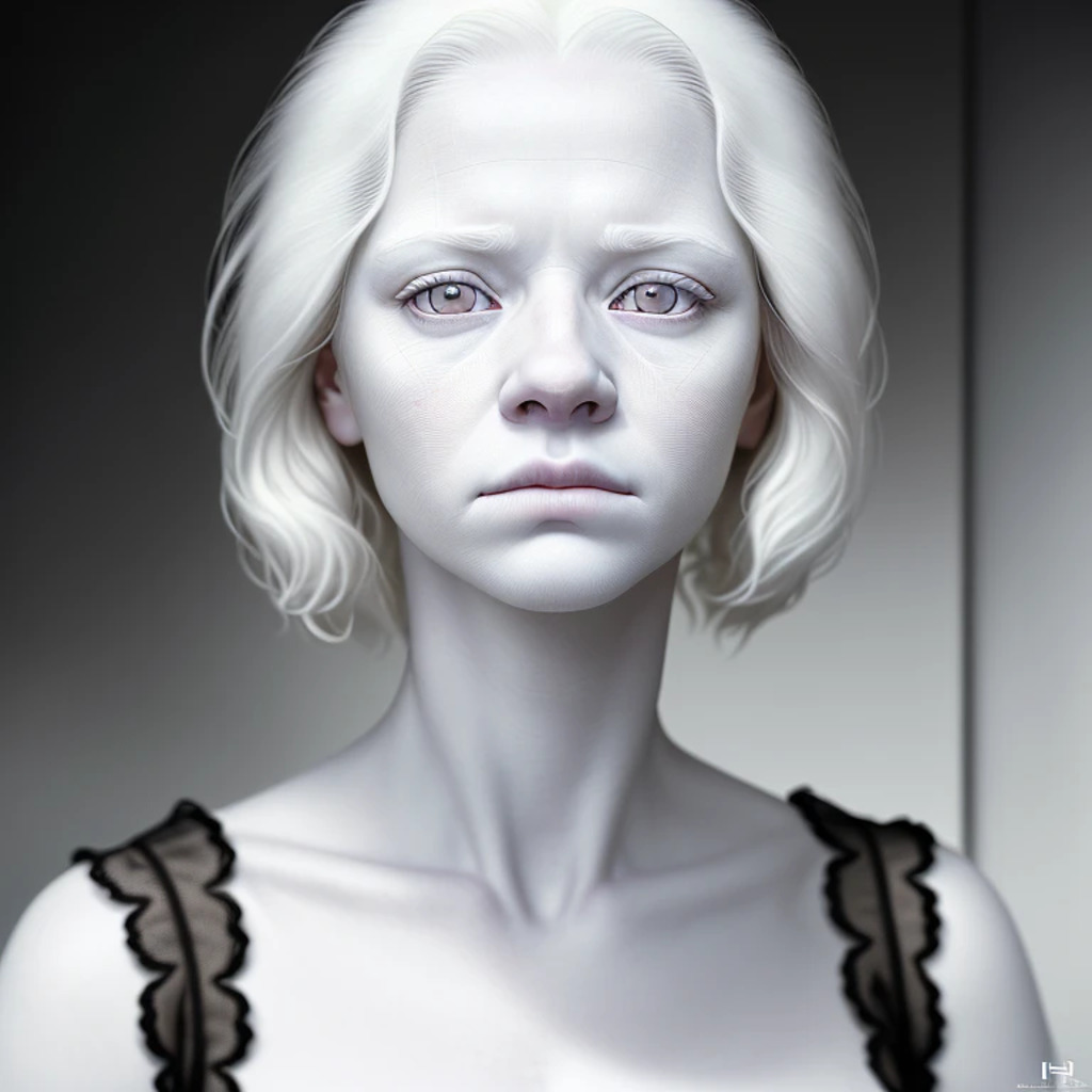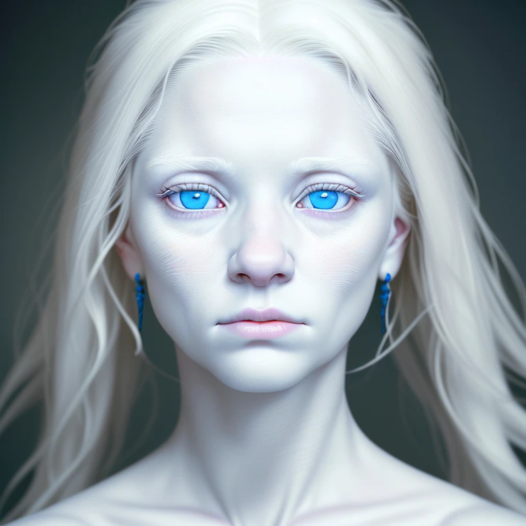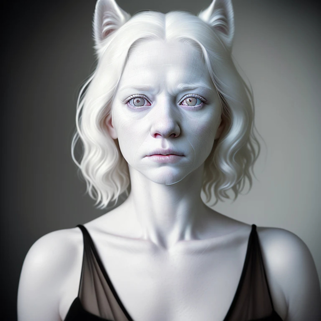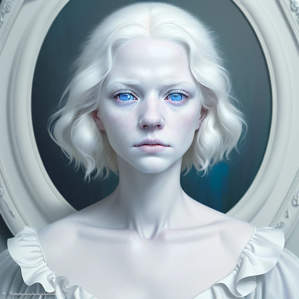 a portrait photography of a (albino:1.5) white ( dog: girl: 0.2), beautiful (blue eyes), (red lipstick: 1.2),