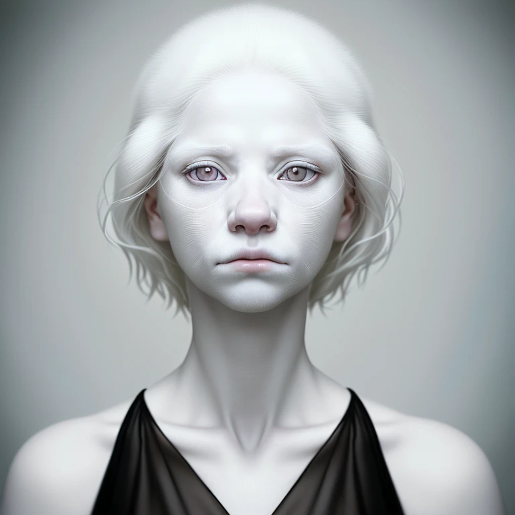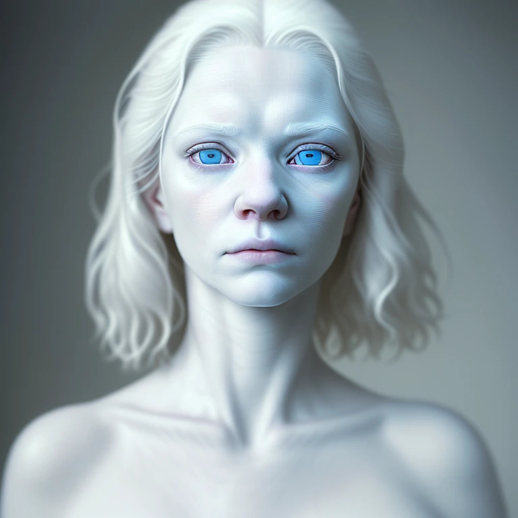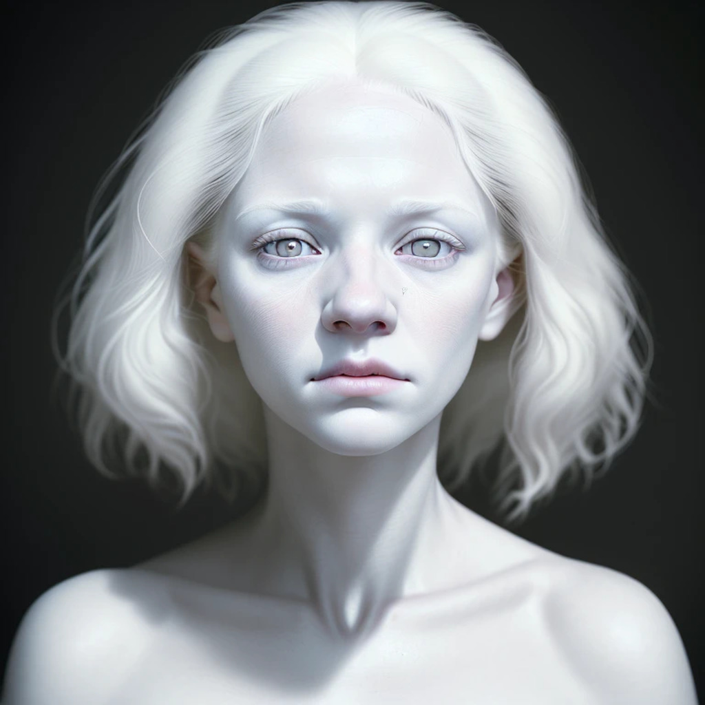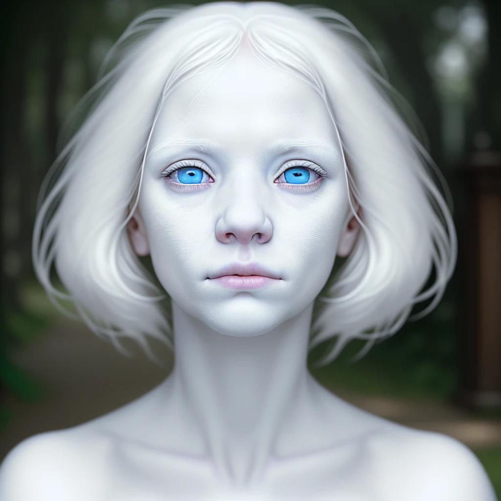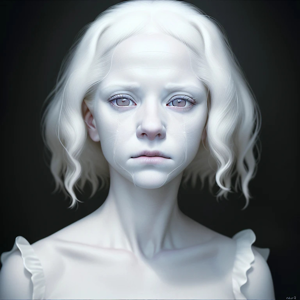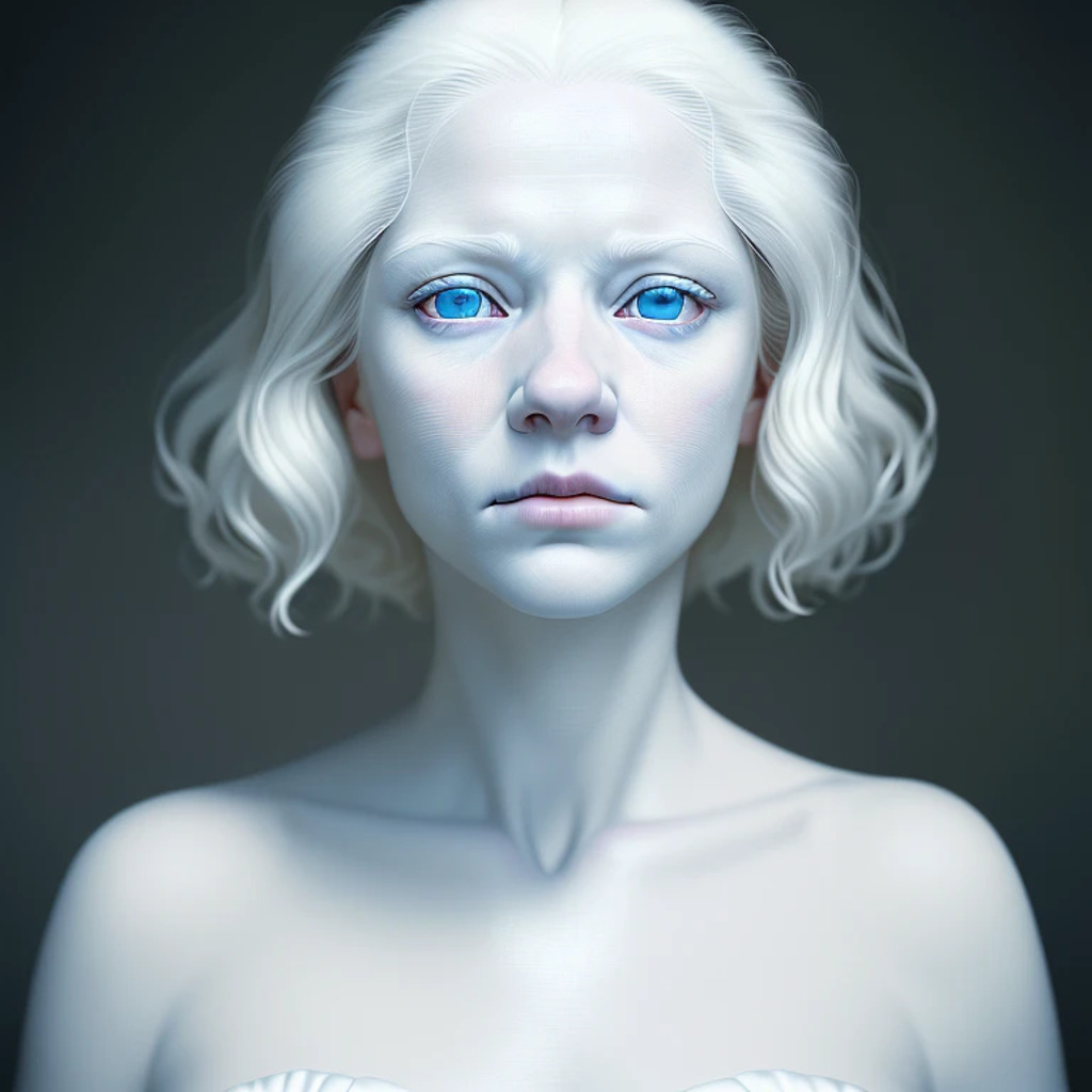 a portrait photography of a (albino:1.5) white ( dog: girl: 0.2), beautiful (blue eyes), (red lipstick: 1.2),