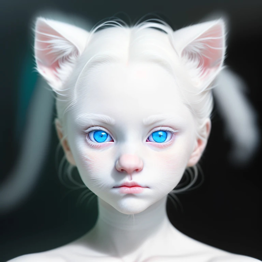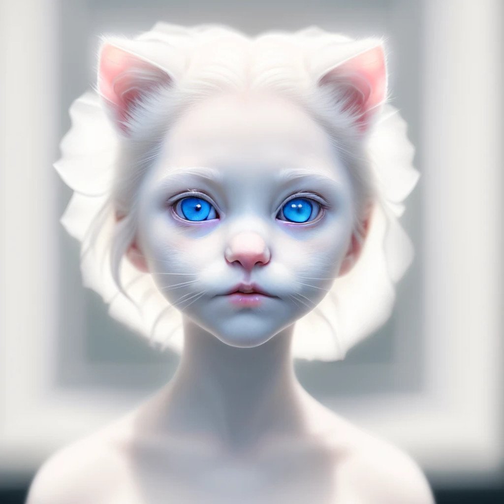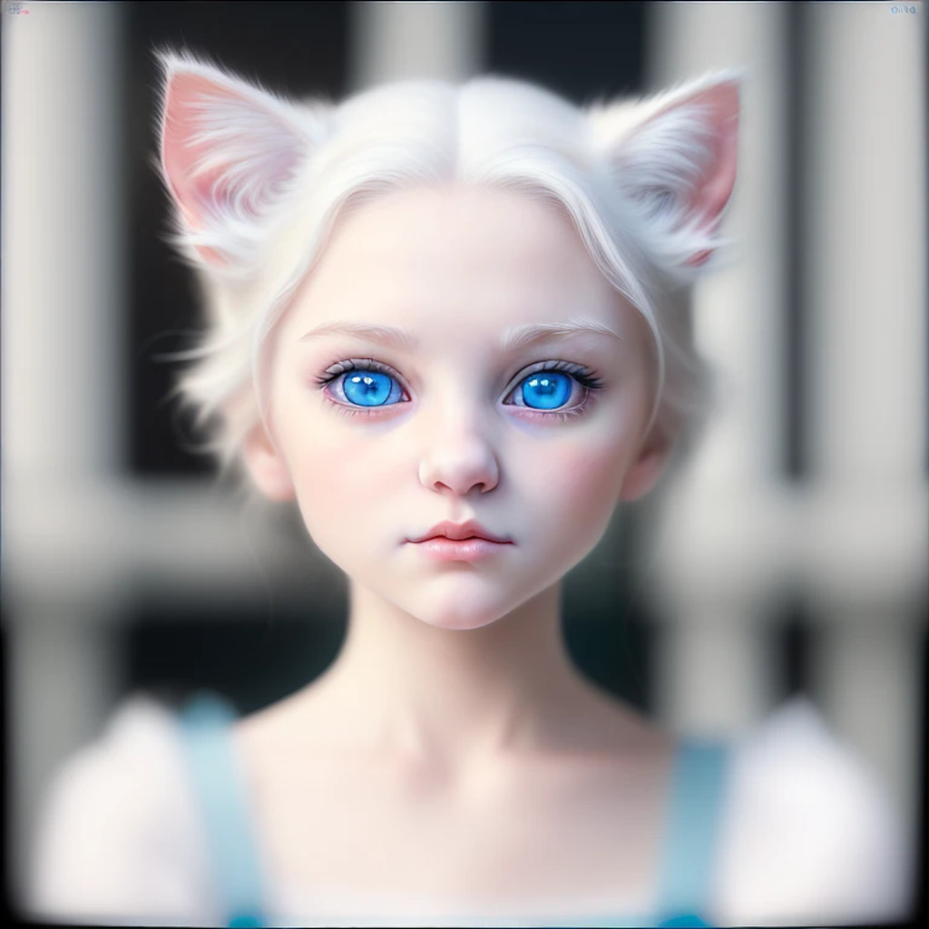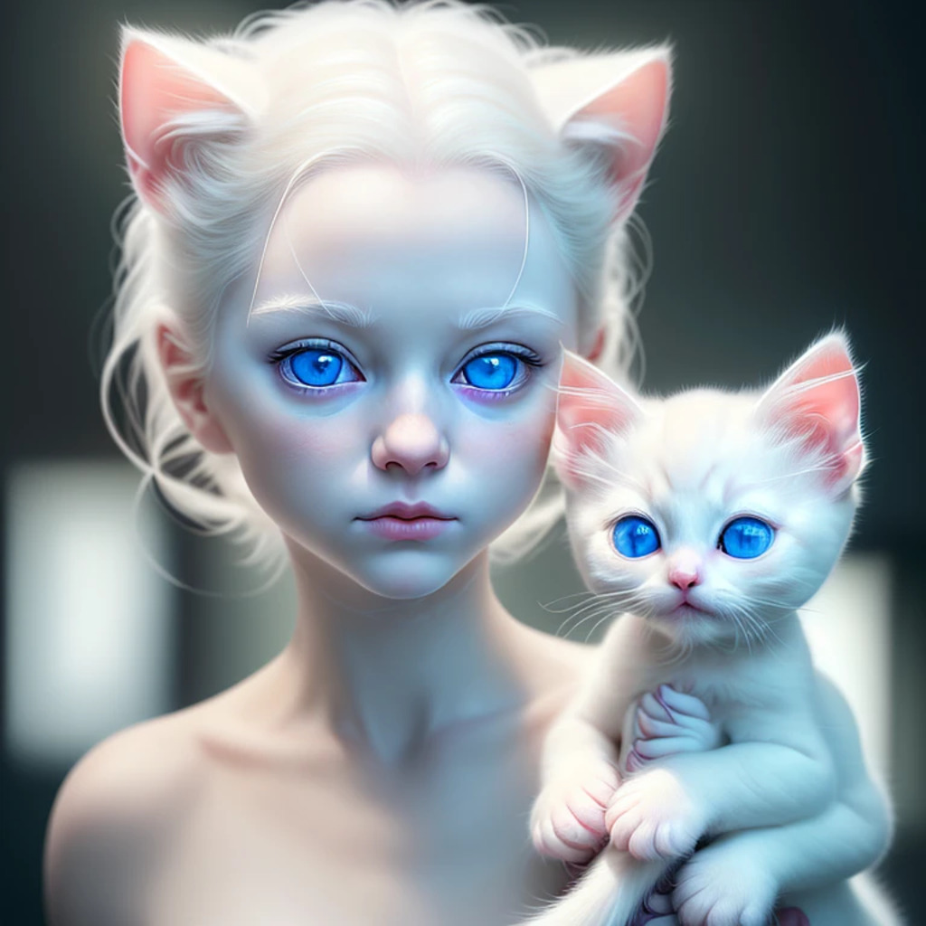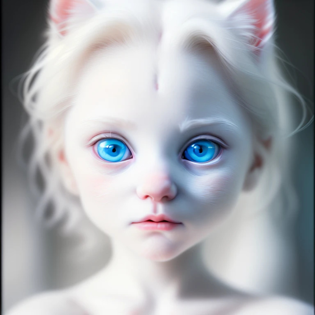 (hyperrealism : 1. 4), (award winning: 1. 4) (masterpiece photo: 1. 4) BREAK a portrait photography of a very cute albino (white kitten: white girl: 0. 5), beautiful (blue eyes) BREAK (8K UHD:1. 2), (photorealistic: 1. 2), symmetrical, accurate, cinematic, photography, realistic, intricate detail, style art, perfect face, ultra sharp, highly detailed, highly accurate, awe-inspiring, sharp focus, dramatic light, 8k resolution, Realistic, Refined, (Dramatic Lighting: 1. 5), octane render, post production, cinema4D