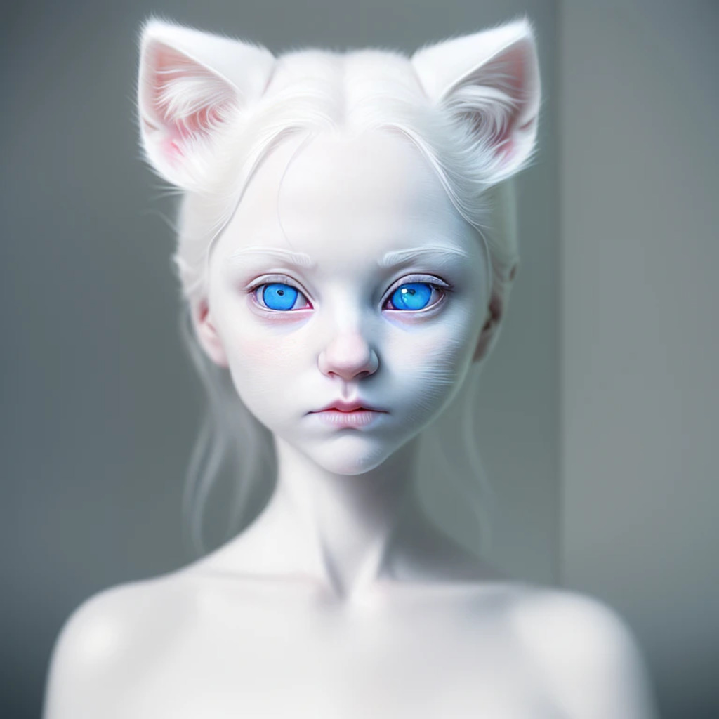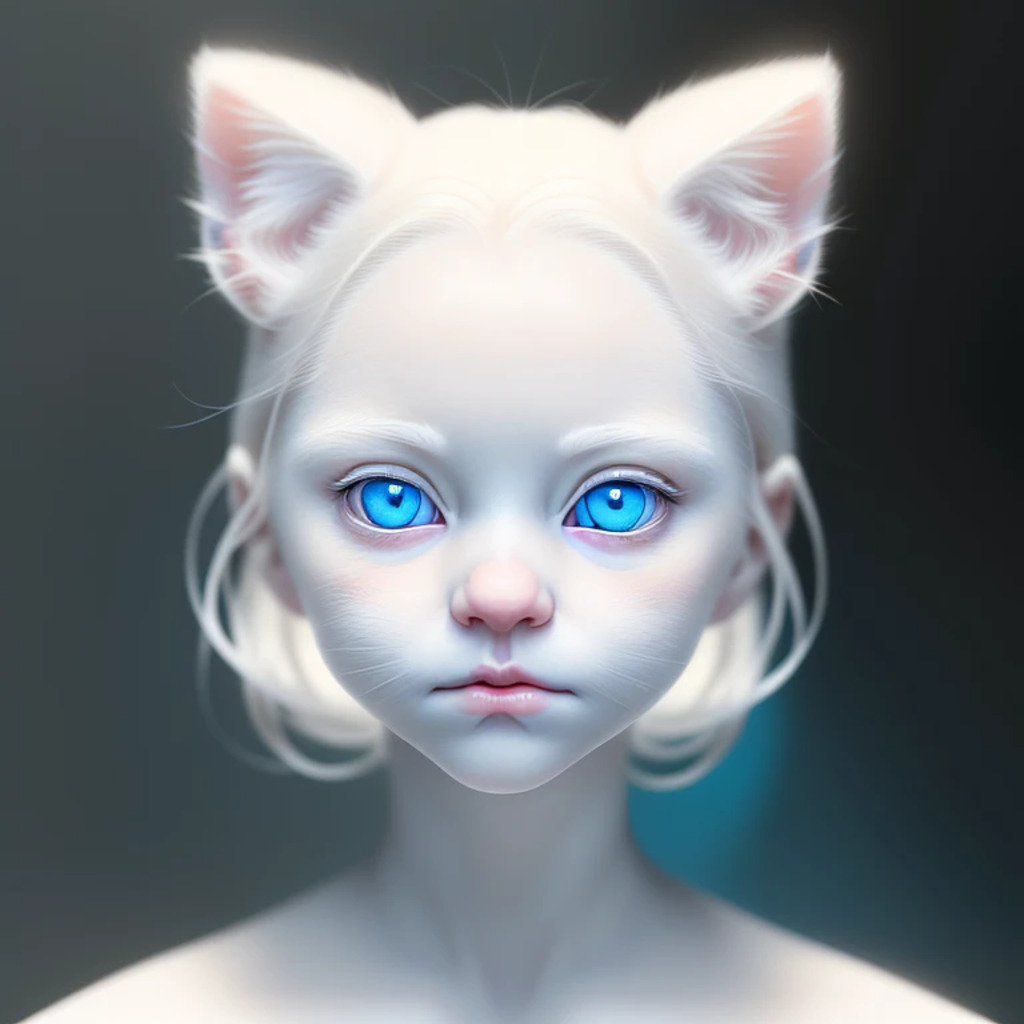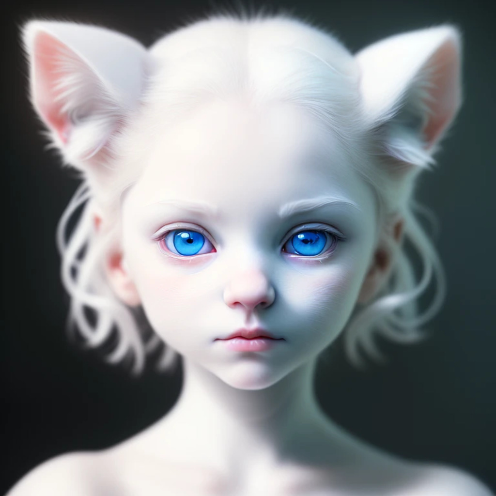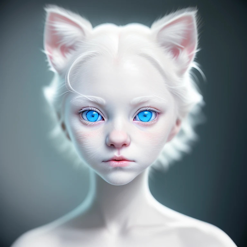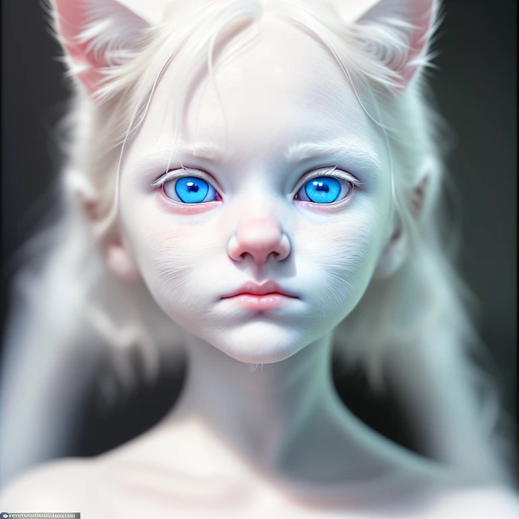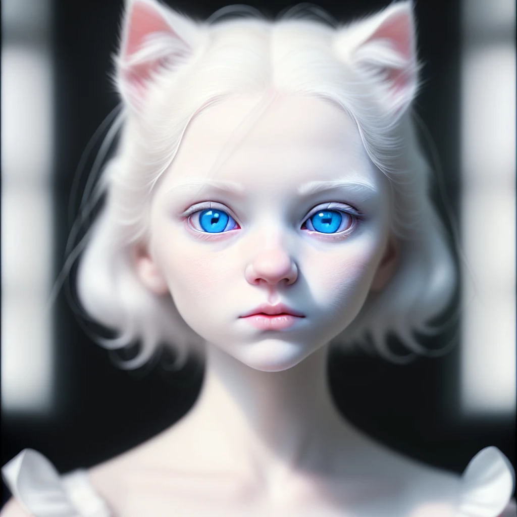 (hyperrealism : 1. 4), (award winning: 1. 4) (masterpiece photo: 1. 4) BREAK a portrait photography of a very cute albino (white kitten: white girl: 0. 5), beautiful (blue eyes) BREAK (8K UHD:1. 2), (photorealistic: 1. 2), symmetrical, accurate, cinematic, photography, realistic, intricate detail, style art, perfect face, ultra sharp, highly detailed, highly accurate, awe-inspiring, sharp focus, dramatic light, 8k resolution, Realistic, Refined, (Dramatic Lighting: 1. 5), octane render, post production, cinema4D