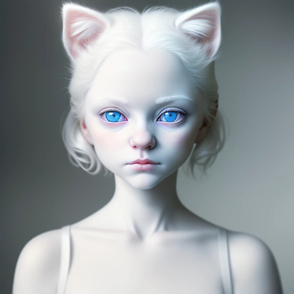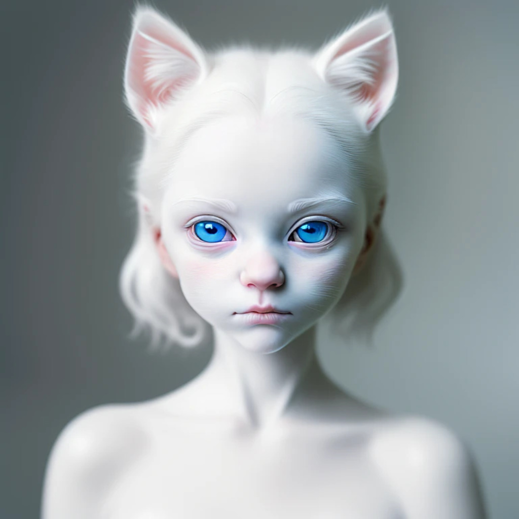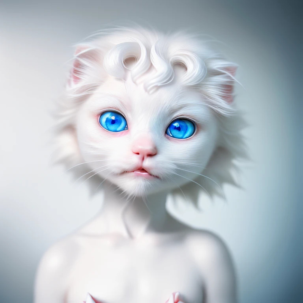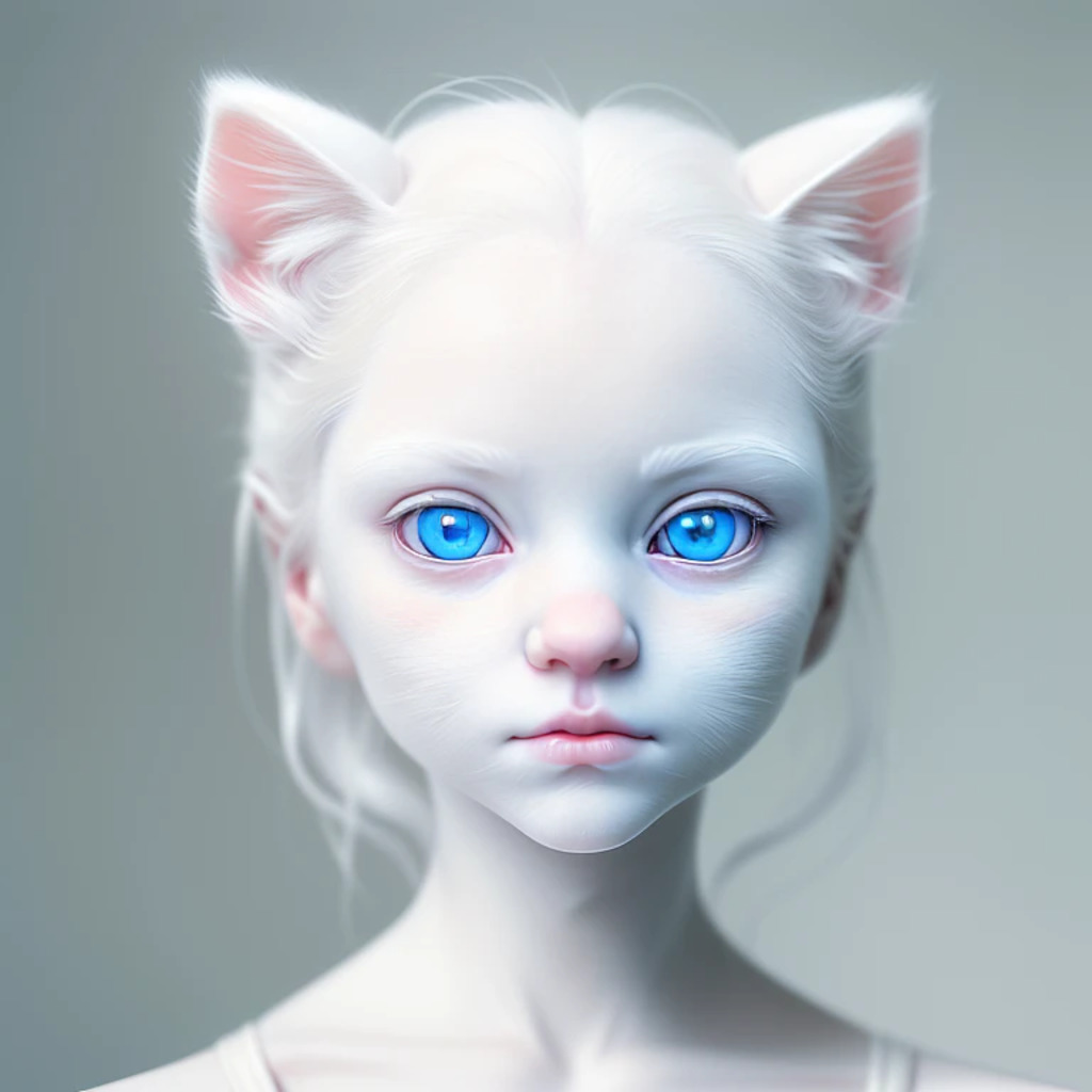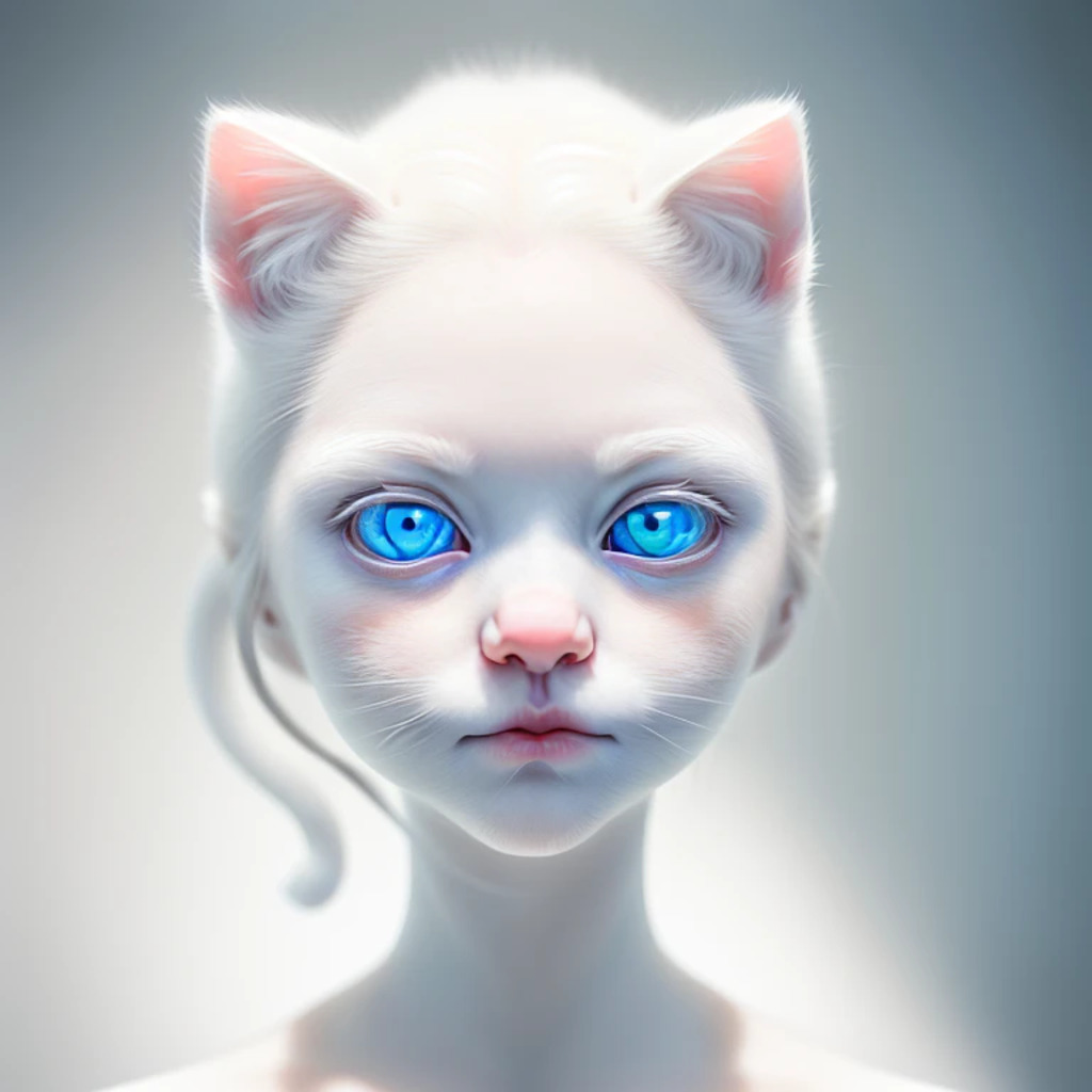 (hyperrealism : 1. 4), (award winning: 1. 4) (masterpiece photo: 1. 4) BREAK a portrait photography of a very cute albino (white kitten: white girl: 0. 5), beautiful (blue eyes) BREAK (8K UHD:1. 2), (photorealistic: 1. 2), symmetrical, accurate, cinematic, photography, realistic, intricate detail, style art, perfect face, ultra sharp, highly detailed, highly accurate, awe-inspiring, sharp focus, dramatic light, 8k resolution, Realistic, Refined, (Dramatic Lighting: 1. 5), octane render, post production, cinema4D
