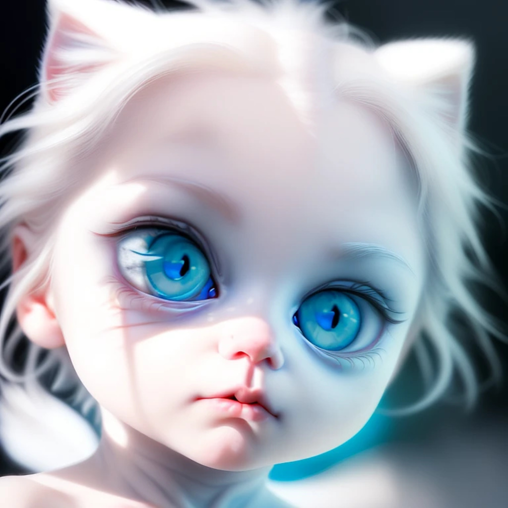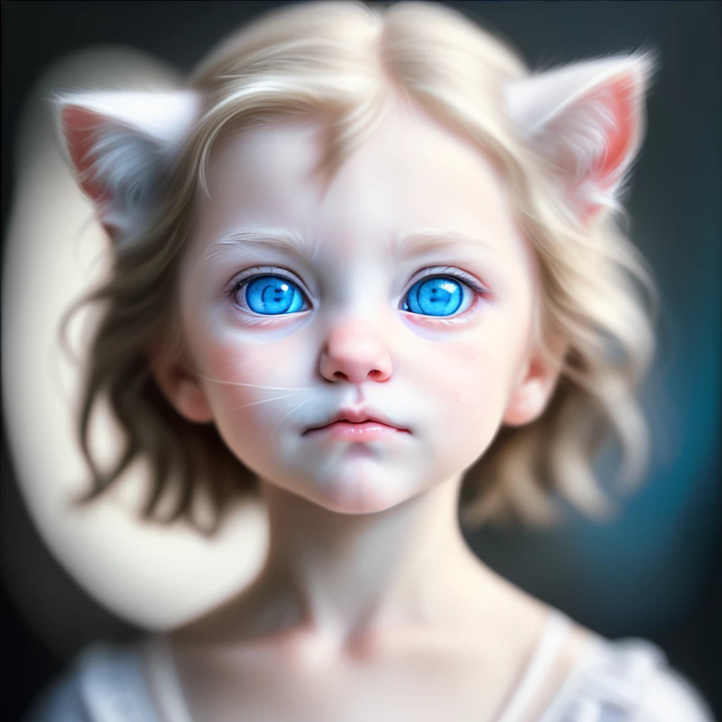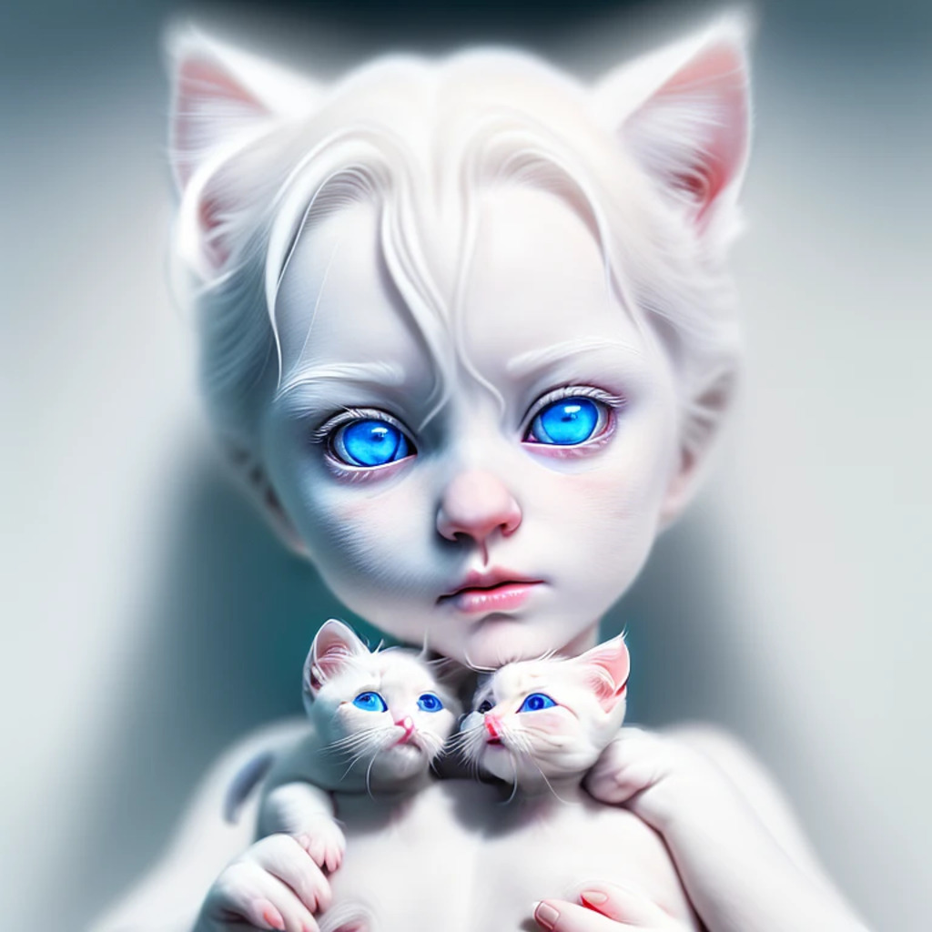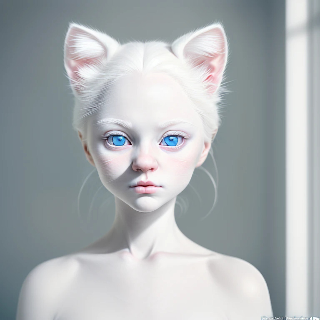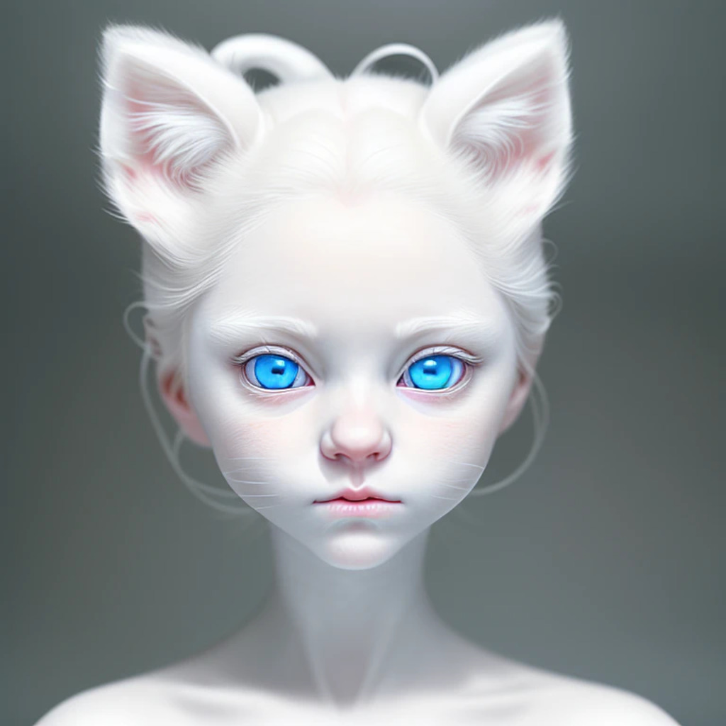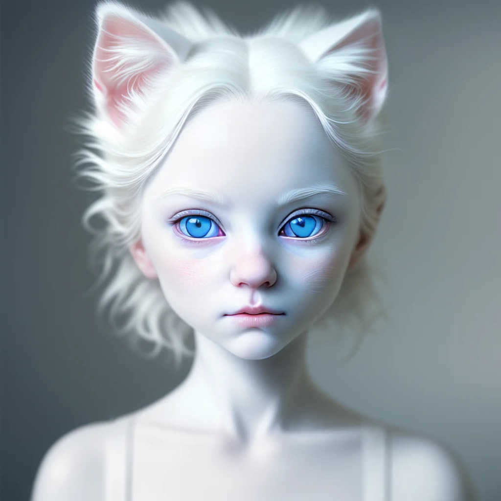 (hyperrealism : 1. 4), (award winning: 1. 4) (masterpiece photo: 1. 4) BREAK a portrait photography of a very cute albino (white kitten: white girl: 0. 5), beautiful (blue eyes) BREAK (8K UHD:1. 2), (photorealistic: 1. 2), symmetrical, accurate, cinematic, photography, realistic, intricate detail, style art, perfect face, ultra sharp, highly detailed, highly accurate, awe-inspiring, sharp focus, dramatic light, 8k resolution, Realistic, Refined, (Dramatic Lighting: 1. 5), octane render, post production, cinema4D