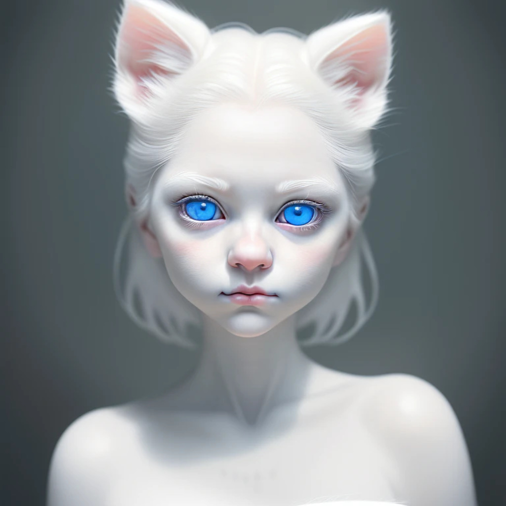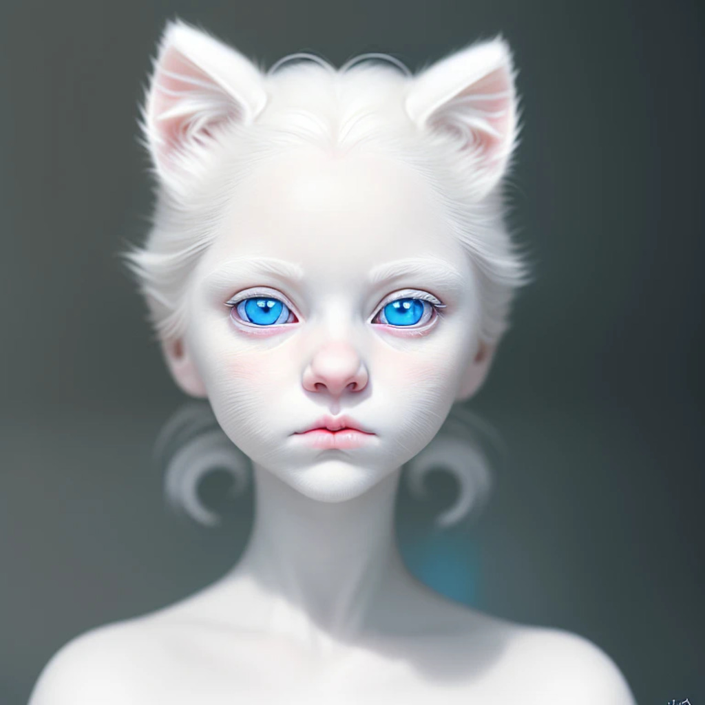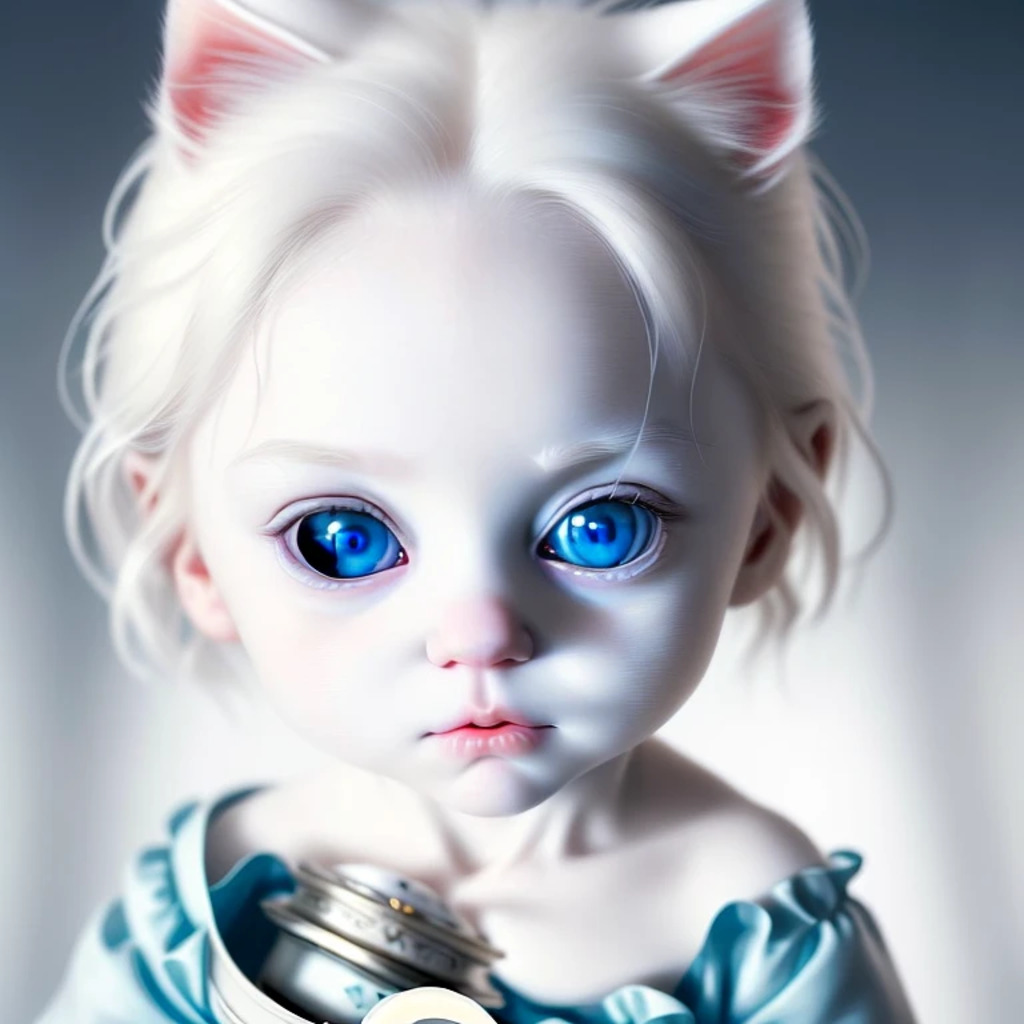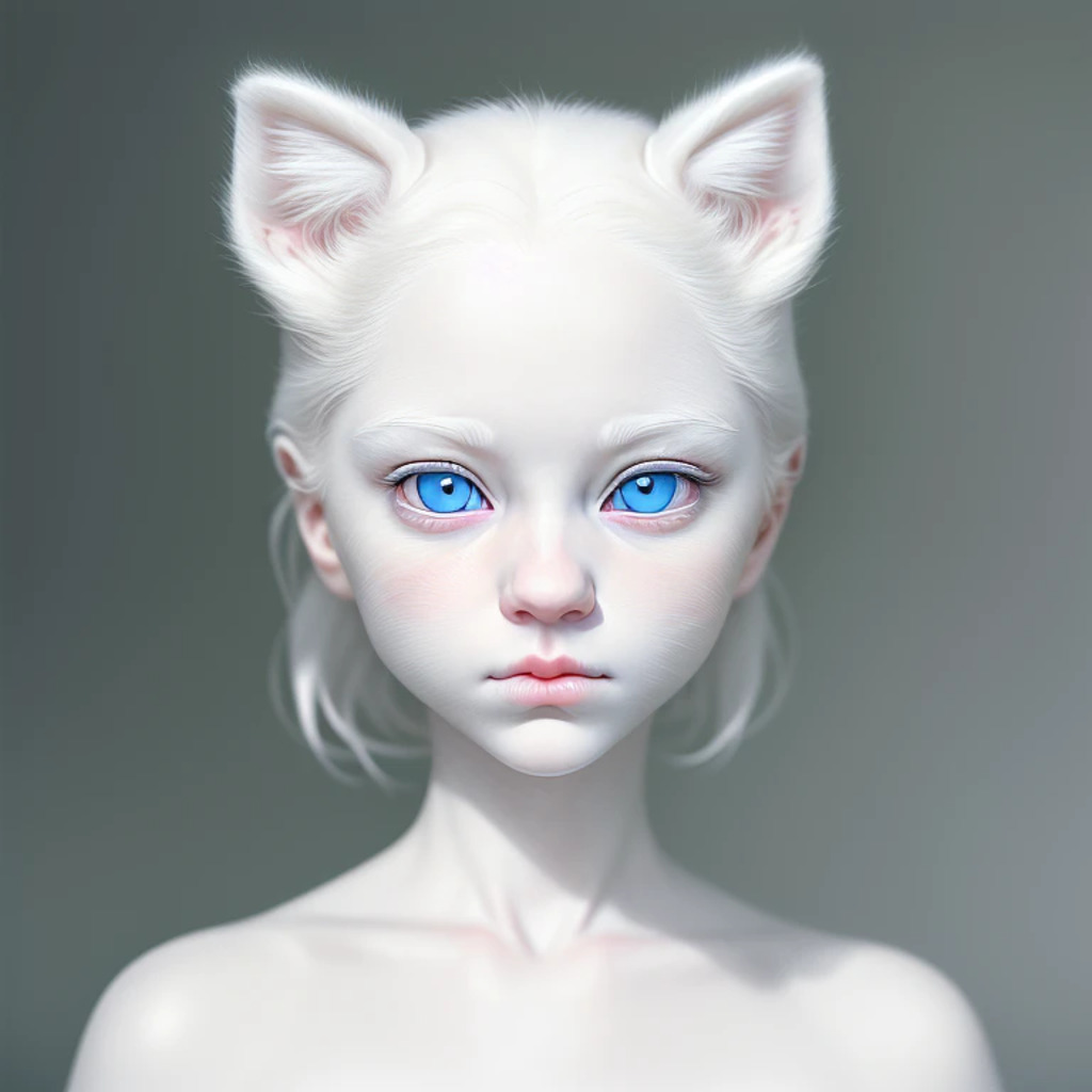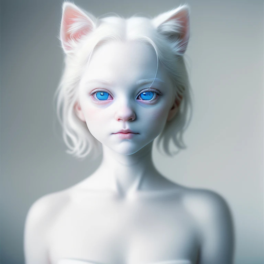 (hyperrealism : 1. 4), (award winning: 1. 4) (masterpiece photo: 1. 4) BREAK a portrait photography of a very cute albino (white kitten: white girl: 0. 5), beautiful (blue eyes) BREAK (8K UHD:1. 2), (photorealistic: 1. 2), symmetrical, accurate, cinematic, photography, realistic, intricate detail, style art, perfect face, ultra sharp, highly detailed, highly accurate, awe-inspiring, sharp focus, dramatic light, 8k resolution, Realistic, Refined, (Dramatic Lighting: 1. 5), octane render, post production, cinema4D