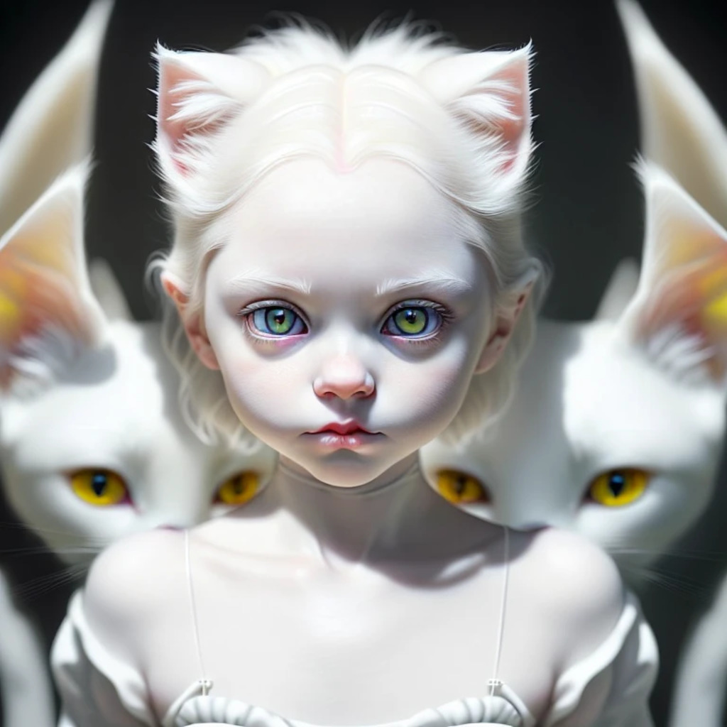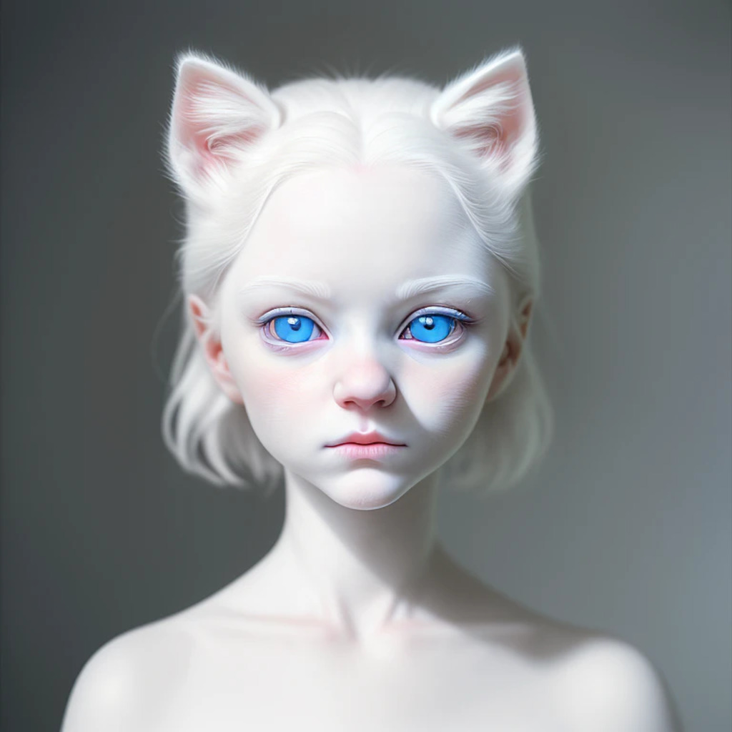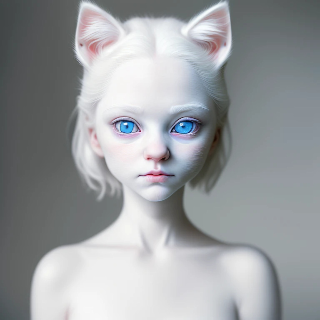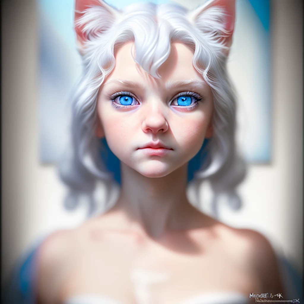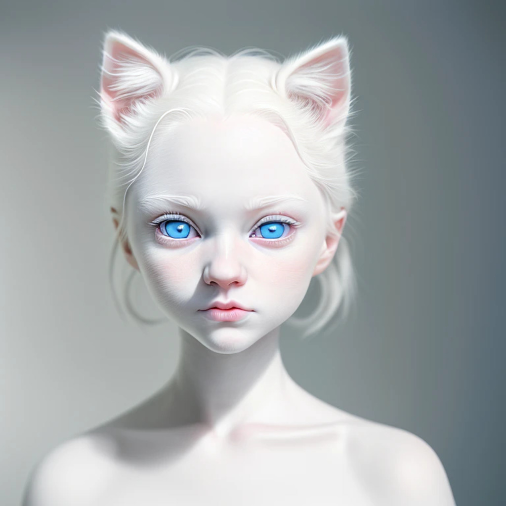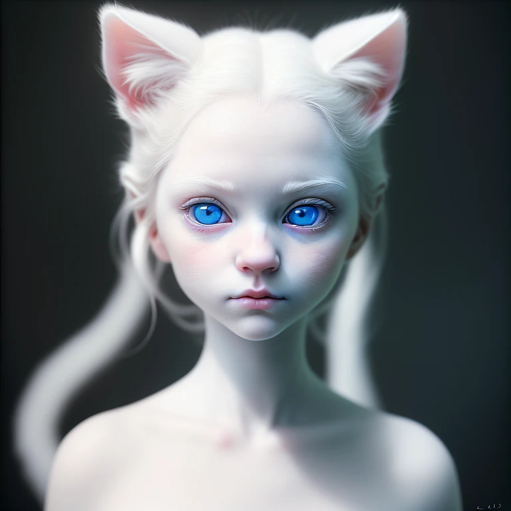 (hyperrealism : 1. 4), (award winning: 1. 4) (masterpiece photo: 1. 4) BREAK a portrait photography of a very cute albino (white kitten: white girl: 0. 5), beautiful (blue eyes) BREAK (8K UHD:1. 2), (photorealistic: 1. 2), symmetrical, accurate, cinematic, photography, realistic, intricate detail, style art, perfect face, ultra sharp, highly detailed, highly accurate, awe-inspiring, sharp focus, dramatic light, 8k resolution, Realistic, Refined, (Dramatic Lighting: 1. 5), octane render, post production, cinema4D