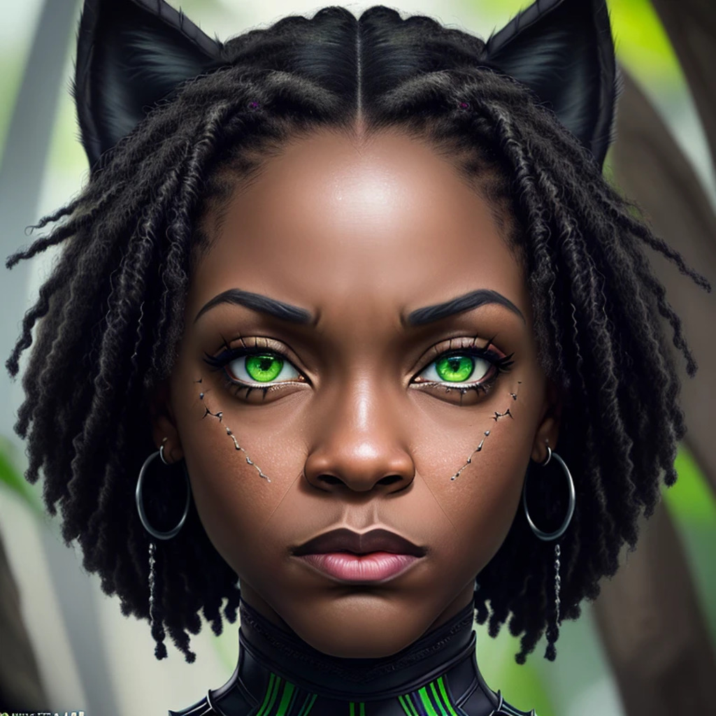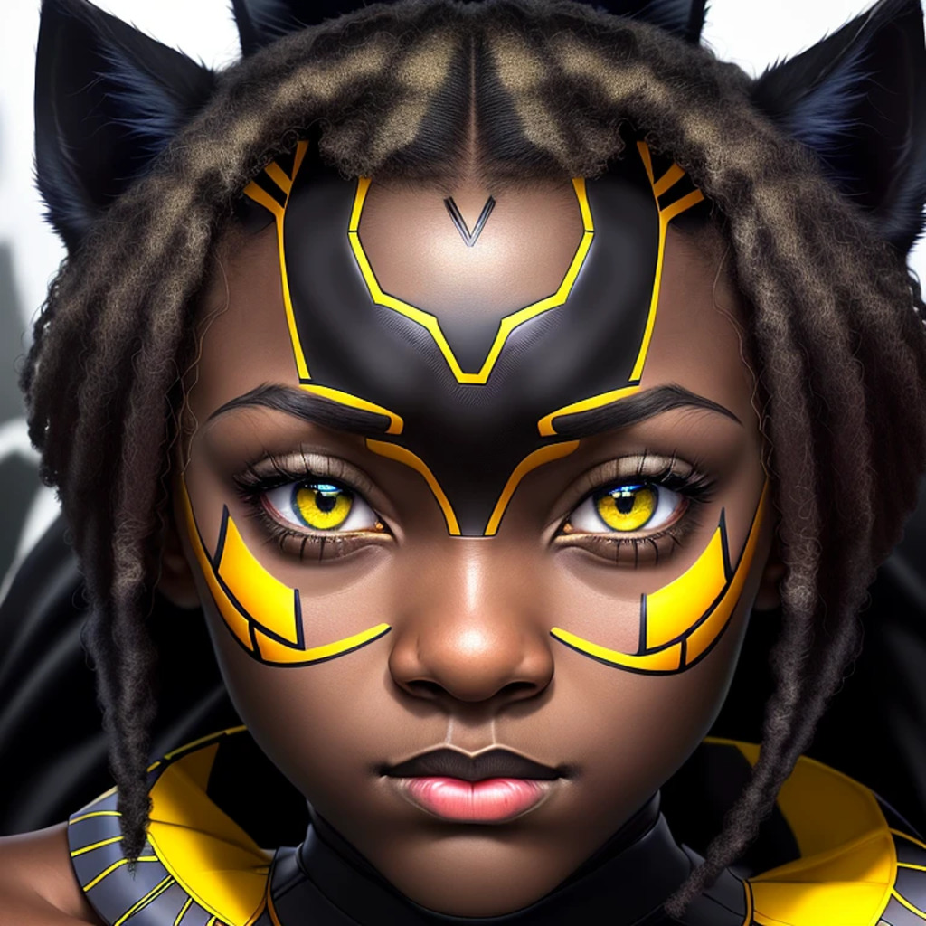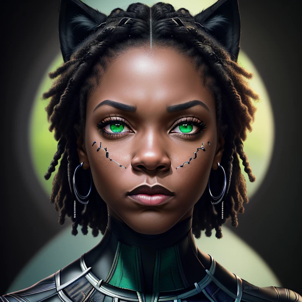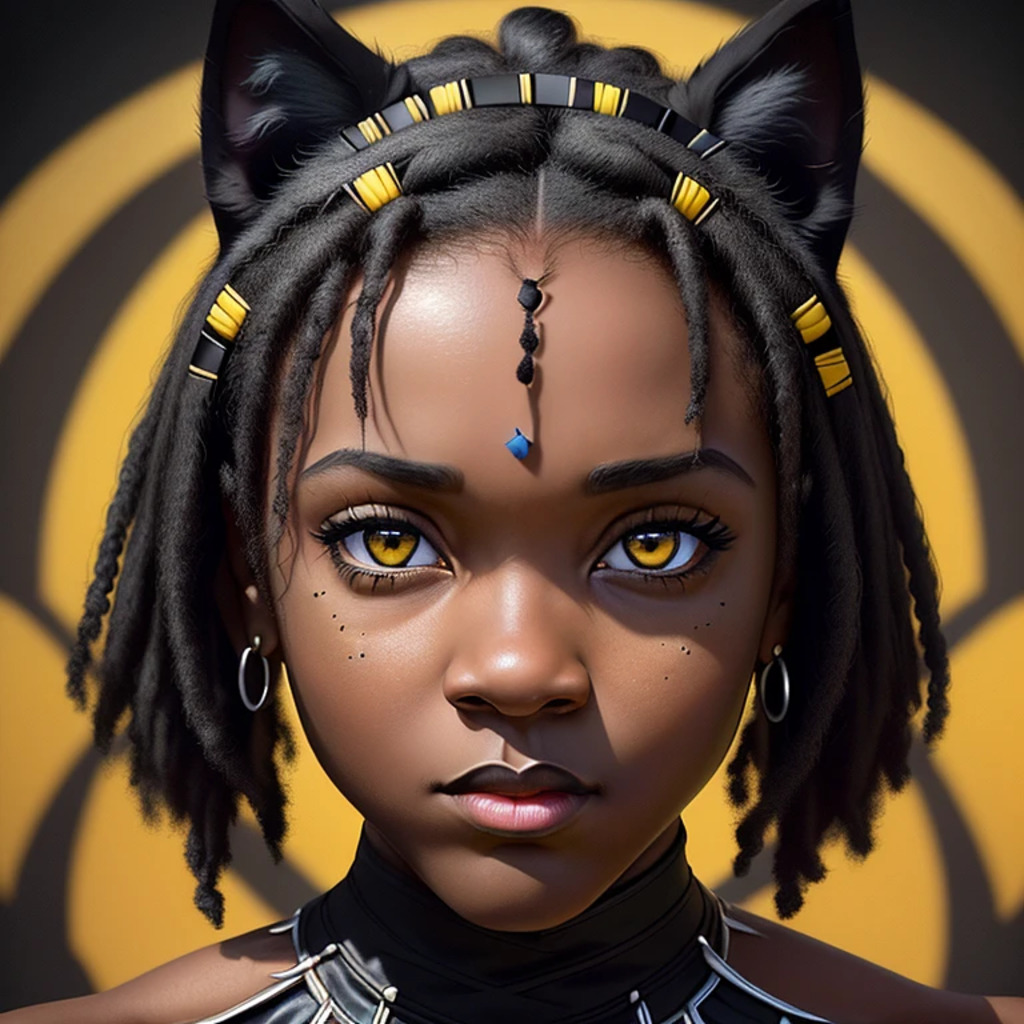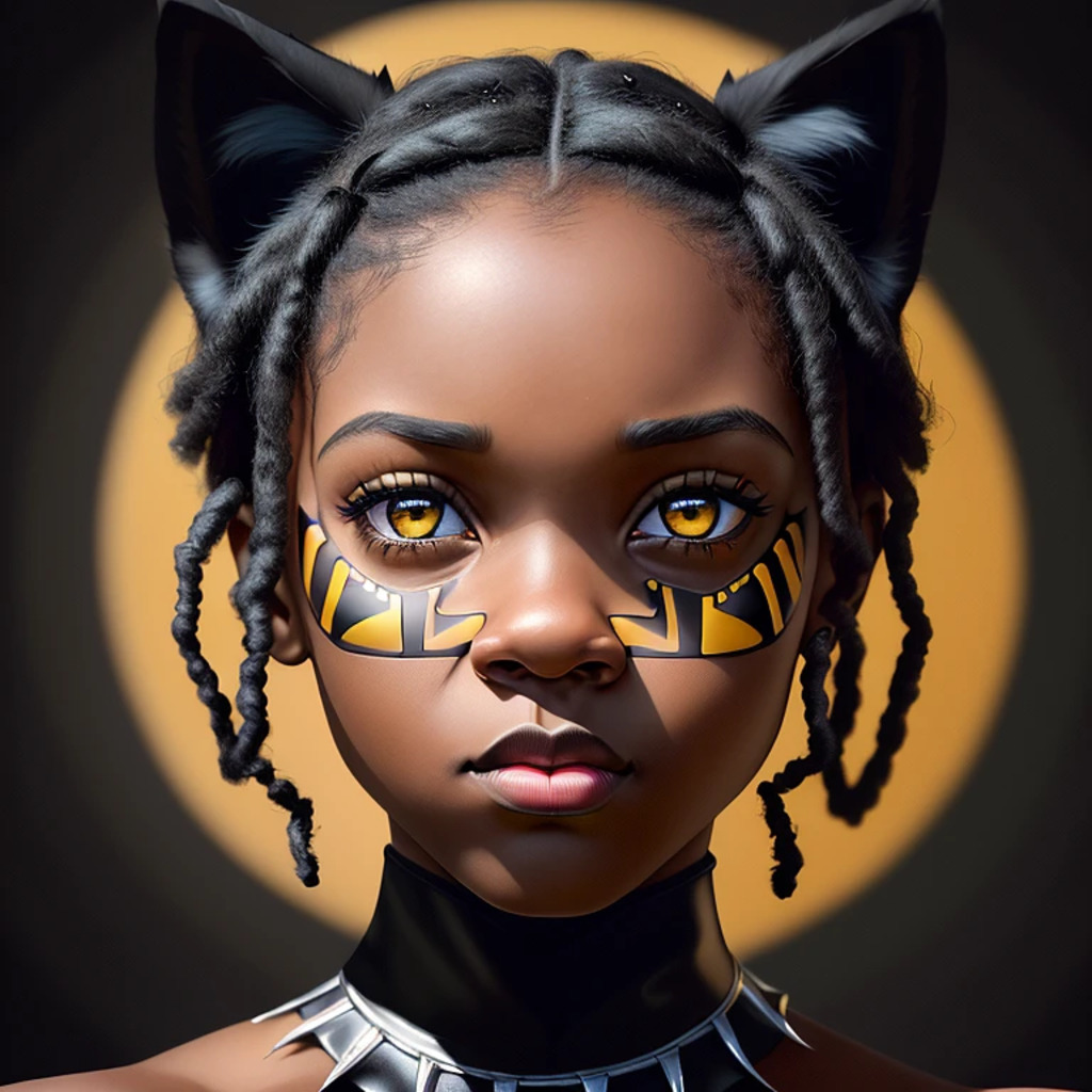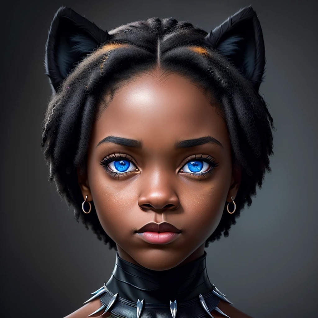 a portrait photography of a strong (black panther: black woman: 0.5), beautiful (black eyes)