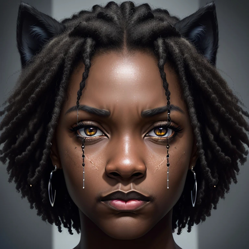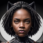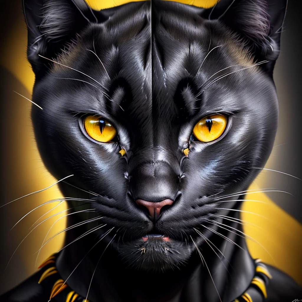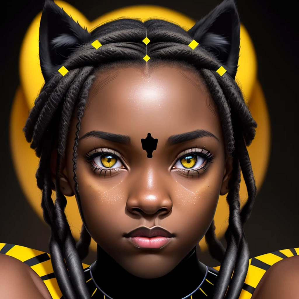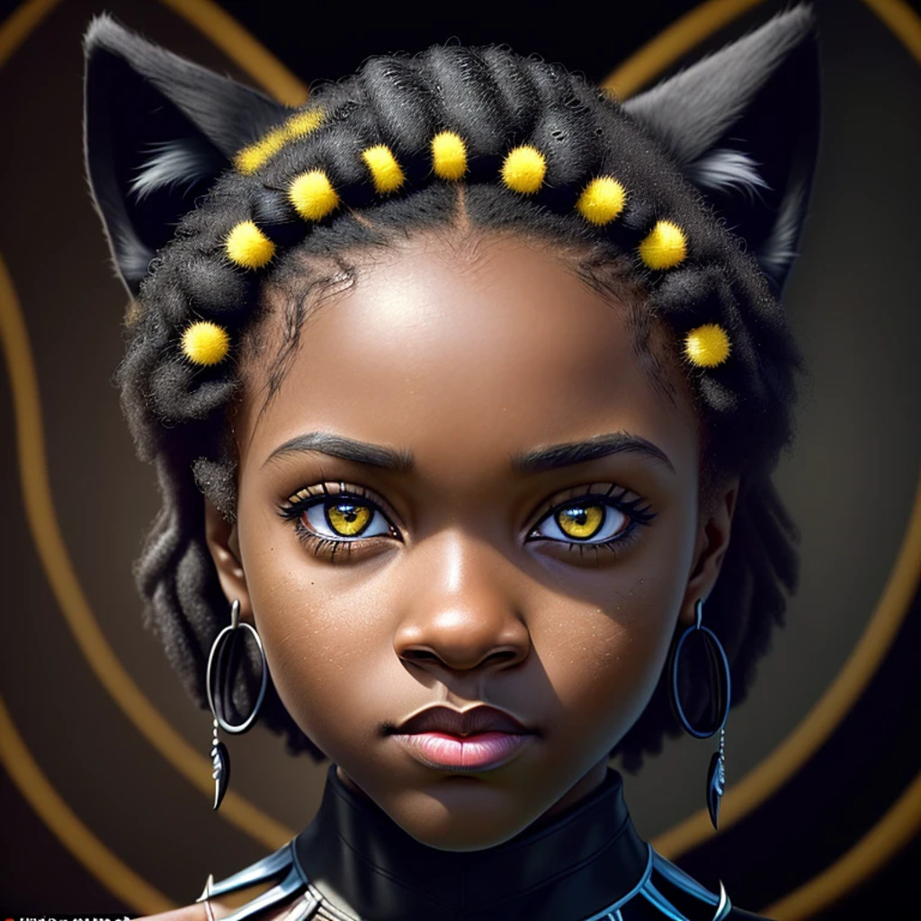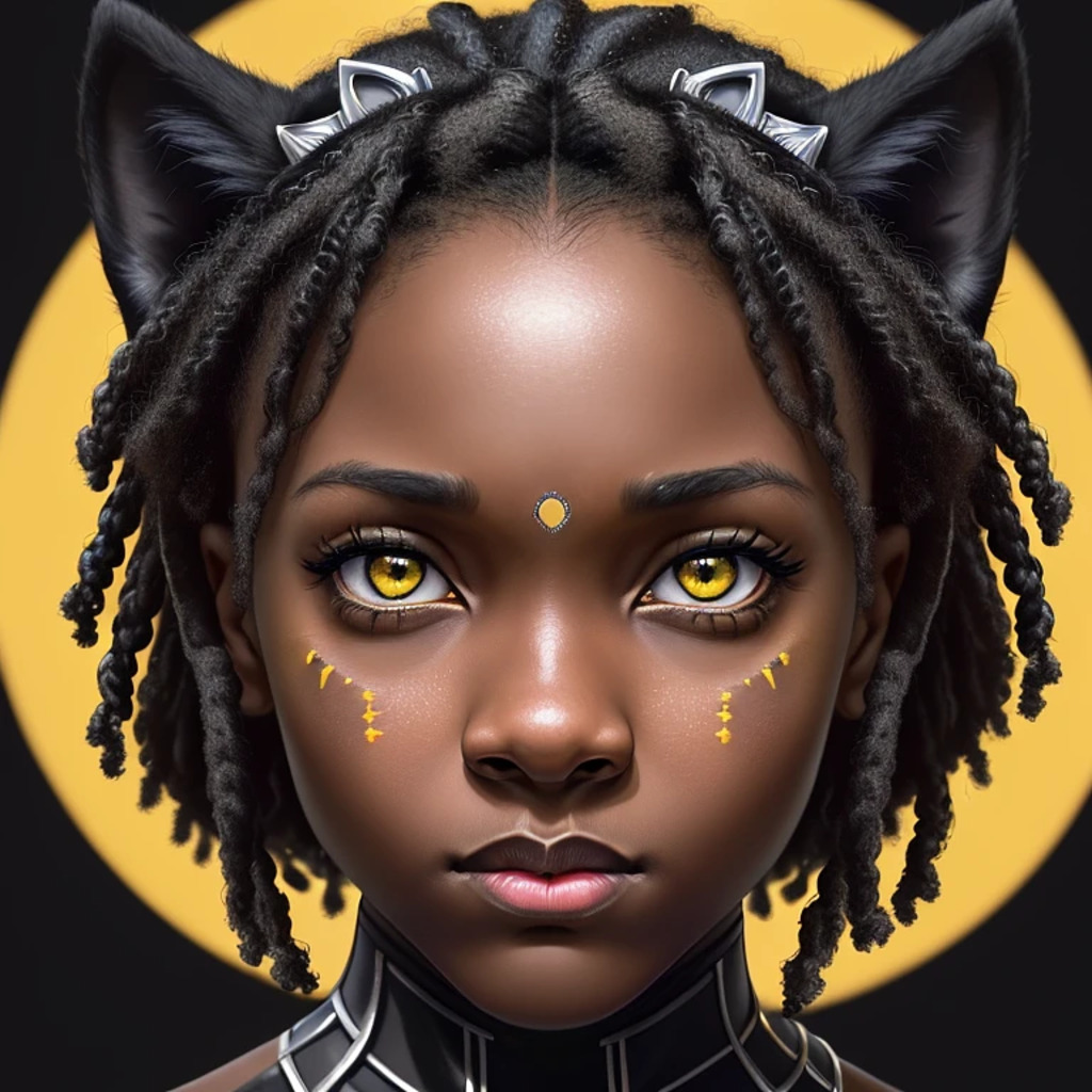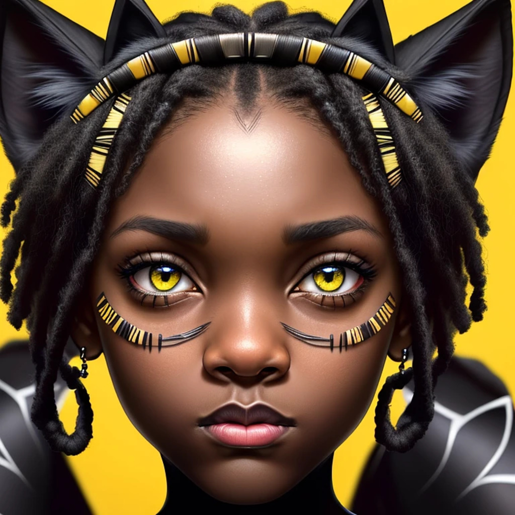 a portrait photography of a strong (black panther: black woman: 0.5), beautiful (black eyes)