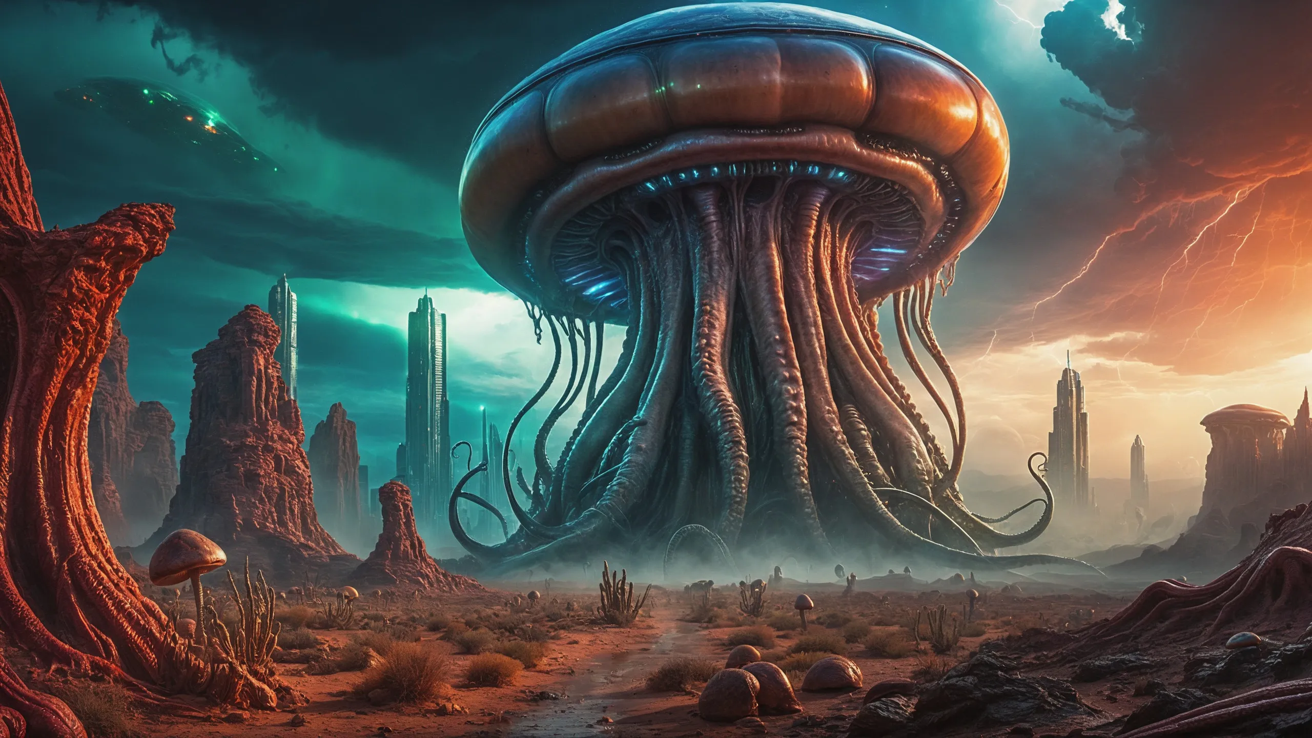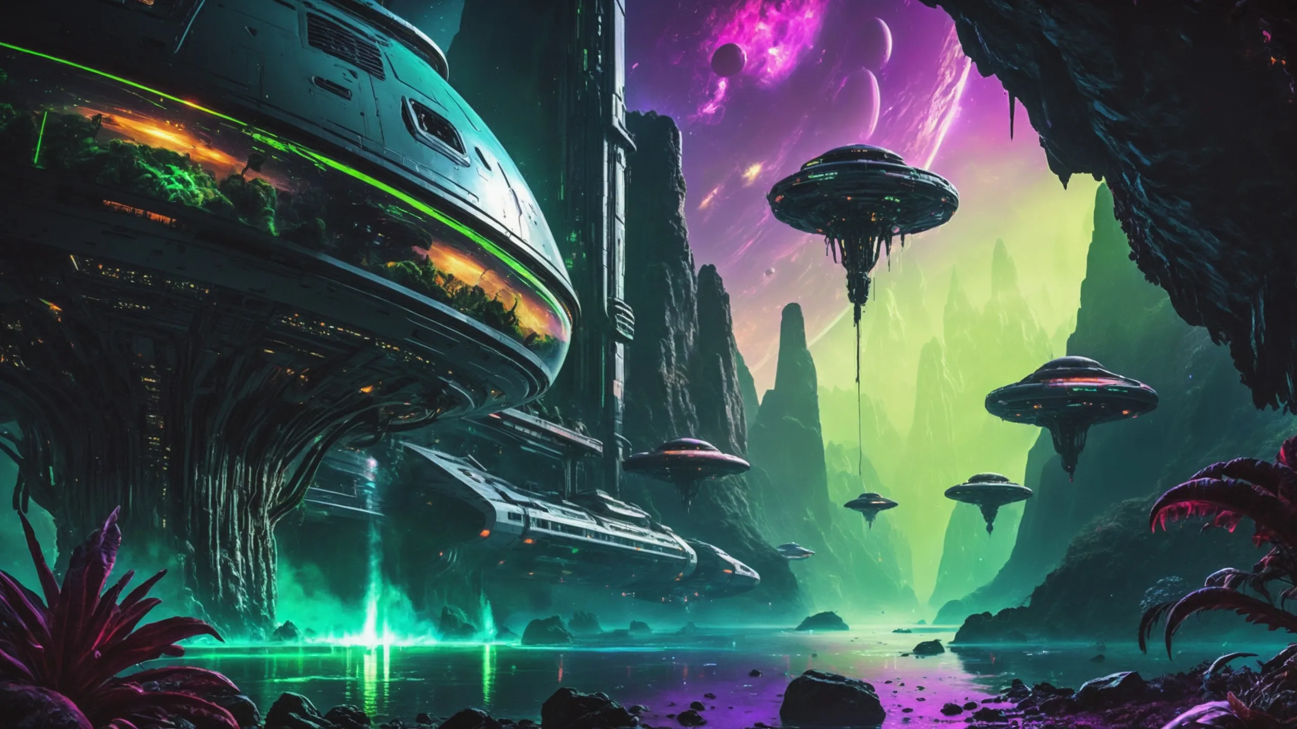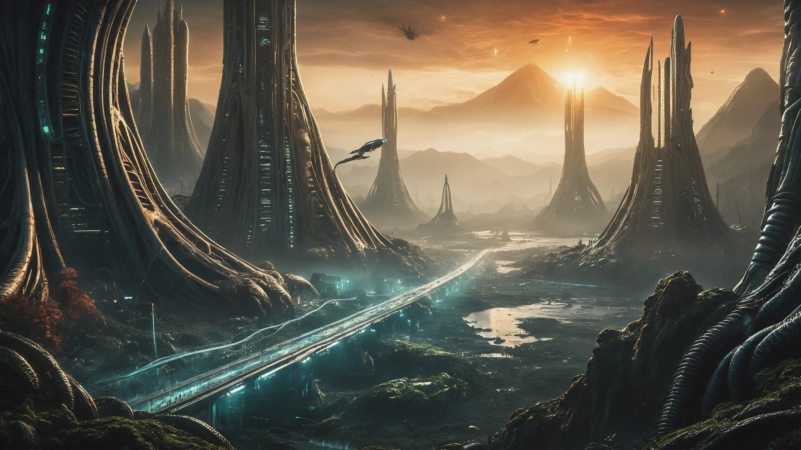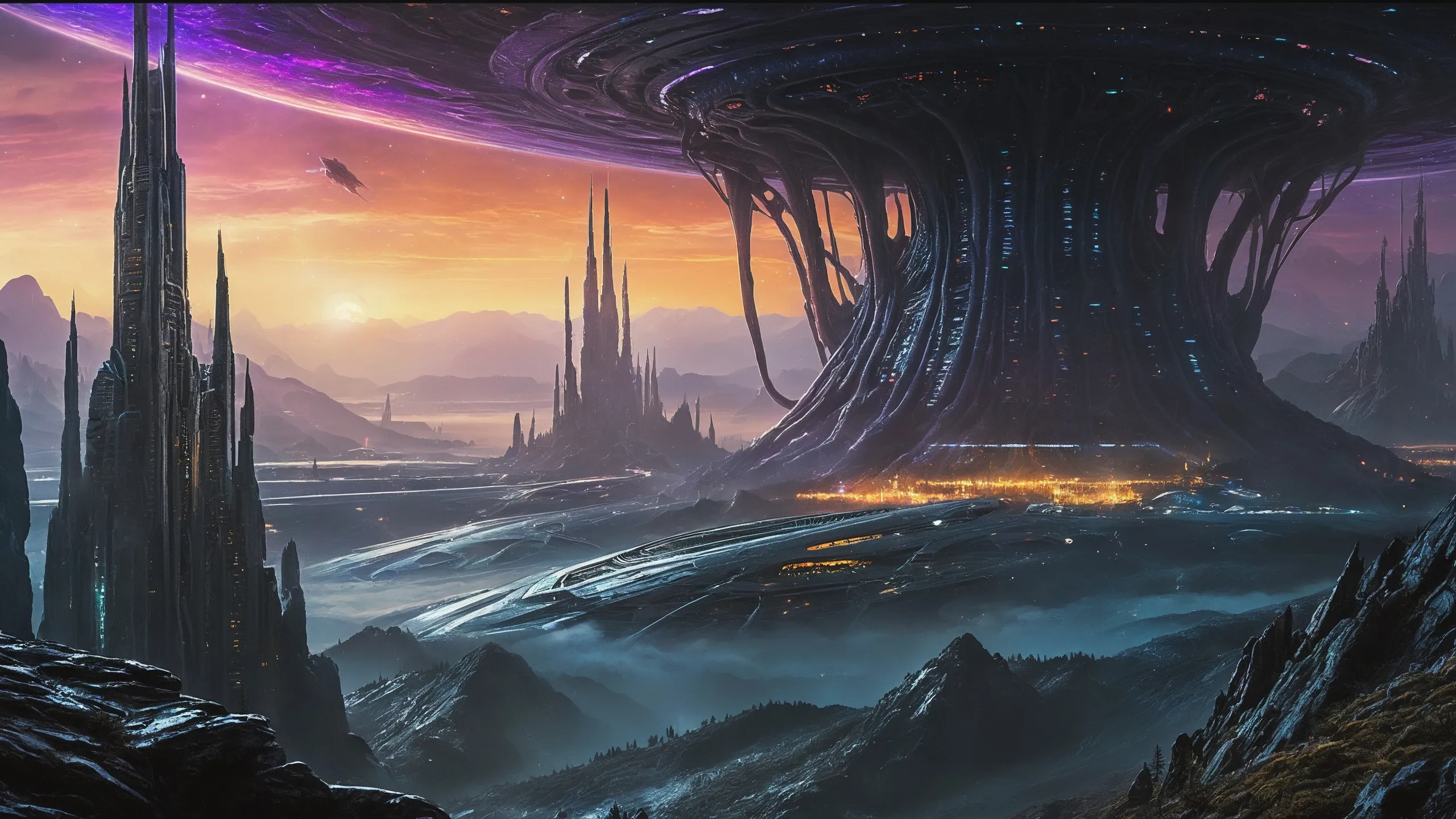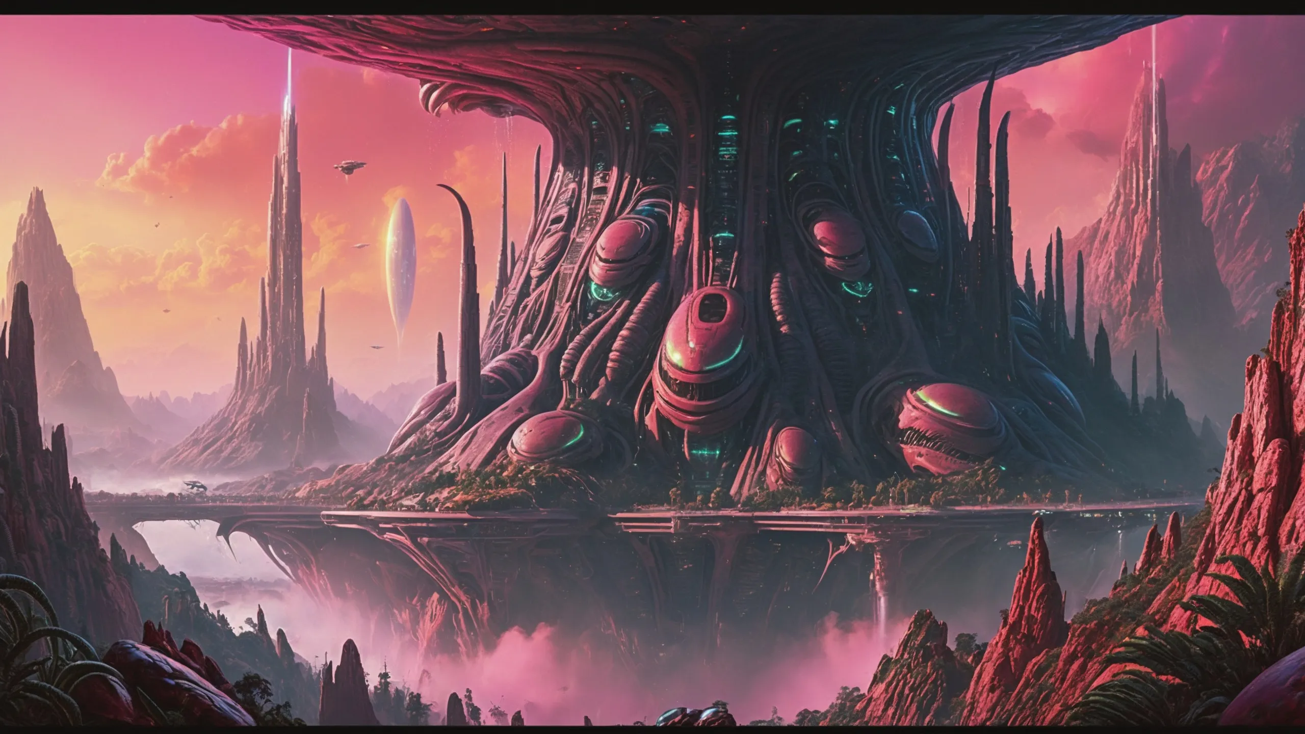 Cinematic epic scene of a (Sience Fiction, alien {mega city|cityscape|landscape|space station|outer space|world}:1.5).