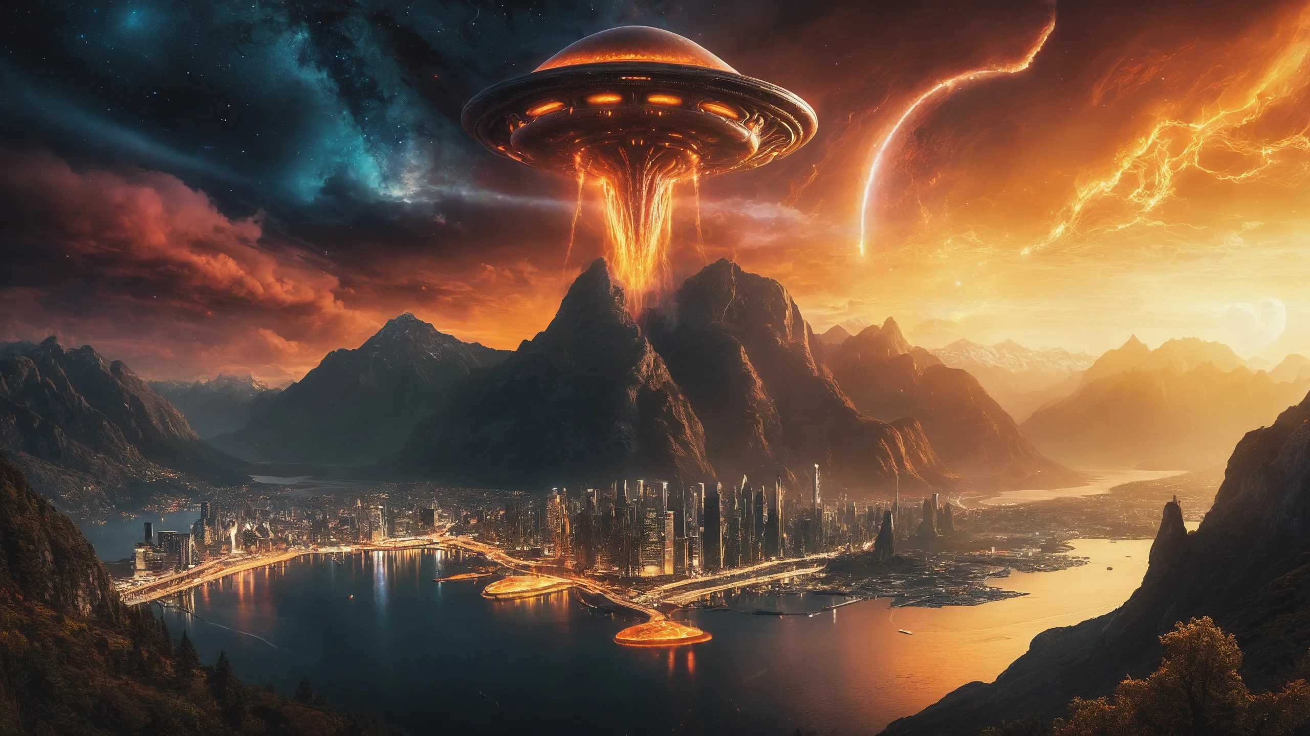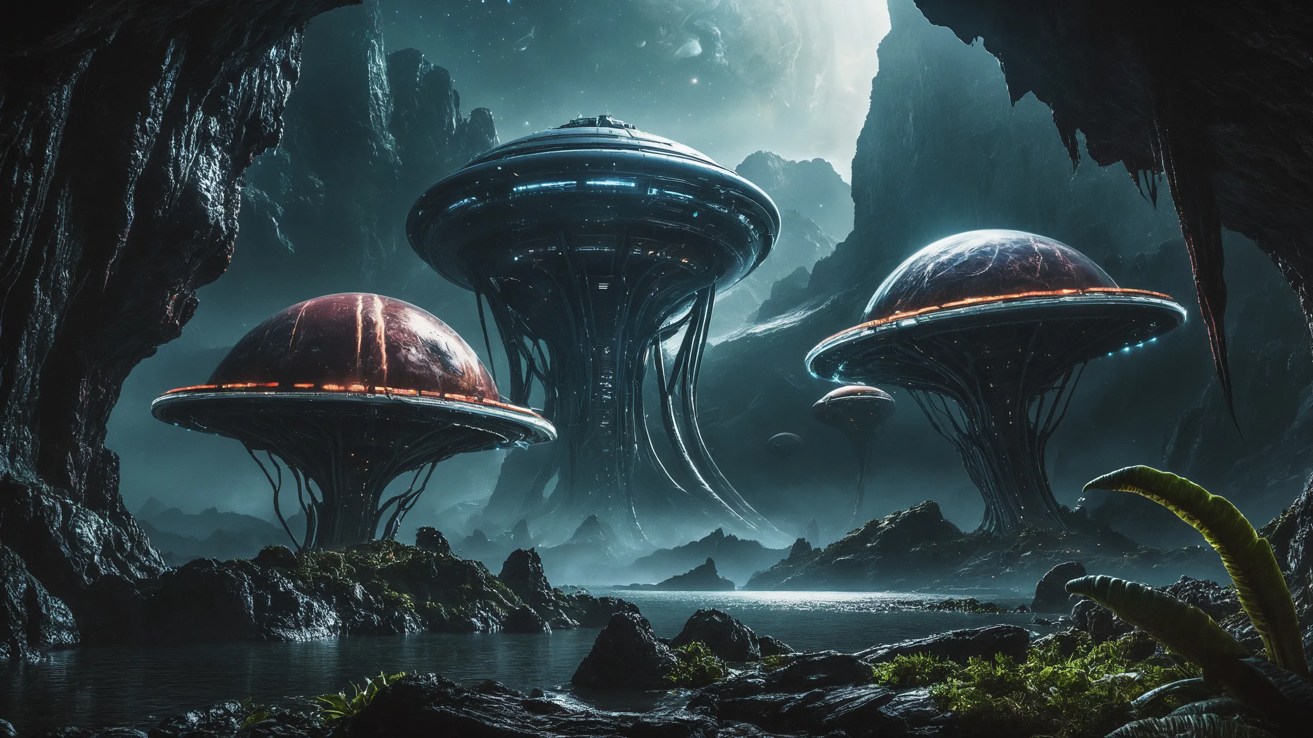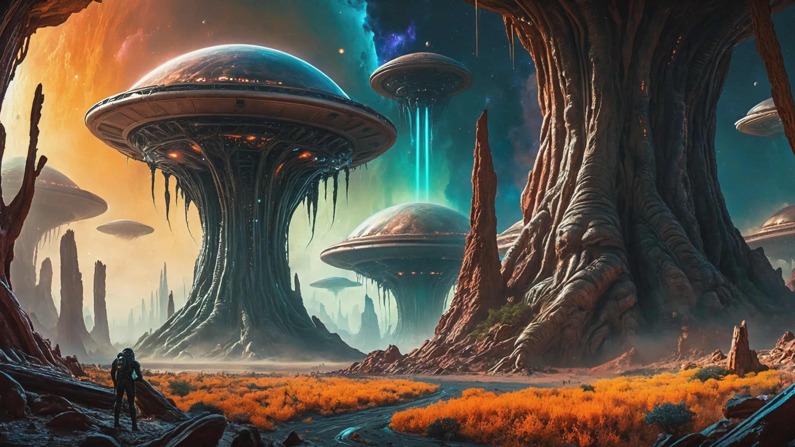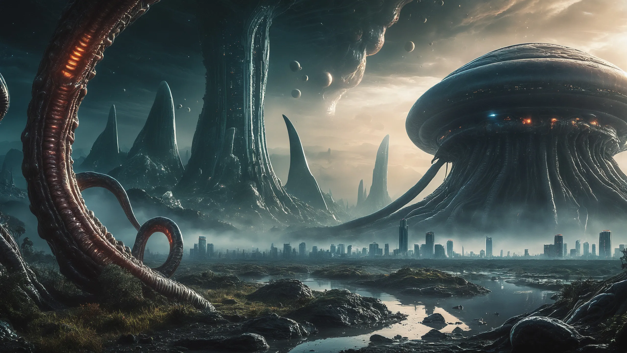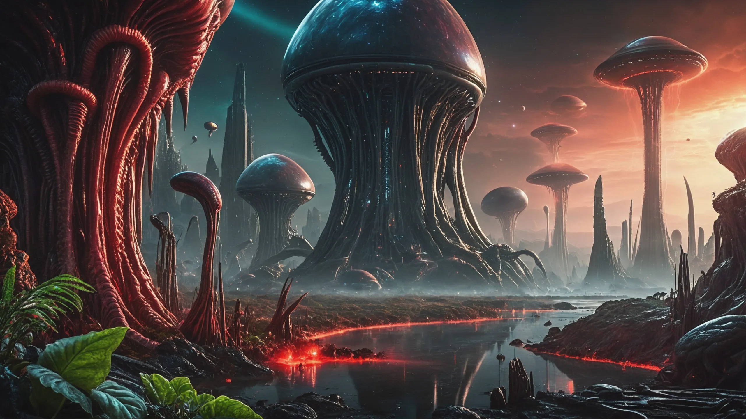 Cinematic epic scene of a (Sience Fiction, alien {mega city|cityscape|landscape|space station|outer space|world}:1.5).