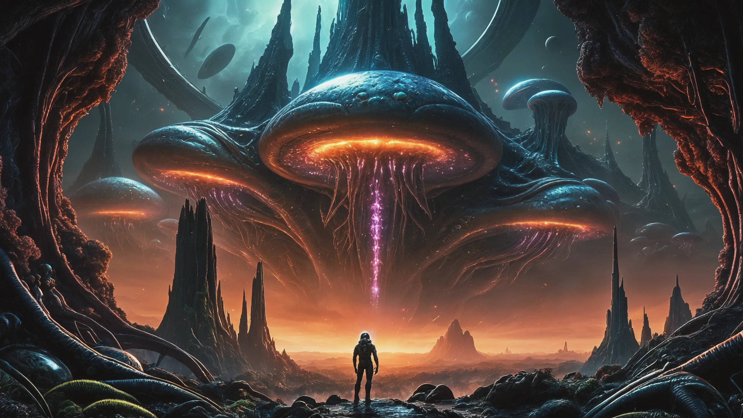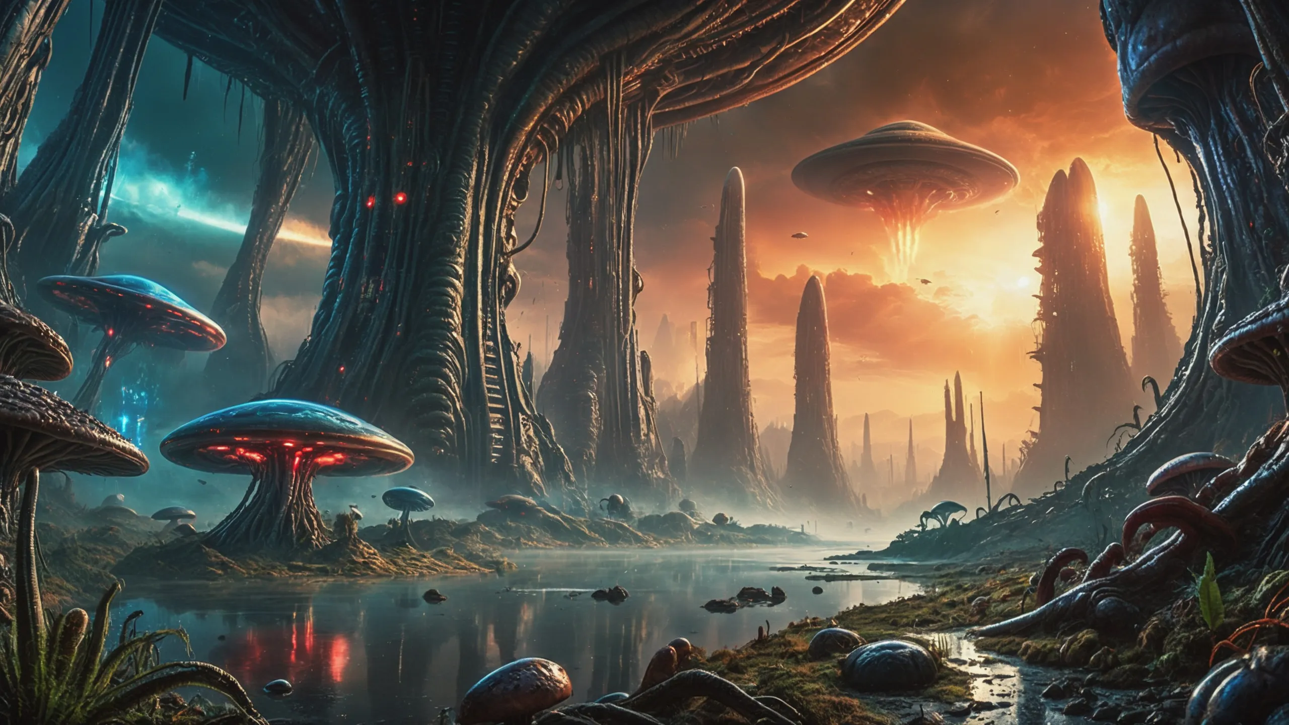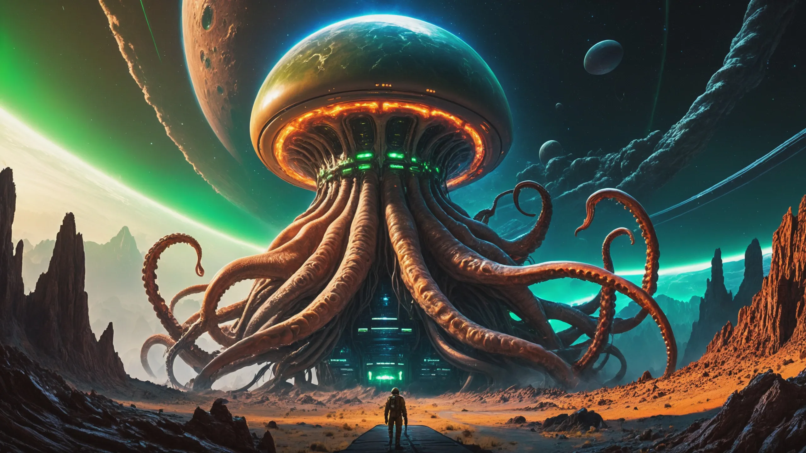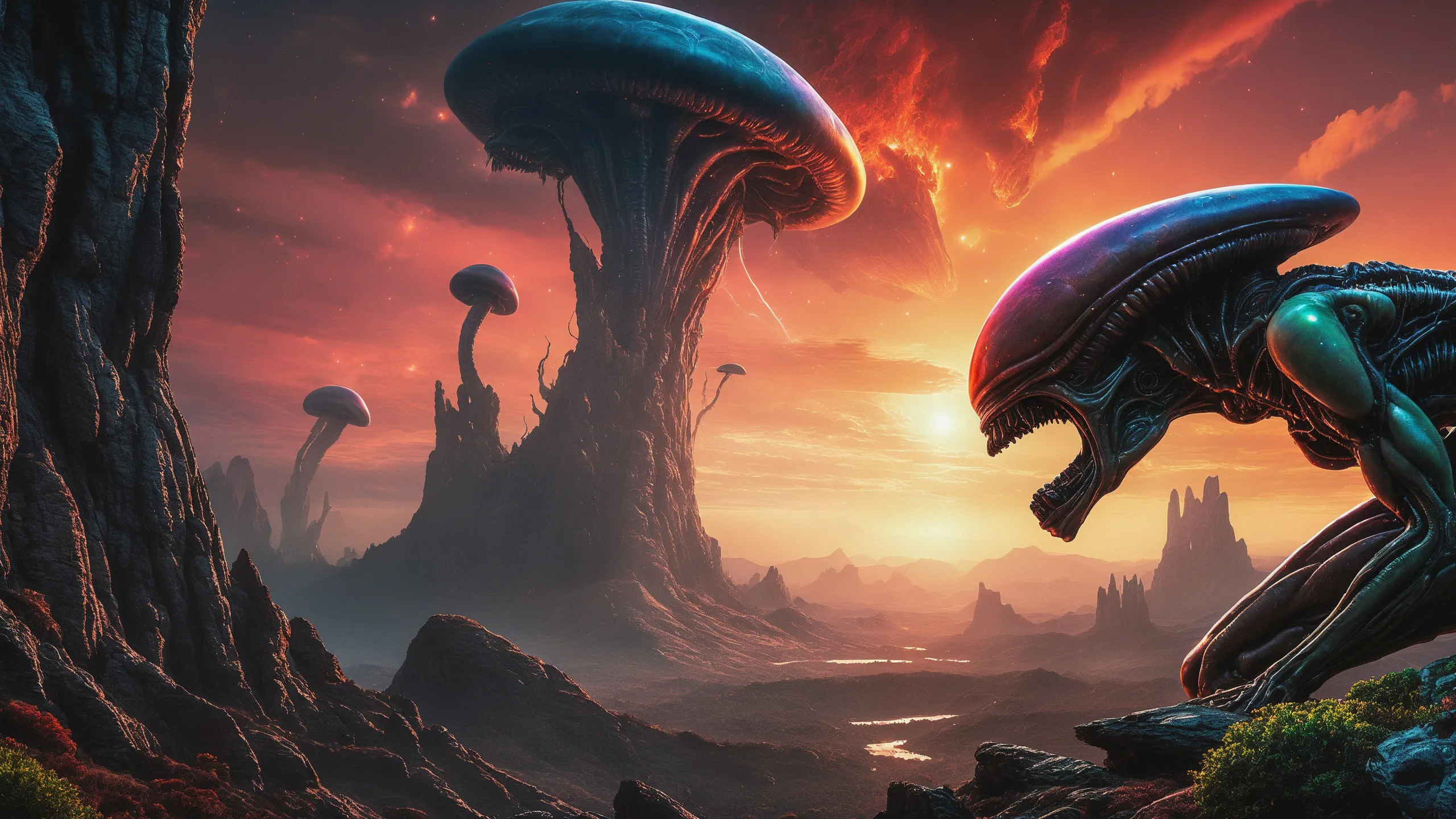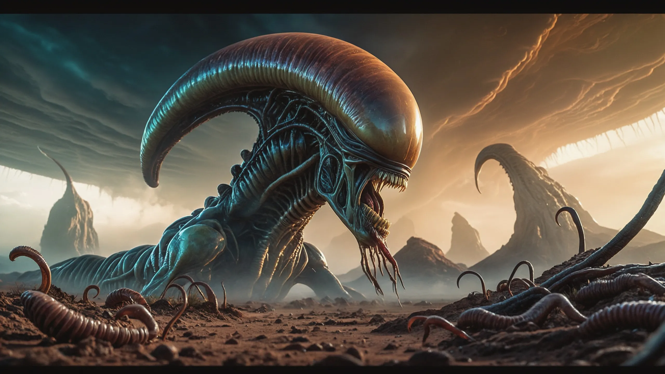 Cinematic epic scene of a (Sience Fiction, alien {mega city|cityscape|landscape|space station|outer space|world}:1.5).