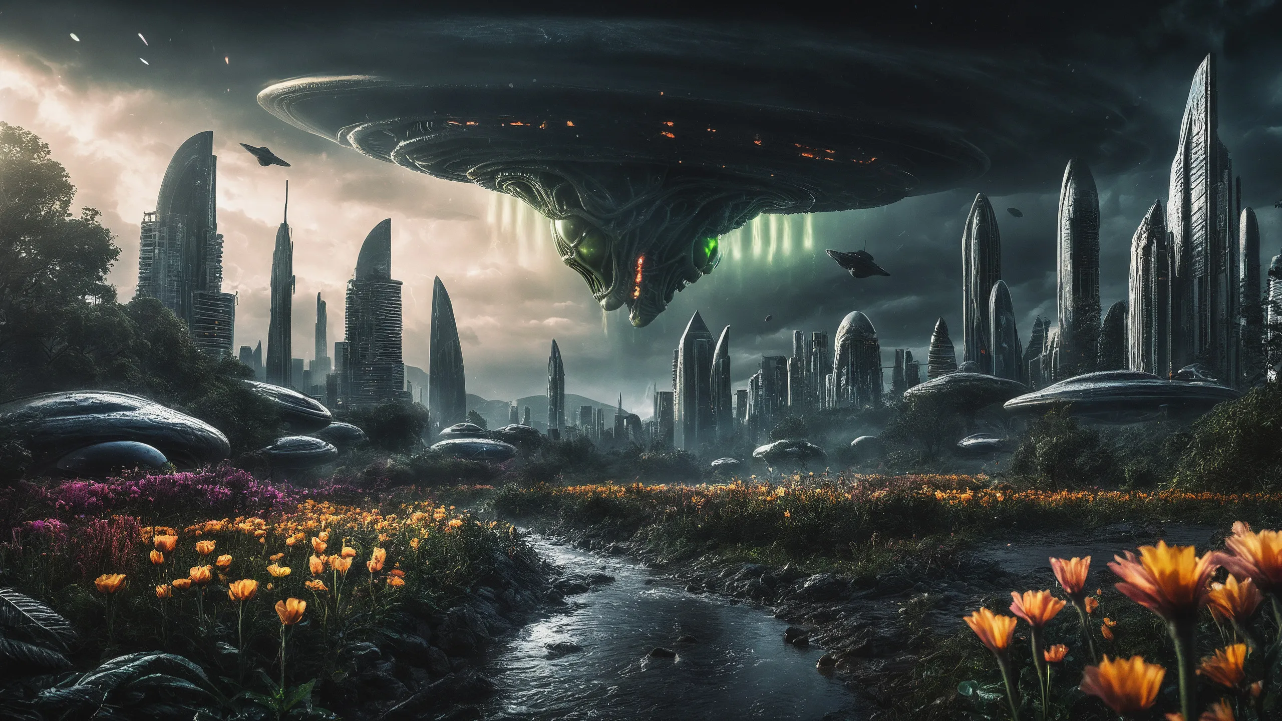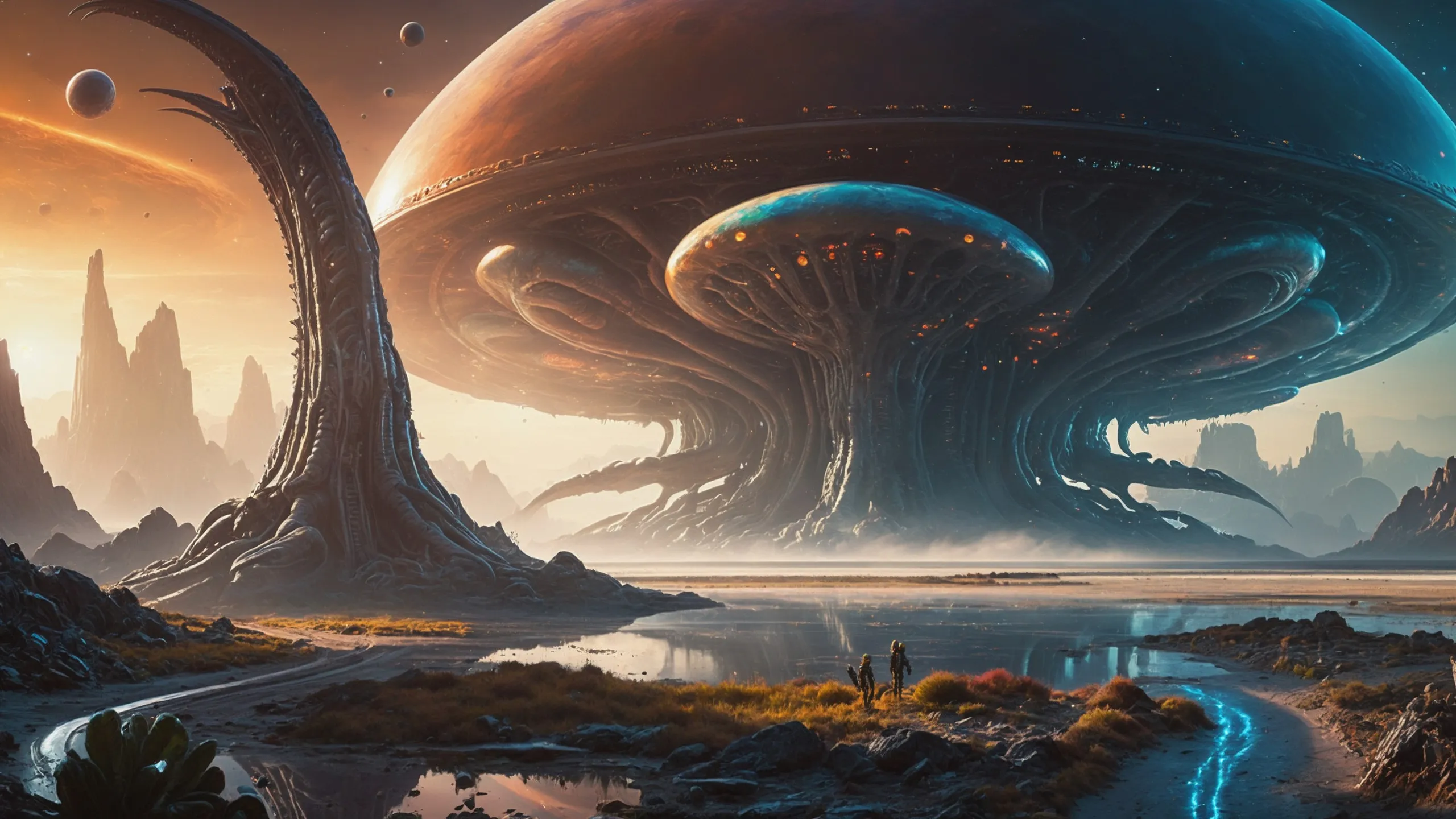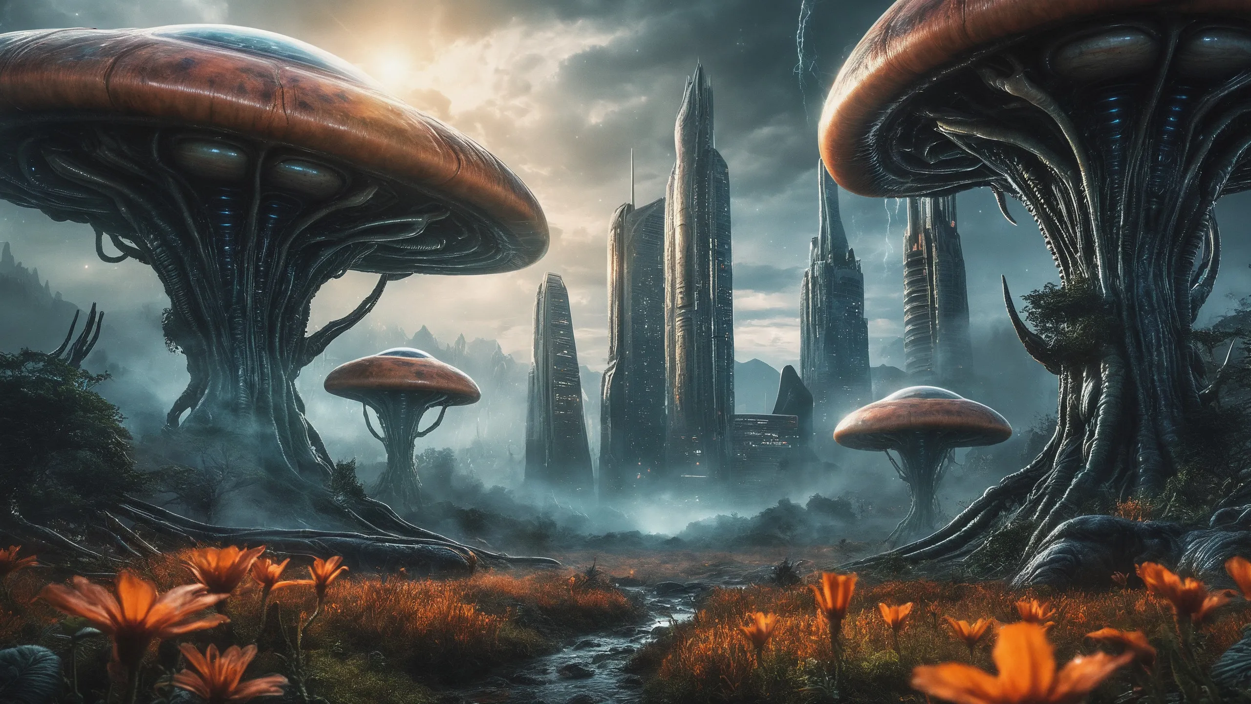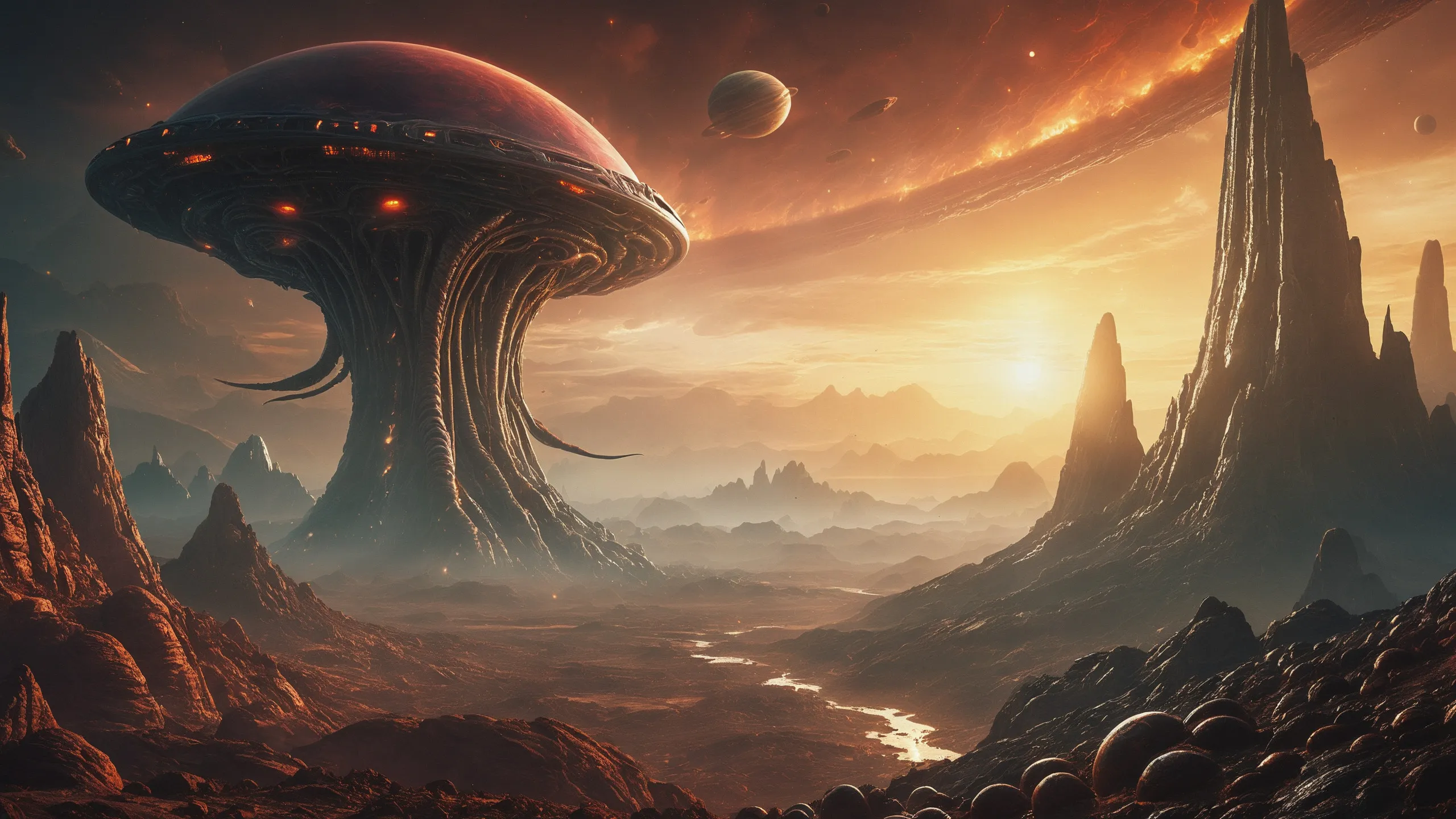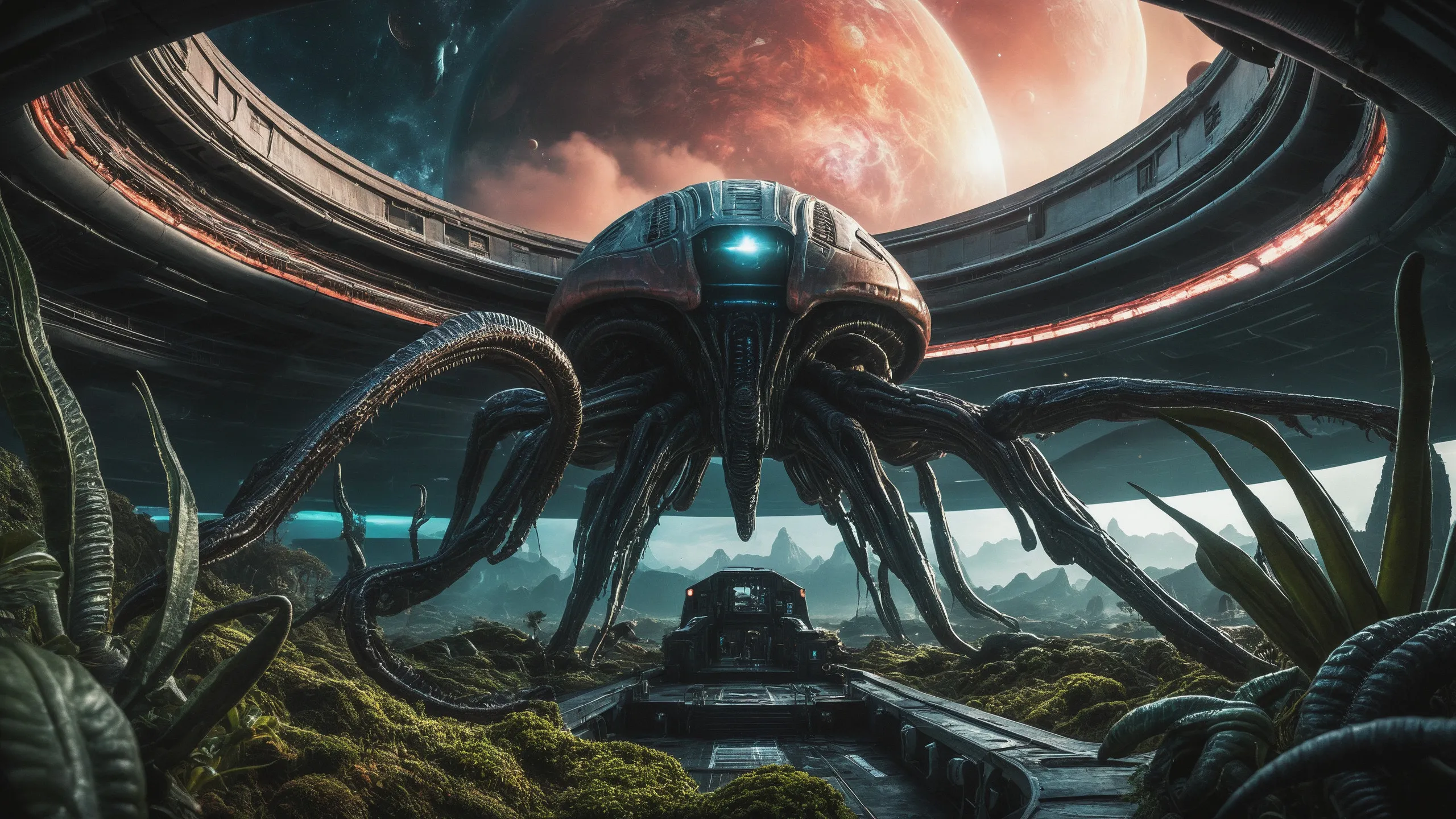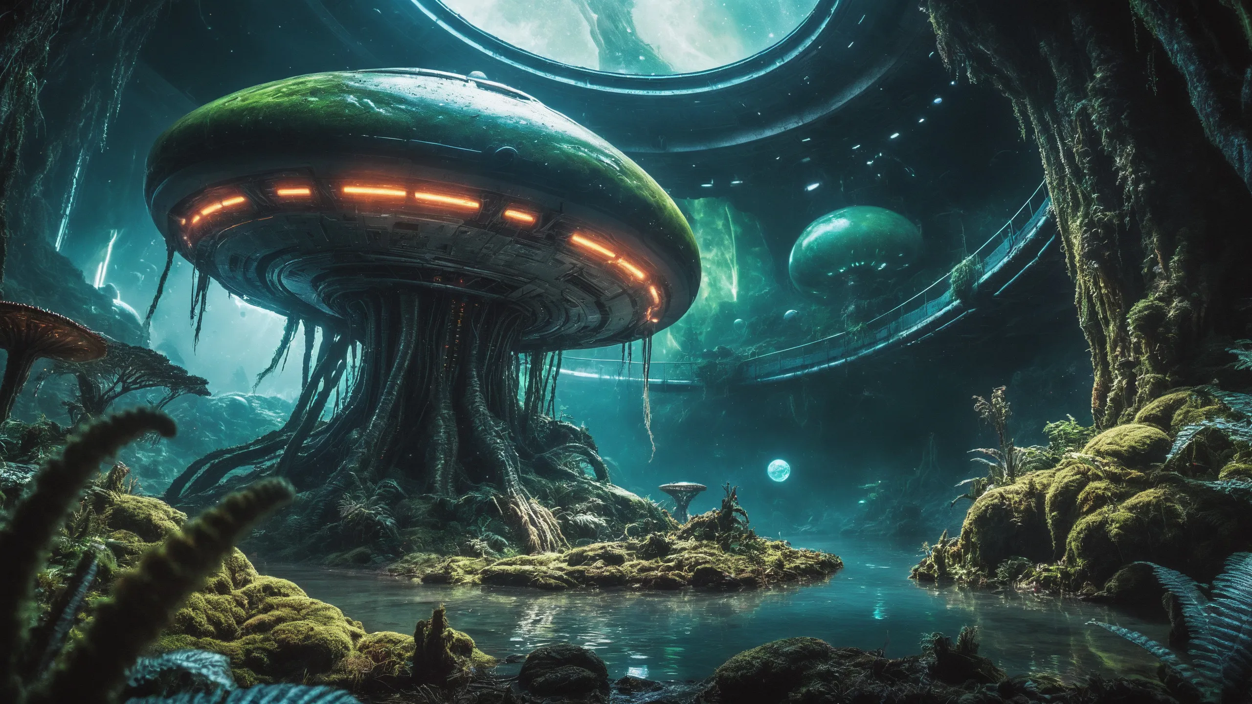 Cinematic epic scene of a (Sience Fiction, alien {mega city|cityscape|landscape|space station|outer space|world}:1.5).