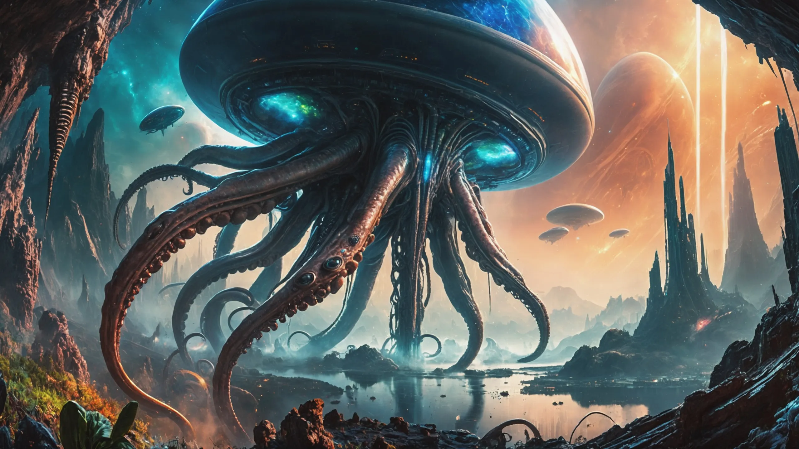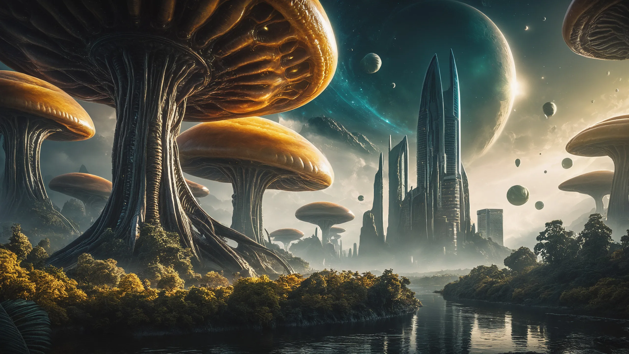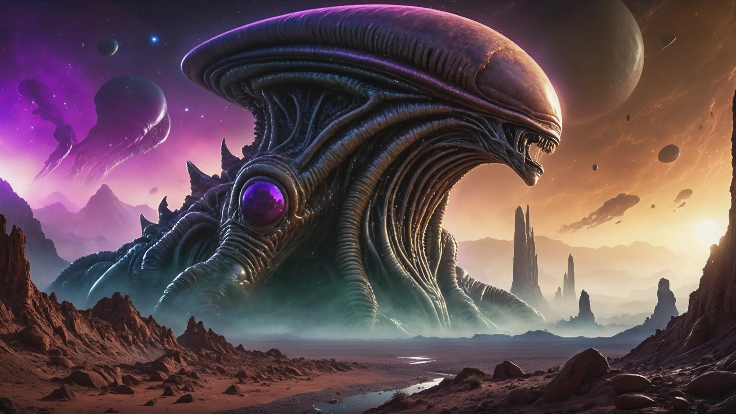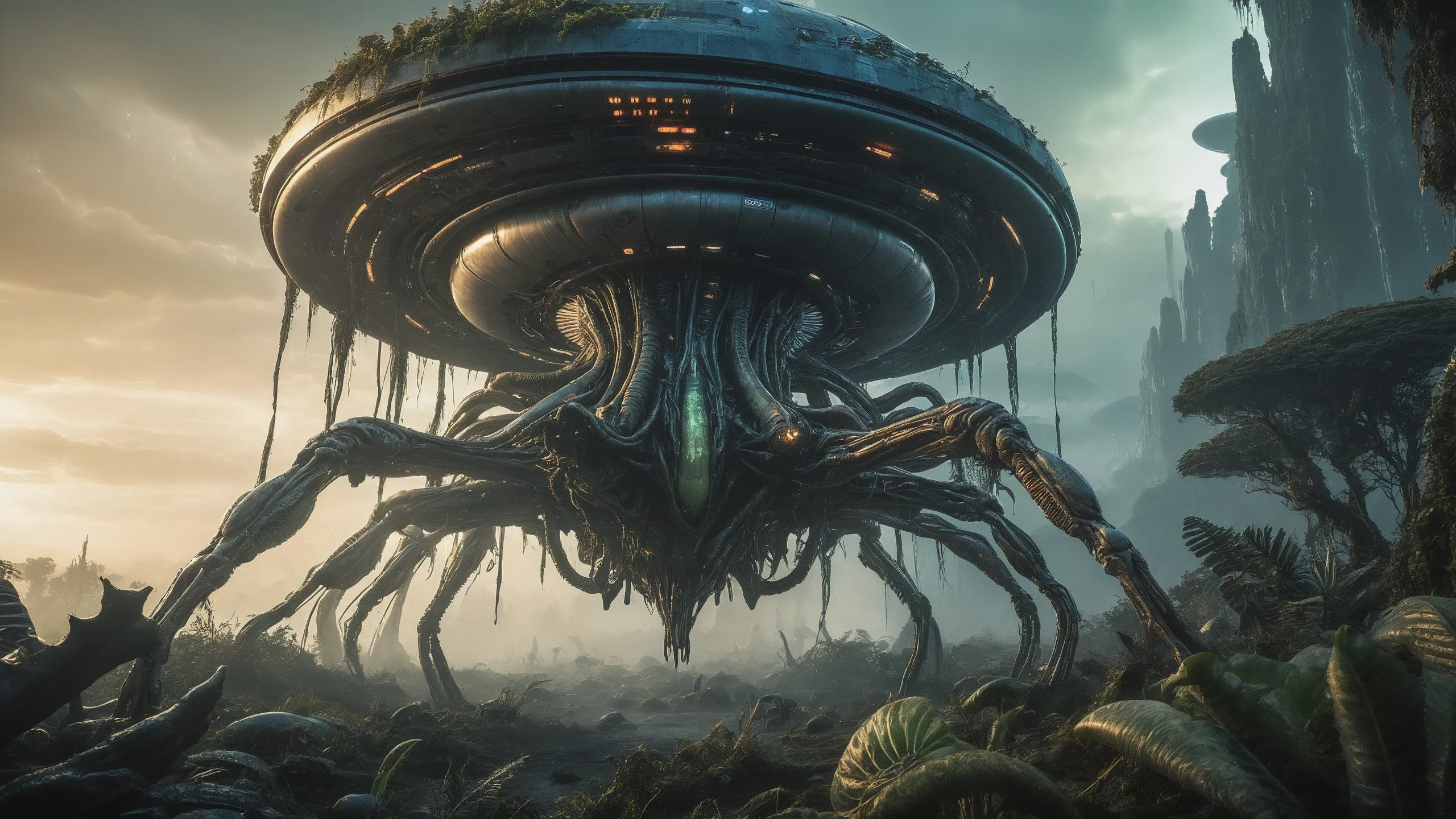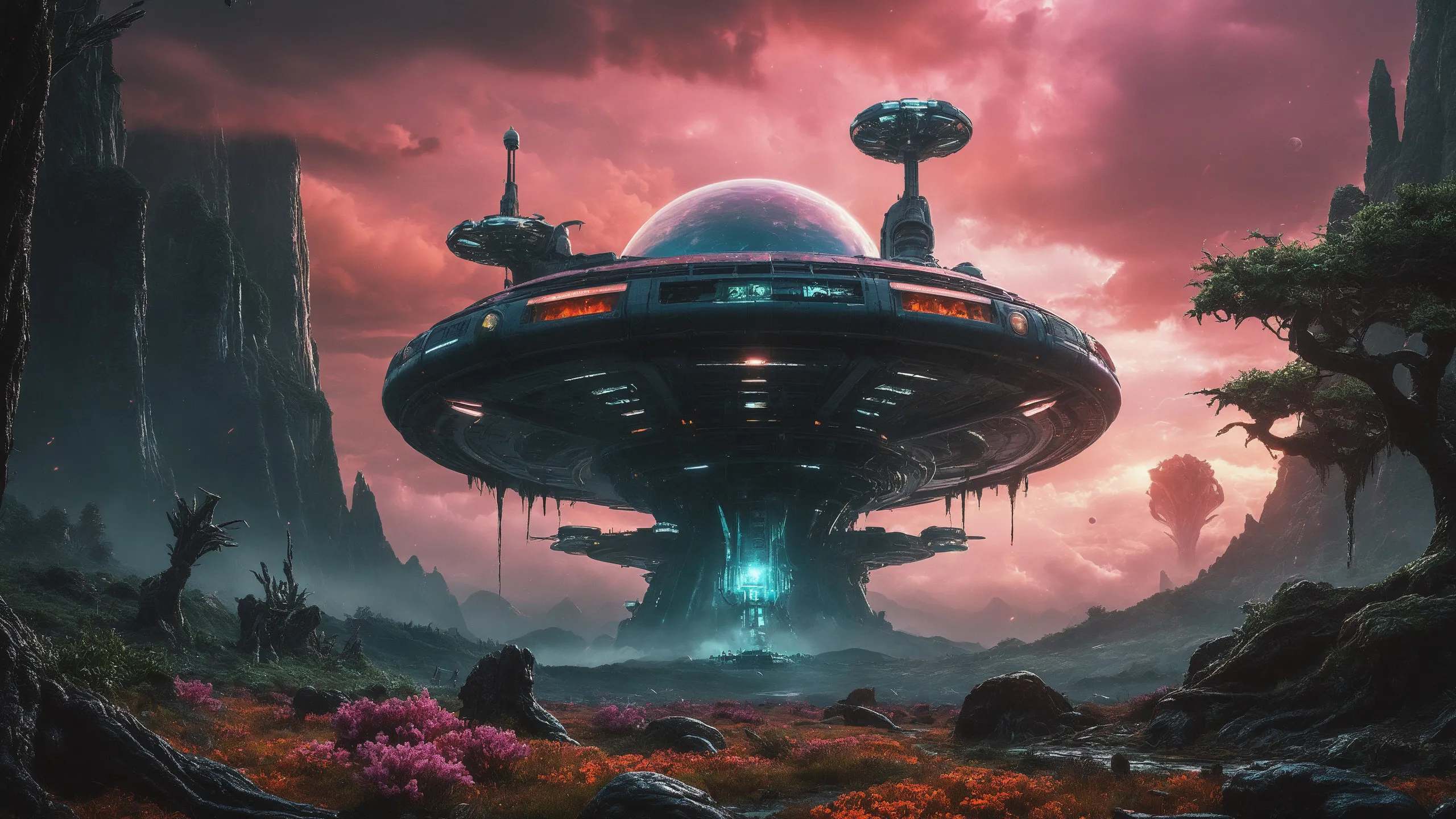 Cinematic epic scene of a (Sience Fiction, alien {mega city|cityscape|landscape|space station|outer space|world}:1.5).