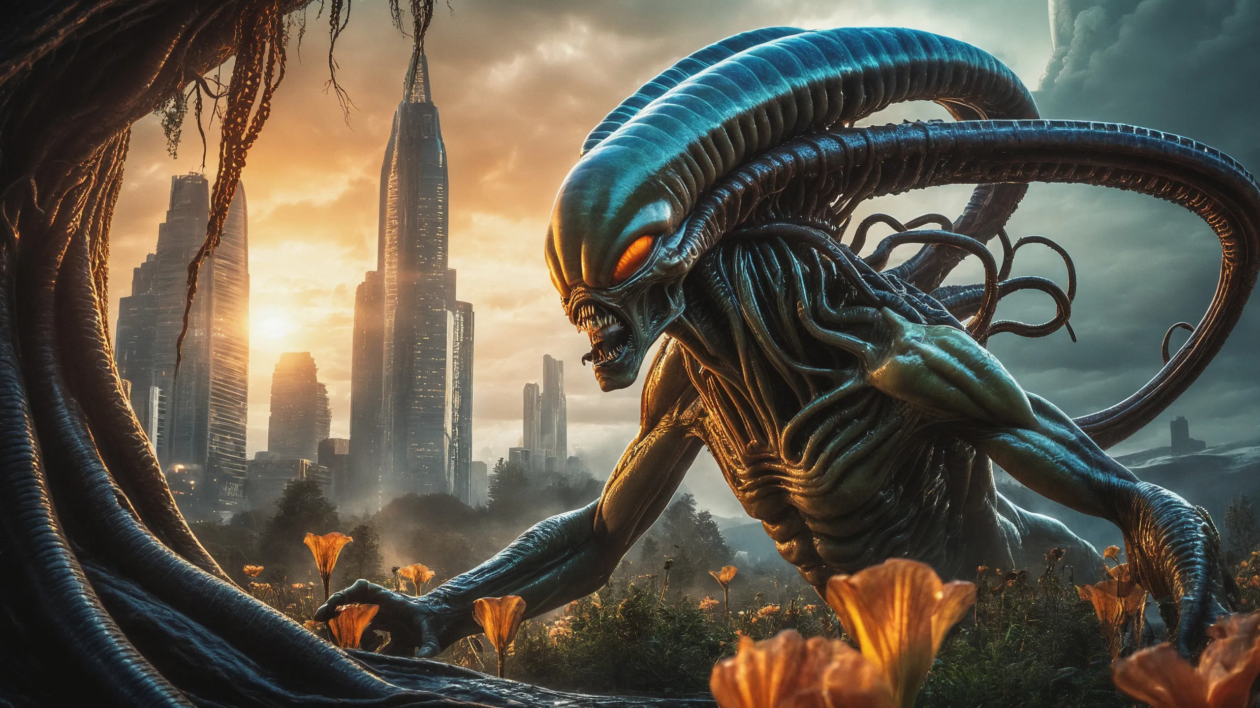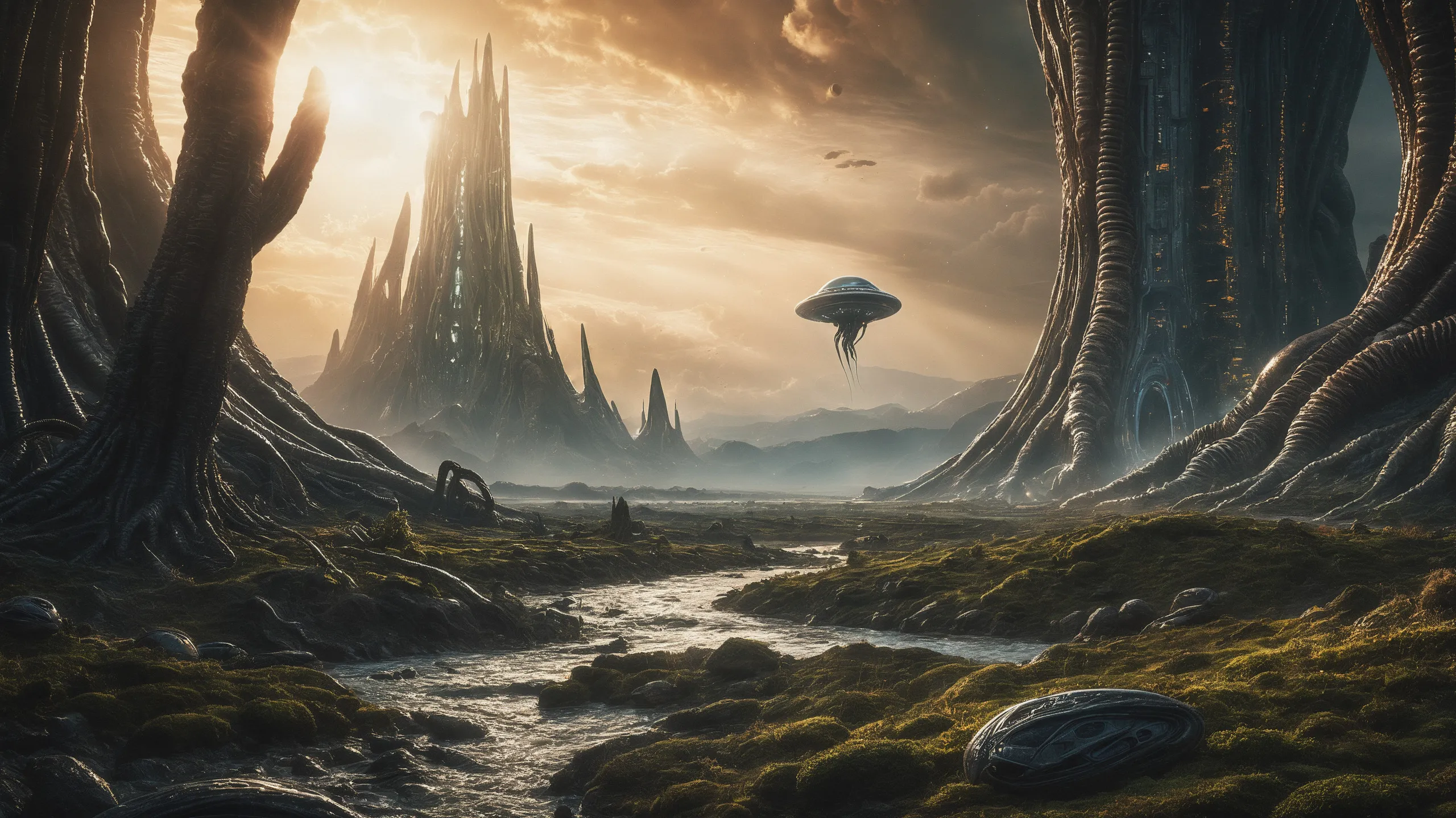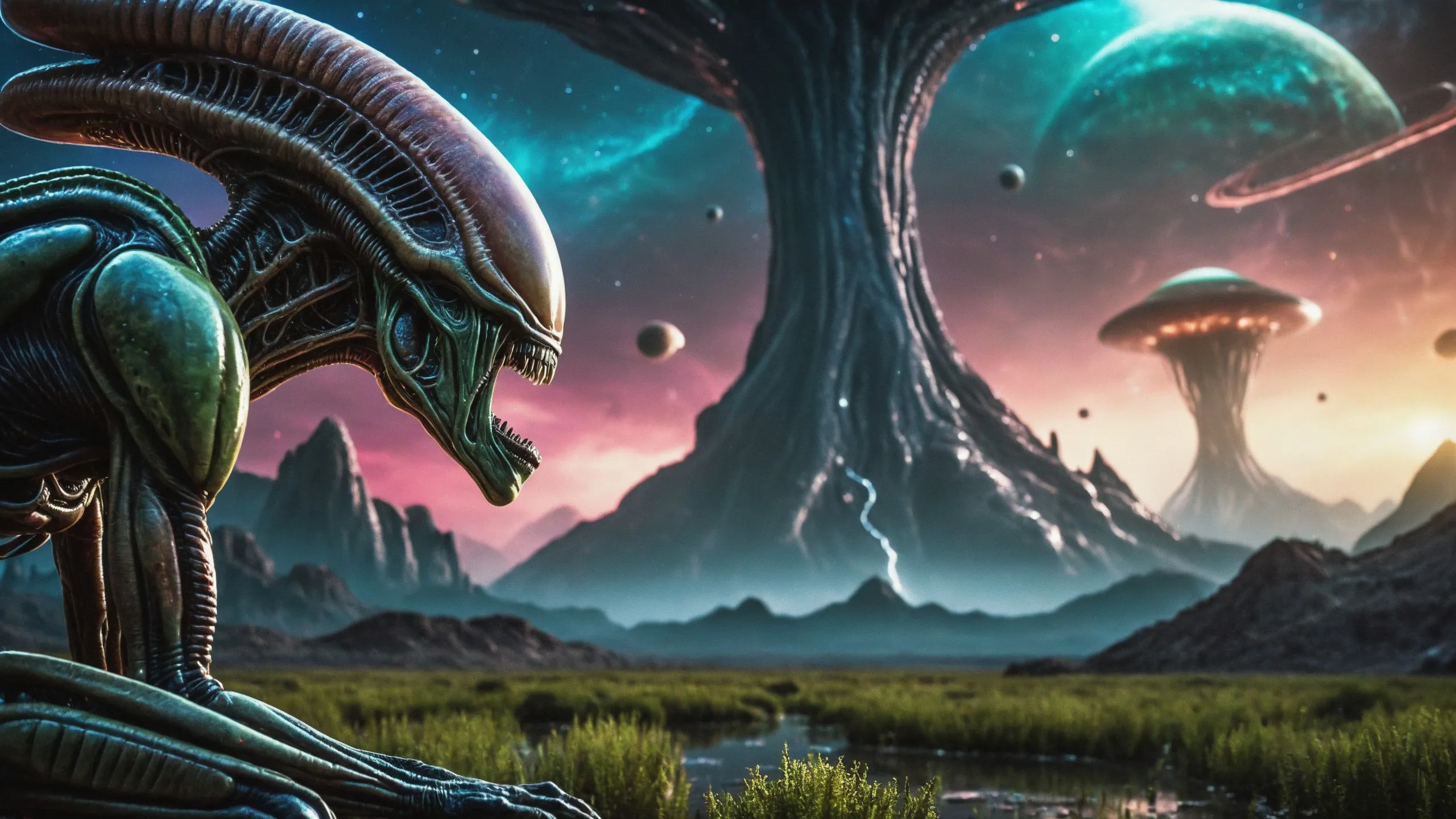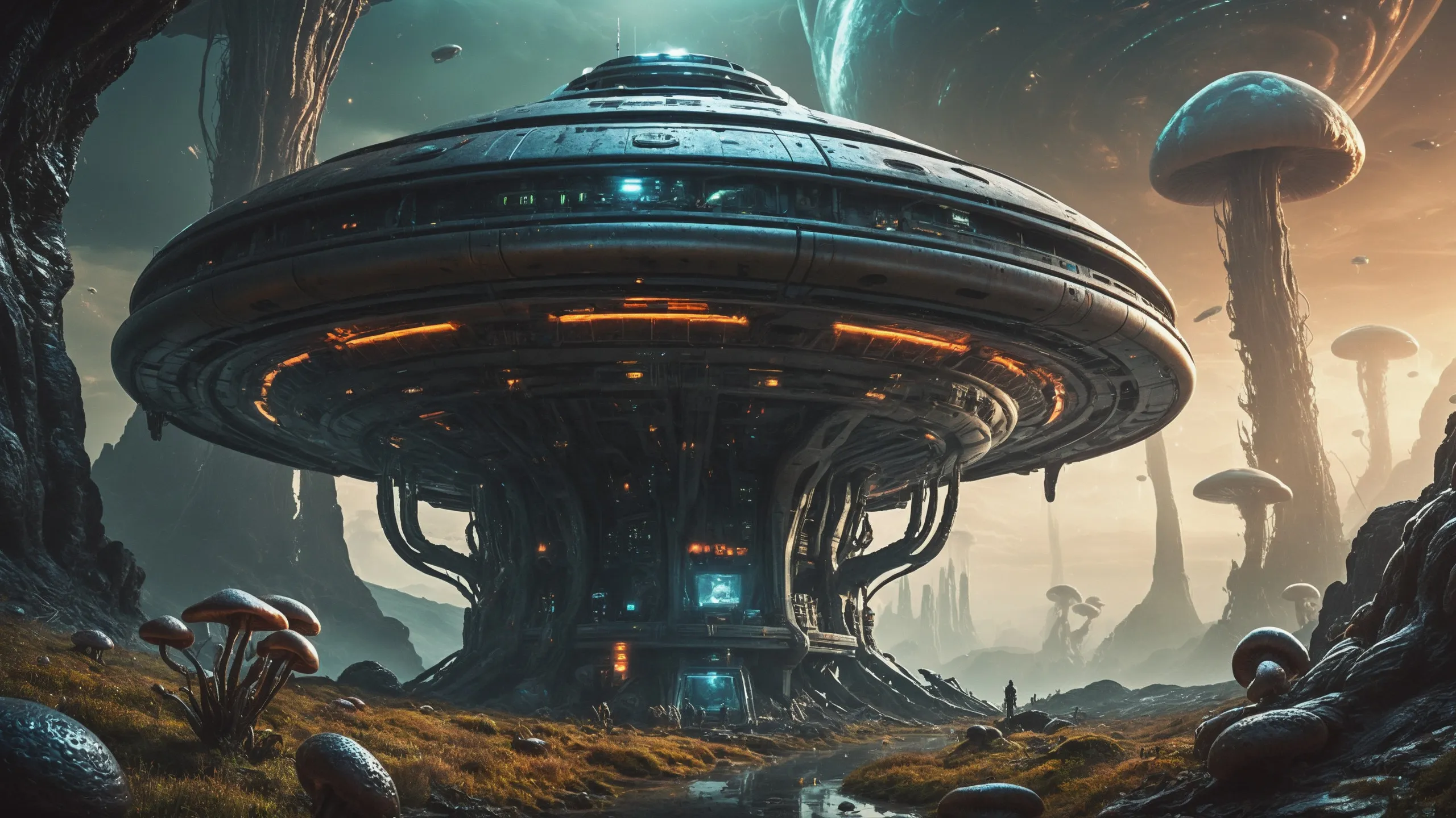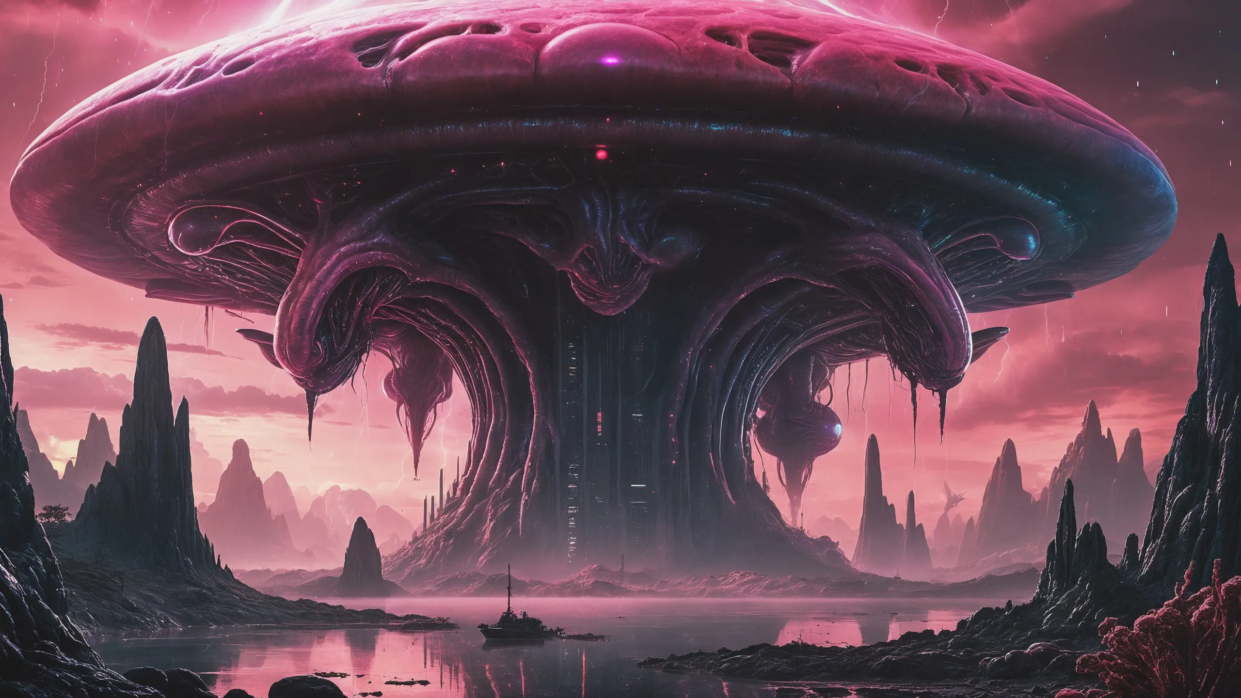 Cinematic epic scene of a (Sience Fiction, alien {mega city|cityscape|landscape|space station|outer space|world}:1.5).