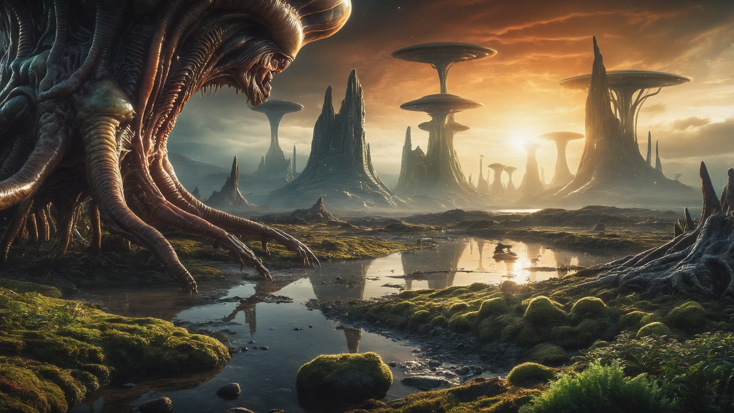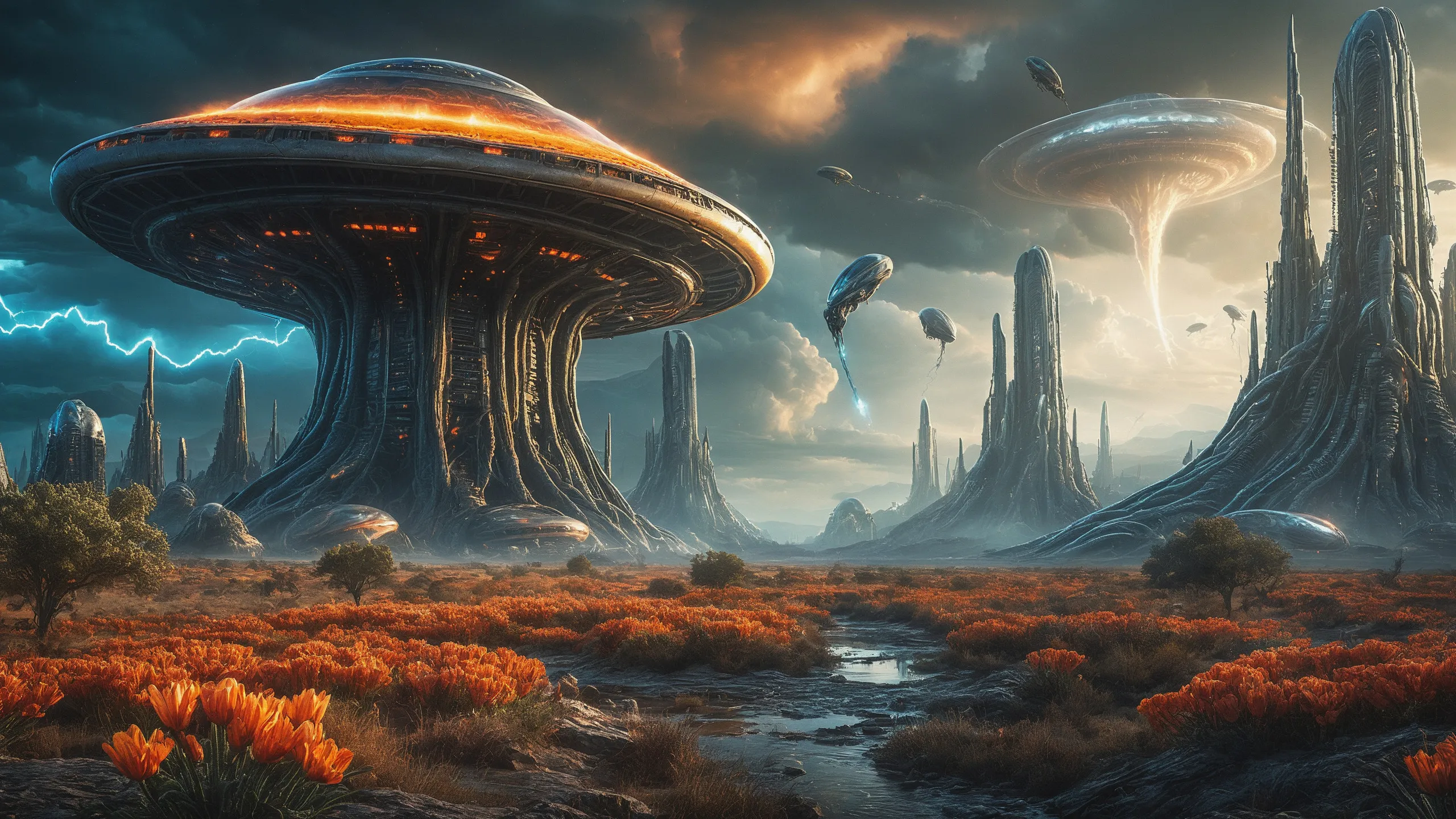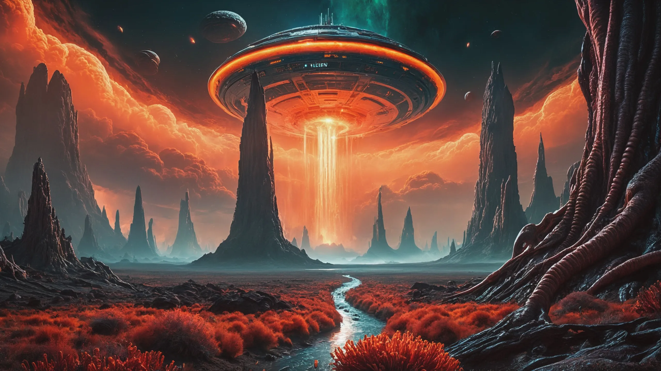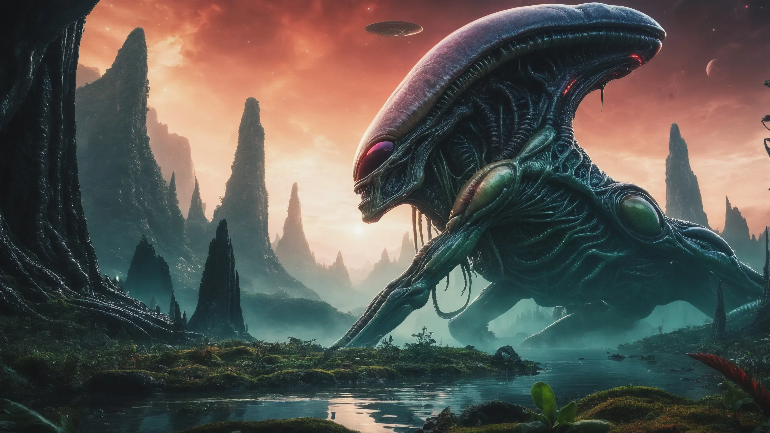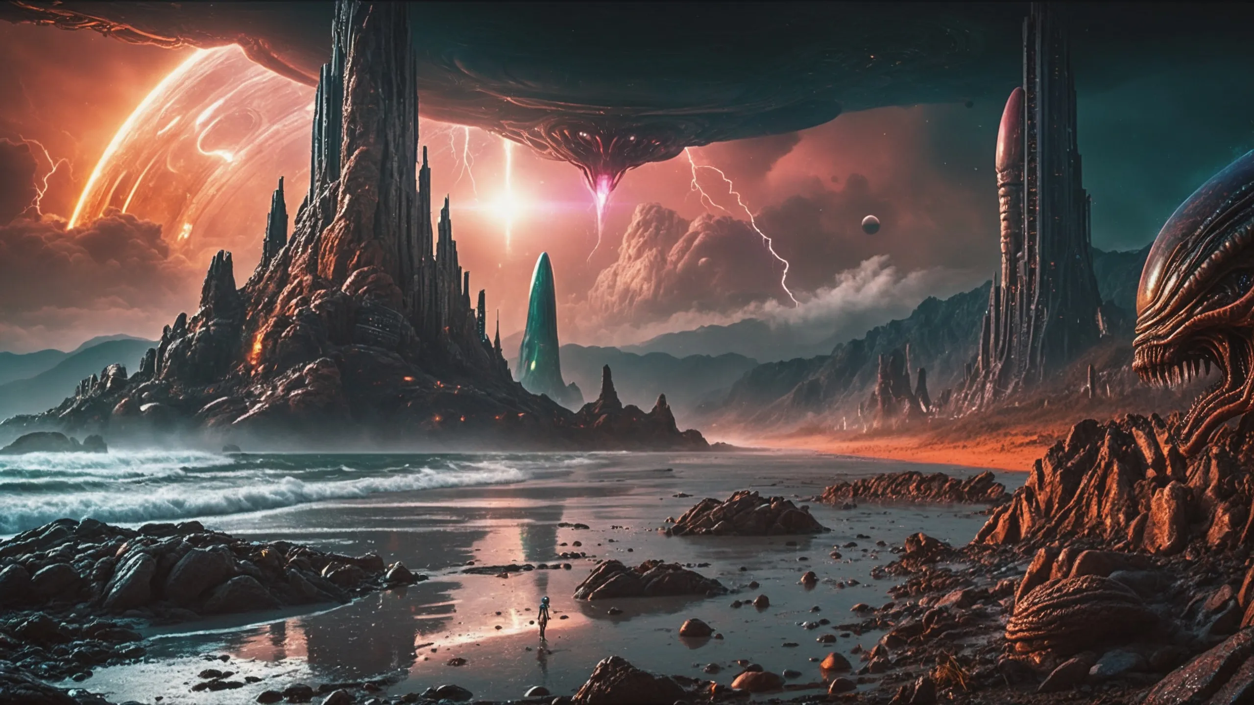 Cinematic epic scene of a (Sience Fiction, alien {mega city|cityscape|landscape|space station|outer space|world}:1.5).