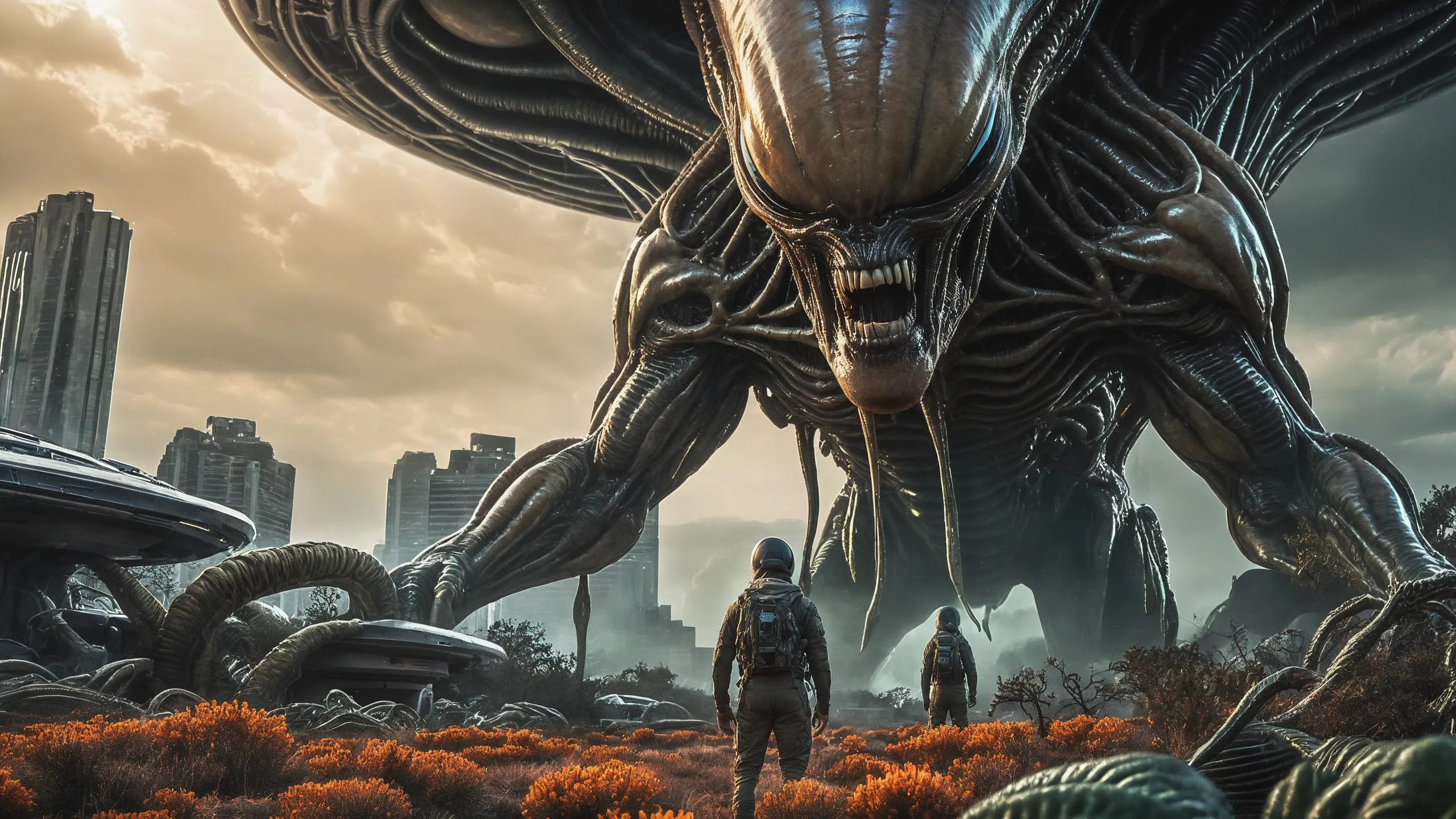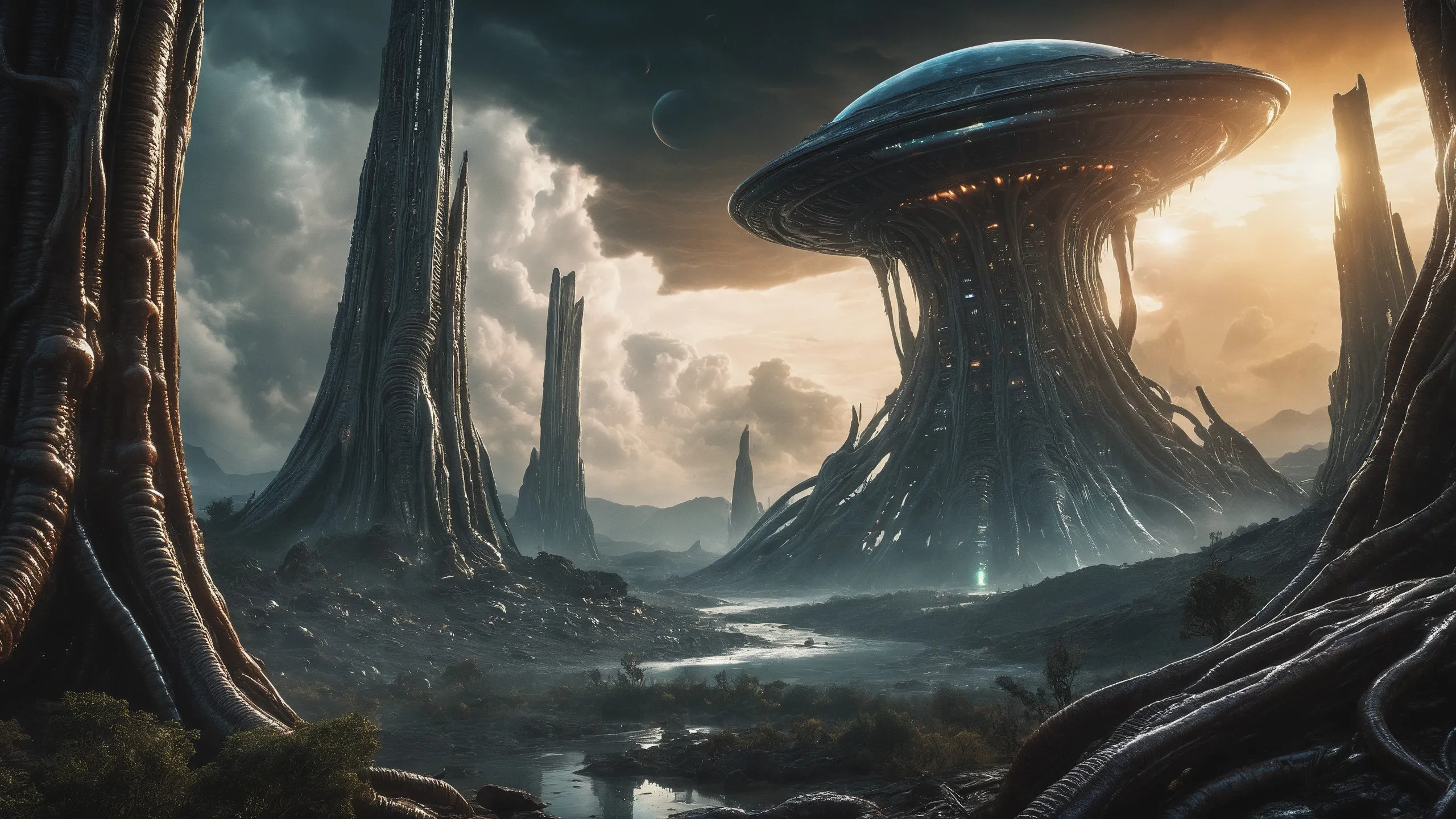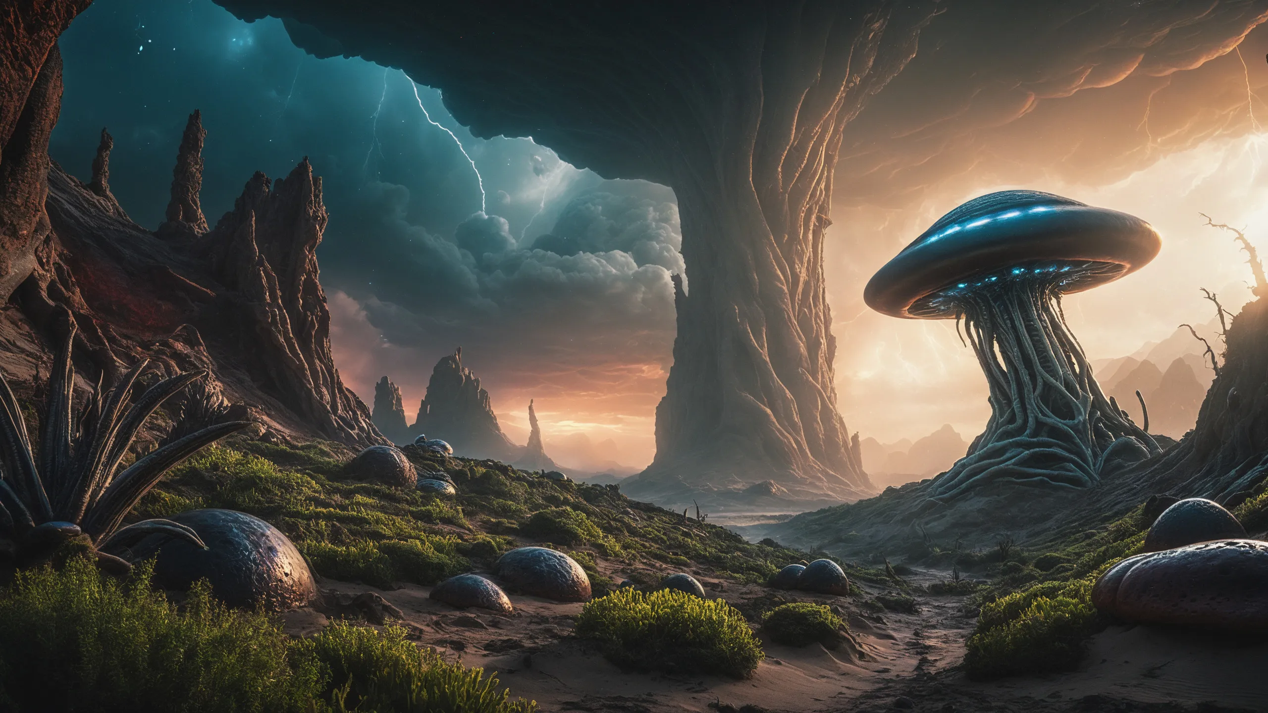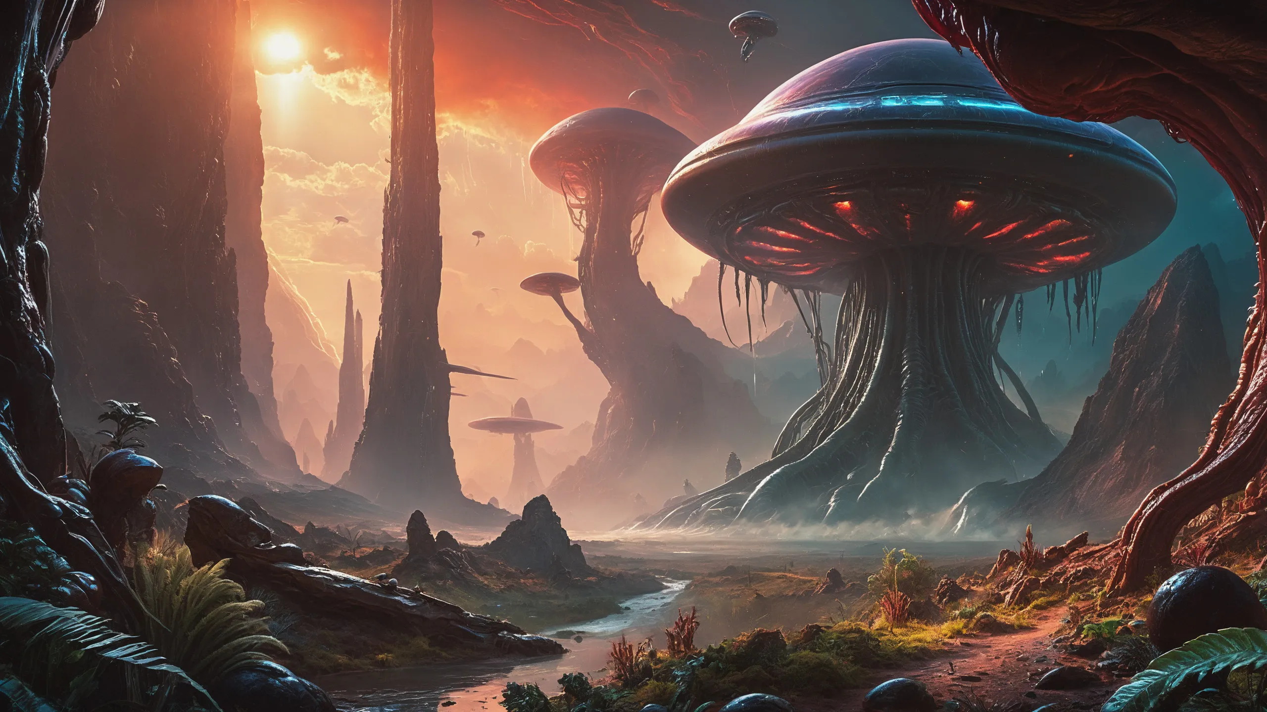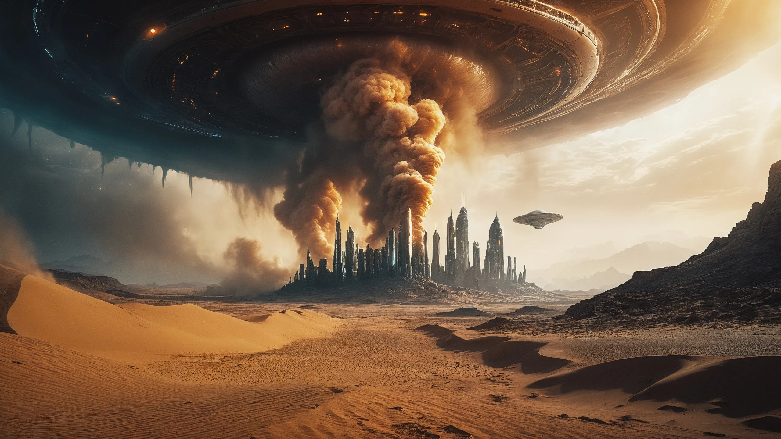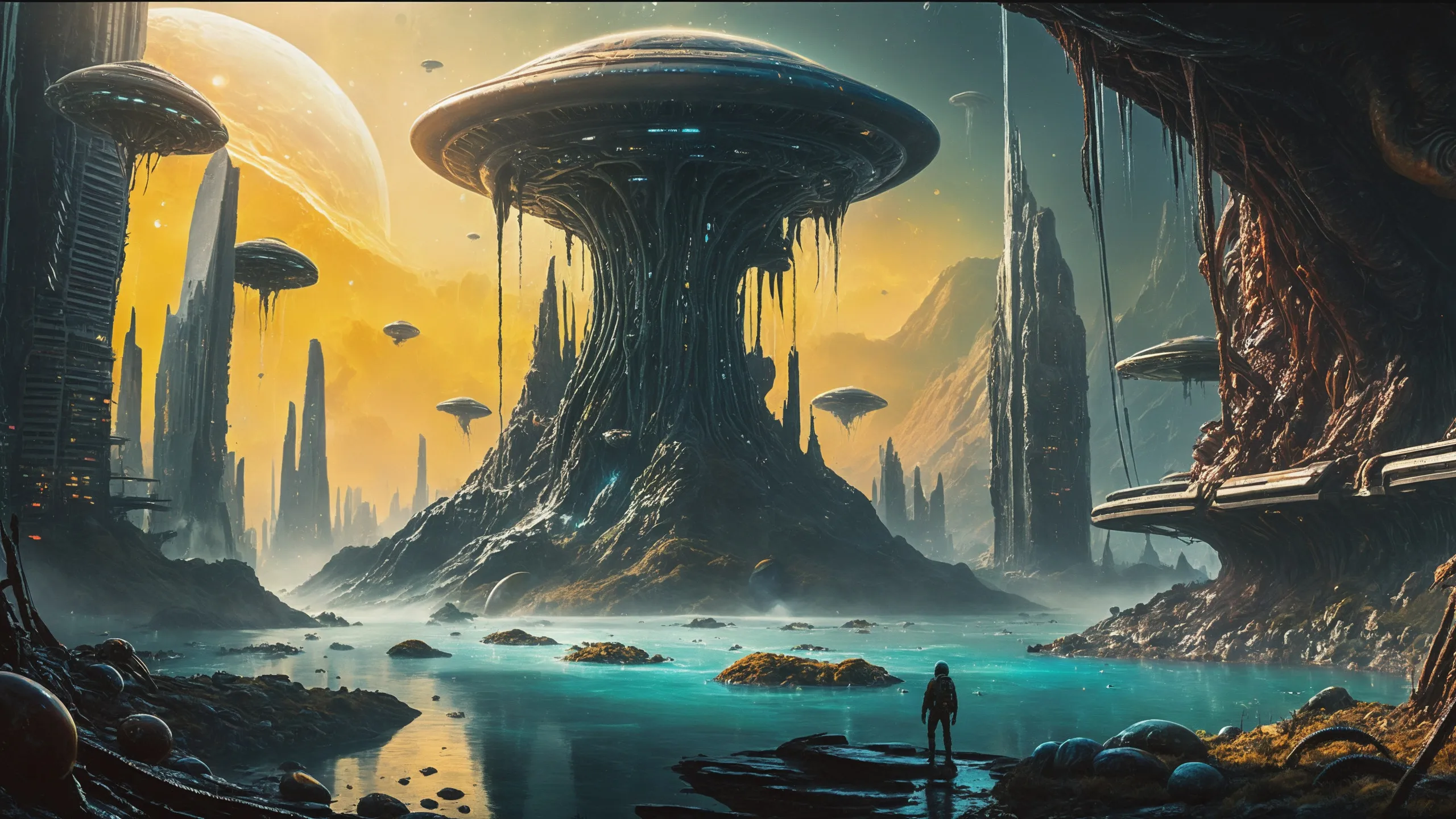 Cinematic epic scene of a (Sience Fiction, alien {mega city|cityscape|landscape|space station|outer space|world}:1.5).