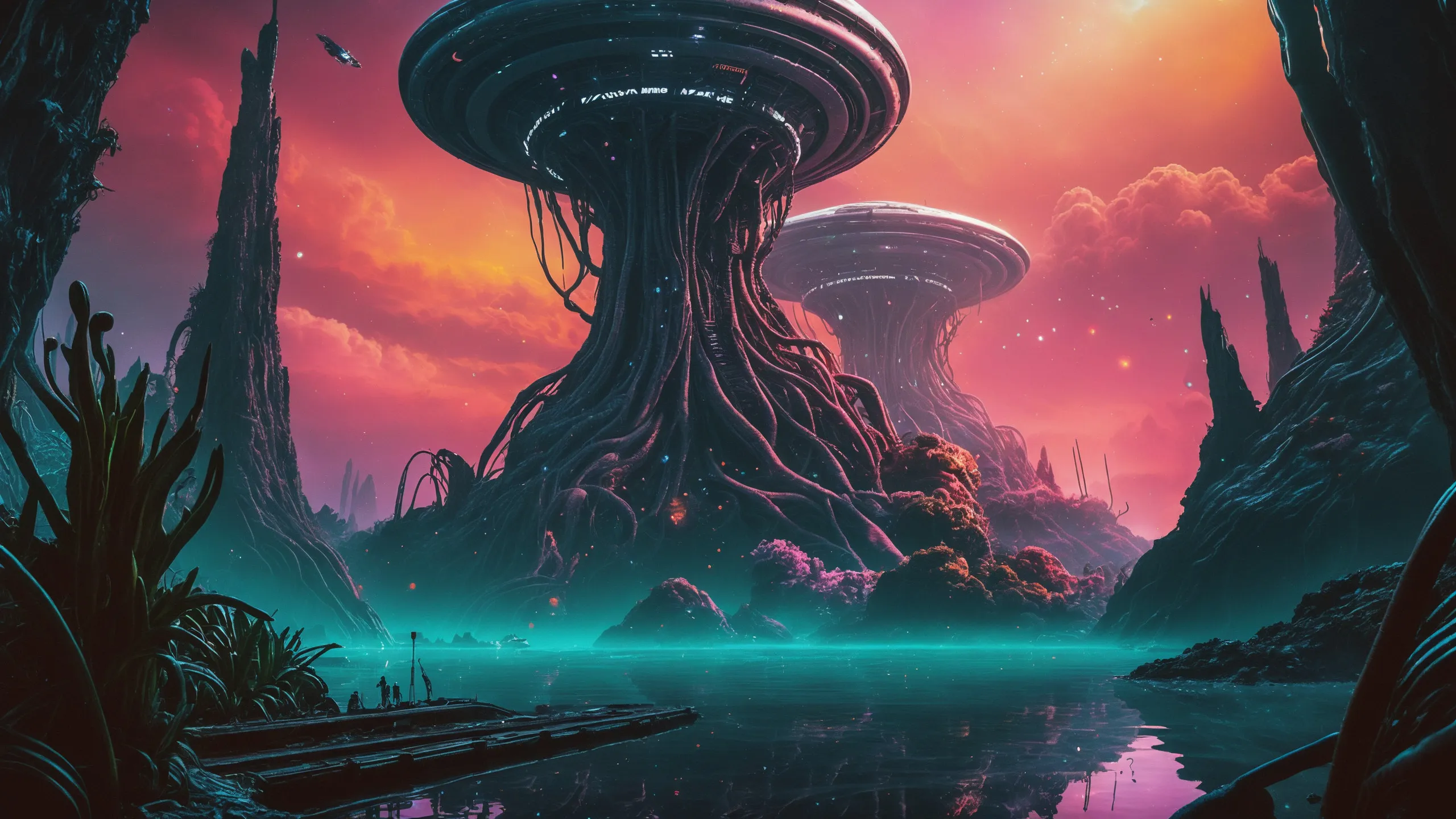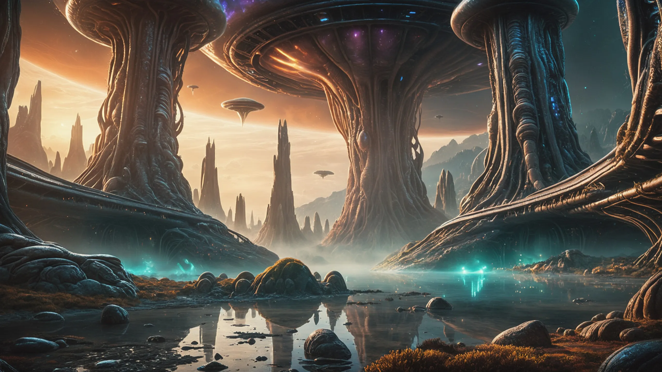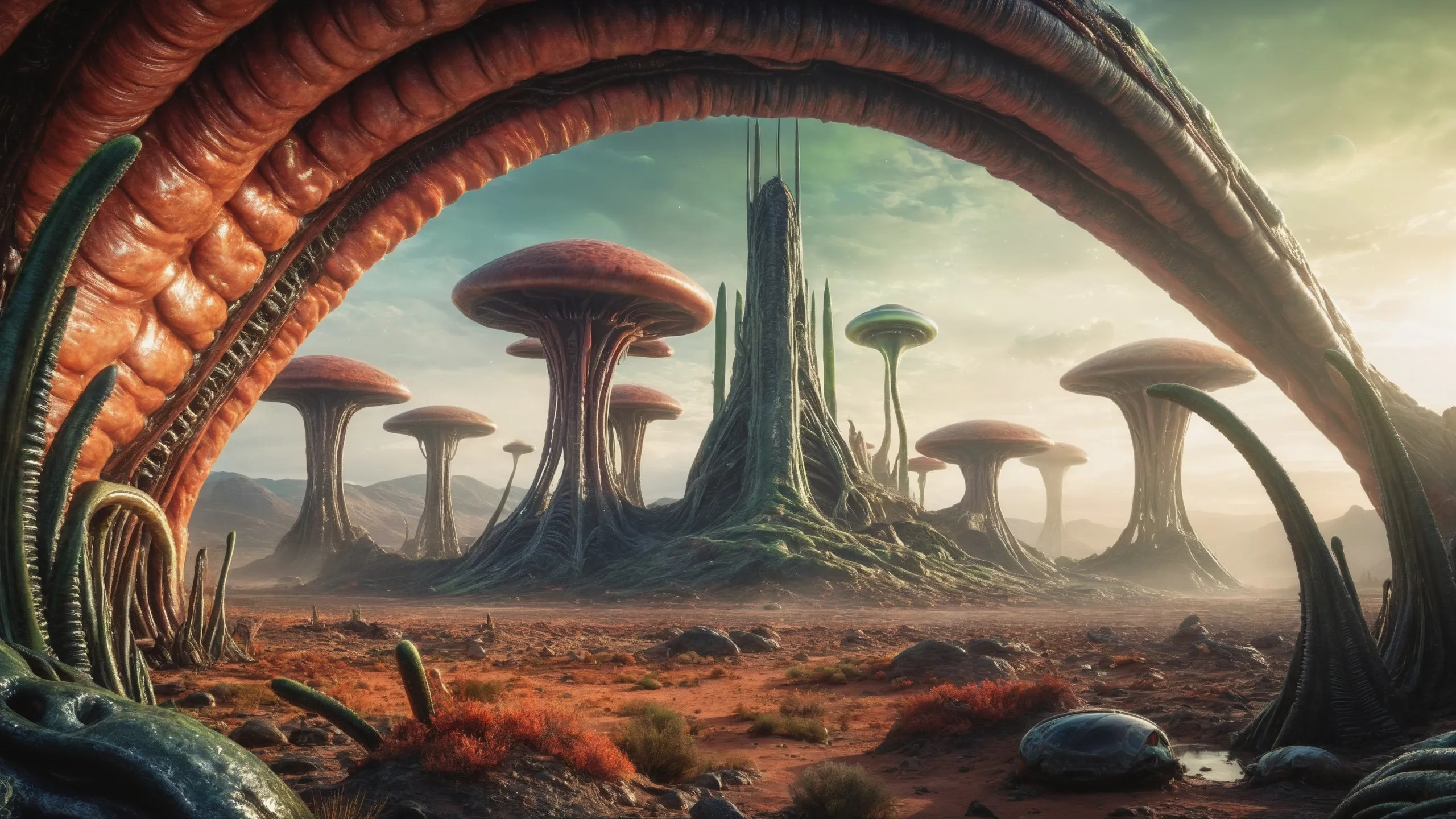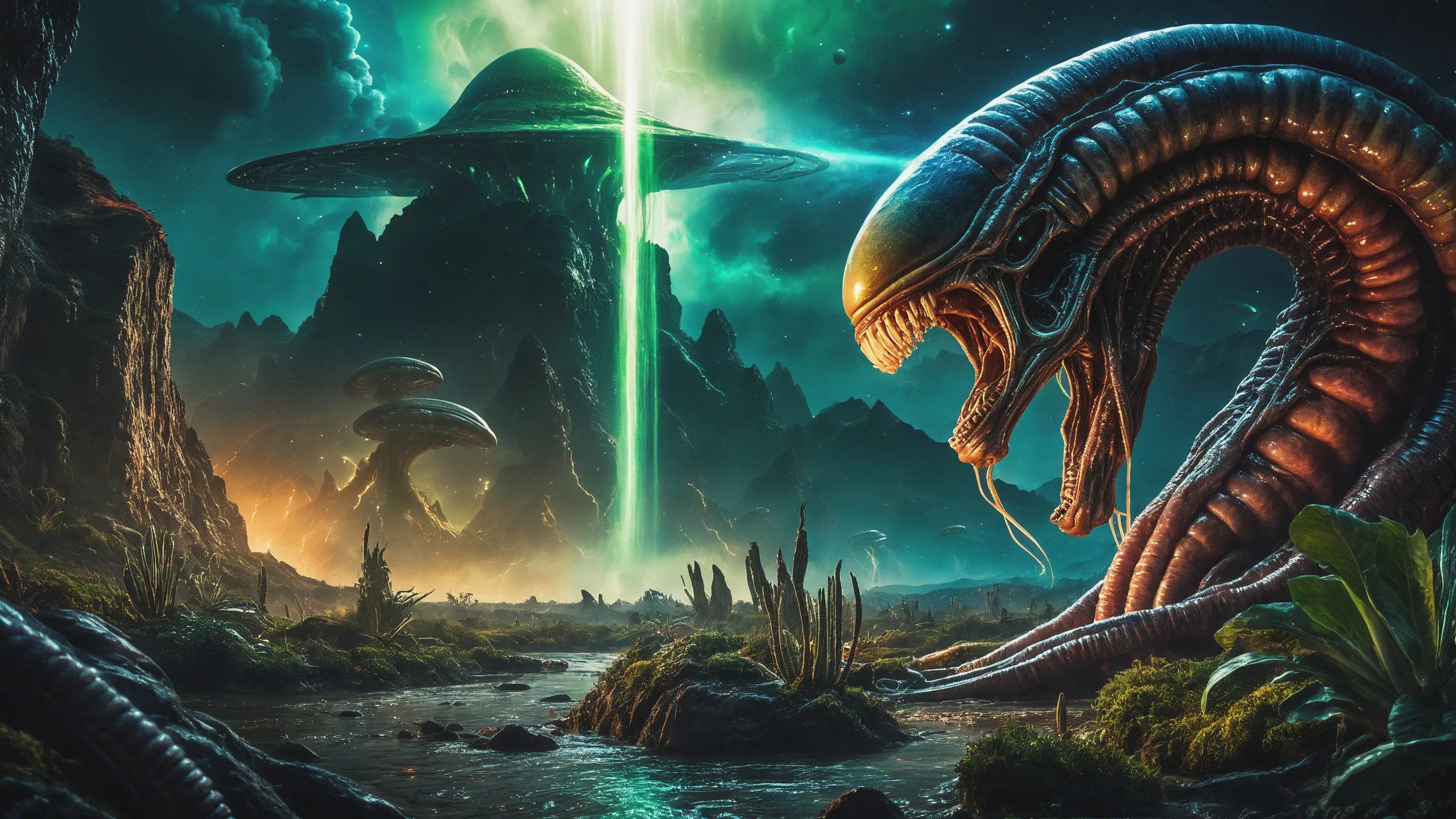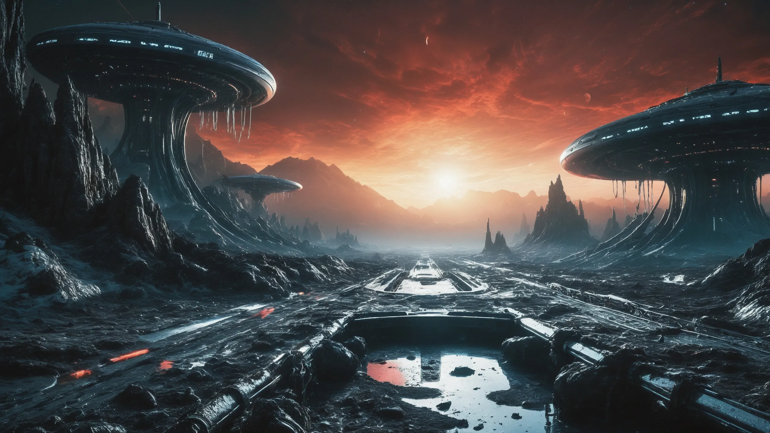Cinematic epic scene of a (Sience Fiction, alien {mega city|cityscape|landscape|space station|outer space|world}:1.5).