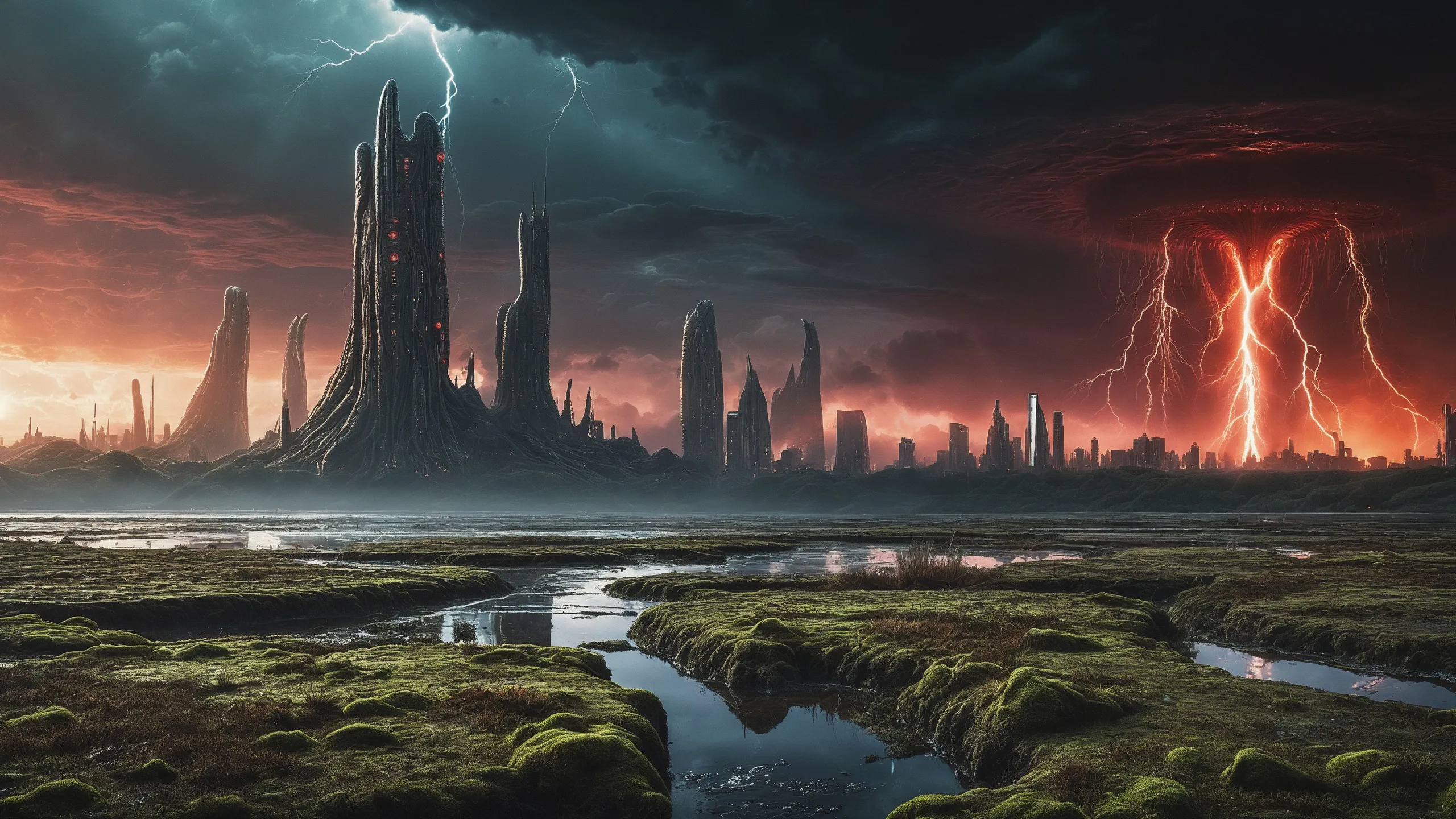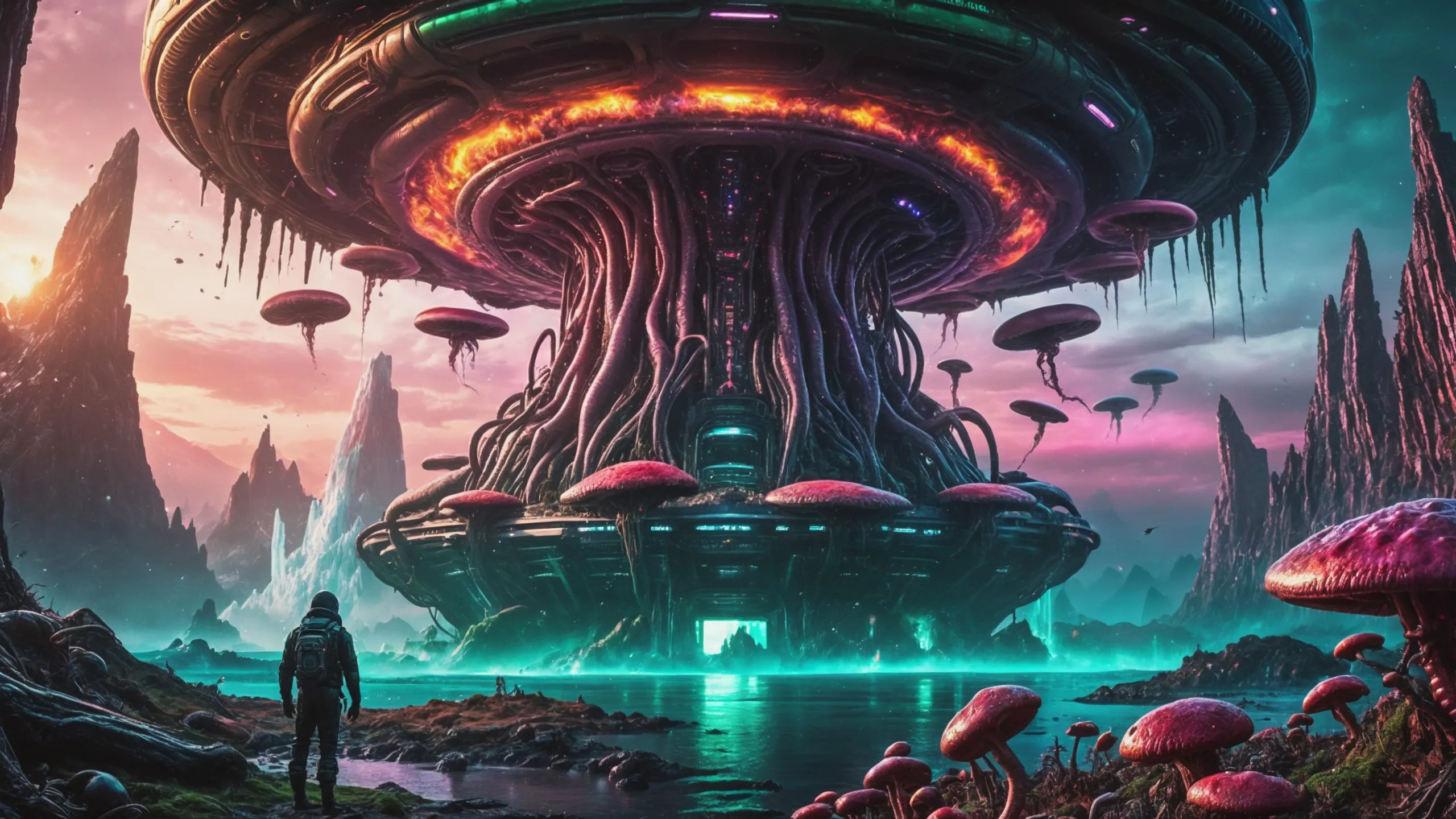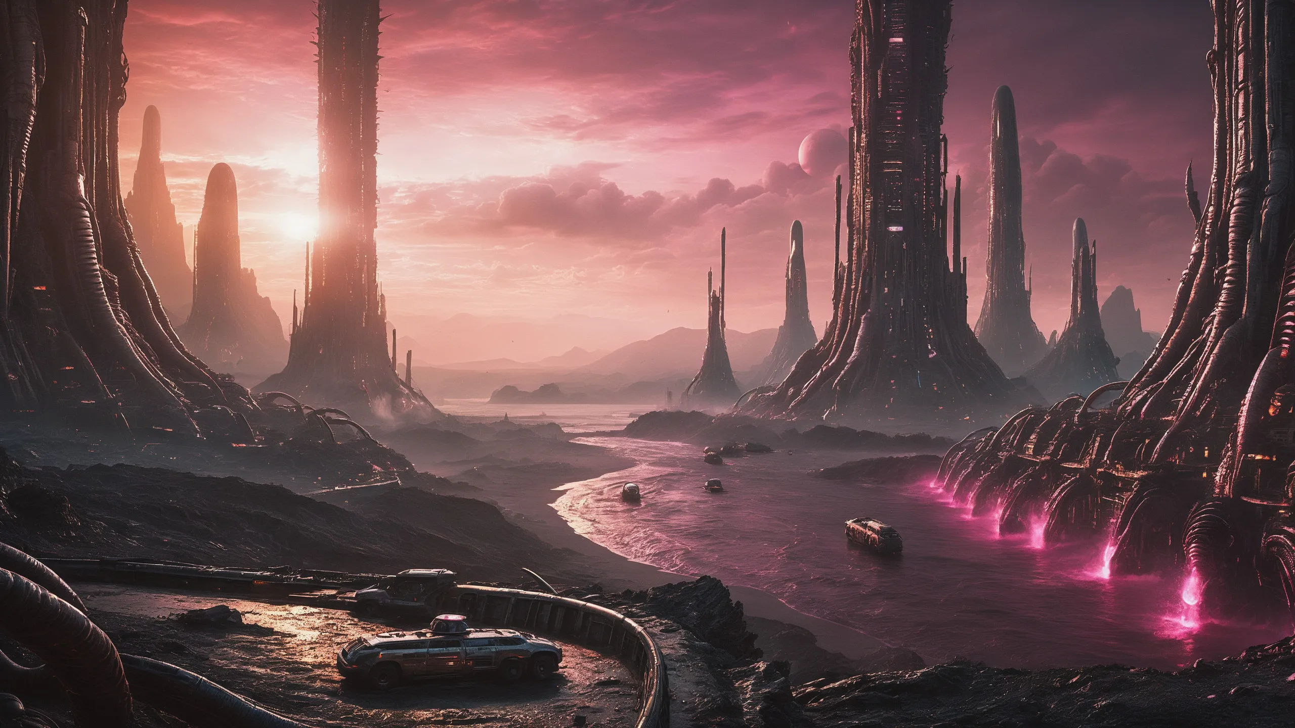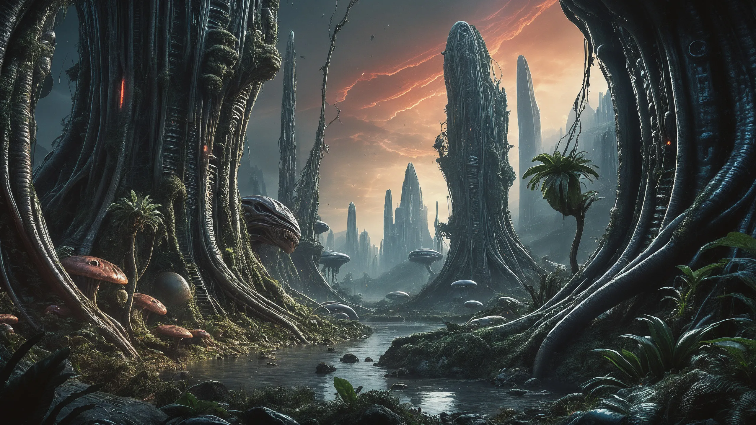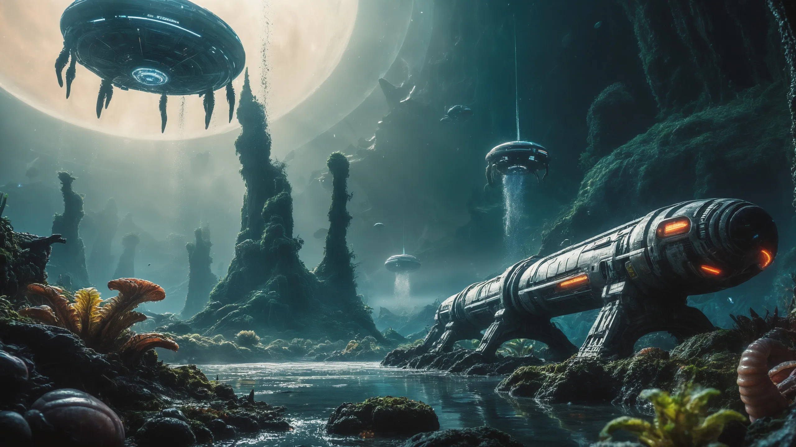 Cinematic epic scene of a (Sience Fiction, alien {mega city|cityscape|landscape|space station|outer space|world}:1.5).
